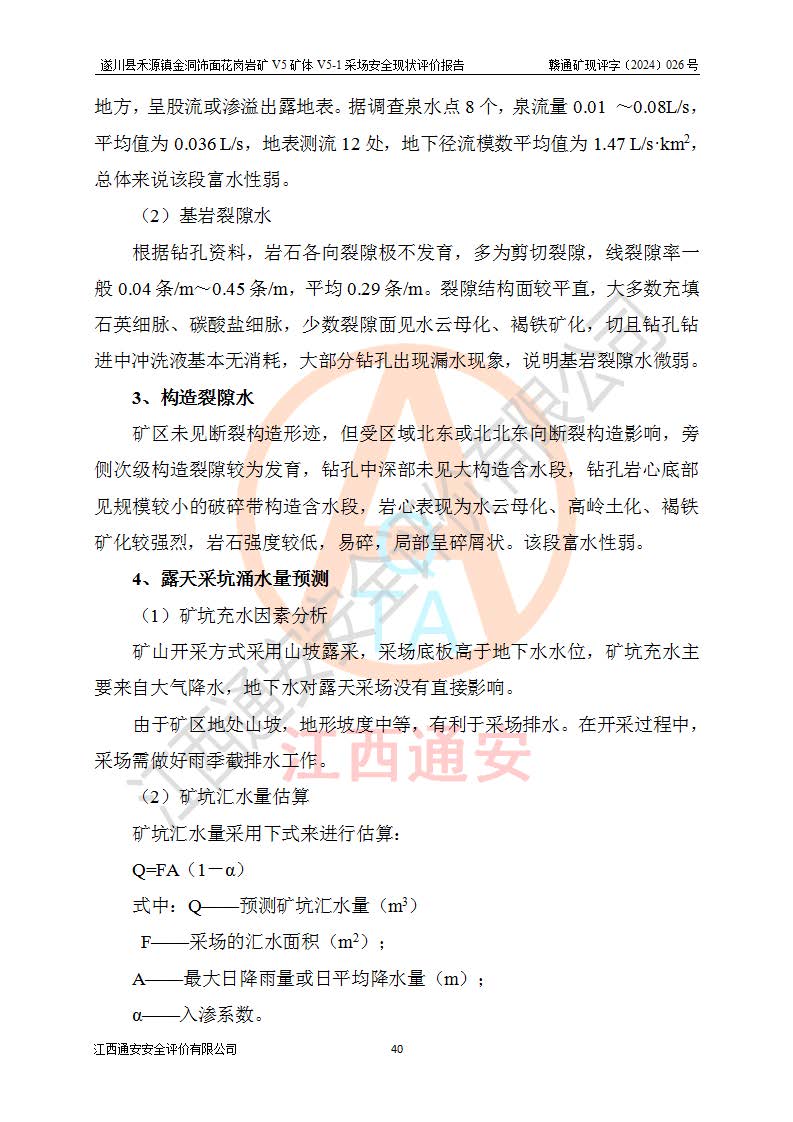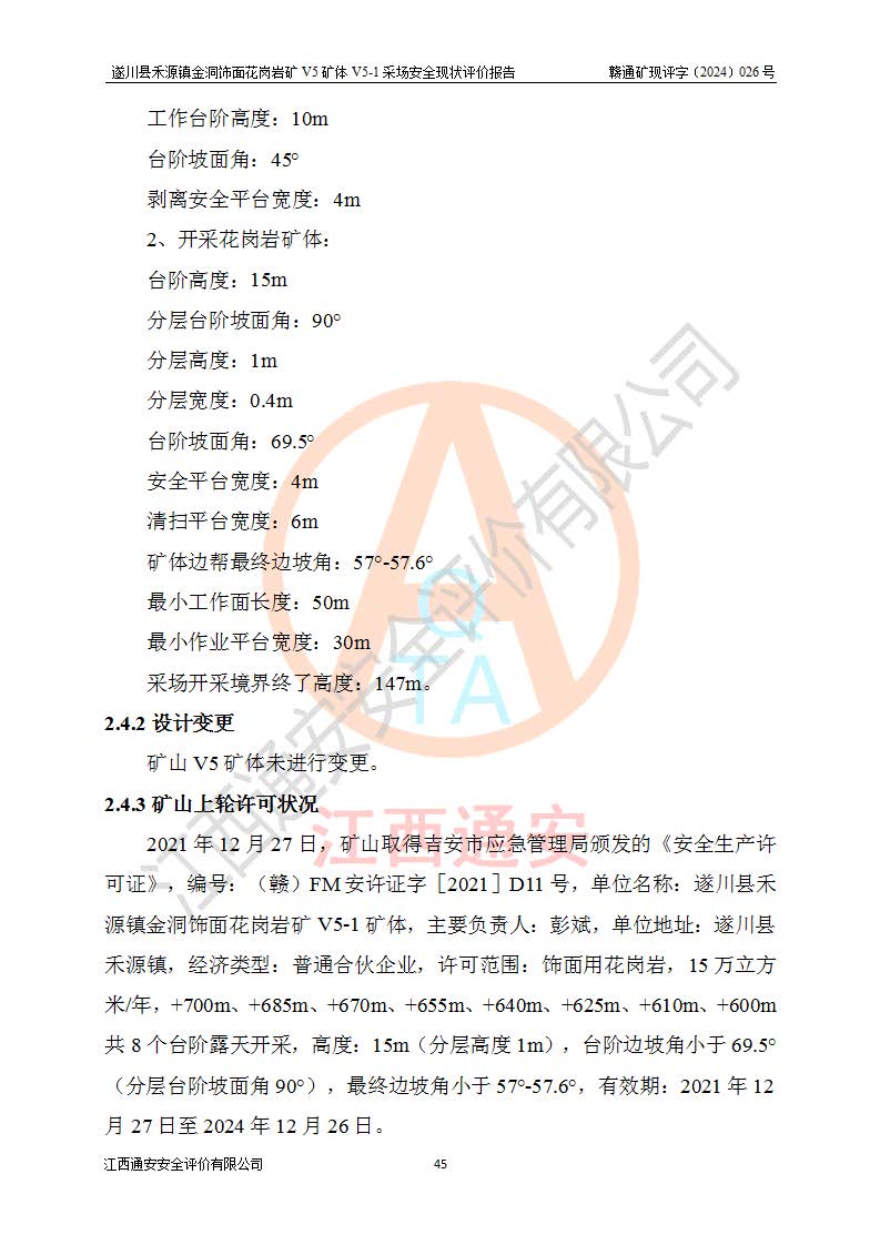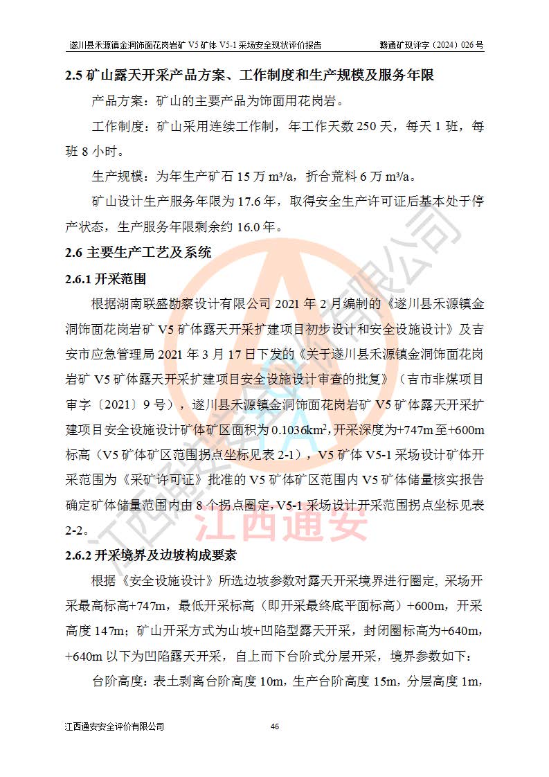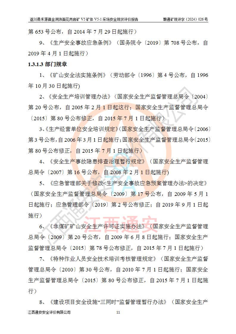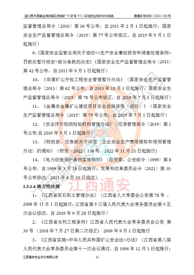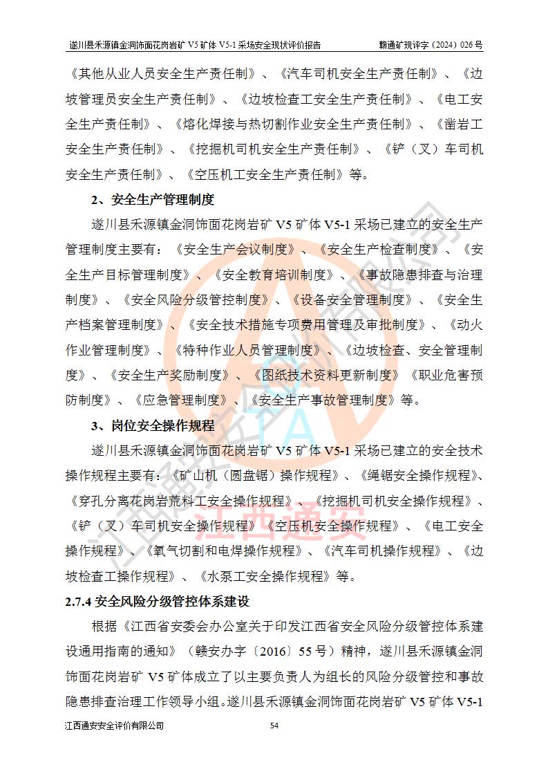 1、該評(píng)價(jià)項(xiàng)目中存在的主要危險(xiǎn)因素:火災(zāi),坍塌(滑坡),**傷害,機(jī)械傷害,觸電與雷擊,物體打擊,泥石流,起重傷害,高處墜落,淹溺,容器爆炸等危險(xiǎn)有害因素。 2、該評(píng)價(jià)項(xiàng)目中存在的有害因素包括:粉塵、噪聲與振動(dòng)、不良作業(yè)環(huán)境,如高溫、雷擊對(duì)礦山人員的傷害和其他不利的環(huán)境因素等。 3、該評(píng)價(jià)項(xiàng)目為非金屬露天礦山,無瓦斯和自燃發(fā)火危險(xiǎn),礦區(qū)范圍內(nèi)及周邊無較大水系,礦區(qū)水文地質(zhì)條件簡單。該礦山只是對(duì)飾面用石料進(jìn)行機(jī)械開采,不使用有毒有害危險(xiǎn)化學(xué)品藥劑。該評(píng)價(jià)項(xiàng)目使用的壓力容器為空壓機(jī)儲(chǔ)氣罐,其工作介質(zhì)為空氣,屬**性、非易燃介質(zhì)。綜合上述分析,本評(píng)價(jià)項(xiàng)目不存在重大危險(xiǎn)源。 上述主要危險(xiǎn)、有害因素在采取本報(bào)告第六章中提出的安全對(duì)策措施及建議后,能得到**控制。遂川縣禾源鎮(zhèn)金洞飾面花崗巖礦V5礦體V5-1采場(chǎng)設(shè)備、設(shè)施和場(chǎng)所符合**安全生產(chǎn)有關(guān)法律、法規(guī)、標(biāo)準(zhǔn)及規(guī)范的規(guī)定。礦山采用露天開采、公路開拓、汽車運(yùn)輸方式,安全生產(chǎn)條件一般,能滿足基本的安全生產(chǎn)活動(dòng);安全管理能滿足法規(guī)要求,礦山露天開采按照《安全設(shè)施設(shè)計(jì)》組織生產(chǎn)、具備安全生產(chǎn)條件。 |