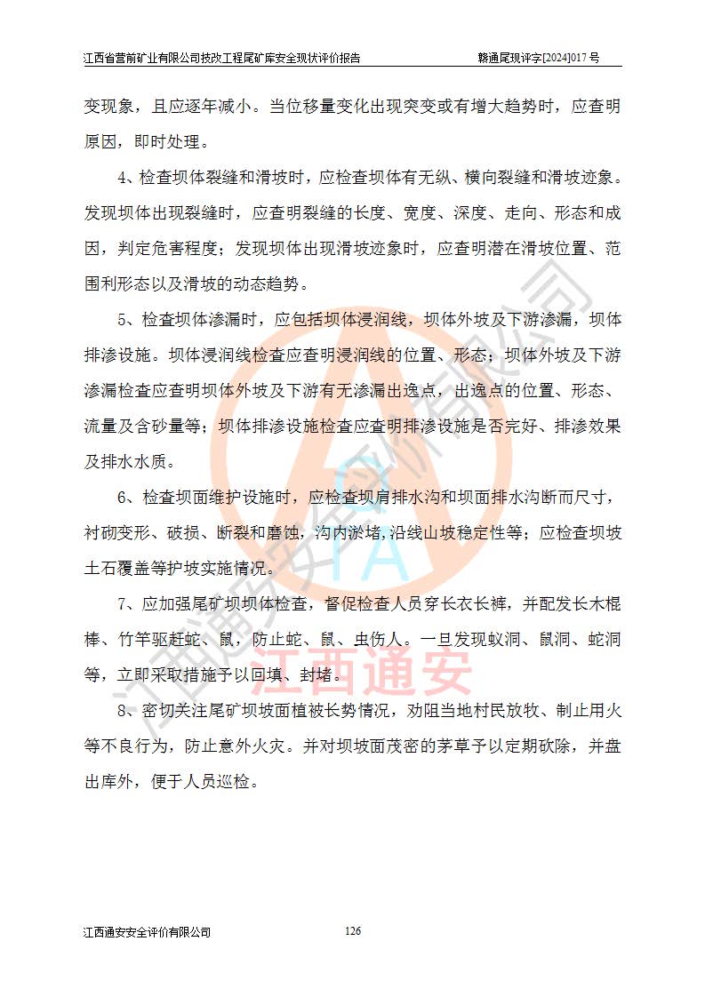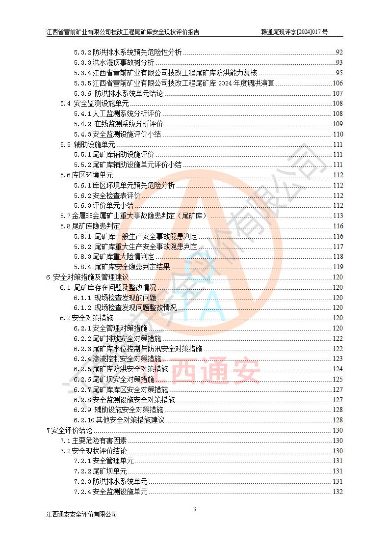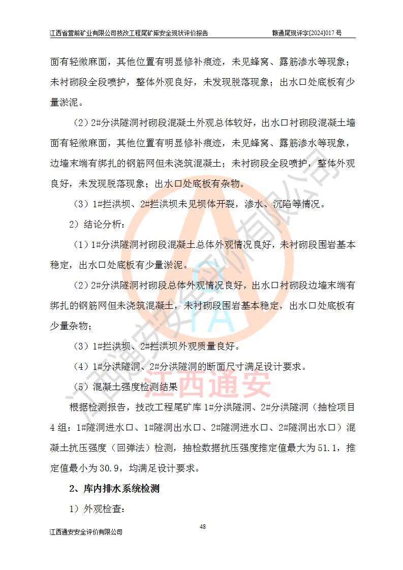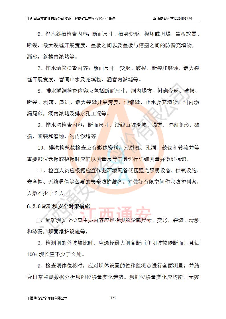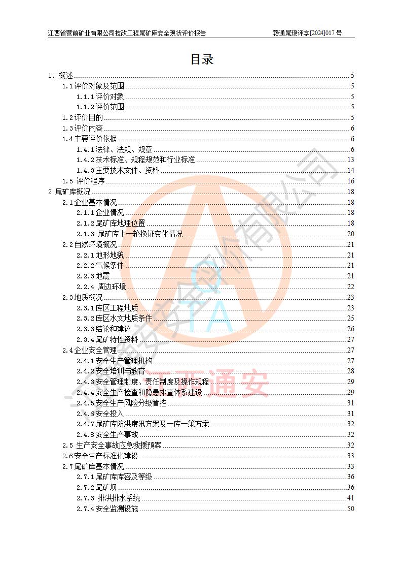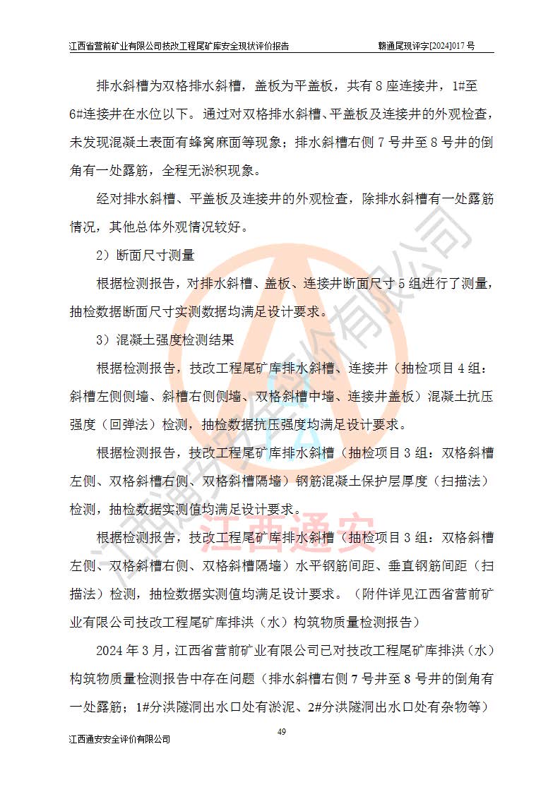 江西省營(yíng)前礦業(yè)有限公司于2003年12月16日成立,位于贛州市上猶縣營(yíng)前鎮(zhèn)焦里村境內(nèi),公司注冊(cè)資本10000萬(wàn)元,法定**人陳雅博,礦區(qū)地理坐標(biāo):東經(jīng)114°18′30″~114°19′00″,北緯25°52′35″~25°53′47″。公司經(jīng)營(yíng)范圍包括:鉛礦、鋅、鎢、銀地下開(kāi)采、銷(xiāo)售。 江西省營(yíng)前礦業(yè)有限公司技改工程尾礦庫(kù)位于焦里鎢銀鉛鋅礦區(qū),處于上猶縣水巖鄉(xiāng)井子村坑尾自然村境內(nèi),山谷型尾礦庫(kù),溝谷呈“V”字形展布,技改工程尾礦庫(kù)原由福建省冶金工業(yè)設(shè)計(jì)院設(shè)計(jì),后由金建工程設(shè)計(jì)有限公司對(duì)該尾礦庫(kù)進(jìn)行了加高擴(kuò)容設(shè)計(jì),加高擴(kuò)容后總庫(kù)容503.14萬(wàn)m3,壩高75.0m,為三等庫(kù)。尾礦庫(kù)主要由尾礦壩、庫(kù)外分洪系統(tǒng)(1#攔洪壩--1#分洪隧洞和2#攔洪壩--2#分洪隧洞--排水陡槽--消力池),庫(kù)內(nèi)排洪排水系統(tǒng)(排水斜槽—連接井—排水涵洞—排水隧洞—排水陡槽—消力池)等組成,尾礦壩壩型為初期壩+上游式堆積壩。 江西省營(yíng)前礦業(yè)有限公司技改工程尾礦庫(kù)于2021年12月30日取得江西省應(yīng)急管理廳版發(fā)的安全生產(chǎn)許可證,證書(shū)編號(hào)(贛)FM安許證字(2016)M1692號(hào),有限期從2022年1月18日到2025年1月17日,為三年期。依照《非煤礦礦山企業(yè)安全生產(chǎn)許可證延期換證工作》的通知,根據(jù)***《安全生產(chǎn)許可證條例》、《江西省安全生產(chǎn)條例》、《非煤礦山安全生產(chǎn)許可證實(shí)施辦法》、《江西省非煤礦礦山企業(yè)安全生產(chǎn)許可證辦法》規(guī)定的要求,受江西省營(yíng)前礦業(yè)有限公司委托,我公司承擔(dān)了技改工程尾礦庫(kù)延期換證安全現(xiàn)狀評(píng)價(jià)工作。 |