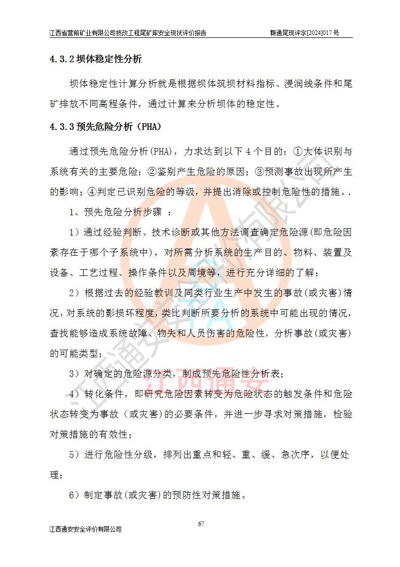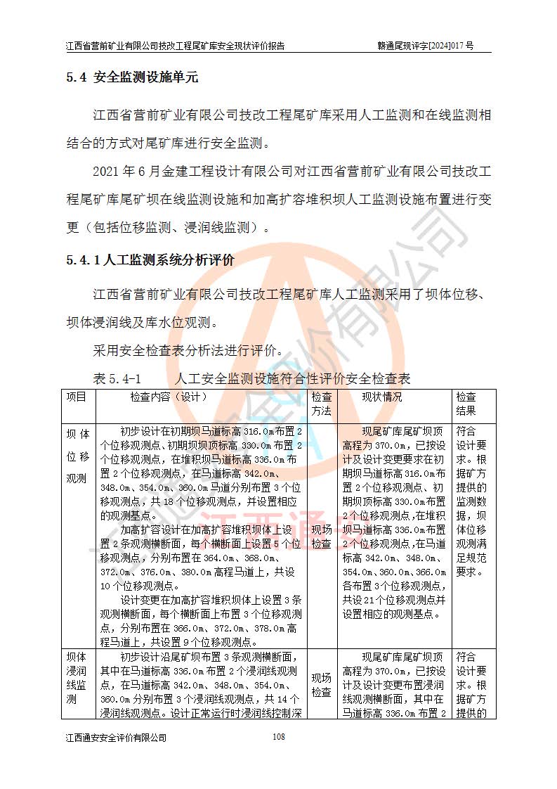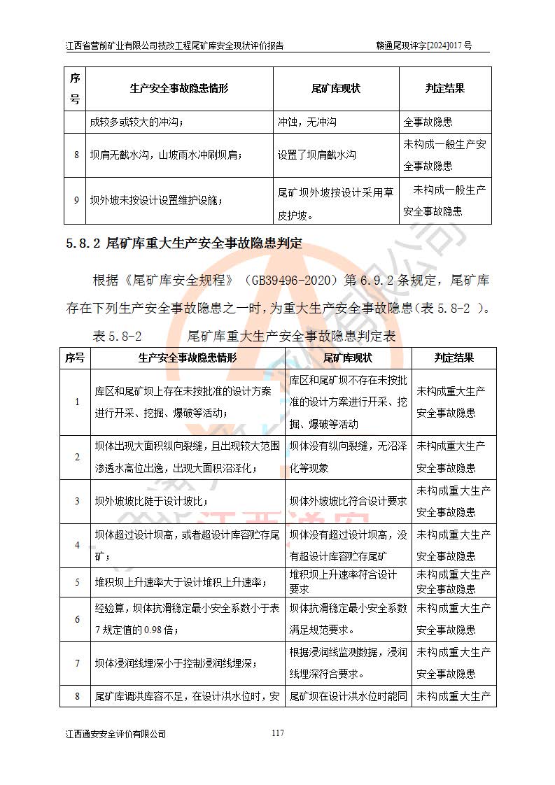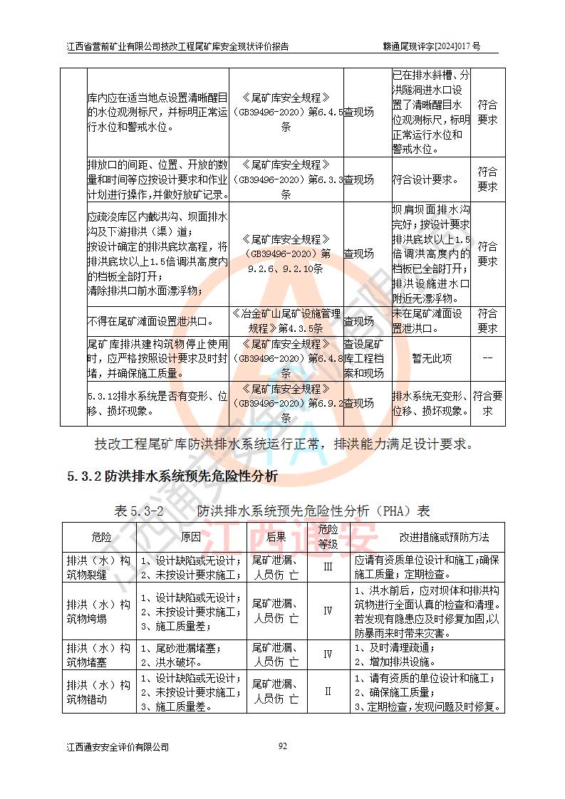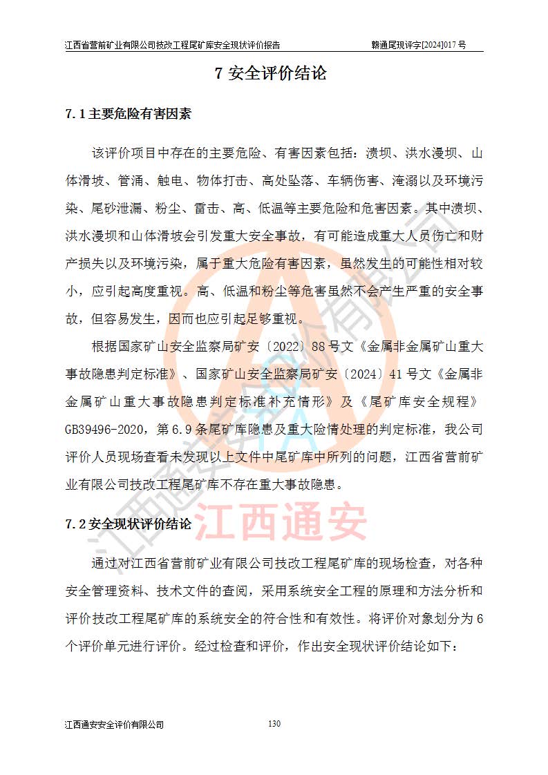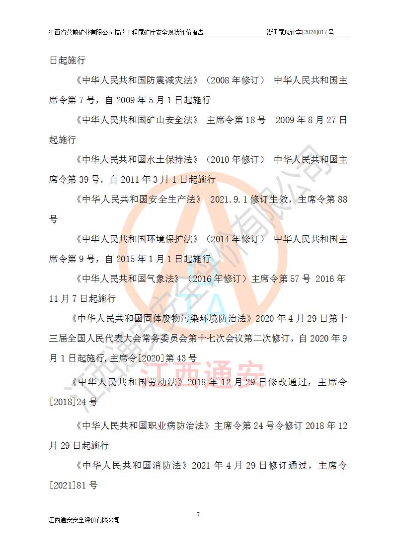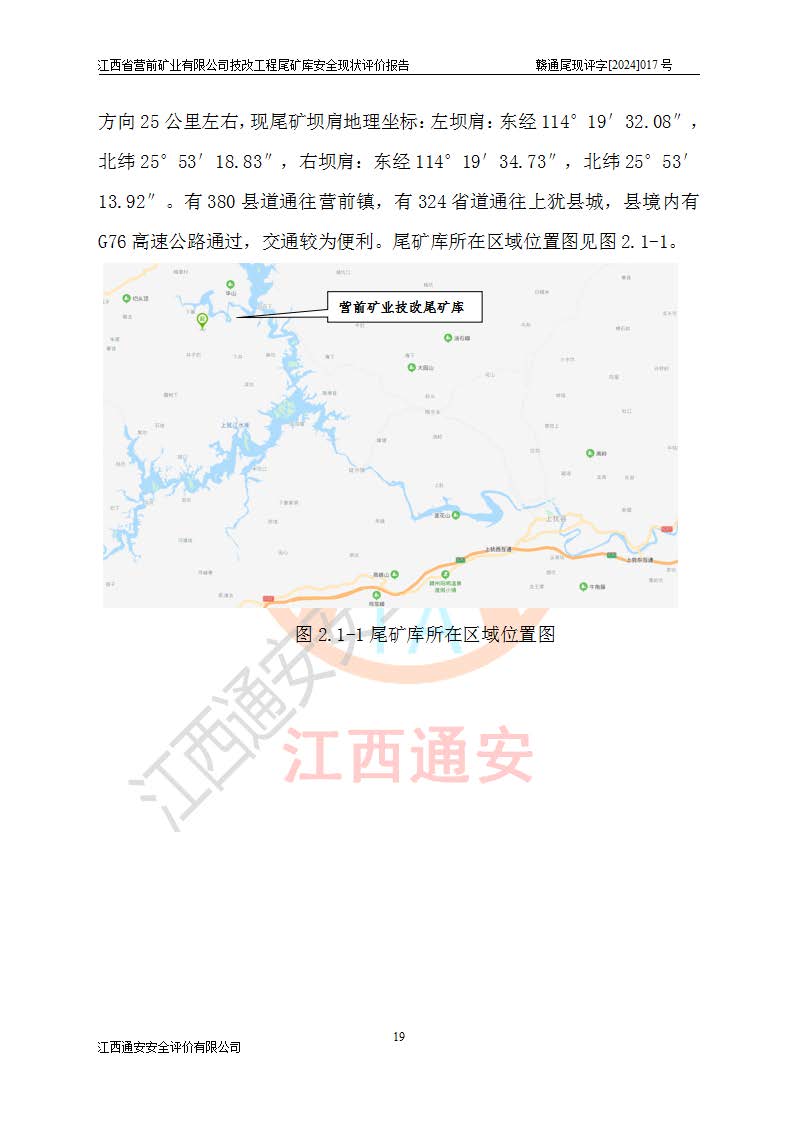 江西省營(yíng)前礦業(yè)有限公司于2003年12月16日成立,位于贛州市上猶縣營(yíng)前鎮(zhèn)焦里村境內(nèi),公司注冊(cè)資本10000萬(wàn)元,法定**人陳雅博,礦區(qū)地理坐標(biāo):東經(jīng)114°18′30″~114°19′00″,北緯25°52′35″~25°53′47″。公司經(jīng)營(yíng)范圍包括:鉛礦、鋅、鎢、銀地下開(kāi)采、銷(xiāo)售。 江西省營(yíng)前礦業(yè)有限公司技改工程尾礦庫(kù)位于焦里鎢銀鉛鋅礦區(qū),處于上猶縣水巖鄉(xiāng)井子村坑尾自然村境內(nèi),山谷型尾礦庫(kù),溝谷呈“V”字形展布,技改工程尾礦庫(kù)原由福建省冶金工業(yè)設(shè)計(jì)院設(shè)計(jì),后由金建工程設(shè)計(jì)有限公司對(duì)該尾礦庫(kù)進(jìn)行了加高擴(kuò)容設(shè)計(jì),加高擴(kuò)容后總庫(kù)容503.14萬(wàn)m3,壩高75.0m,為三等庫(kù)。尾礦庫(kù)主要由尾礦壩、庫(kù)外分洪系統(tǒng)(1#攔洪壩--1#分洪隧洞和2#攔洪壩--2#分洪隧洞--排水陡槽--消力池),庫(kù)內(nèi)排洪排水系統(tǒng)(排水斜槽—連接井—排水涵洞—排水隧洞—排水陡槽—消力池)等組成,尾礦壩壩型為初期壩+上游式堆積壩。 江西省營(yíng)前礦業(yè)有限公司技改工程尾礦庫(kù)于2021年12月30日取得江西省應(yīng)急管理廳版發(fā)的安全生產(chǎn)許可證,證書(shū)編號(hào)(贛)FM安許證字(2016)M1692號(hào),有限期從2022年1月18日到2025年1月17日,為三年期。依照《非煤礦礦山企業(yè)安全生產(chǎn)許可證延期換證工作》的通知,根據(jù)***《安全生產(chǎn)許可證條例》、《江西省安全生產(chǎn)條例》、《非煤礦山安全生產(chǎn)許可證實(shí)施辦法》、《江西省非煤礦礦山企業(yè)安全生產(chǎn)許可證辦法》規(guī)定的要求,受江西省營(yíng)前礦業(yè)有限公司委托,我公司承擔(dān)了技改工程尾礦庫(kù)延期換證安全現(xiàn)狀評(píng)價(jià)工作。 |