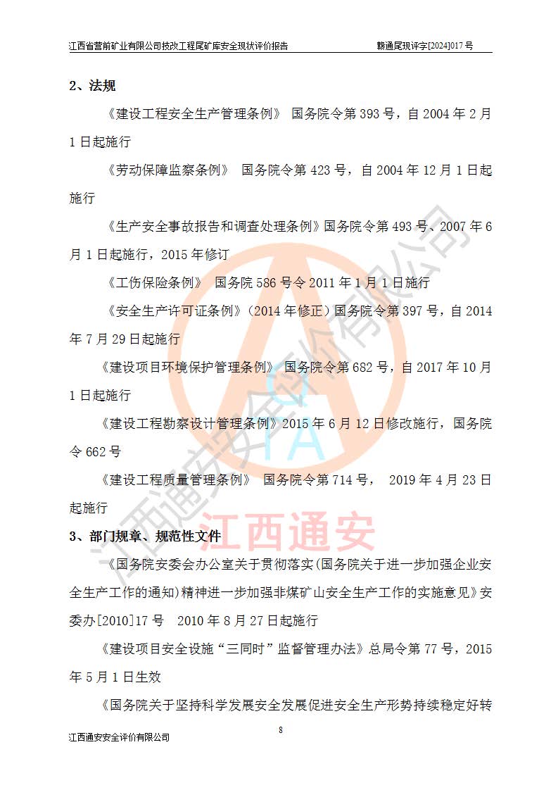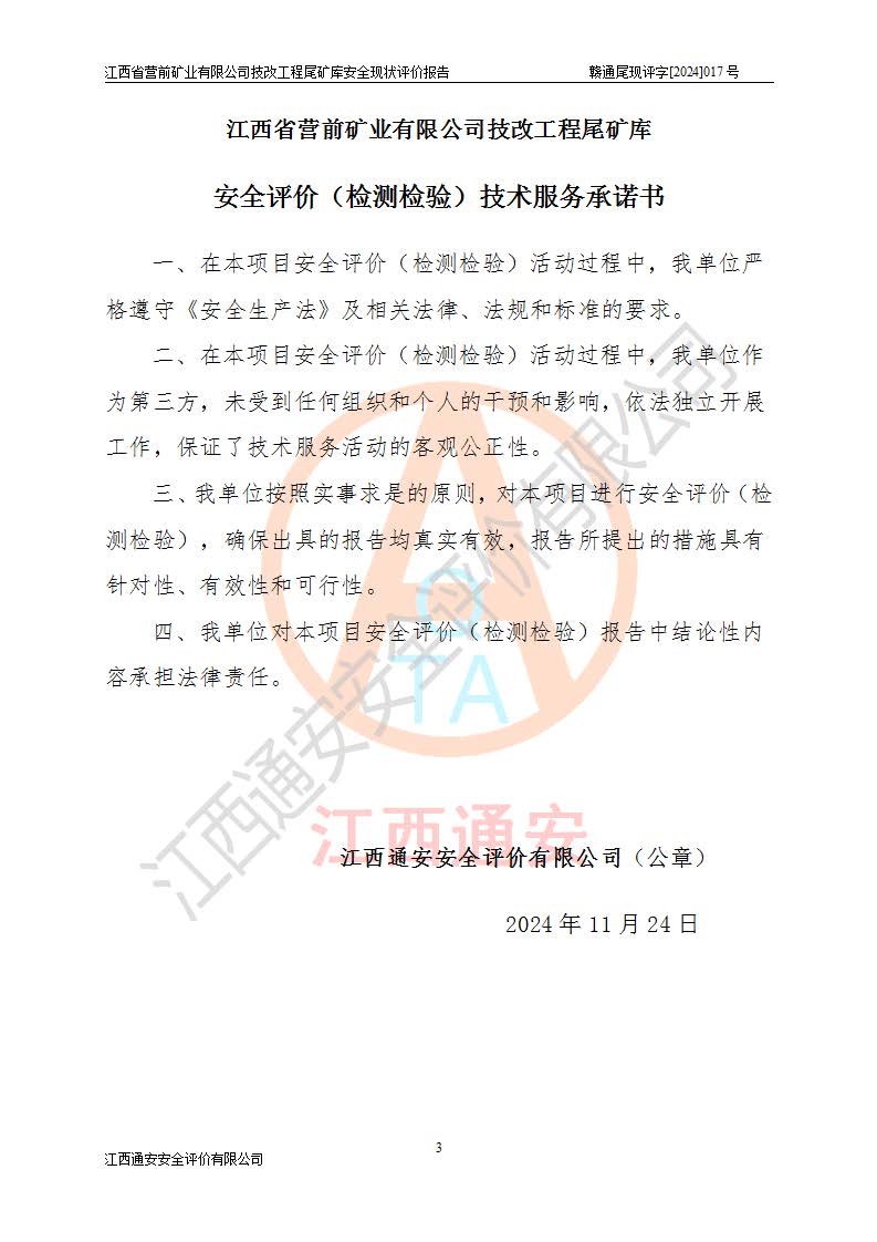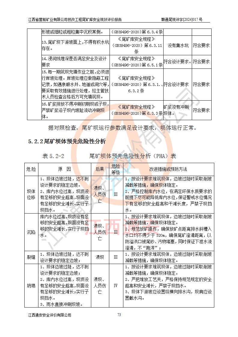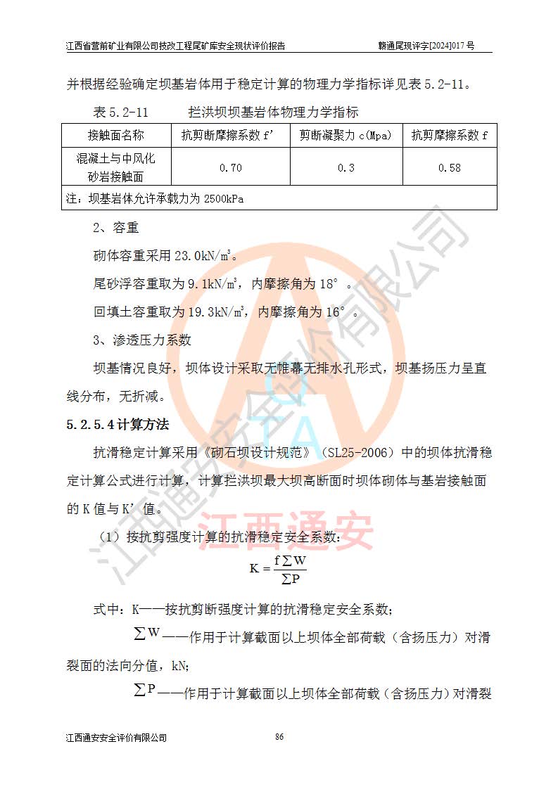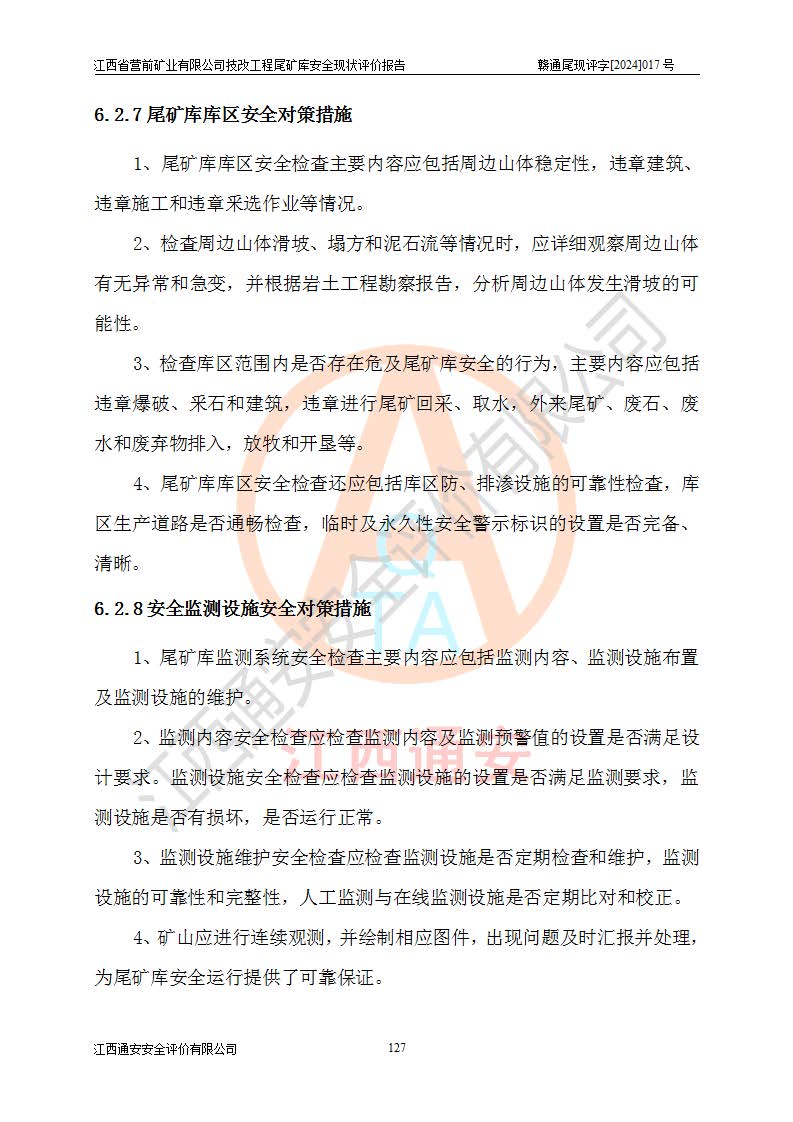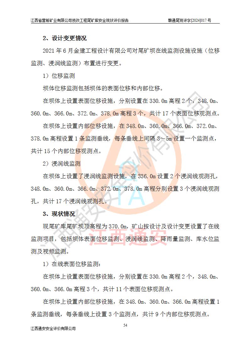 江西省營(yíng)前礦業(yè)有限公司于2003年12月16日成立,位于贛州市上猶縣營(yíng)前鎮(zhèn)焦里村境內(nèi),公司注冊(cè)資本10000萬(wàn)元,法定**人陳雅博,礦區(qū)地理坐標(biāo):東經(jīng)114°18′30″~114°19′00″,北緯25°52′35″~25°53′47″。公司經(jīng)營(yíng)范圍包括:鉛礦、鋅、鎢、銀地下開(kāi)采、銷(xiāo)售。 江西省營(yíng)前礦業(yè)有限公司技改工程尾礦庫(kù)位于焦里鎢銀鉛鋅礦區(qū),處于上猶縣水巖鄉(xiāng)井子村坑尾自然村境內(nèi),山谷型尾礦庫(kù),溝谷呈“V”字形展布,技改工程尾礦庫(kù)原由福建省冶金工業(yè)設(shè)計(jì)院設(shè)計(jì),后由金建工程設(shè)計(jì)有限公司對(duì)該尾礦庫(kù)進(jìn)行了加高擴(kuò)容設(shè)計(jì),加高擴(kuò)容后總庫(kù)容503.14萬(wàn)m3,壩高75.0m,為三等庫(kù)。尾礦庫(kù)主要由尾礦壩、庫(kù)外分洪系統(tǒng)(1#攔洪壩--1#分洪隧洞和2#攔洪壩--2#分洪隧洞--排水陡槽--消力池),庫(kù)內(nèi)排洪排水系統(tǒng)(排水斜槽—連接井—排水涵洞—排水隧洞—排水陡槽—消力池)等組成,尾礦壩壩型為初期壩+上游式堆積壩。 江西省營(yíng)前礦業(yè)有限公司技改工程尾礦庫(kù)于2021年12月30日取得江西省應(yīng)急管理廳版發(fā)的安全生產(chǎn)許可證,證書(shū)編號(hào)(贛)FM安許證字(2016)M1692號(hào),有限期從2022年1月18日到2025年1月17日,為三年期。依照《非煤礦礦山企業(yè)安全生產(chǎn)許可證延期換證工作》的通知,根據(jù)***《安全生產(chǎn)許可證條例》、《江西省安全生產(chǎn)條例》、《非煤礦山安全生產(chǎn)許可證實(shí)施辦法》、《江西省非煤礦礦山企業(yè)安全生產(chǎn)許可證辦法》規(guī)定的要求,受江西省營(yíng)前礦業(yè)有限公司委托,我公司承擔(dān)了技改工程尾礦庫(kù)延期換證安全現(xiàn)狀評(píng)價(jià)工作。 |