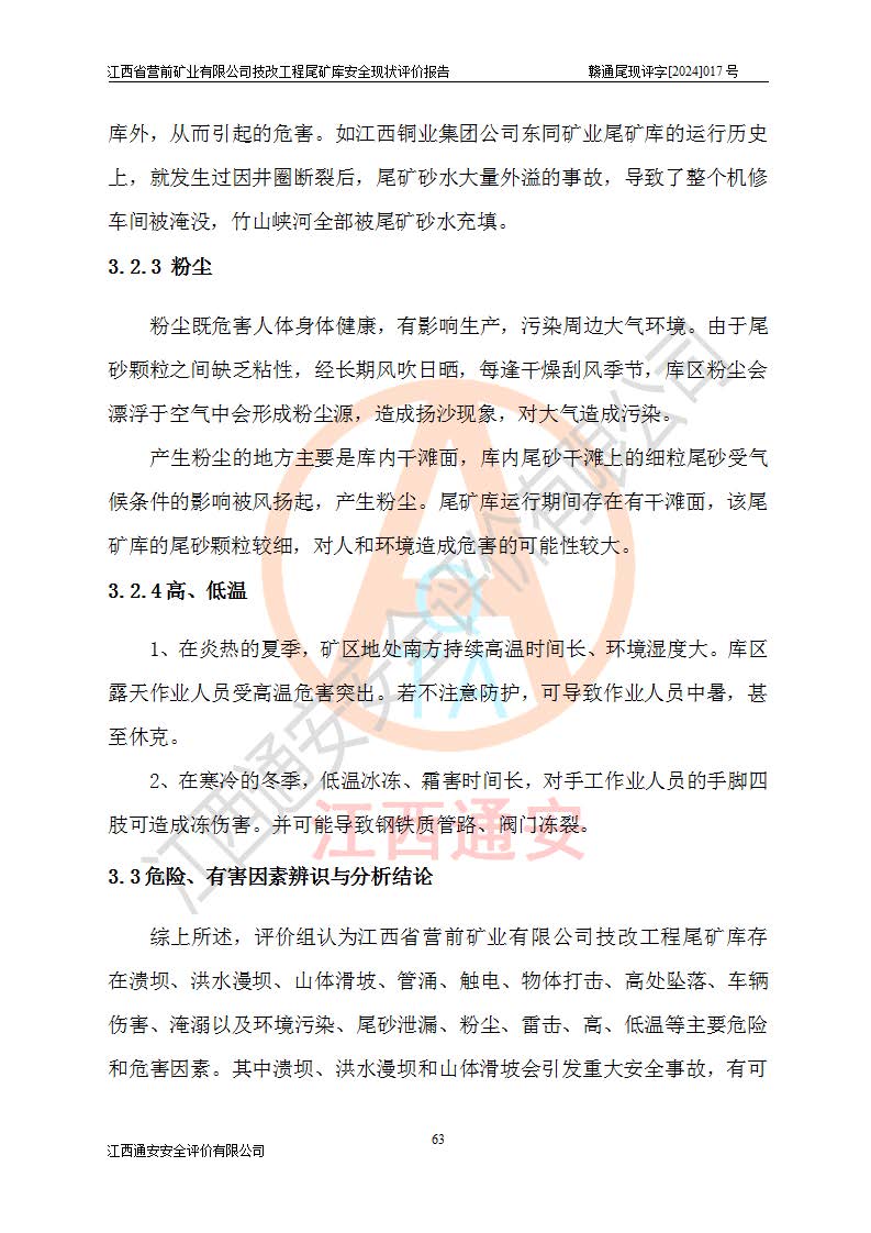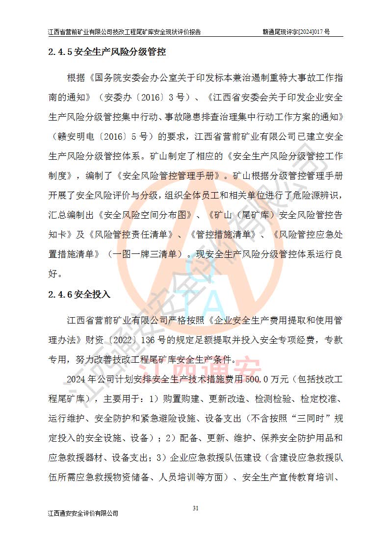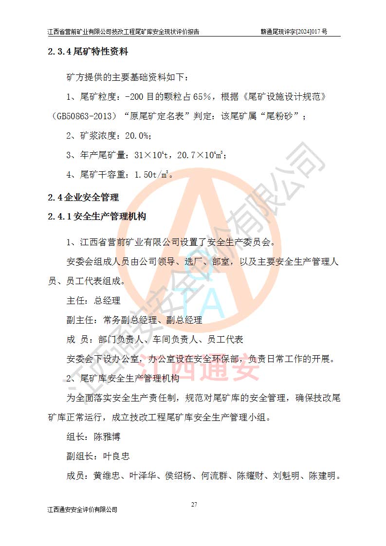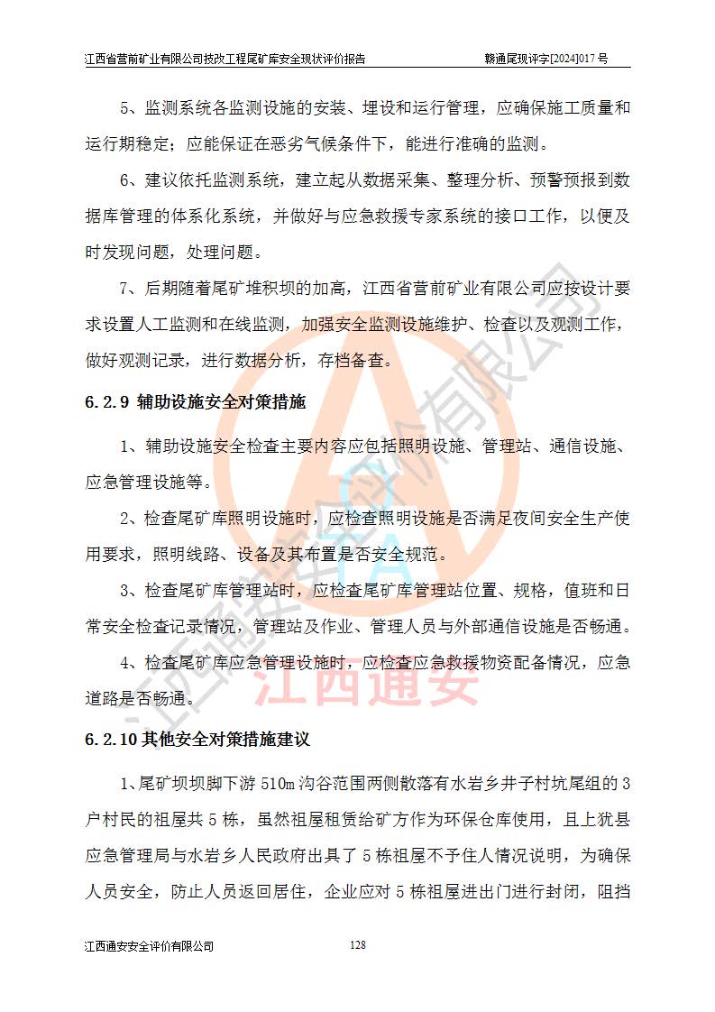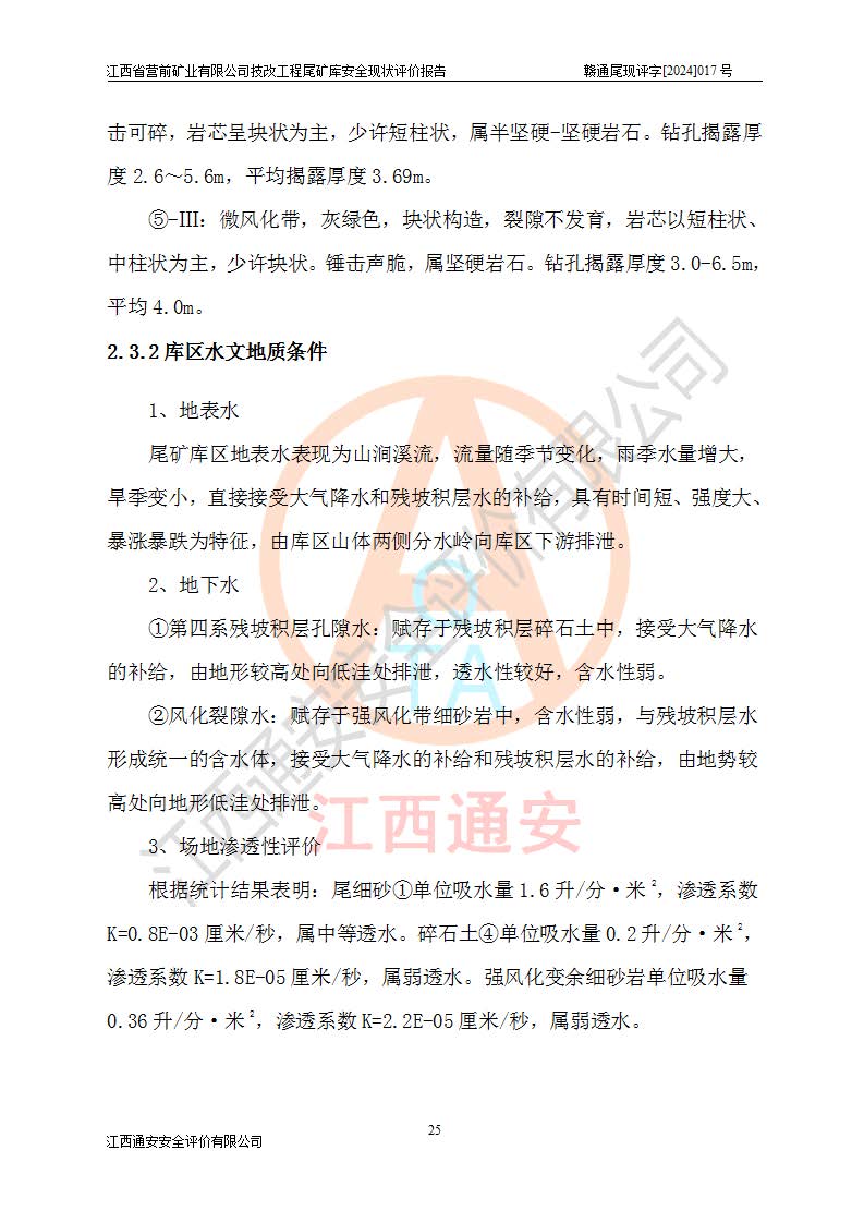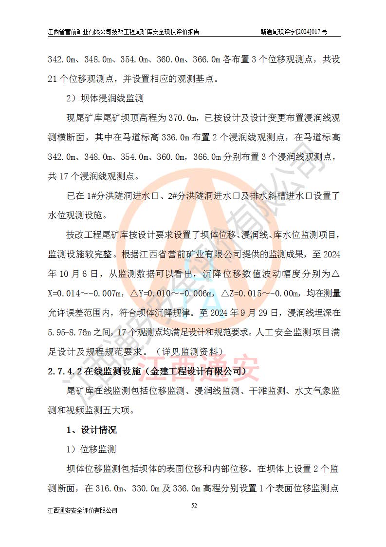 江西省營(yíng)前礦業(yè)有限公司于2003年12月16日成立,位于贛州市上猶縣營(yíng)前鎮(zhèn)焦里村境內(nèi),公司注冊(cè)資本10000萬(wàn)元,法定**人陳雅博,礦區(qū)地理坐標(biāo):東經(jīng)114°18′30″~114°19′00″,北緯25°52′35″~25°53′47″。公司經(jīng)營(yíng)范圍包括:鉛礦、鋅、鎢、銀地下開(kāi)采、銷(xiāo)售。 江西省營(yíng)前礦業(yè)有限公司技改工程尾礦庫(kù)位于焦里鎢銀鉛鋅礦區(qū),處于上猶縣水巖鄉(xiāng)井子村坑尾自然村境內(nèi),山谷型尾礦庫(kù),溝谷呈“V”字形展布,技改工程尾礦庫(kù)原由福建省冶金工業(yè)設(shè)計(jì)院設(shè)計(jì),后由金建工程設(shè)計(jì)有限公司對(duì)該尾礦庫(kù)進(jìn)行了加高擴(kuò)容設(shè)計(jì),加高擴(kuò)容后總庫(kù)容503.14萬(wàn)m3,壩高75.0m,為三等庫(kù)。尾礦庫(kù)主要由尾礦壩、庫(kù)外分洪系統(tǒng)(1#攔洪壩--1#分洪隧洞和2#攔洪壩--2#分洪隧洞--排水陡槽--消力池),庫(kù)內(nèi)排洪排水系統(tǒng)(排水斜槽—連接井—排水涵洞—排水隧洞—排水陡槽—消力池)等組成,尾礦壩壩型為初期壩+上游式堆積壩。 江西省營(yíng)前礦業(yè)有限公司技改工程尾礦庫(kù)于2021年12月30日取得江西省應(yīng)急管理廳版發(fā)的安全生產(chǎn)許可證,證書(shū)編號(hào)(贛)FM安許證字(2016)M1692號(hào),有限期從2022年1月18日到2025年1月17日,為三年期。依照《非煤礦礦山企業(yè)安全生產(chǎn)許可證延期換證工作》的通知,根據(jù)***《安全生產(chǎn)許可證條例》、《江西省安全生產(chǎn)條例》、《非煤礦山安全生產(chǎn)許可證實(shí)施辦法》、《江西省非煤礦礦山企業(yè)安全生產(chǎn)許可證辦法》規(guī)定的要求,受江西省營(yíng)前礦業(yè)有限公司委托,我公司承擔(dān)了技改工程尾礦庫(kù)延期換證安全現(xiàn)狀評(píng)價(jià)工作。 |