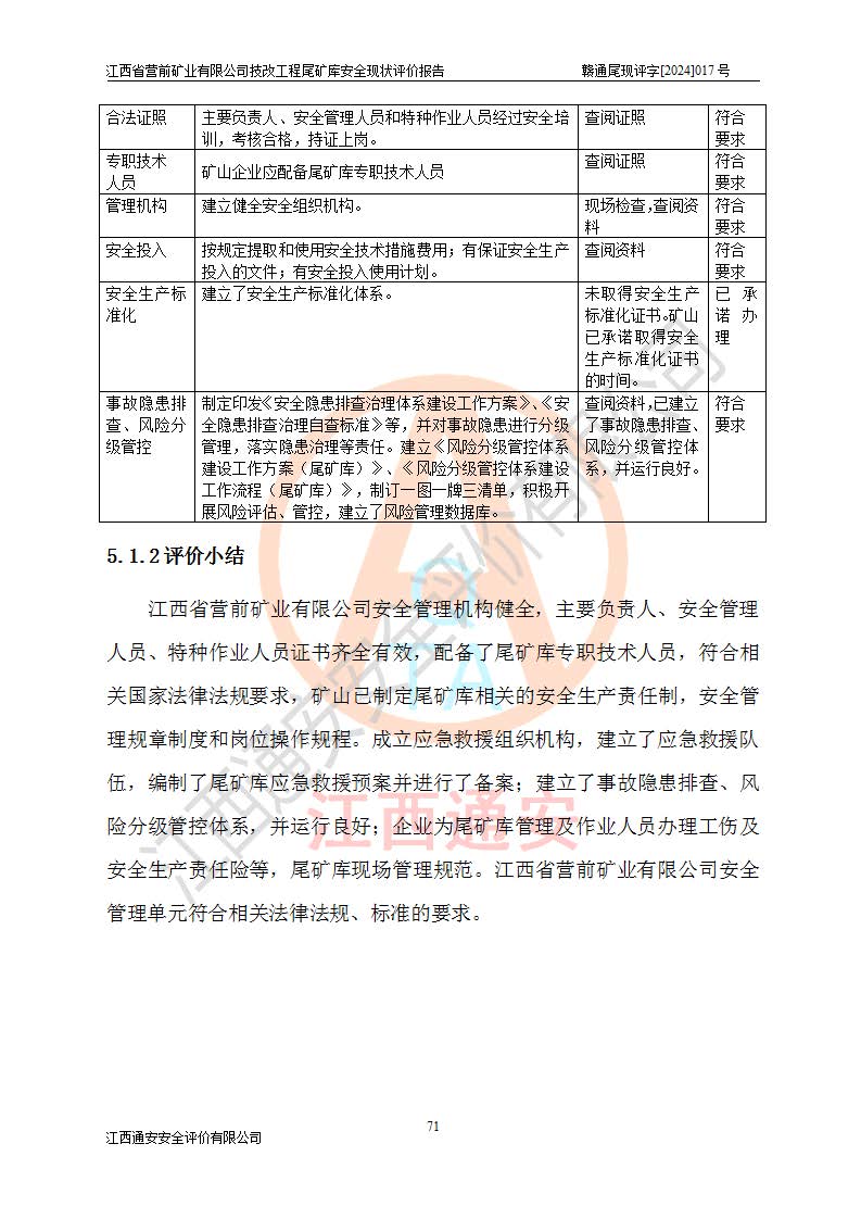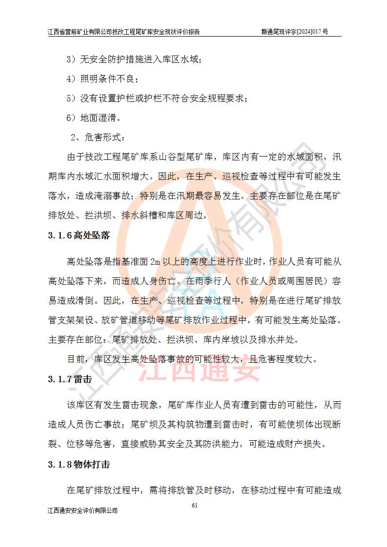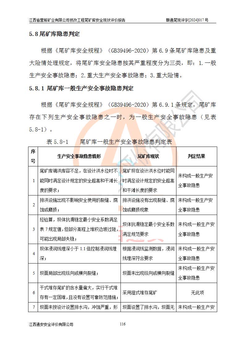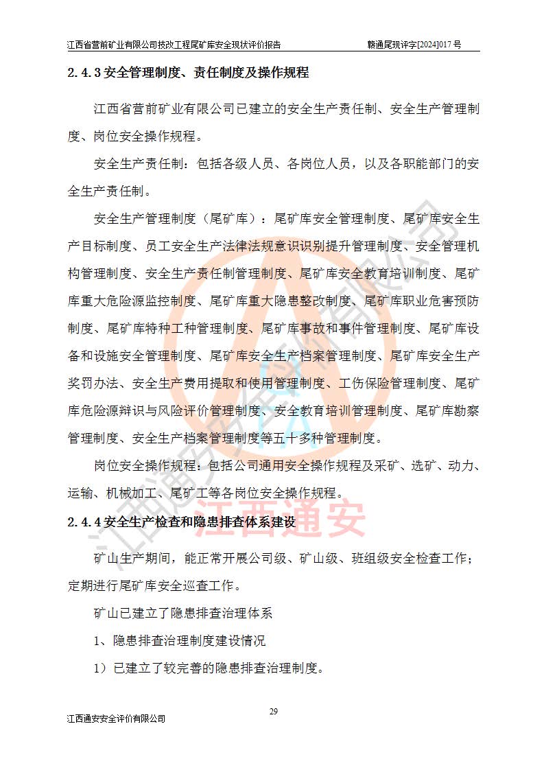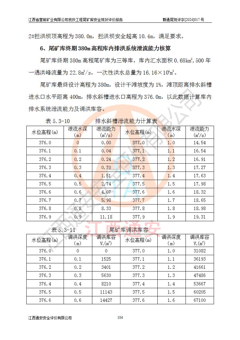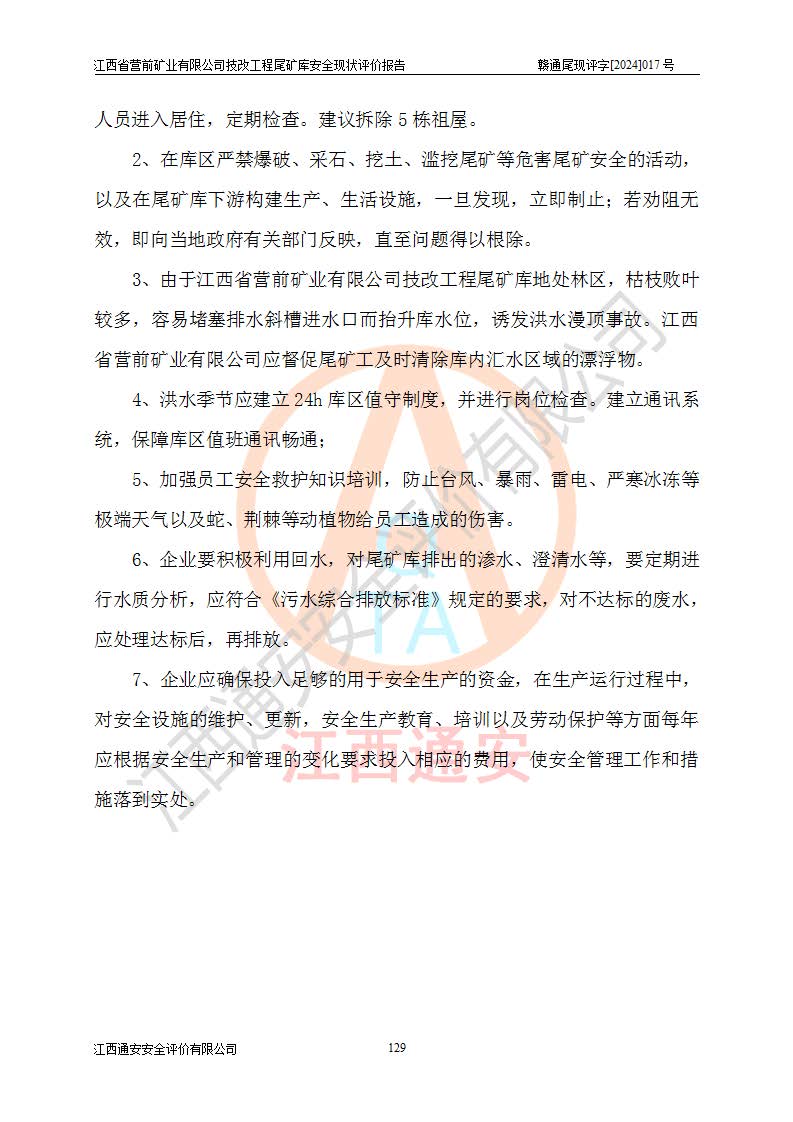 江西省營(yíng)前礦業(yè)有限公司于2003年12月16日成立,位于贛州市上猶縣營(yíng)前鎮(zhèn)焦里村境內(nèi),公司注冊(cè)資本10000萬(wàn)元,法定**人陳雅博,礦區(qū)地理坐標(biāo):東經(jīng)114°18′30″~114°19′00″,北緯25°52′35″~25°53′47″。公司經(jīng)營(yíng)范圍包括:鉛礦、鋅、鎢、銀地下開(kāi)采、銷(xiāo)售。 江西省營(yíng)前礦業(yè)有限公司技改工程尾礦庫(kù)位于焦里鎢銀鉛鋅礦區(qū),處于上猶縣水巖鄉(xiāng)井子村坑尾自然村境內(nèi),山谷型尾礦庫(kù),溝谷呈“V”字形展布,技改工程尾礦庫(kù)原由福建省冶金工業(yè)設(shè)計(jì)院設(shè)計(jì),后由金建工程設(shè)計(jì)有限公司對(duì)該尾礦庫(kù)進(jìn)行了加高擴(kuò)容設(shè)計(jì),加高擴(kuò)容后總庫(kù)容503.14萬(wàn)m3,壩高75.0m,為三等庫(kù)。尾礦庫(kù)主要由尾礦壩、庫(kù)外分洪系統(tǒng)(1#攔洪壩--1#分洪隧洞和2#攔洪壩--2#分洪隧洞--排水陡槽--消力池),庫(kù)內(nèi)排洪排水系統(tǒng)(排水斜槽—連接井—排水涵洞—排水隧洞—排水陡槽—消力池)等組成,尾礦壩壩型為初期壩+上游式堆積壩。 江西省營(yíng)前礦業(yè)有限公司技改工程尾礦庫(kù)于2021年12月30日取得江西省應(yīng)急管理廳版發(fā)的安全生產(chǎn)許可證,證書(shū)編號(hào)(贛)FM安許證字(2016)M1692號(hào),有限期從2022年1月18日到2025年1月17日,為三年期。依照《非煤礦礦山企業(yè)安全生產(chǎn)許可證延期換證工作》的通知,根據(jù)***《安全生產(chǎn)許可證條例》、《江西省安全生產(chǎn)條例》、《非煤礦山安全生產(chǎn)許可證實(shí)施辦法》、《江西省非煤礦礦山企業(yè)安全生產(chǎn)許可證辦法》規(guī)定的要求,受江西省營(yíng)前礦業(yè)有限公司委托,我公司承擔(dān)了技改工程尾礦庫(kù)延期換證安全現(xiàn)狀評(píng)價(jià)工作。 |