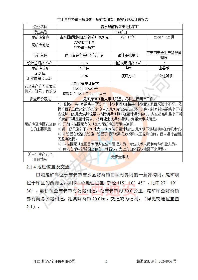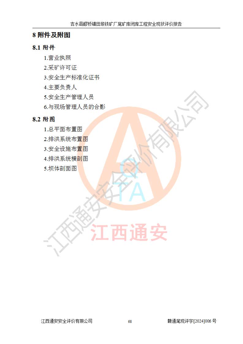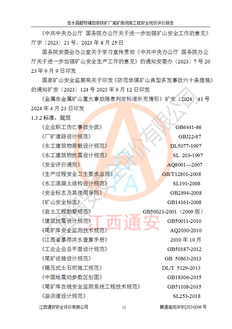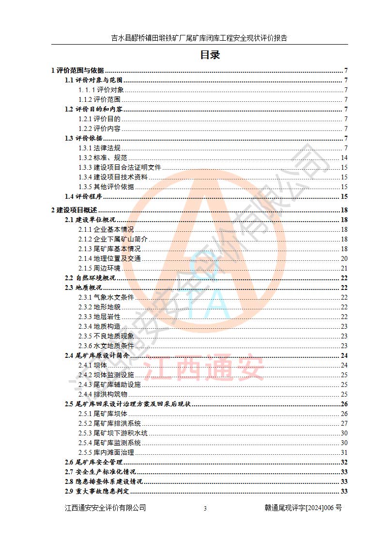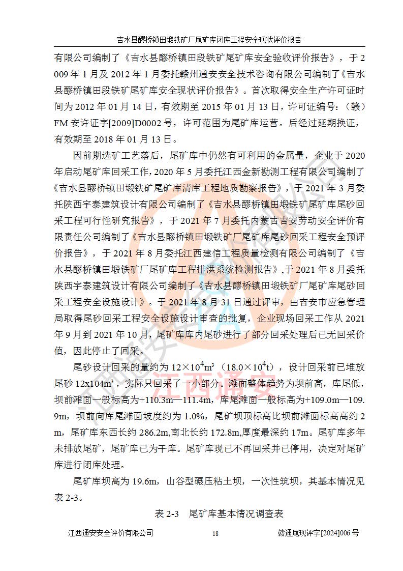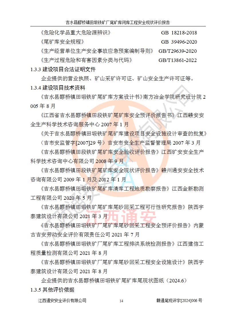 報(bào)告名稱 | 吉水縣醪橋鎮(zhèn)田塅鐵礦廠尾礦庫閉庫工程安全現(xiàn)狀評(píng)價(jià)報(bào)告 | ||||||
