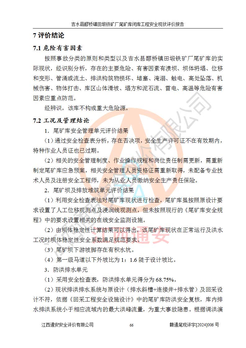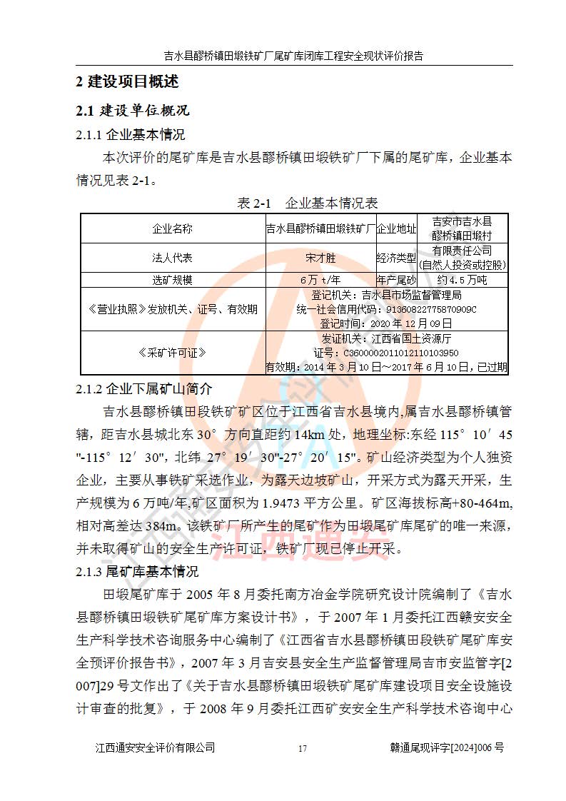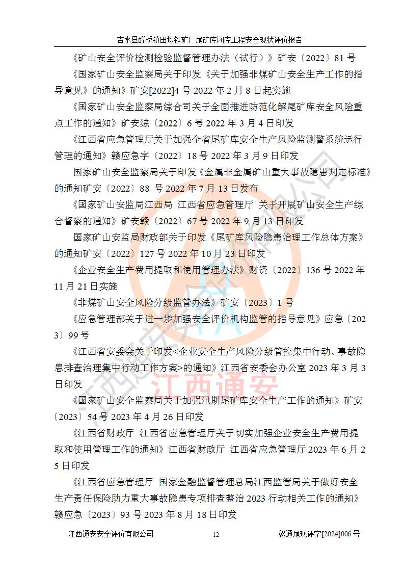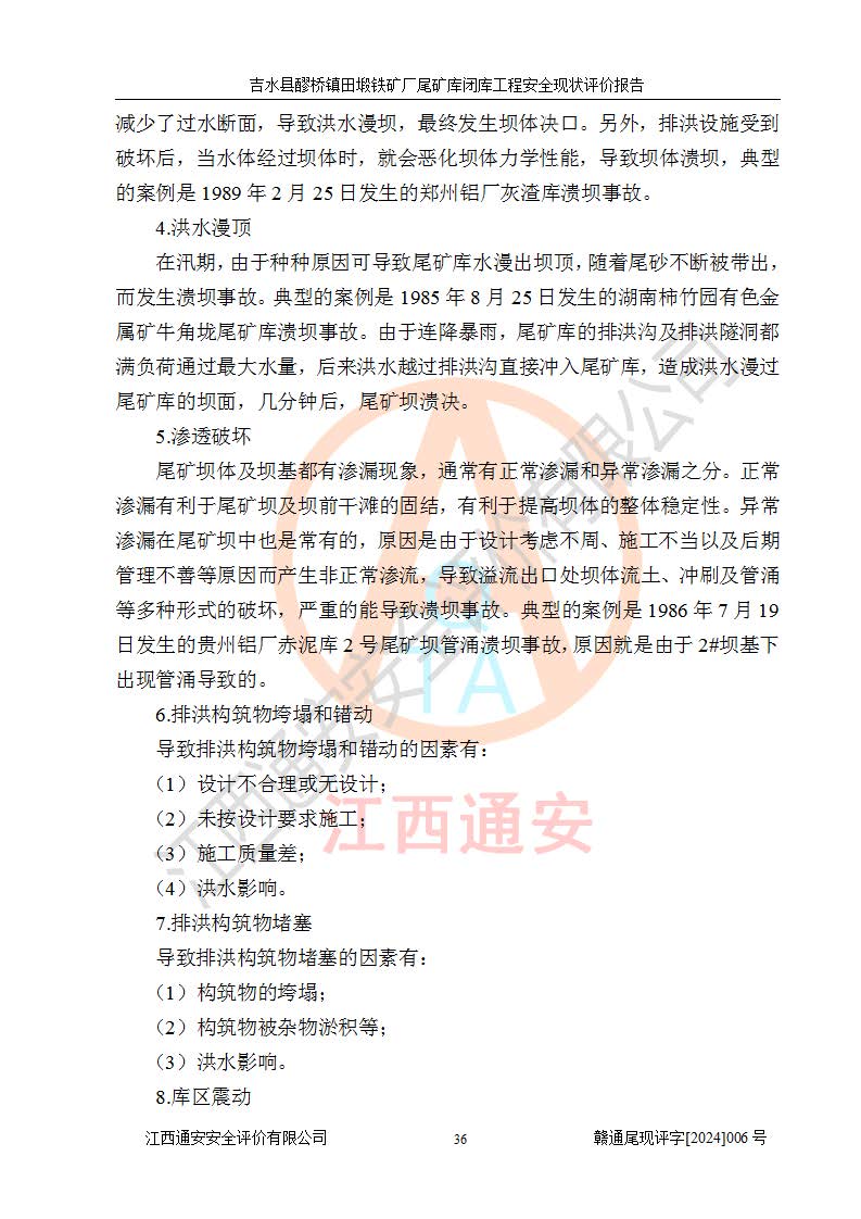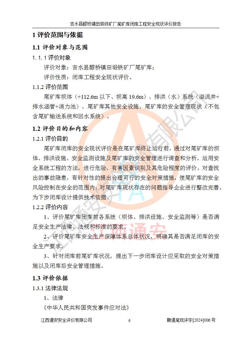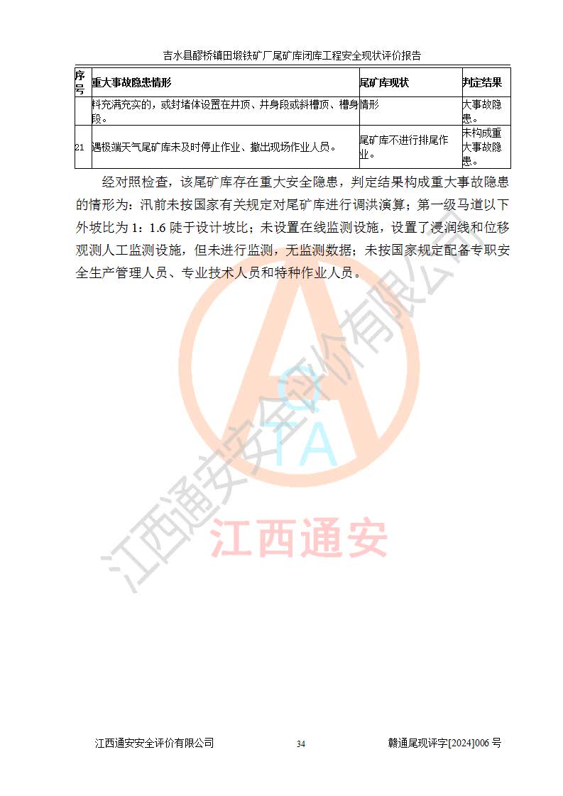 報(bào)告名稱 | 吉水縣醪橋鎮(zhèn)田塅鐵礦廠尾礦庫閉庫工程安全現(xiàn)狀評(píng)價(jià)報(bào)告 | ||||||
