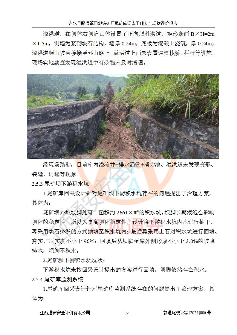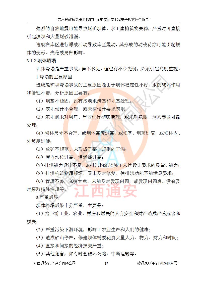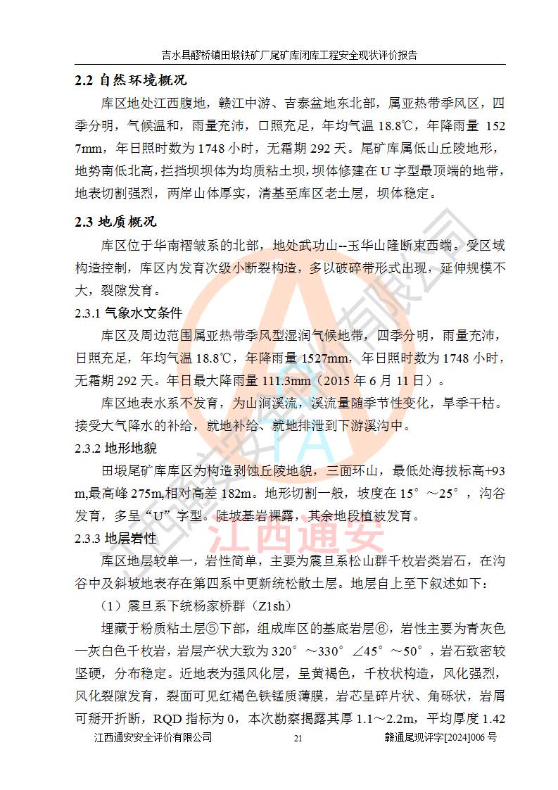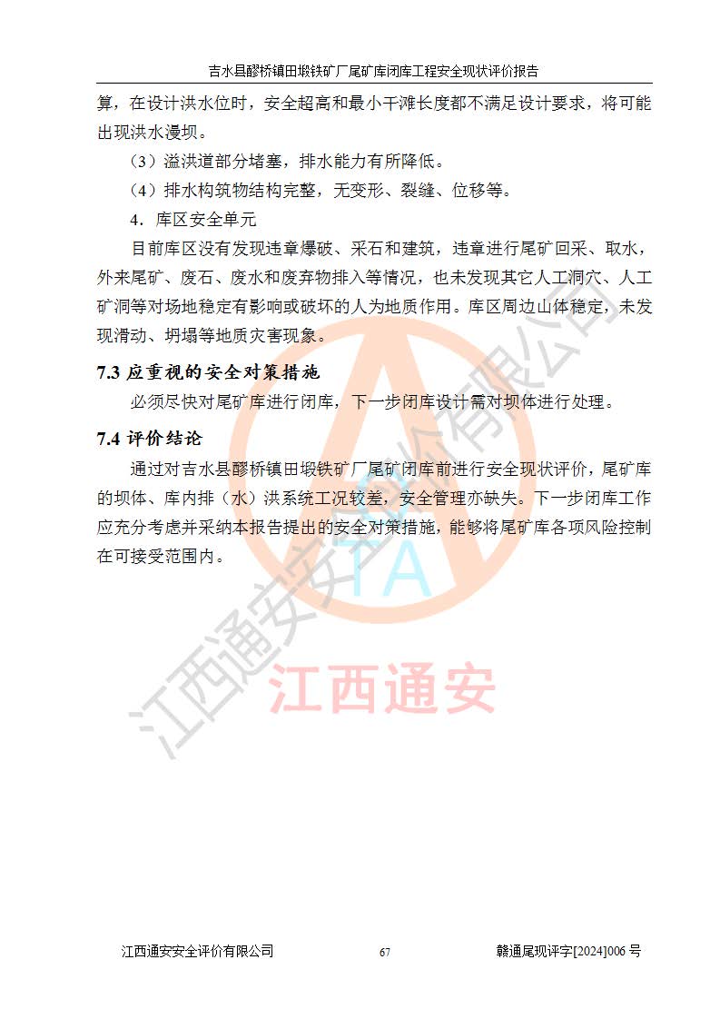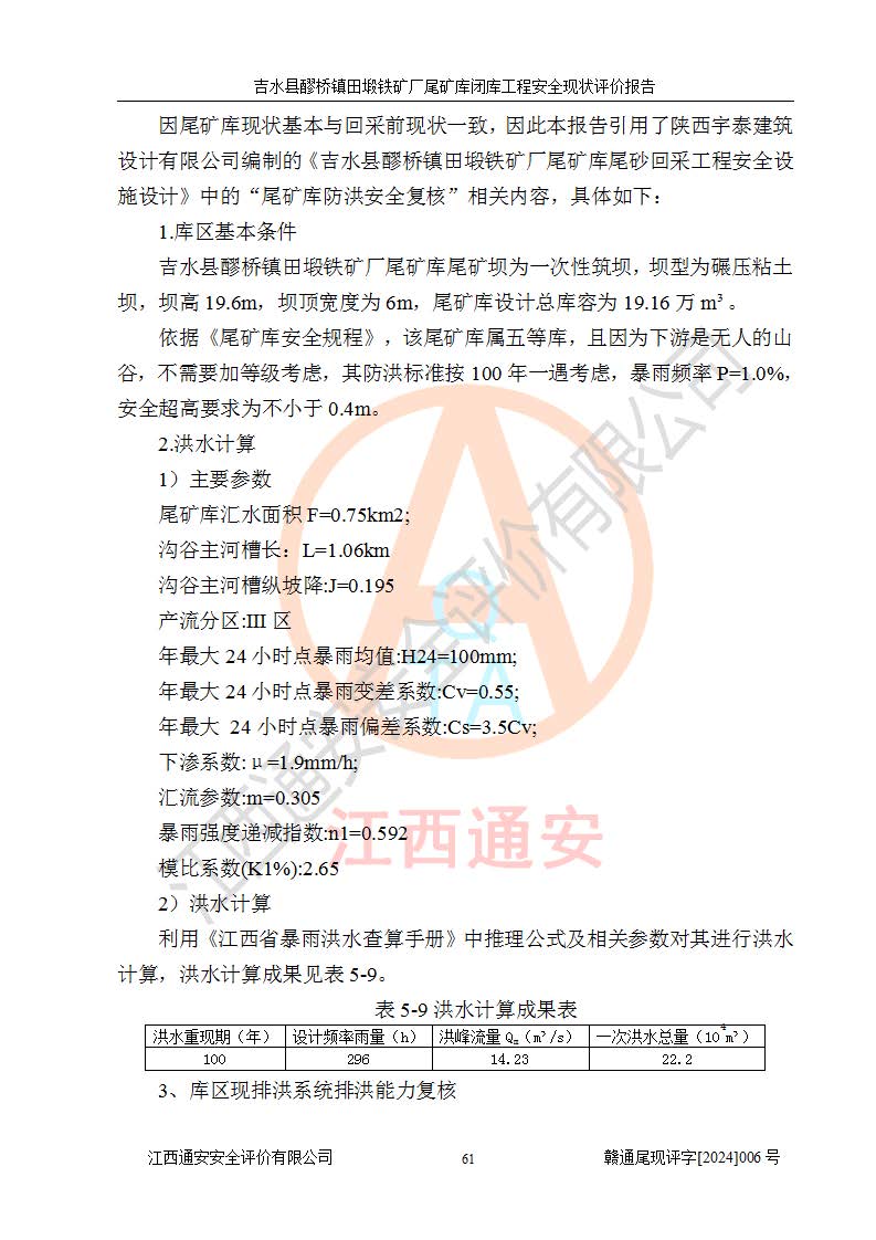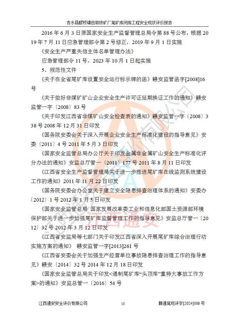 報(bào)告名稱 | 吉水縣醪橋鎮(zhèn)田塅鐵礦廠尾礦庫閉庫工程安全現(xiàn)狀評(píng)價(jià)報(bào)告 | ||||||