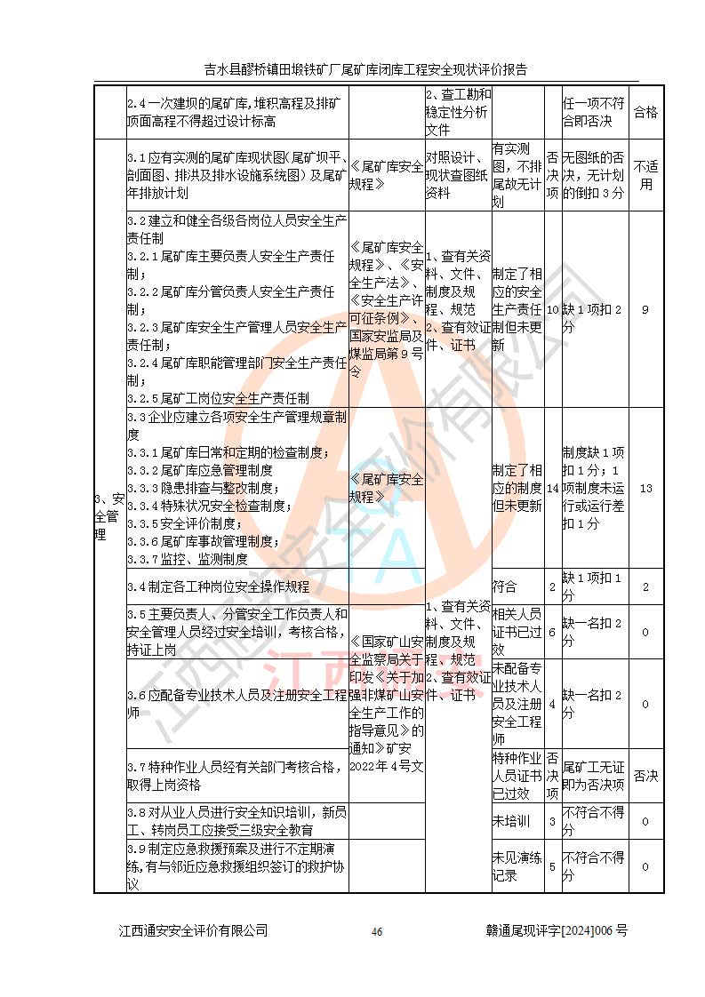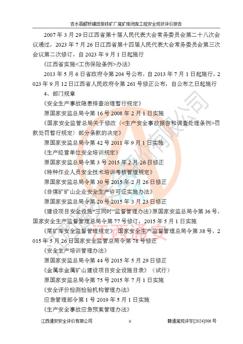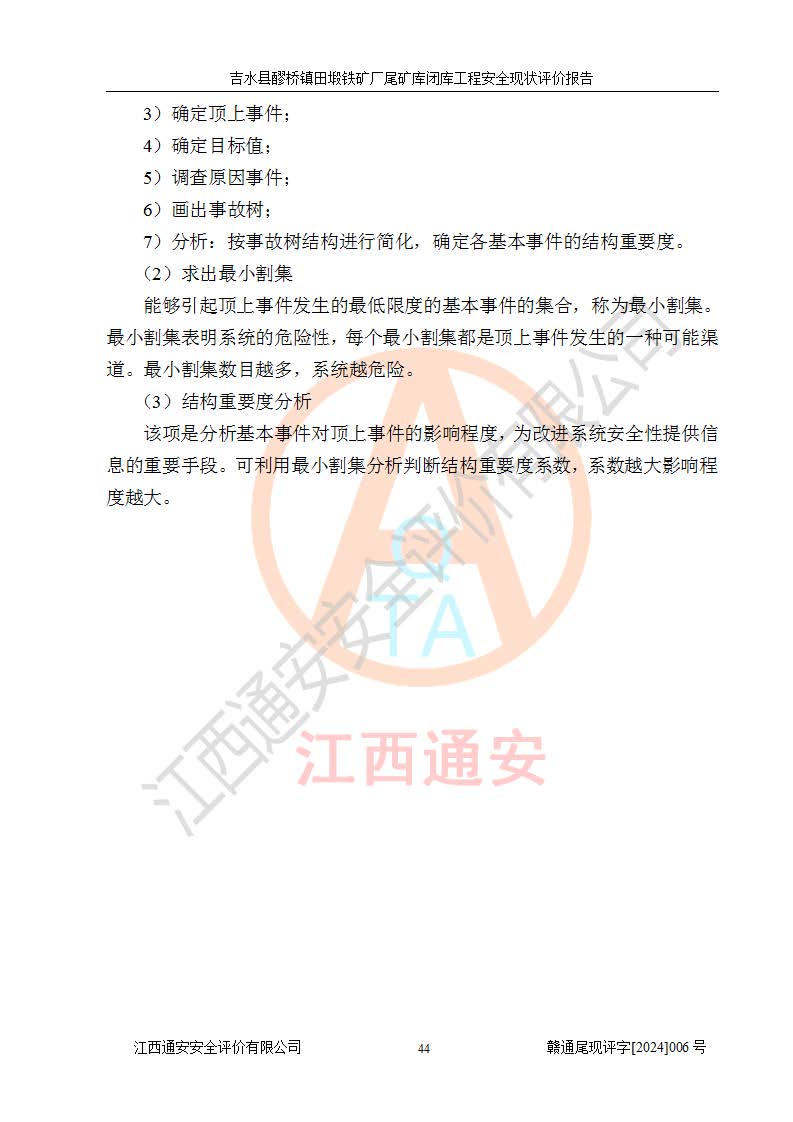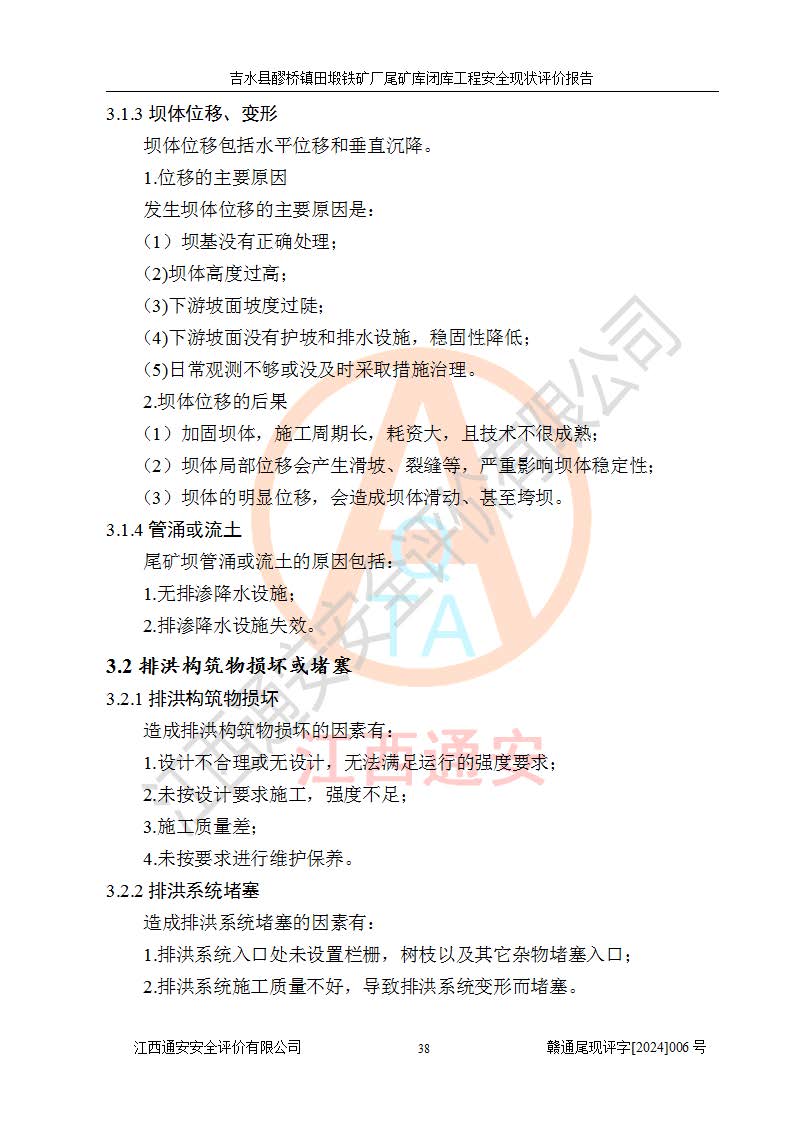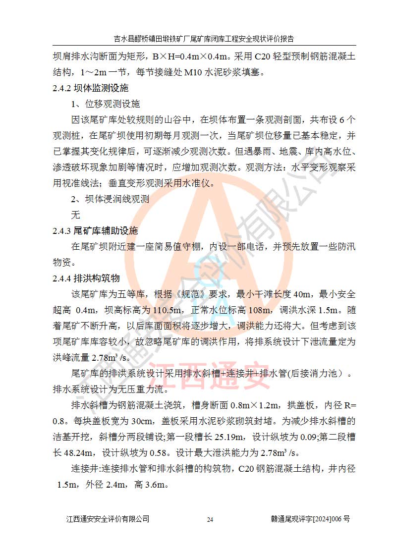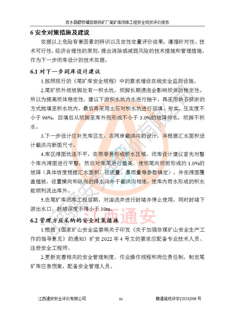 報(bào)告名稱 | 吉水縣醪橋鎮(zhèn)田塅鐵礦廠尾礦庫閉庫工程安全現(xiàn)狀評(píng)價(jià)報(bào)告 | ||||||