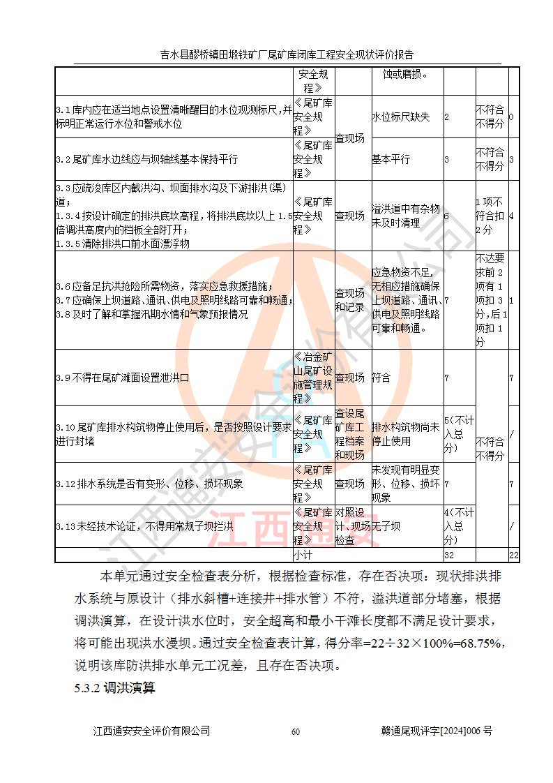 汛前未按**有關(guān)規(guī)定對(duì)尾礦庫進(jìn)行調(diào)洪演算。 | 進(jìn)行調(diào)洪演算 | ||||||