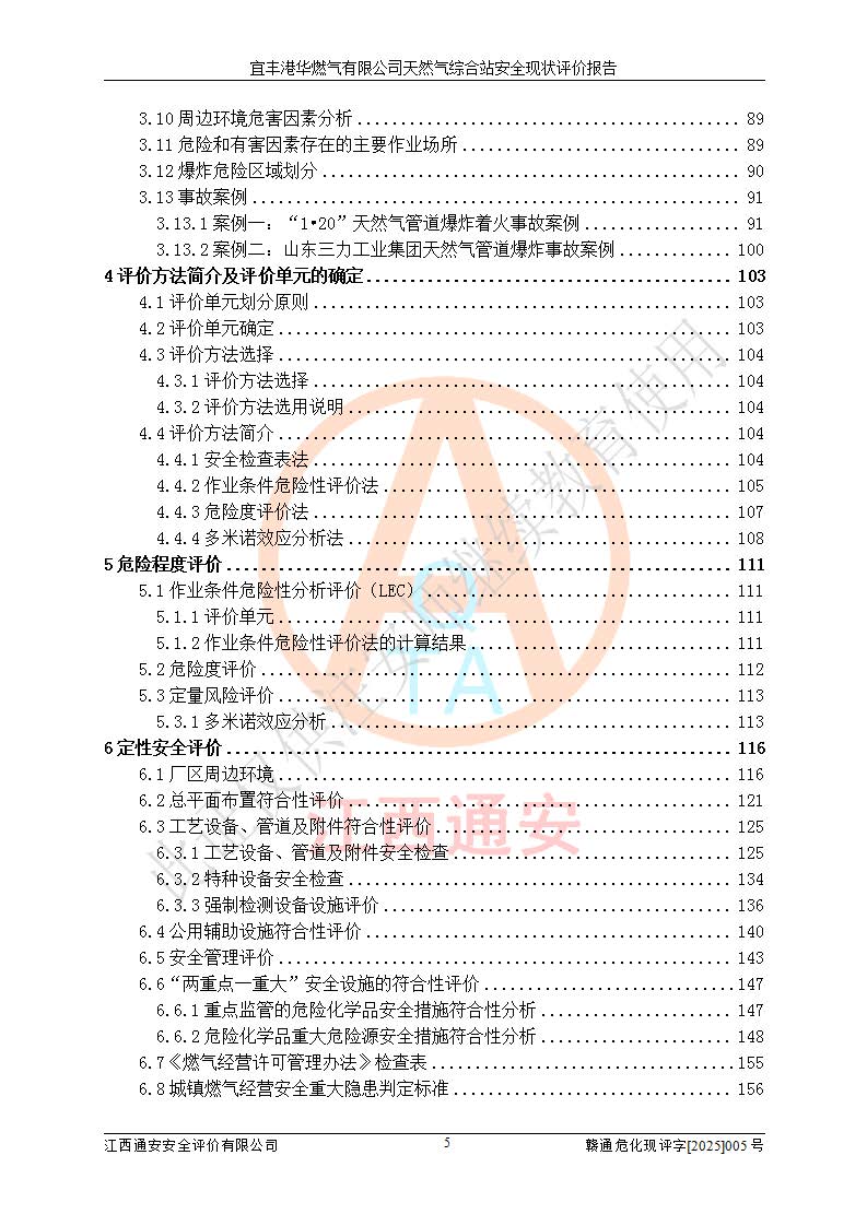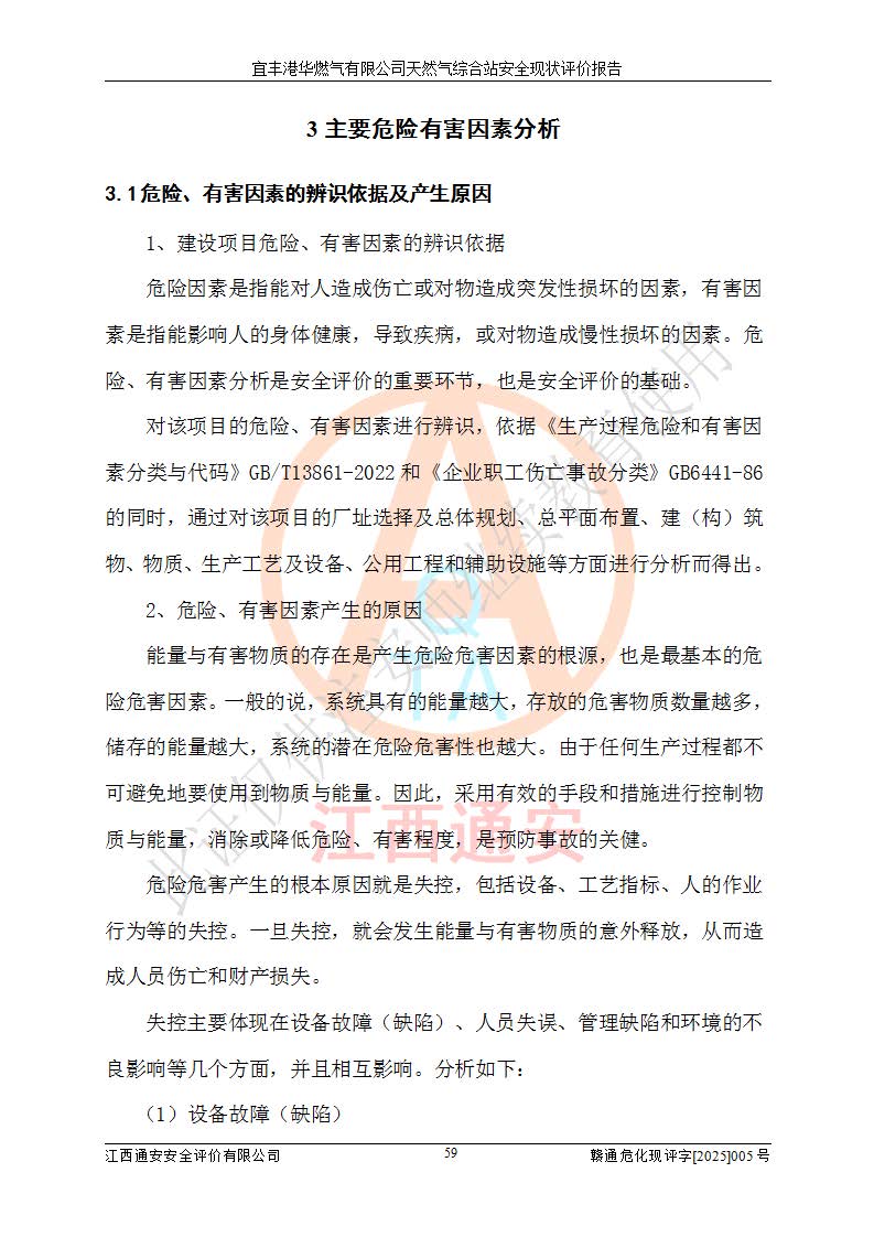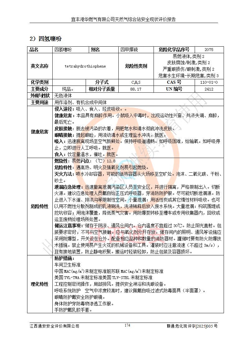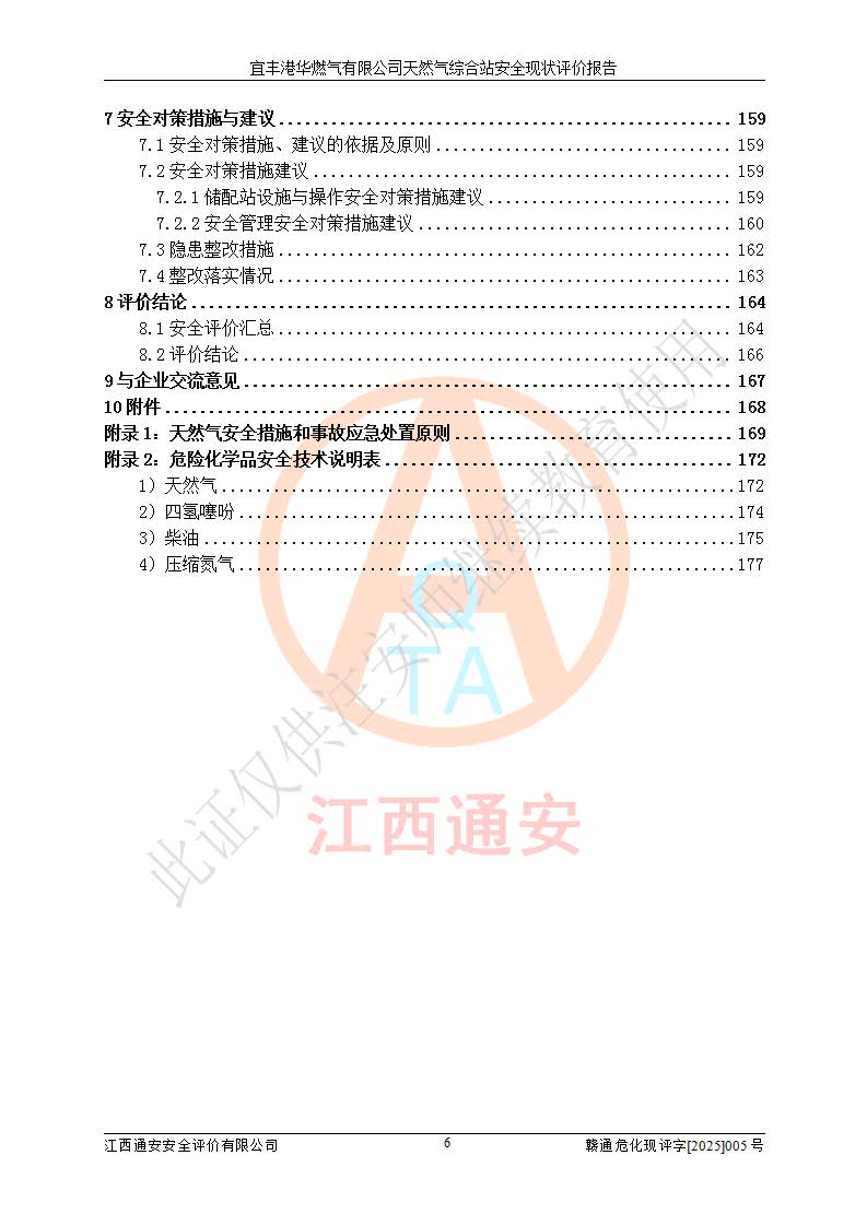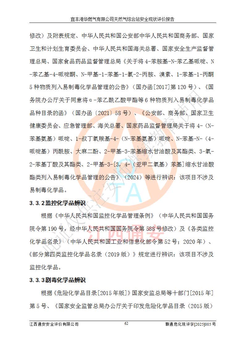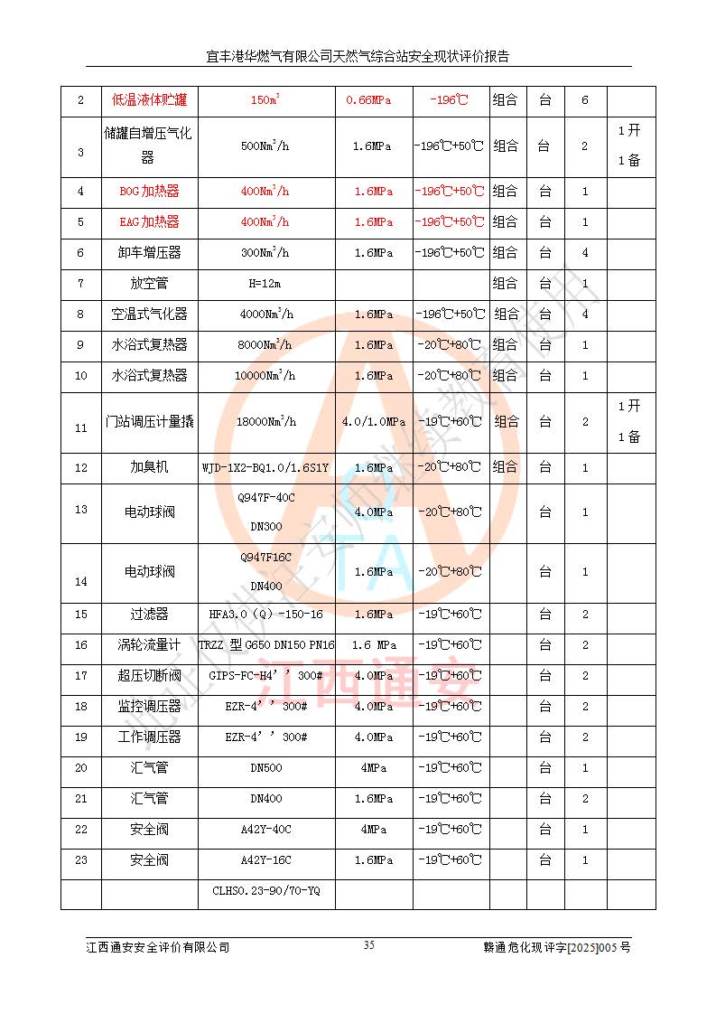 1、主要危險、危害因素辨識結(jié)果 宜豐港華燃氣有限公司天然氣綜合站在生產(chǎn)經(jīng)營過程中存在的主要危險有:火災(zāi)與爆炸、中毒窒息、觸電、機械傷害、物體打擊、**傷害、高處墜落、灼燙、低溫凍傷、容器爆炸、淹溺等,存在的主要危害因素有:化學(xué)因素、物理因素(噪聲、高溫等)等,同時存在人為失誤和管理缺陷。應(yīng)重點防范的主要危險為火災(zāi)與爆炸、容器爆炸。 2、危險化學(xué)品辨識結(jié)果 經(jīng)辨識,該儲配站涉及的天然氣、四氫噻吩及柴油屬于危險化學(xué)品,天然氣屬于重點監(jiān)管的危險化學(xué)品和特別管控危險化學(xué)品,不涉及監(jiān)控化學(xué)品、易制毒化學(xué)品、易制爆危險化學(xué)品、劇毒化學(xué)品和高毒物品等危險化學(xué)品。 3、危險化學(xué)品重大危險源辨識結(jié)果 根據(jù)《危險化學(xué)品重大危險源辨識》(GB18218-2018)和《危險化學(xué)品重大危險源監(jiān)督管理暫行規(guī)定》(2011)(40號令)(2015年 **安監(jiān)總局令第79號修訂)得出結(jié)論如下:該公司LNG儲罐區(qū)構(gòu)成三級重大危險源,其余生產(chǎn)單元及儲存單元不構(gòu)成危險化學(xué)品重大危險源。 4、重點監(jiān)管危險化工工藝辨識結(jié)果 根據(jù)《**安全監(jiān)管總局關(guān)于公布首批重點監(jiān)管的危險化學(xué)品名錄的通知》安監(jiān)總管三[2011]95號、《**安全監(jiān)管總局關(guān)于公布第二批重點監(jiān)管危險化學(xué)品名錄的通知》安監(jiān)總管三[2013]12號進行辨識,該天然氣儲配站不涉及重點監(jiān)管的危險化工工藝。 5、作業(yè)條件危險性分析結(jié)果: 液化天然氣的儲罐區(qū)、調(diào)壓計量氣化加臭區(qū)、卸車區(qū)、變配電、廠內(nèi)運輸、消防水池作業(yè)等單元。等單元危險程度均為“一般危險,需要注意”或“稍有危險,可以接受”級別。作業(yè)條件相對安全。 6、危險度評價結(jié)果:工藝裝置區(qū)等級為Ⅱ級,危險程度為中度危險。LNG儲罐區(qū)等級為Ⅰ級,危險程度為**危險。 7、事故后果預(yù)測結(jié)果:本報告采用中國安全生產(chǎn)科學(xué)研究院研發(fā)的重大危險源區(qū)域定量風(fēng)險評價(CASST-QRA)軟件對可能發(fā)生的危險化學(xué)品事故進行預(yù)測,宜豐港華燃氣有限公司天然氣綜合站LNG儲罐容器整體破裂,發(fā)生BLEVE災(zāi)害模式后果*大,*大死亡半徑為181m,重傷半徑為243m,輕傷半徑為448m。 8、多米諾效應(yīng)分析結(jié)果:該公司LNG儲罐發(fā)生容器整體破裂引發(fā)的BLEVE事故的多米諾半徑*大,為141m。 9、采用安全檢查表評價法對該儲配站周邊環(huán)境、總平面布置、站內(nèi)建構(gòu)筑物防火間距、站內(nèi)交通、LNG卸車、儲罐、氣化裝置、加臭裝置、調(diào)壓裝置、安全附件、工藝設(shè)備、管道、自動化控制等供配電、給排水、消防設(shè)施、供熱裝置、安全管理、“兩重點一重大”安全措施及安全管理進行定性評價,不符合項共2項,其他均符合**法律、法規(guī)、標準、規(guī)范的要求。 (1)企業(yè)對不符合項整改完成后,安全條件符合燃氣儲存經(jīng)營的安全要求。 (2)該儲配站涉及“兩重點一重大”,采取了首批重點監(jiān)管的危險化學(xué)品安全措施和應(yīng)急處置措施,站內(nèi)LNG罐區(qū)構(gòu)成三級重大危險源,采取的重大危險源安全技術(shù)和監(jiān)控措施符合相關(guān)要求。 (3)根據(jù)《燃氣經(jīng)營許可管理辦法》(建城〔2014〕167號發(fā)布,建城規(guī)〔2019〕2號修改)制成安全檢查表對該單位的經(jīng)營條件逐一檢查,檢查結(jié)果符合要求。 (4)根據(jù)《住房城鄉(xiāng)建設(shè)部關(guān)于印發(fā)《城鎮(zhèn)燃氣經(jīng)營安全重大隱患判定標準》的通知》(建城規(guī)[2023]4號)要求,對該項目重大隱患情況進行檢查,該站LNG罐完成整改后不涉及重大隱患。 評價結(jié)論 綜上所述,宜豐港華燃氣有限公司天然氣綜合站選址和總平面布置合理,建構(gòu)筑物間的防火間距、耐火等級等符合標準規(guī)范的要求,LNG卸車、儲存、加臭、氣化調(diào)壓計量等裝置采用成熟的工藝和設(shè)備,本質(zhì)安全程度較高;公司制定了安全管理制度和操作規(guī)程,人員經(jīng)培訓(xùn)合格后上崗,主要負責(zé)人、安全管理人員及特種作業(yè)人員均取得了相應(yīng)的考核合格資格證書,能按照法律法規(guī)要求開展安全生產(chǎn)管理工作。公司對現(xiàn)場存在事故危險的設(shè)施和場所采取了合理可行的防護措施和科學(xué)的管理,使生產(chǎn)過程中的危險有害因素能得到**控制。該項目安全設(shè)施符合**現(xiàn)行有關(guān)法律、法規(guī)、標準的要求。企業(yè)對現(xiàn)場存在的安全問題進行了整改,主要的安全缺陷消除。 綜合結(jié)論:宜豐港華燃氣有限公司天然氣綜合站的安全條件符合燃氣安全運行要求。 |