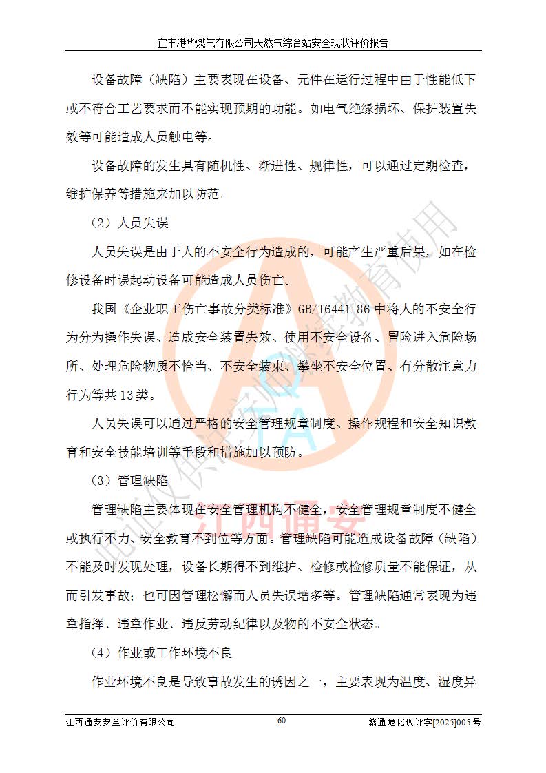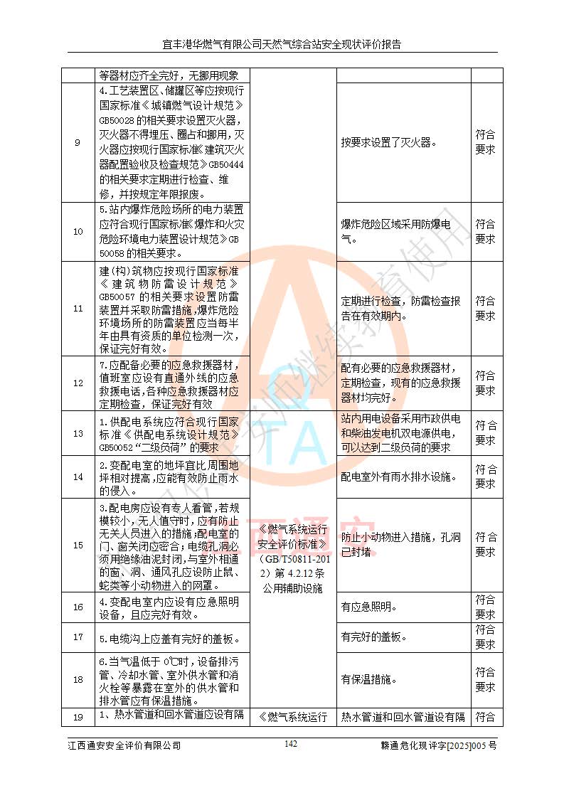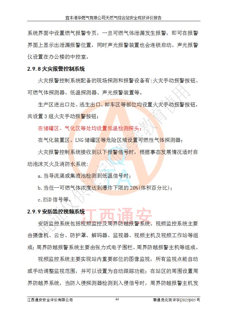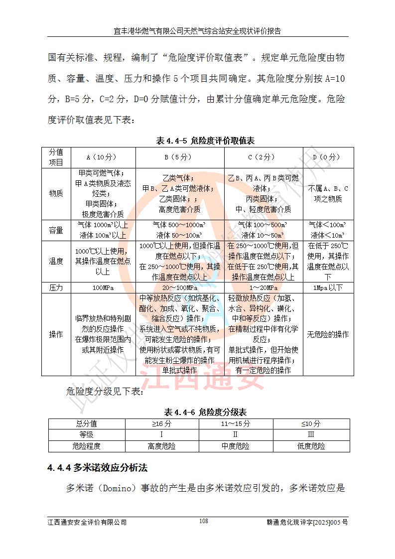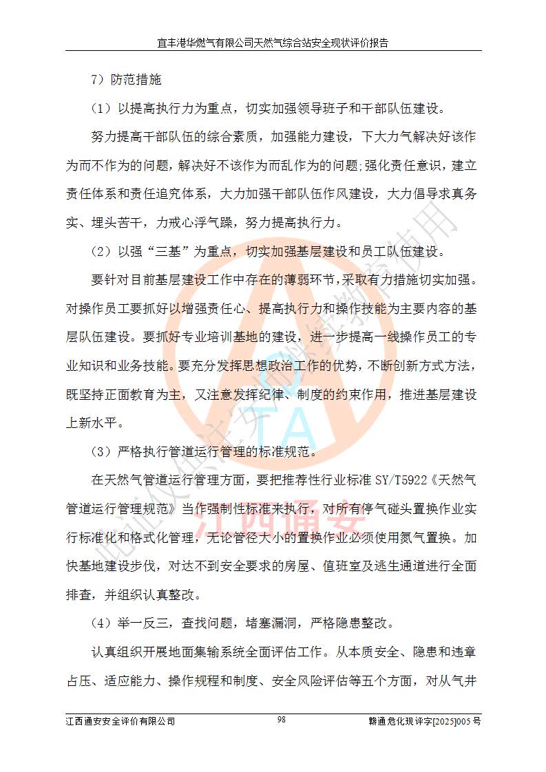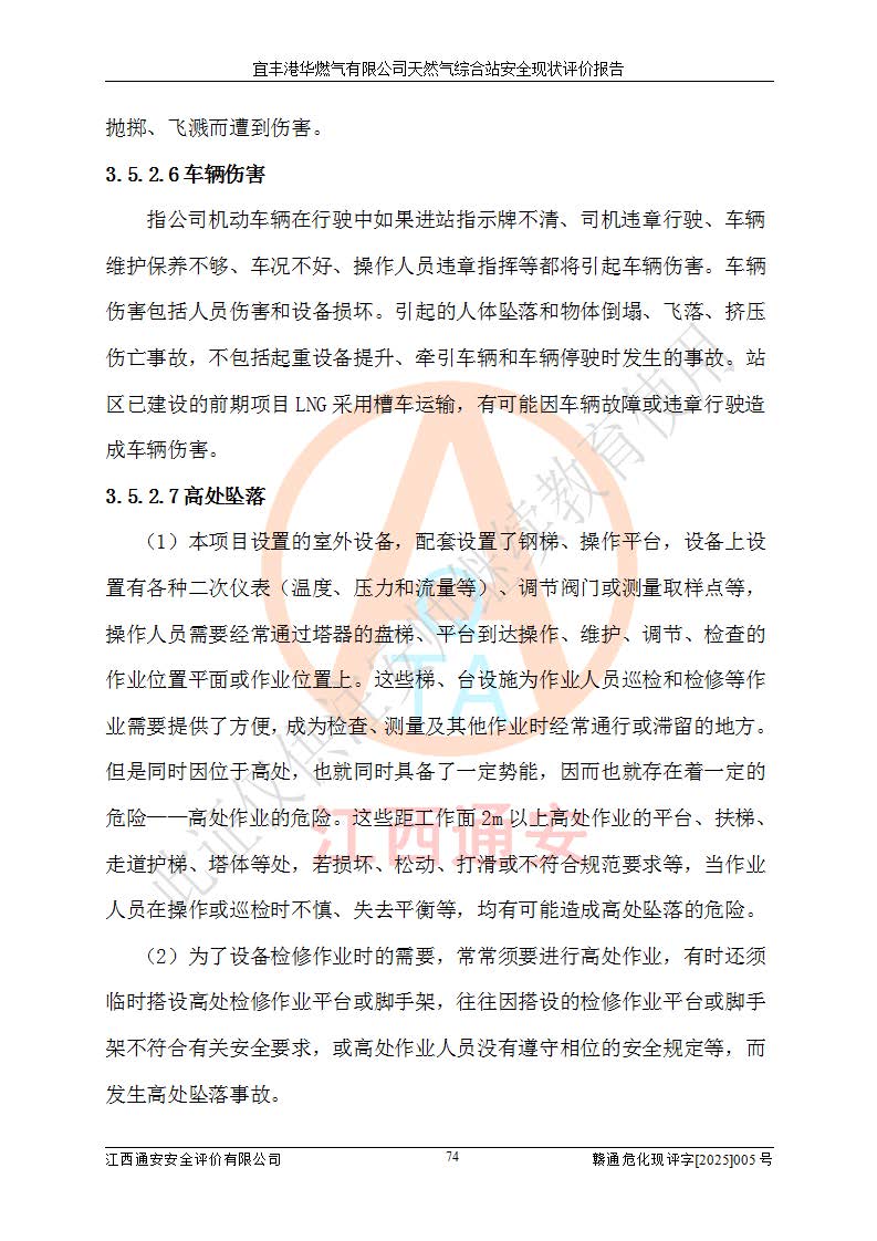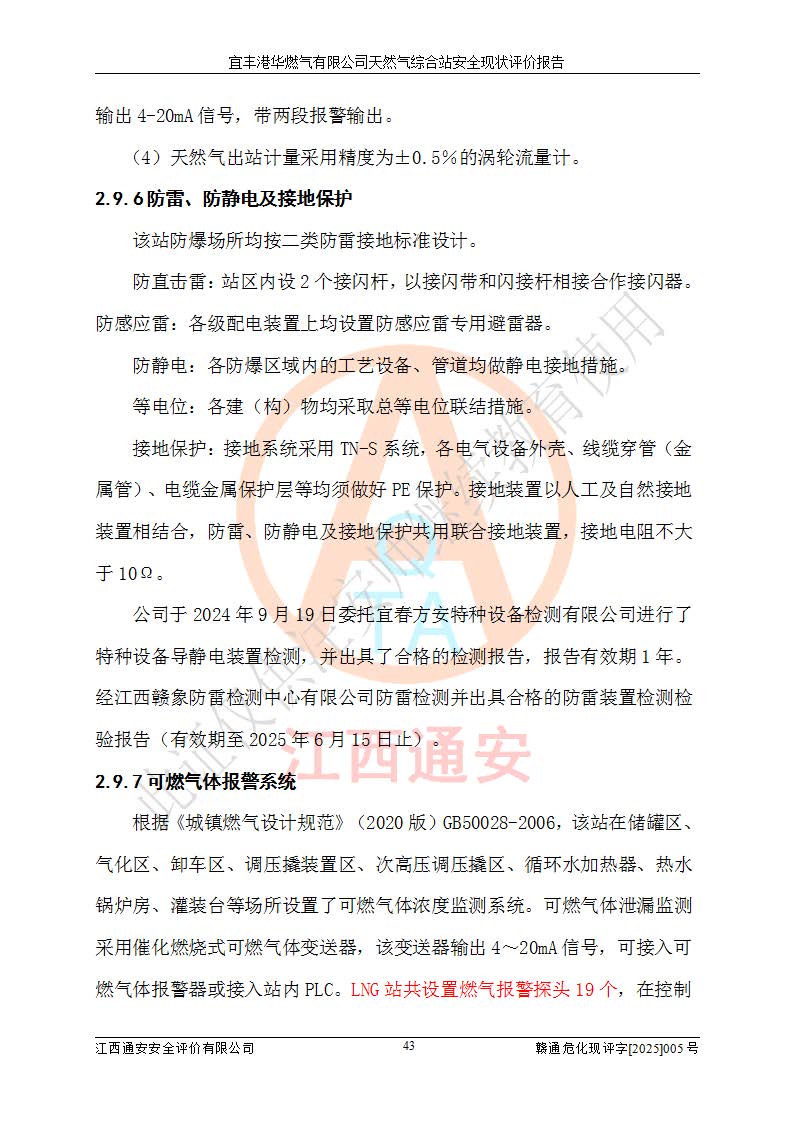 1、主要危險、危害因素辨識結(jié)果 宜豐港華燃氣有限公司天然氣綜合站在生產(chǎn)經(jīng)營過程中存在的主要危險有:火災(zāi)與爆炸、中毒窒息、觸電、機械傷害、物體打擊、**傷害、高處墜落、灼燙、低溫凍傷、容器爆炸、淹溺等,存在的主要危害因素有:化學(xué)因素、物理因素(噪聲、高溫等)等,同時存在人為失誤和管理缺陷。應(yīng)重點防范的主要危險為火災(zāi)與爆炸、容器爆炸。 2、危險化學(xué)品辨識結(jié)果 經(jīng)辨識,該儲配站涉及的天然氣、四氫噻吩及柴油屬于危險化學(xué)品,天然氣屬于重點監(jiān)管的危險化學(xué)品和特別管控危險化學(xué)品,不涉及監(jiān)控化學(xué)品、易制毒化學(xué)品、易制爆危險化學(xué)品、劇毒化學(xué)品和高毒物品等危險化學(xué)品。 3、危險化學(xué)品重大危險源辨識結(jié)果 根據(jù)《危險化學(xué)品重大危險源辨識》(GB18218-2018)和《危險化學(xué)品重大危險源監(jiān)督管理暫行規(guī)定》(2011)(40號令)(2015年 **安監(jiān)總局令第79號修訂)得出結(jié)論如下:該公司LNG儲罐區(qū)構(gòu)成三級重大危險源,其余生產(chǎn)單元及儲存單元不構(gòu)成危險化學(xué)品重大危險源。 4、重點監(jiān)管危險化工工藝辨識結(jié)果 根據(jù)《**安全監(jiān)管總局關(guān)于公布首批重點監(jiān)管的危險化學(xué)品名錄的通知》安監(jiān)總管三[2011]95號、《**安全監(jiān)管總局關(guān)于公布第二批重點監(jiān)管危險化學(xué)品名錄的通知》安監(jiān)總管三[2013]12號進行辨識,該天然氣儲配站不涉及重點監(jiān)管的危險化工工藝。 5、作業(yè)條件危險性分析結(jié)果: 液化天然氣的儲罐區(qū)、調(diào)壓計量氣化加臭區(qū)、卸車區(qū)、變配電、廠內(nèi)運輸、消防水池作業(yè)等單元。等單元危險程度均為“一般危險,需要注意”或“稍有危險,可以接受”級別。作業(yè)條件相對安全。 6、危險度評價結(jié)果:工藝裝置區(qū)等級為Ⅱ級,危險程度為中度危險。LNG儲罐區(qū)等級為Ⅰ級,危險程度為**危險。 7、事故后果預(yù)測結(jié)果:本報告采用中國安全生產(chǎn)科學(xué)研究院研發(fā)的重大危險源區(qū)域定量風(fēng)險評價(CASST-QRA)軟件對可能發(fā)生的危險化學(xué)品事故進行預(yù)測,宜豐港華燃氣有限公司天然氣綜合站LNG儲罐容器整體破裂,發(fā)生BLEVE災(zāi)害模式后果*大,*大死亡半徑為181m,重傷半徑為243m,輕傷半徑為448m。 8、多米諾效應(yīng)分析結(jié)果:該公司LNG儲罐發(fā)生容器整體破裂引發(fā)的BLEVE事故的多米諾半徑*大,為141m。 9、采用安全檢查表評價法對該儲配站周邊環(huán)境、總平面布置、站內(nèi)建構(gòu)筑物防火間距、站內(nèi)交通、LNG卸車、儲罐、氣化裝置、加臭裝置、調(diào)壓裝置、安全附件、工藝設(shè)備、管道、自動化控制等供配電、給排水、消防設(shè)施、供熱裝置、安全管理、“兩重點一重大”安全措施及安全管理進行定性評價,不符合項共2項,其他均符合**法律、法規(guī)、標準、規(guī)范的要求。 (1)企業(yè)對不符合項整改完成后,安全條件符合燃氣儲存經(jīng)營的安全要求。 (2)該儲配站涉及“兩重點一重大”,采取了首批重點監(jiān)管的危險化學(xué)品安全措施和應(yīng)急處置措施,站內(nèi)LNG罐區(qū)構(gòu)成三級重大危險源,采取的重大危險源安全技術(shù)和監(jiān)控措施符合相關(guān)要求。 (3)根據(jù)《燃氣經(jīng)營許可管理辦法》(建城〔2014〕167號發(fā)布,建城規(guī)〔2019〕2號修改)制成安全檢查表對該單位的經(jīng)營條件逐一檢查,檢查結(jié)果符合要求。 (4)根據(jù)《住房城鄉(xiāng)建設(shè)部關(guān)于印發(fā)《城鎮(zhèn)燃氣經(jīng)營安全重大隱患判定標準》的通知》(建城規(guī)[2023]4號)要求,對該項目重大隱患情況進行檢查,該站LNG罐完成整改后不涉及重大隱患。 評價結(jié)論 綜上所述,宜豐港華燃氣有限公司天然氣綜合站選址和總平面布置合理,建構(gòu)筑物間的防火間距、耐火等級等符合標準規(guī)范的要求,LNG卸車、儲存、加臭、氣化調(diào)壓計量等裝置采用成熟的工藝和設(shè)備,本質(zhì)安全程度較高;公司制定了安全管理制度和操作規(guī)程,人員經(jīng)培訓(xùn)合格后上崗,主要負責(zé)人、安全管理人員及特種作業(yè)人員均取得了相應(yīng)的考核合格資格證書,能按照法律法規(guī)要求開展安全生產(chǎn)管理工作。公司對現(xiàn)場存在事故危險的設(shè)施和場所采取了合理可行的防護措施和科學(xué)的管理,使生產(chǎn)過程中的危險有害因素能得到**控制。該項目安全設(shè)施符合**現(xiàn)行有關(guān)法律、法規(guī)、標準的要求。企業(yè)對現(xiàn)場存在的安全問題進行了整改,主要的安全缺陷消除。 綜合結(jié)論:宜豐港華燃氣有限公司天然氣綜合站的安全條件符合燃氣安全運行要求。 |