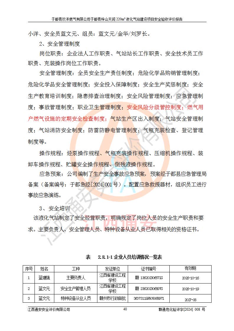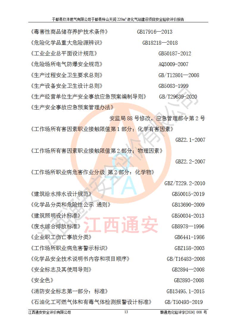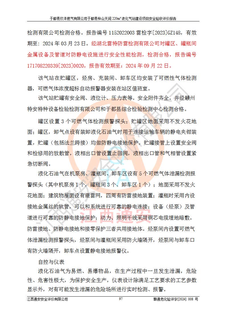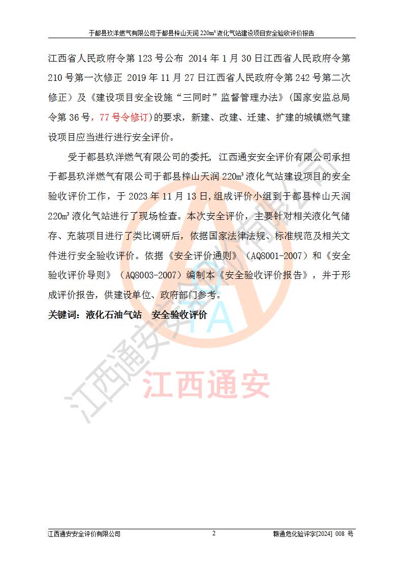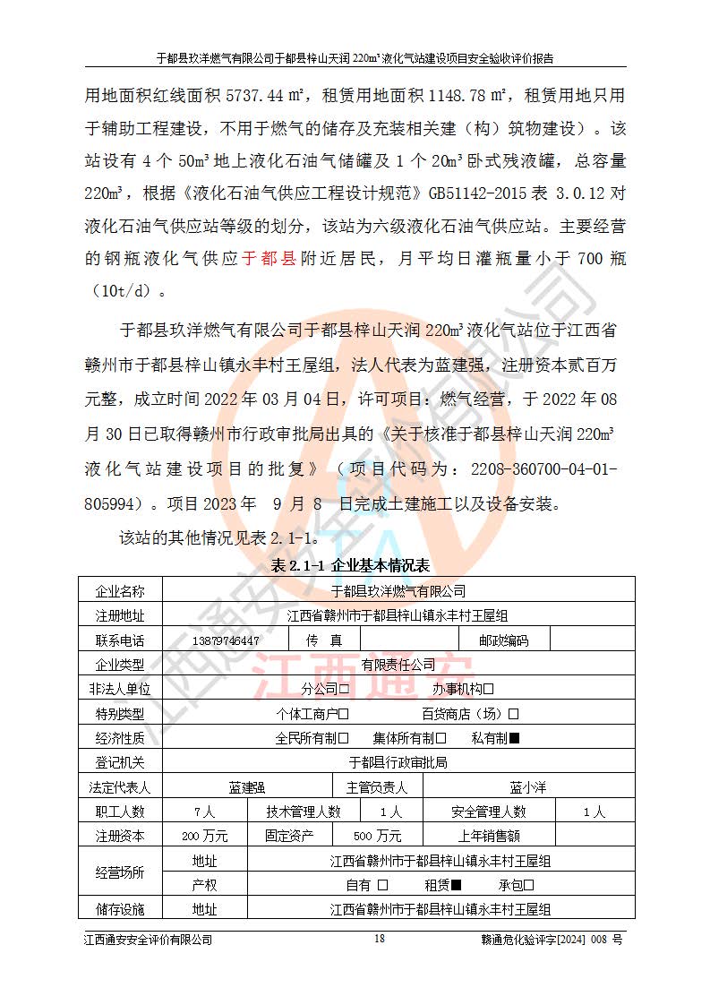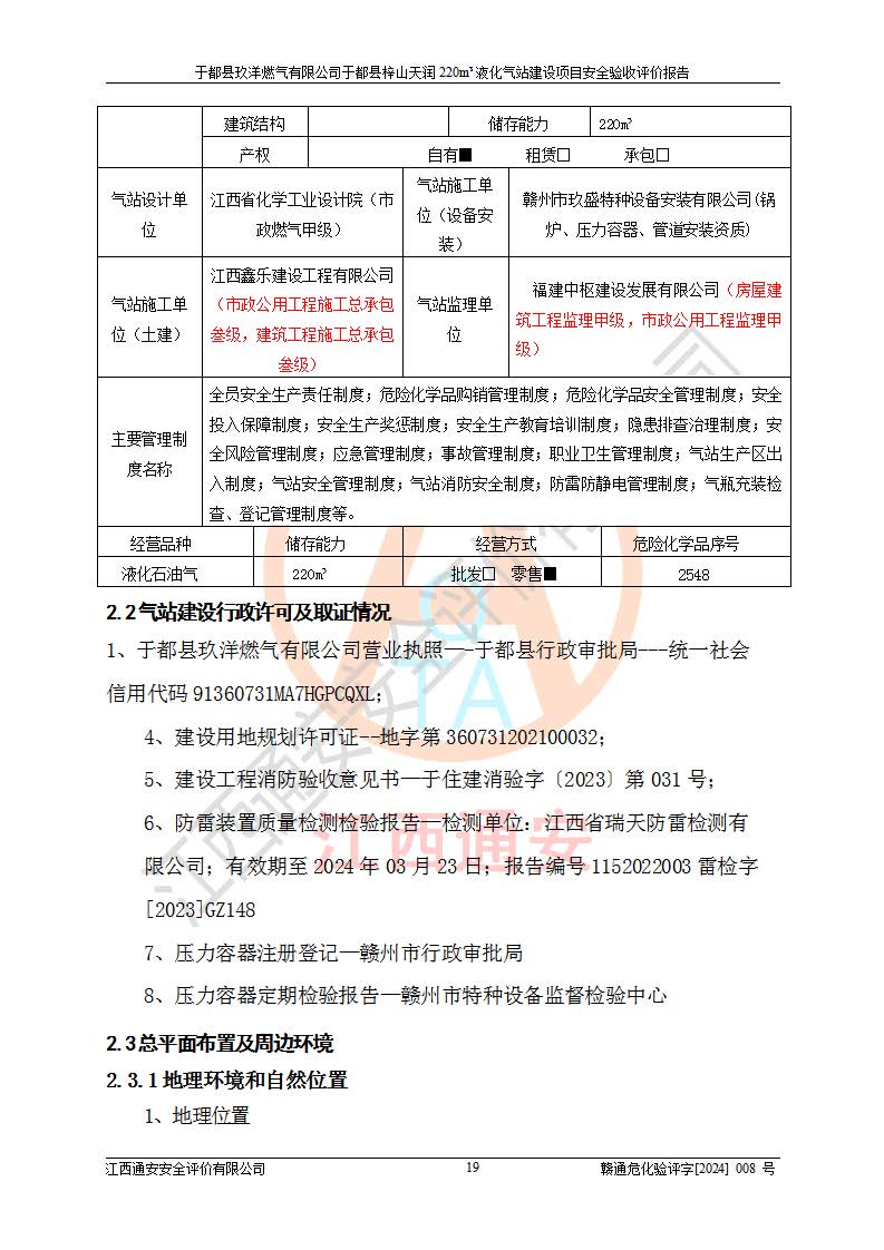 項(xiàng)目名稱 | 于都縣玖洋燃?xì)庥邢薰居诙伎h梓山天潤220m3液化氣站建設(shè)項(xiàng)目安全驗(yàn)收評價(jià)報(bào)告 | ||||