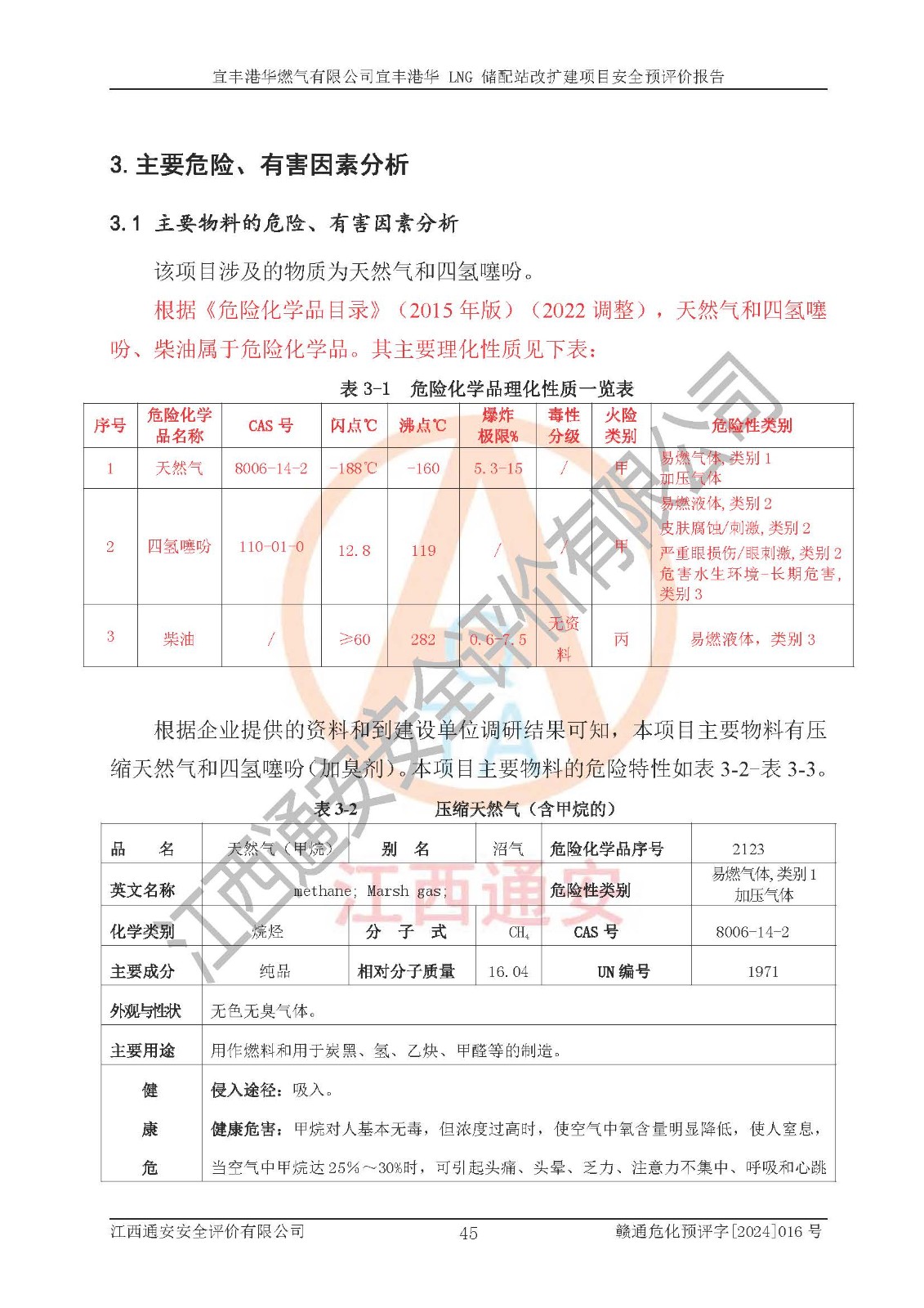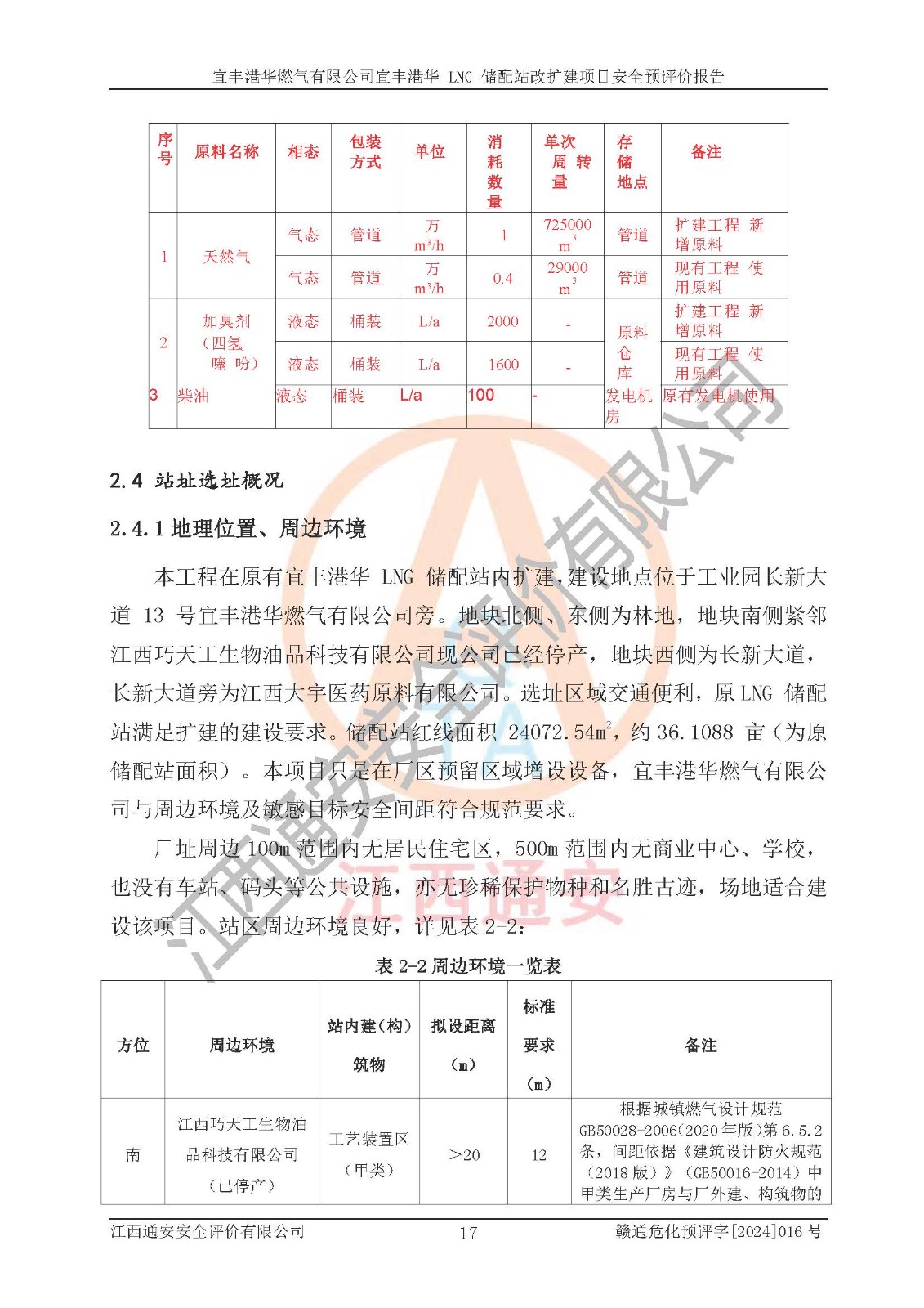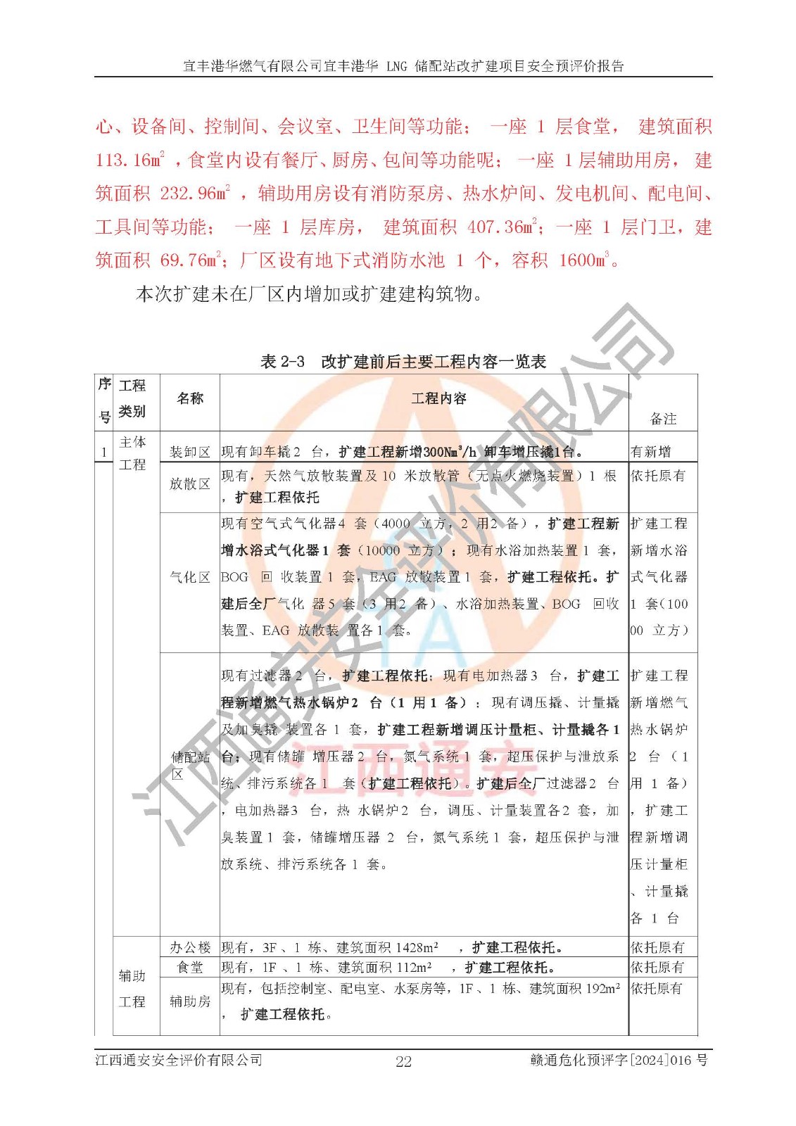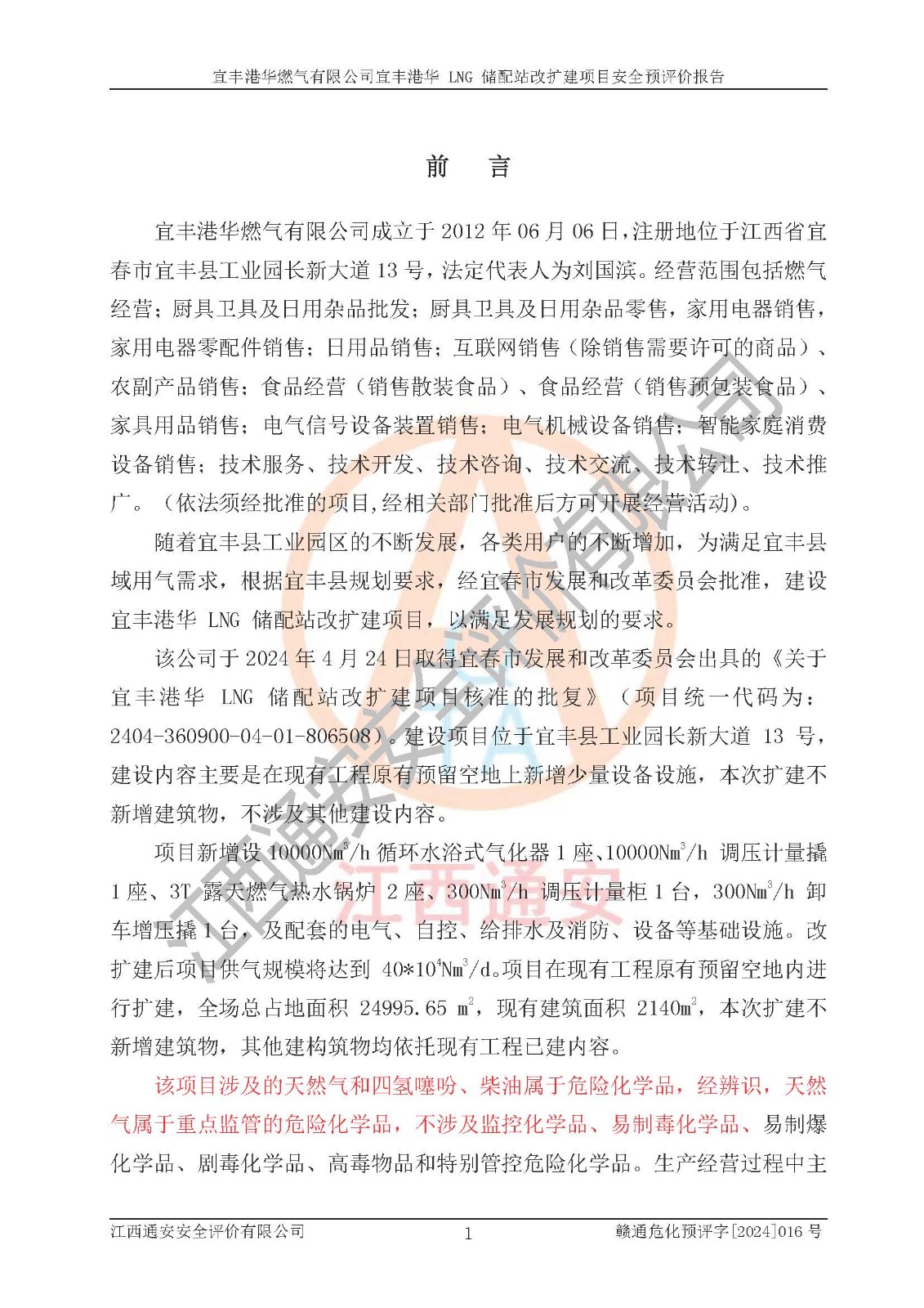 項(xiàng)目簡介 | 宜豐港華燃?xì)庥邢薰境闪⒂?/span>2012年06月06日,注冊(cè)地位于江西省宜春市宜豐縣工業(yè)園長新大道13號(hào),法定**人為劉國濱。經(jīng)營范圍包括燃?xì)饨?jīng)營;廚具衛(wèi)具及日用雜品批發(fā);廚具衛(wèi)具及日用雜品零售,家用電器銷售,家用電器零配件銷售;日用品銷售;互聯(lián)網(wǎng)銷售(除銷售需要許可的商品)、農(nóng)副產(chǎn)品銷售;食品經(jīng)營(銷售散裝食品)、食品經(jīng)營(銷售預(yù)包裝食品)、家具用品銷售;電氣信號(hào)設(shè)備裝置銷售;電氣機(jī)械設(shè)備銷售;智能家庭消費(fèi)設(shè)備銷售;技術(shù)服務(wù)、技術(shù)開發(fā)、技術(shù)咨詢、技術(shù)交流、技術(shù)**、技術(shù)推廣。(依法須經(jīng)批準(zhǔn)的項(xiàng)目,經(jīng)相關(guān)部門批準(zhǔn)后方可開展經(jīng)營活動(dòng))。 隨著宜豐縣工業(yè)園區(qū)的不斷發(fā)展,各類用戶的不斷增加,為滿足宜豐縣域用氣需求,根據(jù)宜豐縣規(guī)劃要求,經(jīng)宜春市發(fā)展和改革委員會(huì)批準(zhǔn),建設(shè)宜豐港華 LNG 儲(chǔ)配站改擴(kuò)建項(xiàng)目,以滿足發(fā)展規(guī)劃的要求。 該公司于2024年4月24日取得宜春市發(fā)展和改革委員會(huì)出具的《關(guān)于宜豐港華 LNG 儲(chǔ)配站改擴(kuò)建項(xiàng)目核準(zhǔn)的批復(fù)》(項(xiàng)目統(tǒng)一代碼為:2404-360900-04-01-806508)。建設(shè)項(xiàng)目位于宜豐縣工業(yè)園長新大道 13 號(hào),建設(shè)內(nèi)容主要是在現(xiàn)有工程原有預(yù)留空地上新增少量設(shè)備設(shè)施,本次擴(kuò)建不新增建筑物,不涉及其他建設(shè)內(nèi)容。 項(xiàng)目新增設(shè)10000Nm3/h循環(huán)水浴式氣化器1座、10000Nm3/h 調(diào)壓計(jì)量撬1座、3T 露天燃?xì)鉄崴仩t 2座、300Nm3/h 調(diào)壓計(jì)量柜1臺(tái),300Nm3/h 卸車增壓撬1臺(tái),及配套的電氣、自控、給排水及消防、設(shè)備等基礎(chǔ)設(shè)施。改擴(kuò)建后項(xiàng)目供氣規(guī)模將達(dá)到 40*104Nm3/d。項(xiàng)目在現(xiàn)有工程原有預(yù)留空地內(nèi)進(jìn)行擴(kuò)建,全場(chǎng)總占地面積 24995.65 m2,現(xiàn)有建筑面積 2140m2,本次擴(kuò)建不新增建筑物,其他建構(gòu)筑物均依托現(xiàn)有工程已建內(nèi)容。 該項(xiàng)目涉及的天然氣和四氫噻吩、柴油屬于危險(xiǎn)化學(xué)品,經(jīng)辨識(shí),天然氣屬于重點(diǎn)監(jiān)管的危險(xiǎn)化學(xué)品,不涉及監(jiān)控化學(xué)品、易制毒化學(xué)品、易制爆化學(xué)品、劇毒化學(xué)品、高毒物品和特別管控危險(xiǎn)化學(xué)品。生產(chǎn)經(jīng)營過程中主要的危險(xiǎn)有害因素為火災(zāi)、爆炸、中毒與窒息、觸電等。 | ||||