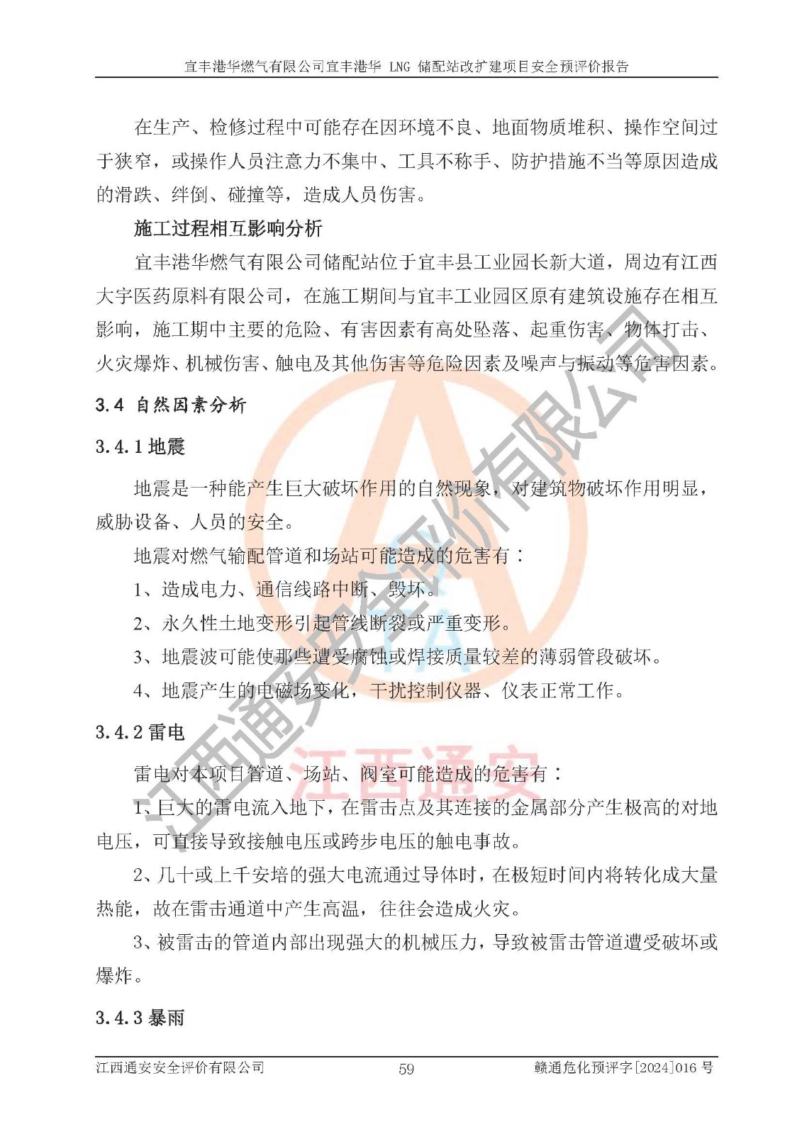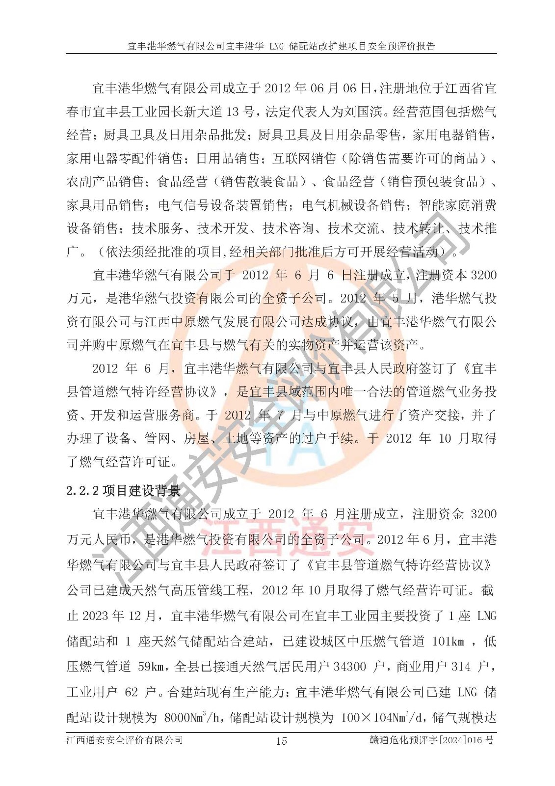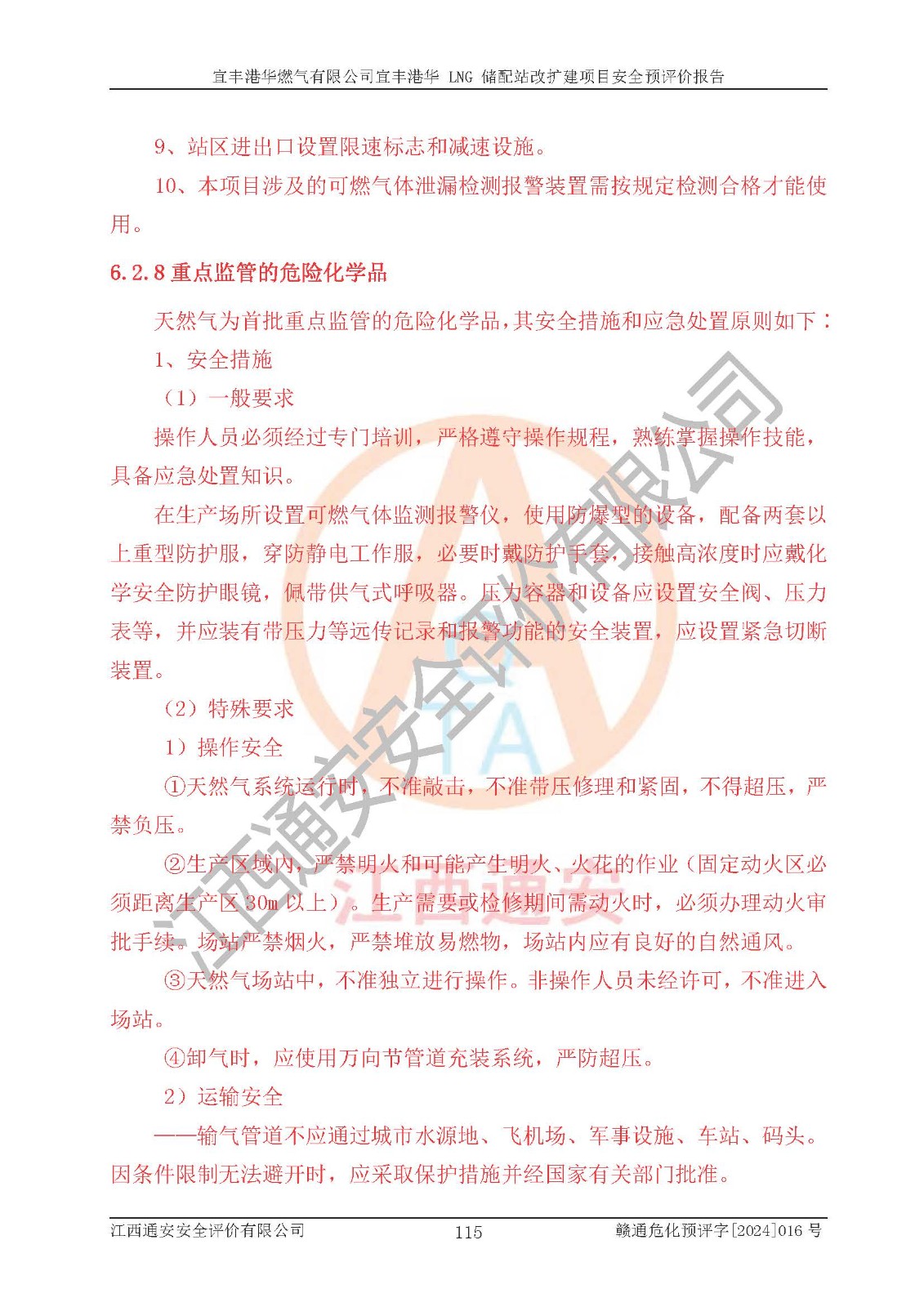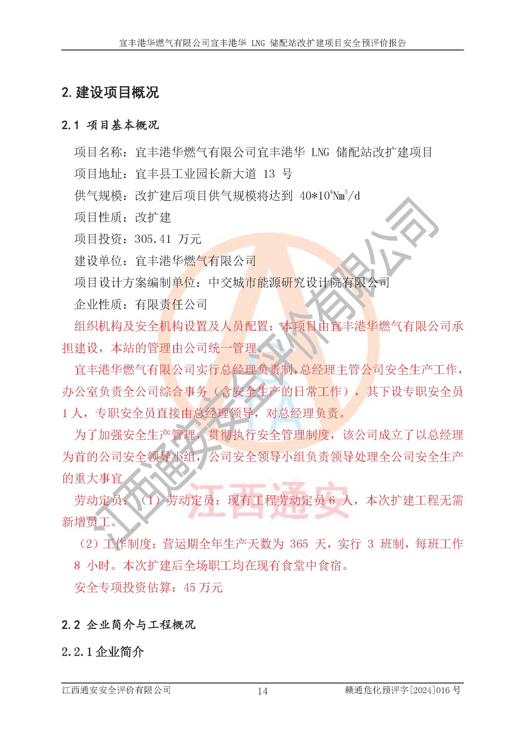項(xiàng)目簡介 | 宜豐港華燃?xì)庥邢薰境闪⒂?/span>2012年06月06日,注冊(cè)地位于江西省宜春市宜豐縣工業(yè)園長新大道13號(hào),法定**人為劉國濱。經(jīng)營范圍包括燃?xì)饨?jīng)營;廚具衛(wèi)具及日用雜品批發(fā);廚具衛(wèi)具及日用雜品零售,家用電器銷售,家用電器零配件銷售;日用品銷售;互聯(lián)網(wǎng)銷售(除銷售需要許可的商品)、農(nóng)副產(chǎn)品銷售;食品經(jīng)營(銷售散裝食品)、食品經(jīng)營(銷售預(yù)包裝食品)、家具用品銷售;電氣信號(hào)設(shè)備裝置銷售;電氣機(jī)械設(shè)備銷售;智能家庭消費(fèi)設(shè)備銷售;技術(shù)服務(wù)、技術(shù)開發(fā)、技術(shù)咨詢、技術(shù)交流、技術(shù)**、技術(shù)推廣。(依法須經(jīng)批準(zhǔn)的項(xiàng)目,經(jīng)相關(guān)部門批準(zhǔn)后方可開展經(jīng)營活動(dòng))。 隨著宜豐縣工業(yè)園區(qū)的不斷發(fā)展,各類用戶的不斷增加,為滿足宜豐縣域用氣需求,根據(jù)宜豐縣規(guī)劃要求,經(jīng)宜春市發(fā)展和改革委員會(huì)批準(zhǔn),建設(shè)宜豐港華 LNG 儲(chǔ)配站改擴(kuò)建項(xiàng)目,以滿足發(fā)展規(guī)劃的要求。 該公司于2024年4月24日取得宜春市發(fā)展和改革委員會(huì)出具的《關(guān)于宜豐港華 LNG 儲(chǔ)配站改擴(kuò)建項(xiàng)目核準(zhǔn)的批復(fù)》(項(xiàng)目統(tǒng)一代碼為:2404-360900-04-01-806508)。建設(shè)項(xiàng)目位于宜豐縣工業(yè)園長新大道 13 號(hào),建設(shè)內(nèi)容主要是在現(xiàn)有工程原有預(yù)留空地上新增少量設(shè)備設(shè)施,本次擴(kuò)建不新增建筑物,不涉及其他建設(shè)內(nèi)容。 項(xiàng)目新增設(shè)10000Nm3/h循環(huán)水浴式氣化器1座、10000Nm3/h 調(diào)壓計(jì)量撬1座、3T 露天燃?xì)鉄崴仩t 2座、300Nm3/h 調(diào)壓計(jì)量柜1臺(tái),300Nm3/h 卸車增壓撬1臺(tái),及配套的電氣、自控、給排水及消防、設(shè)備等基礎(chǔ)設(shè)施。改擴(kuò)建后項(xiàng)目供氣規(guī)模將達(dá)到 40*104Nm3/d。項(xiàng)目在現(xiàn)有工程原有預(yù)留空地內(nèi)進(jìn)行擴(kuò)建,全場(chǎng)總占地面積 24995.65 m2,現(xiàn)有建筑面積 2140m2,本次擴(kuò)建不新增建筑物,其他建構(gòu)筑物均依托現(xiàn)有工程已建內(nèi)容。 該項(xiàng)目涉及的天然氣和四氫噻吩、柴油屬于危險(xiǎn)化學(xué)品,經(jīng)辨識(shí),天然氣屬于重點(diǎn)監(jiān)管的危險(xiǎn)化學(xué)品,不涉及監(jiān)控化學(xué)品、易制毒化學(xué)品、易制爆化學(xué)品、劇毒化學(xué)品、高毒物品和特別管控危險(xiǎn)化學(xué)品。生產(chǎn)經(jīng)營過程中主要的危險(xiǎn)有害因素為火災(zāi)、爆炸、中毒與窒息、觸電等。 | ||||