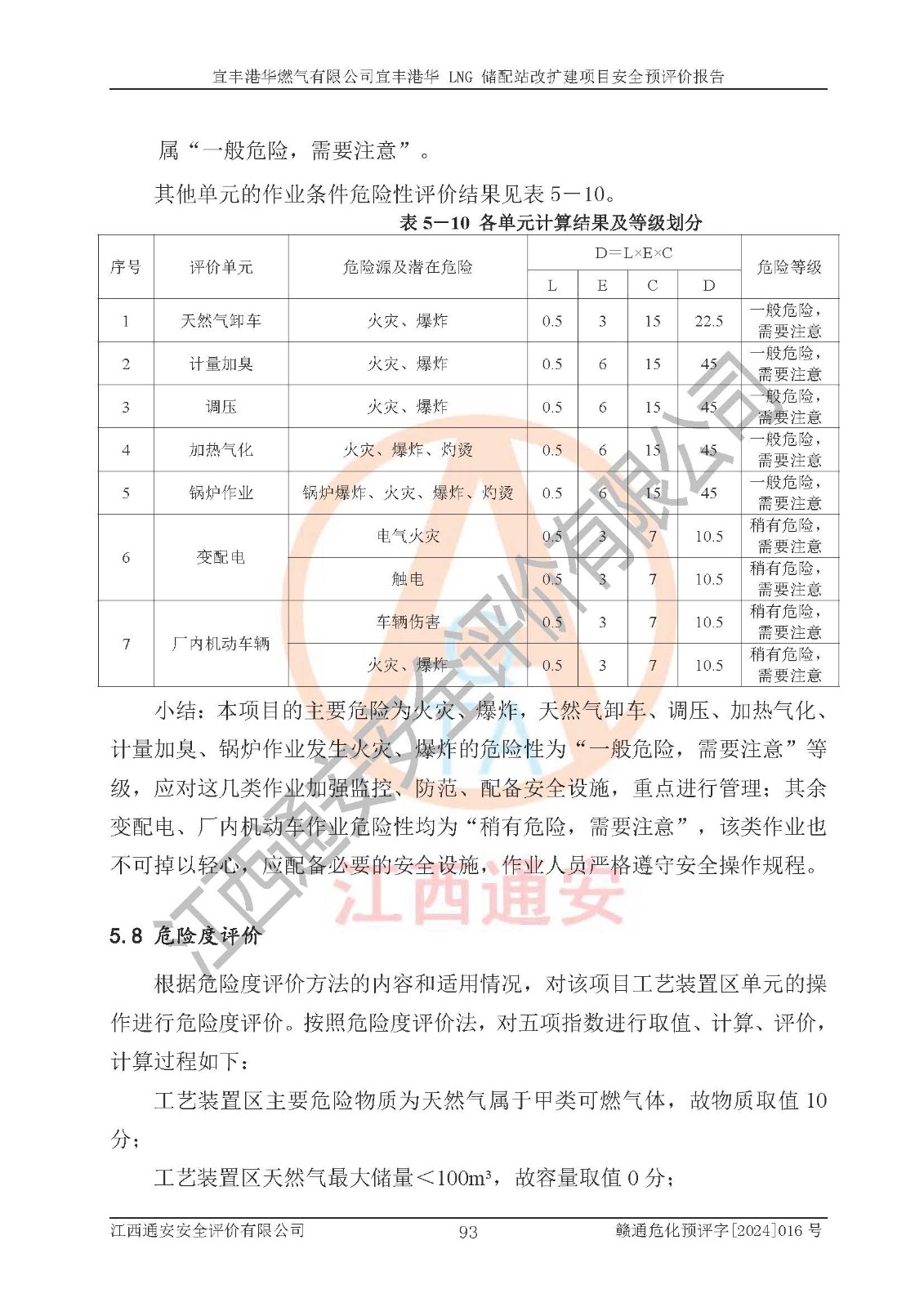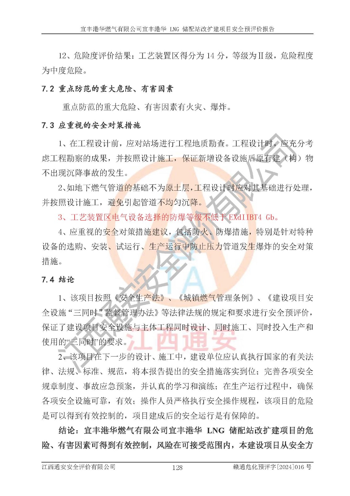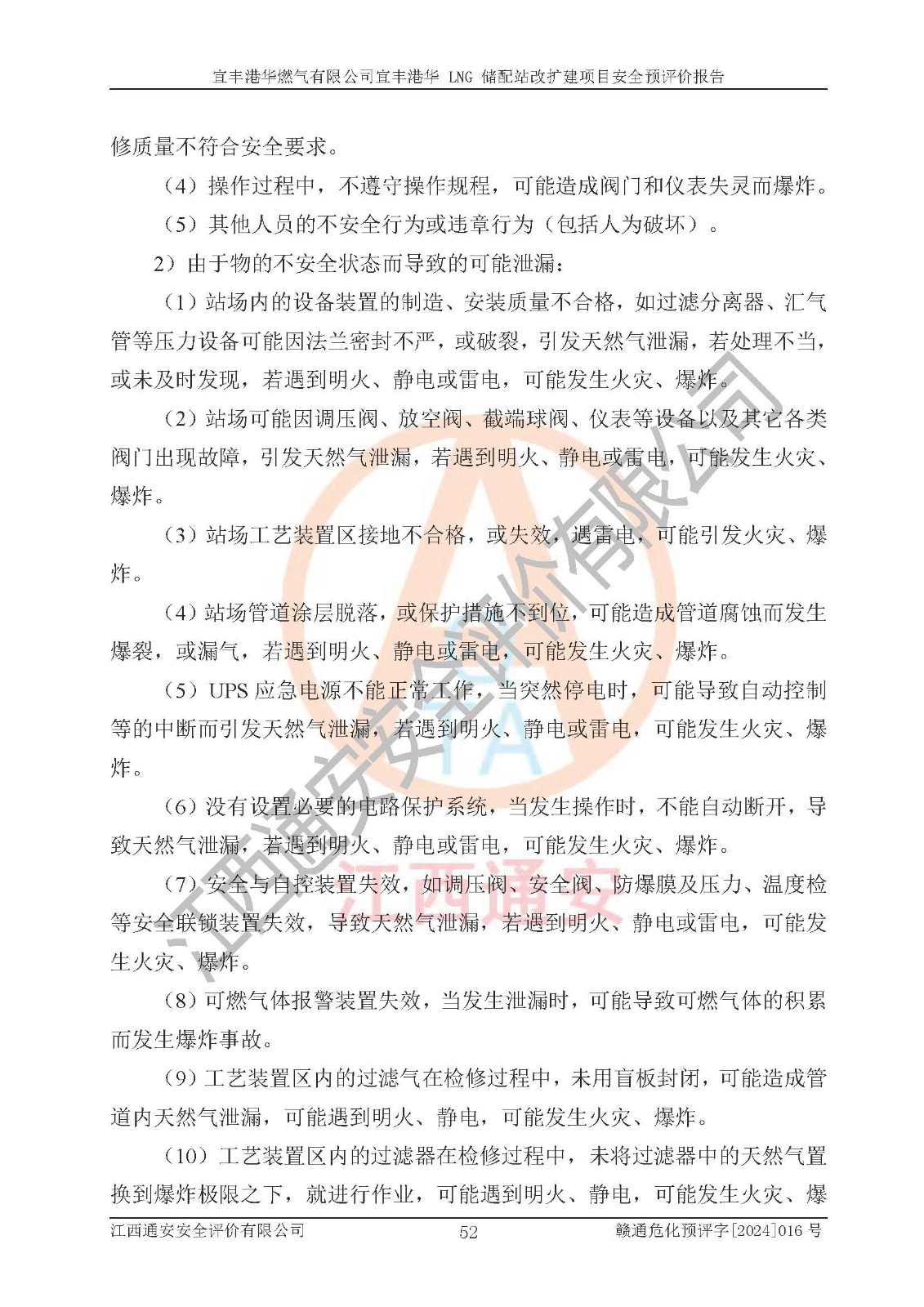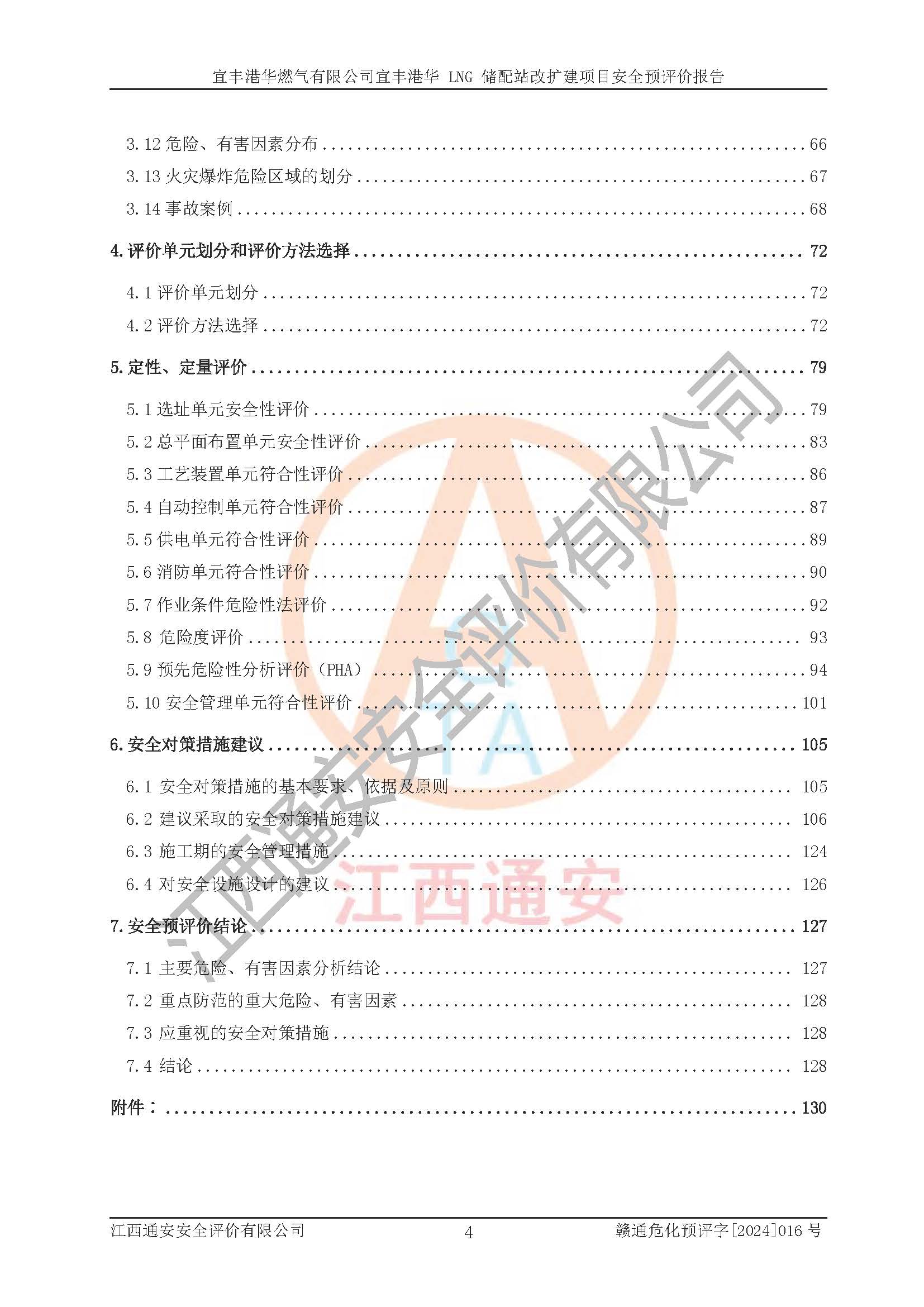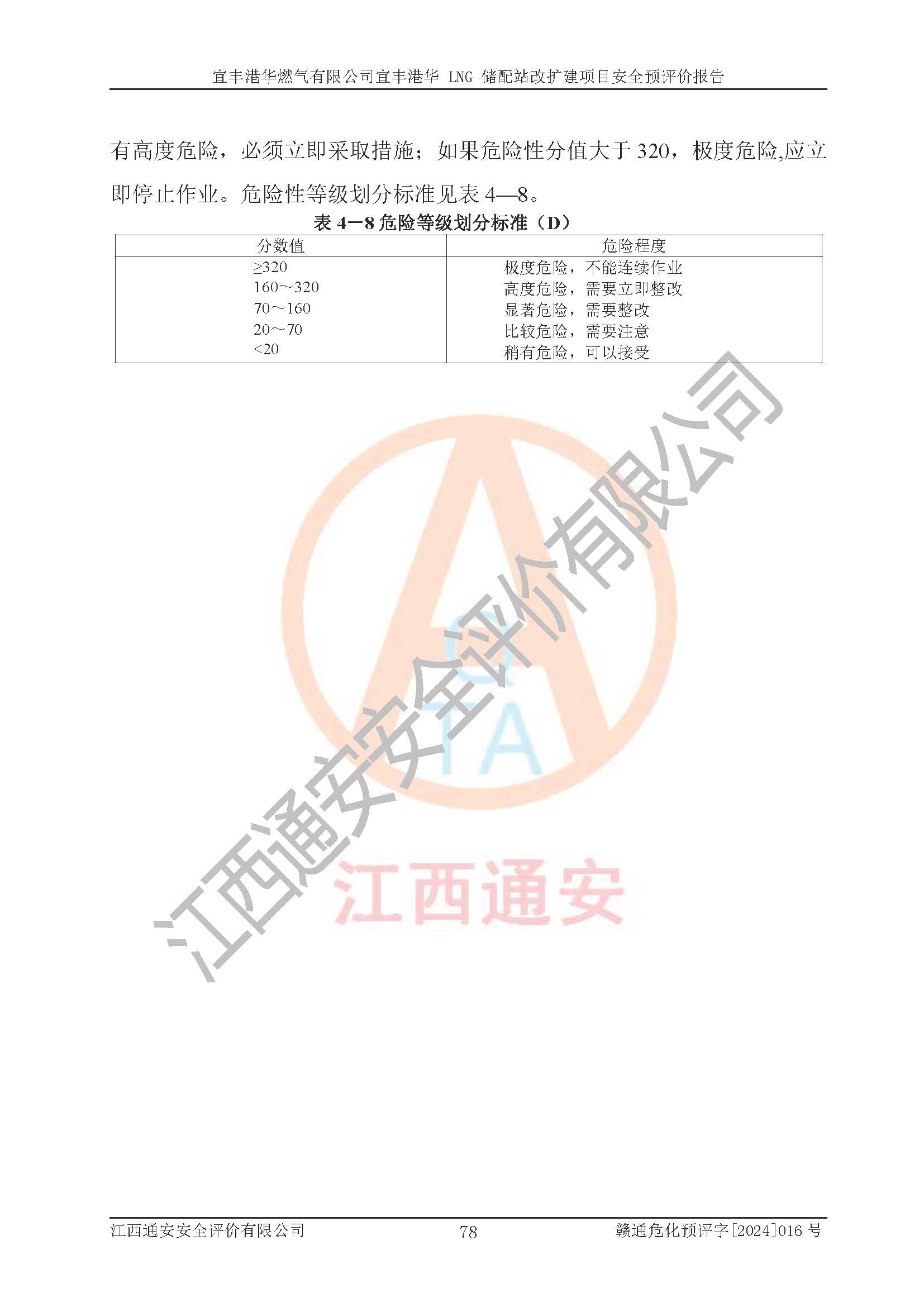 其它 | 1、該項(xiàng)目運(yùn)行過程中的主要危險(xiǎn)、有害物質(zhì)有天然氣、四氫噻吩(加臭劑)、柴油等。 2、本項(xiàng)目運(yùn)行過程存在的主要危險(xiǎn)因素為火災(zāi)、爆炸、鍋爐爆炸、中毒和窒息、觸電、灼燙、高處墜落、**傷害、物體打擊、機(jī)械傷害等;有害因素有有毒物質(zhì)、高溫、噪聲等。 3、該項(xiàng)目所在區(qū)域存在的自然危險(xiǎn)、有害因素有地震、雷擊、暴雨等。 4、按《危險(xiǎn)化學(xué)品重大危險(xiǎn)源辨識(shí)》(GB18218-2018)的規(guī)定,該項(xiàng)目不構(gòu)成危險(xiǎn)化學(xué)品重大危險(xiǎn)源。 5、經(jīng)辨識(shí),該項(xiàng)目涉及的天然氣屬于重點(diǎn)監(jiān)管的危險(xiǎn)化學(xué)品,不涉及劇毒化學(xué)品、易制毒化學(xué)品、監(jiān)控化學(xué)品和易制爆化學(xué)品 9、該項(xiàng)目站場(chǎng)周邊環(huán)境防火間距符合標(biāo)準(zhǔn)、規(guī)范要求,選址符合法律法規(guī)等的規(guī)定和要求。 10、該項(xiàng)目總平面布置、工藝裝置區(qū)、自動(dòng)控制等符合標(biāo)準(zhǔn)、規(guī)范的要求。 11、預(yù)先危險(xiǎn)性分析表明火災(zāi)、爆炸、鍋爐爆炸的危險(xiǎn)等級(jí)為Ⅲ級(jí),觸電、中毒與窒息等危險(xiǎn)有害因素的危險(xiǎn)等級(jí)均為Ⅱ級(jí)。 12、危險(xiǎn)度評(píng)價(jià)結(jié)果:工藝裝置區(qū)得分為14分,等級(jí)為Ⅱ級(jí),危險(xiǎn)程度為中度危險(xiǎn)。 該項(xiàng)目按照《安全生產(chǎn)法》、《城鎮(zhèn)燃?xì)夤芾項(xiàng)l例》、《建設(shè)項(xiàng)目安全設(shè)施“三同時(shí)”監(jiān)督管理辦法》等法律法規(guī)的規(guī)定和要求進(jìn)行安全預(yù)評(píng)價(jià),保障了建設(shè)項(xiàng)目安全設(shè)施與主體工程同時(shí)設(shè)計(jì)、同時(shí)施工、同時(shí)投入生產(chǎn)和使用的“三同時(shí)”的要求。 該項(xiàng)目在下一步的設(shè)計(jì)、施工中,建設(shè)單位應(yīng)認(rèn)真執(zhí)行**的有關(guān)法律、法規(guī)、標(biāo)準(zhǔn)、規(guī)范,將本報(bào)告提出的安全措施落實(shí)到位;完善各項(xiàng)安全規(guī)章制度、事故應(yīng)急預(yù)案,并認(rèn)真的學(xué)習(xí)和演練;在生產(chǎn)運(yùn)行過程中,保障各項(xiàng)安全設(shè)施可靠,**;操作人員嚴(yán)格執(zhí)行安全操作規(guī)程,該項(xiàng)目的危險(xiǎn)是可以得到**控制的,項(xiàng)目建成后的安全運(yùn)行是有保障的。 結(jié)論:宜豐港華燃?xì)庥邢薰疽素S港華 LNG 儲(chǔ)配站改擴(kuò)建項(xiàng)目的危險(xiǎn)、有害因素可得到**控制,風(fēng)險(xiǎn)在可接受范圍內(nèi),本建設(shè)項(xiàng)目從安全方面分析可行,風(fēng)險(xiǎn)程度在可以接受范圍內(nèi)。