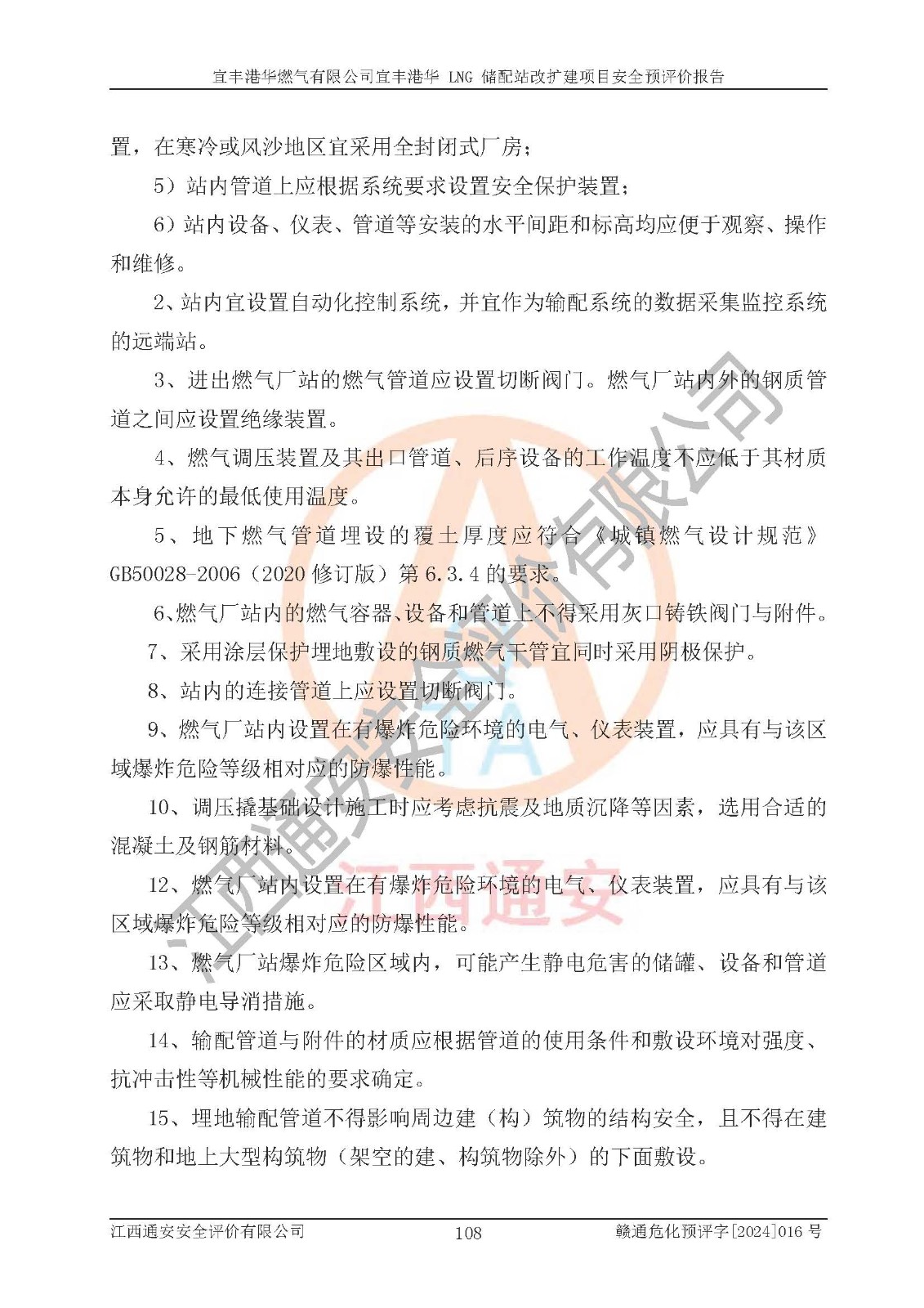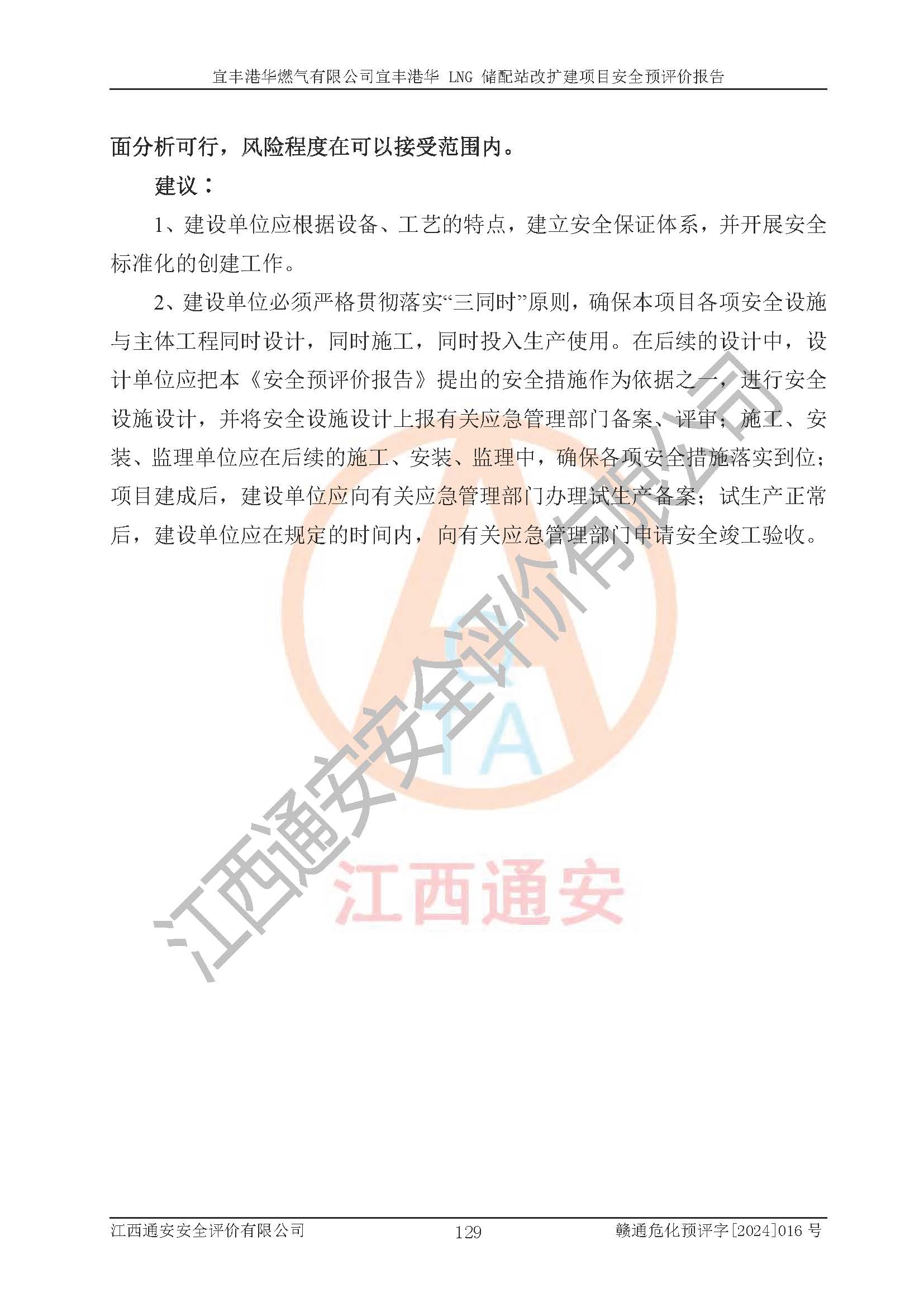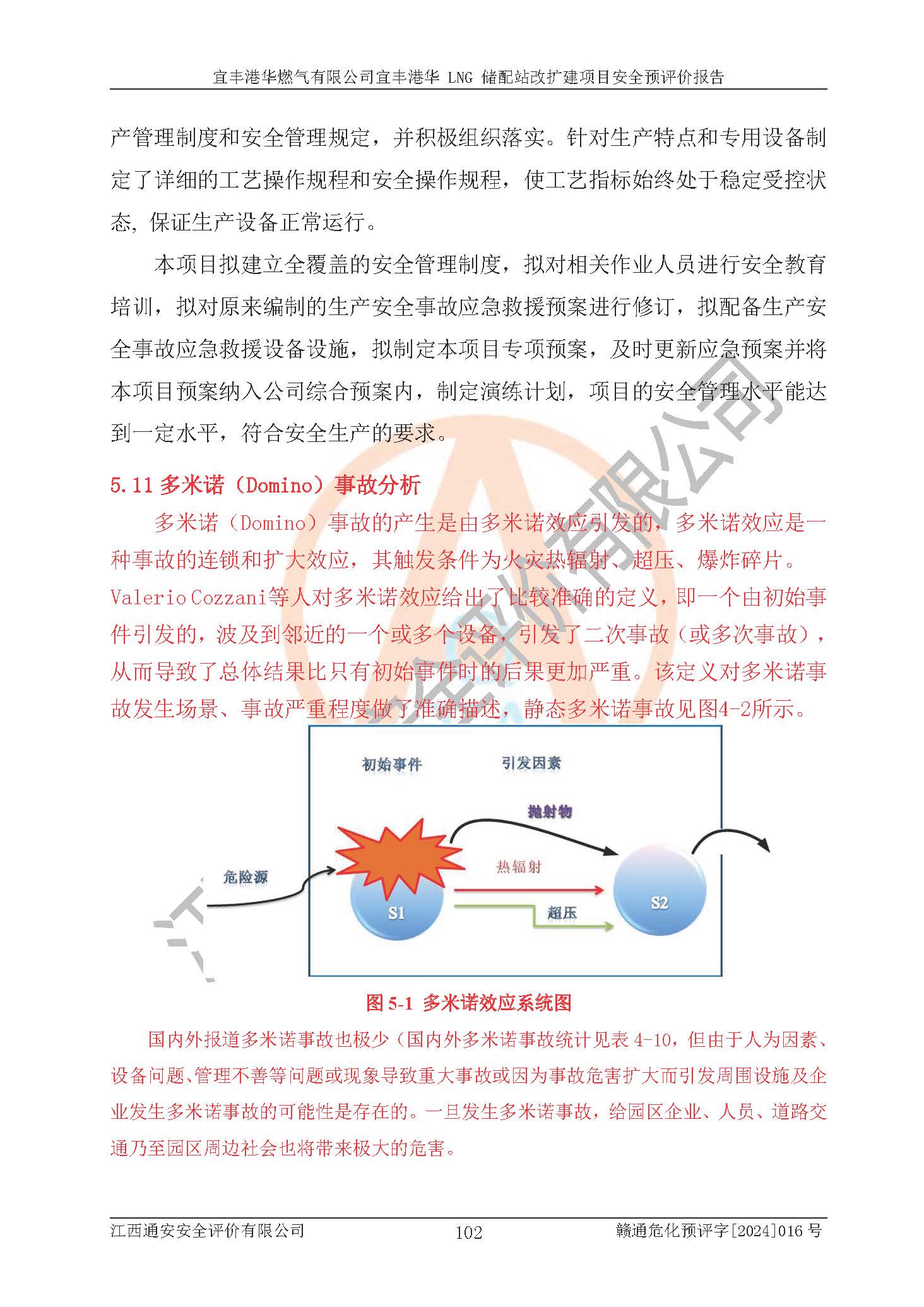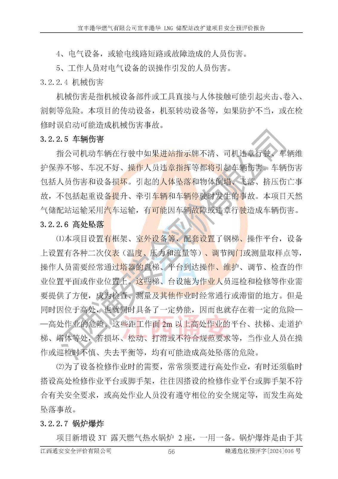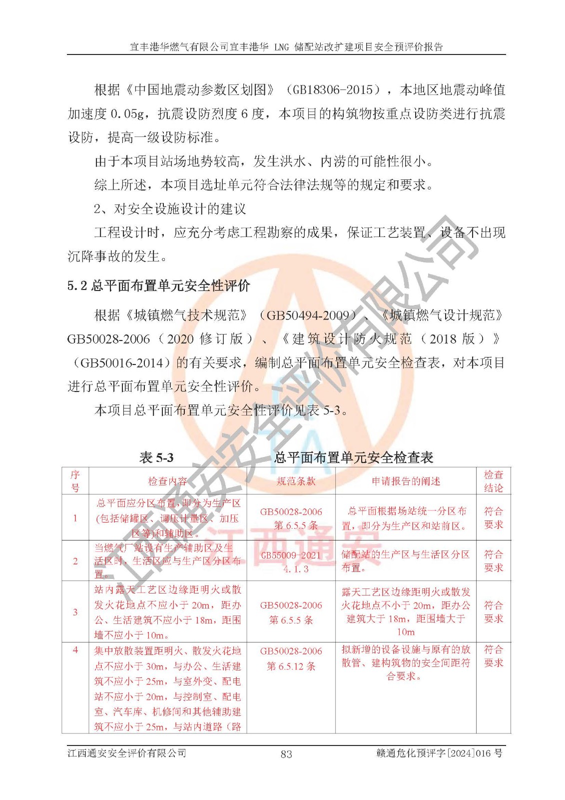 其它 | 1、該項(xiàng)目運(yùn)行過程中的主要危險(xiǎn)、有害物質(zhì)有天然氣、四氫噻吩(加臭劑)、柴油等。 2、本項(xiàng)目運(yùn)行過程存在的主要危險(xiǎn)因素為火災(zāi)、爆炸、鍋爐爆炸、中毒和窒息、觸電、灼燙、高處墜落、**傷害、物體打擊、機(jī)械傷害等;有害因素有有毒物質(zhì)、高溫、噪聲等。 3、該項(xiàng)目所在區(qū)域存在的自然危險(xiǎn)、有害因素有地震、雷擊、暴雨等。 4、按《危險(xiǎn)化學(xué)品重大危險(xiǎn)源辨識(shí)》(GB18218-2018)的規(guī)定,該項(xiàng)目不構(gòu)成危險(xiǎn)化學(xué)品重大危險(xiǎn)源。 5、經(jīng)辨識(shí),該項(xiàng)目涉及的天然氣屬于重點(diǎn)監(jiān)管的危險(xiǎn)化學(xué)品,不涉及劇毒化學(xué)品、易制毒化學(xué)品、監(jiān)控化學(xué)品和易制爆化學(xué)品 9、該項(xiàng)目站場(chǎng)周邊環(huán)境防火間距符合標(biāo)準(zhǔn)、規(guī)范要求,選址符合法律法規(guī)等的規(guī)定和要求。 10、該項(xiàng)目總平面布置、工藝裝置區(qū)、自動(dòng)控制等符合標(biāo)準(zhǔn)、規(guī)范的要求。 11、預(yù)先危險(xiǎn)性分析表明火災(zāi)、爆炸、鍋爐爆炸的危險(xiǎn)等級(jí)為Ⅲ級(jí),觸電、中毒與窒息等危險(xiǎn)有害因素的危險(xiǎn)等級(jí)均為Ⅱ級(jí)。 12、危險(xiǎn)度評(píng)價(jià)結(jié)果:工藝裝置區(qū)得分為14分,等級(jí)為Ⅱ級(jí),危險(xiǎn)程度為中度危險(xiǎn)。 該項(xiàng)目按照《安全生產(chǎn)法》、《城鎮(zhèn)燃?xì)夤芾項(xiàng)l例》、《建設(shè)項(xiàng)目安全設(shè)施“三同時(shí)”監(jiān)督管理辦法》等法律法規(guī)的規(guī)定和要求進(jìn)行安全預(yù)評(píng)價(jià),保障了建設(shè)項(xiàng)目安全設(shè)施與主體工程同時(shí)設(shè)計(jì)、同時(shí)施工、同時(shí)投入生產(chǎn)和使用的“三同時(shí)”的要求。 該項(xiàng)目在下一步的設(shè)計(jì)、施工中,建設(shè)單位應(yīng)認(rèn)真執(zhí)行**的有關(guān)法律、法規(guī)、標(biāo)準(zhǔn)、規(guī)范,將本報(bào)告提出的安全措施落實(shí)到位;完善各項(xiàng)安全規(guī)章制度、事故應(yīng)急預(yù)案,并認(rèn)真的學(xué)習(xí)和演練;在生產(chǎn)運(yùn)行過程中,保障各項(xiàng)安全設(shè)施可靠,**;操作人員嚴(yán)格執(zhí)行安全操作規(guī)程,該項(xiàng)目的危險(xiǎn)是可以得到**控制的,項(xiàng)目建成后的安全運(yùn)行是有保障的。 結(jié)論:宜豐港華燃?xì)庥邢薰疽素S港華 LNG 儲(chǔ)配站改擴(kuò)建項(xiàng)目的危險(xiǎn)、有害因素可得到**控制,風(fēng)險(xiǎn)在可接受范圍內(nèi),本建設(shè)項(xiàng)目從安全方面分析可行,風(fēng)險(xiǎn)程度在可以接受范圍內(nèi)。