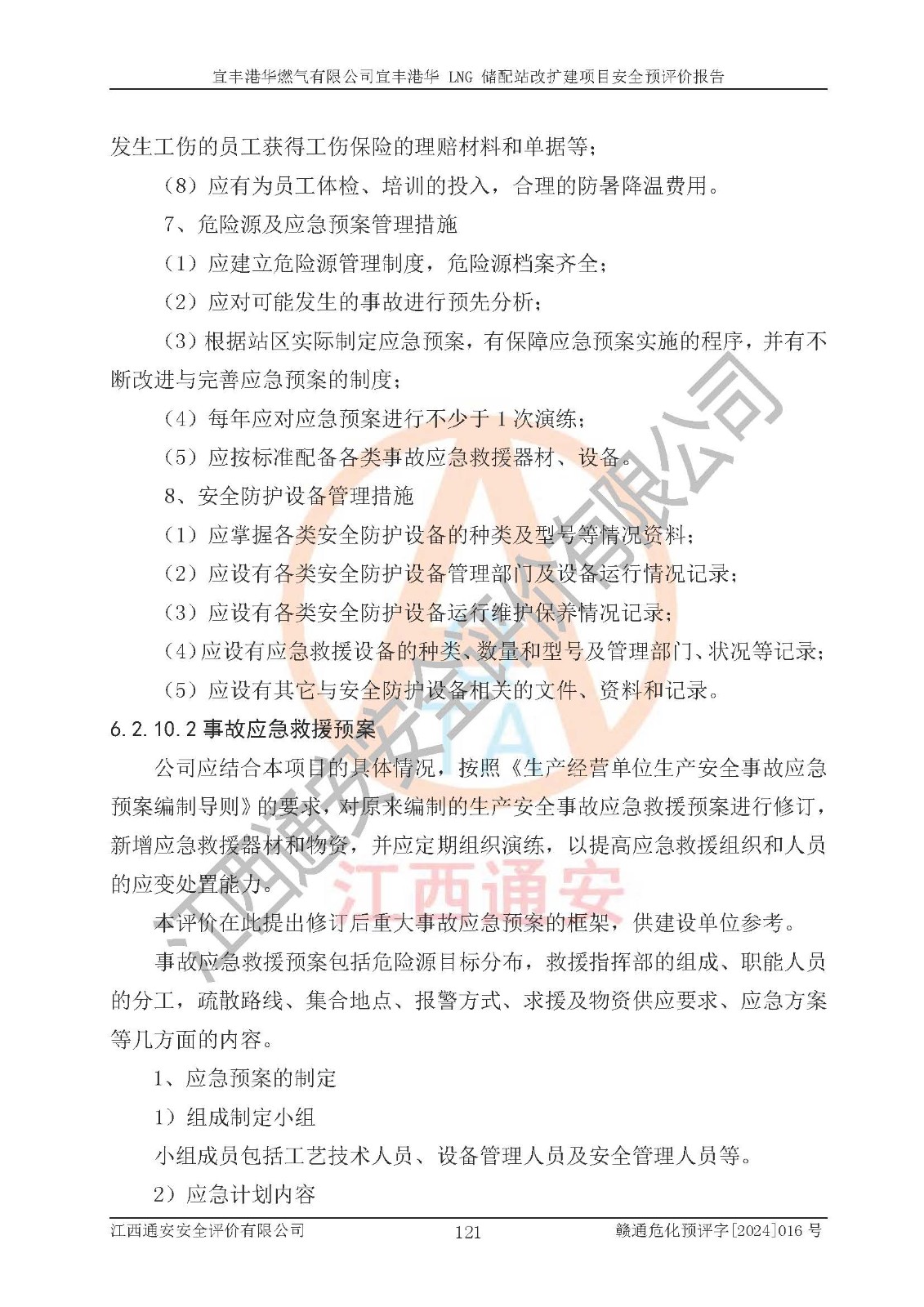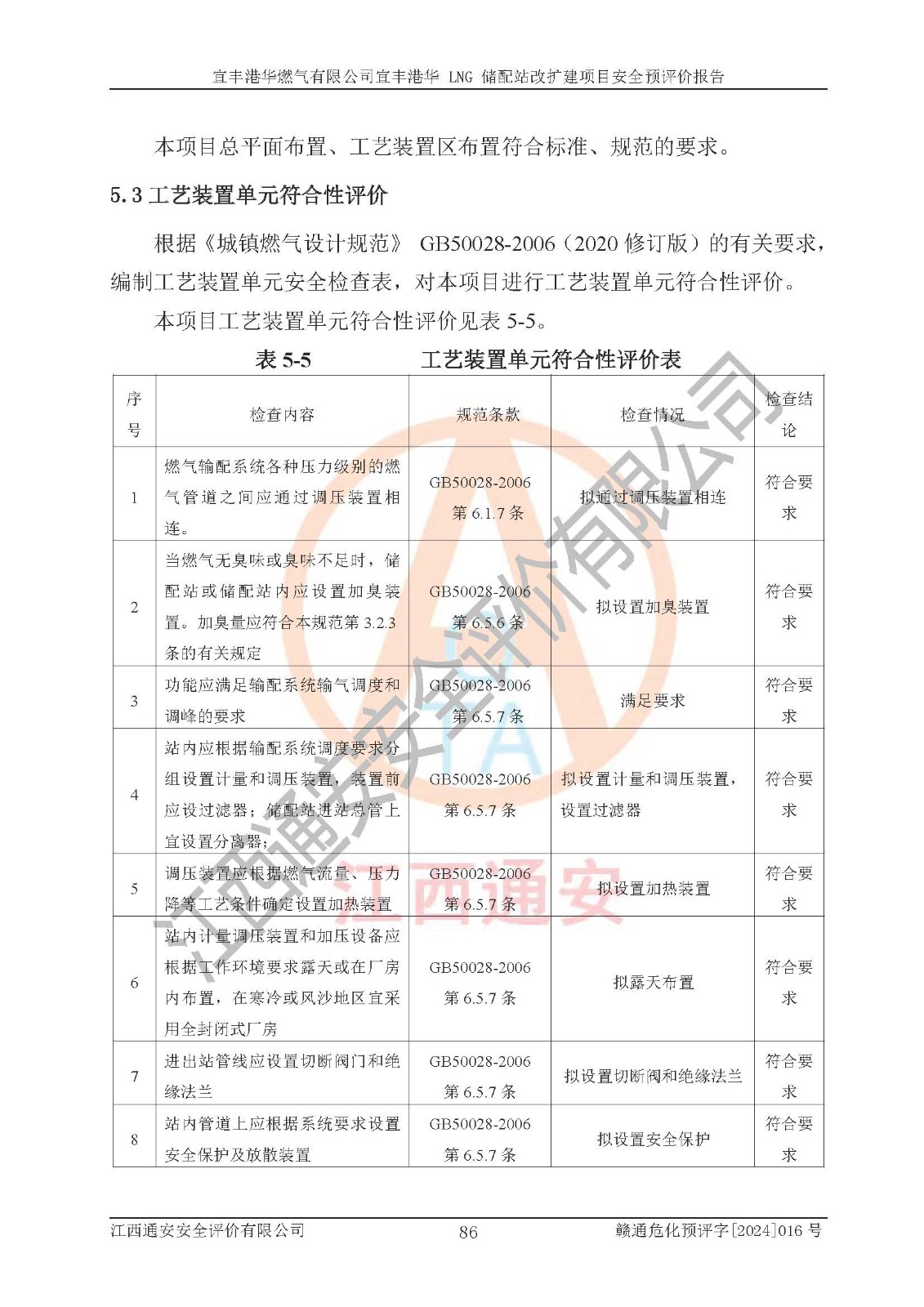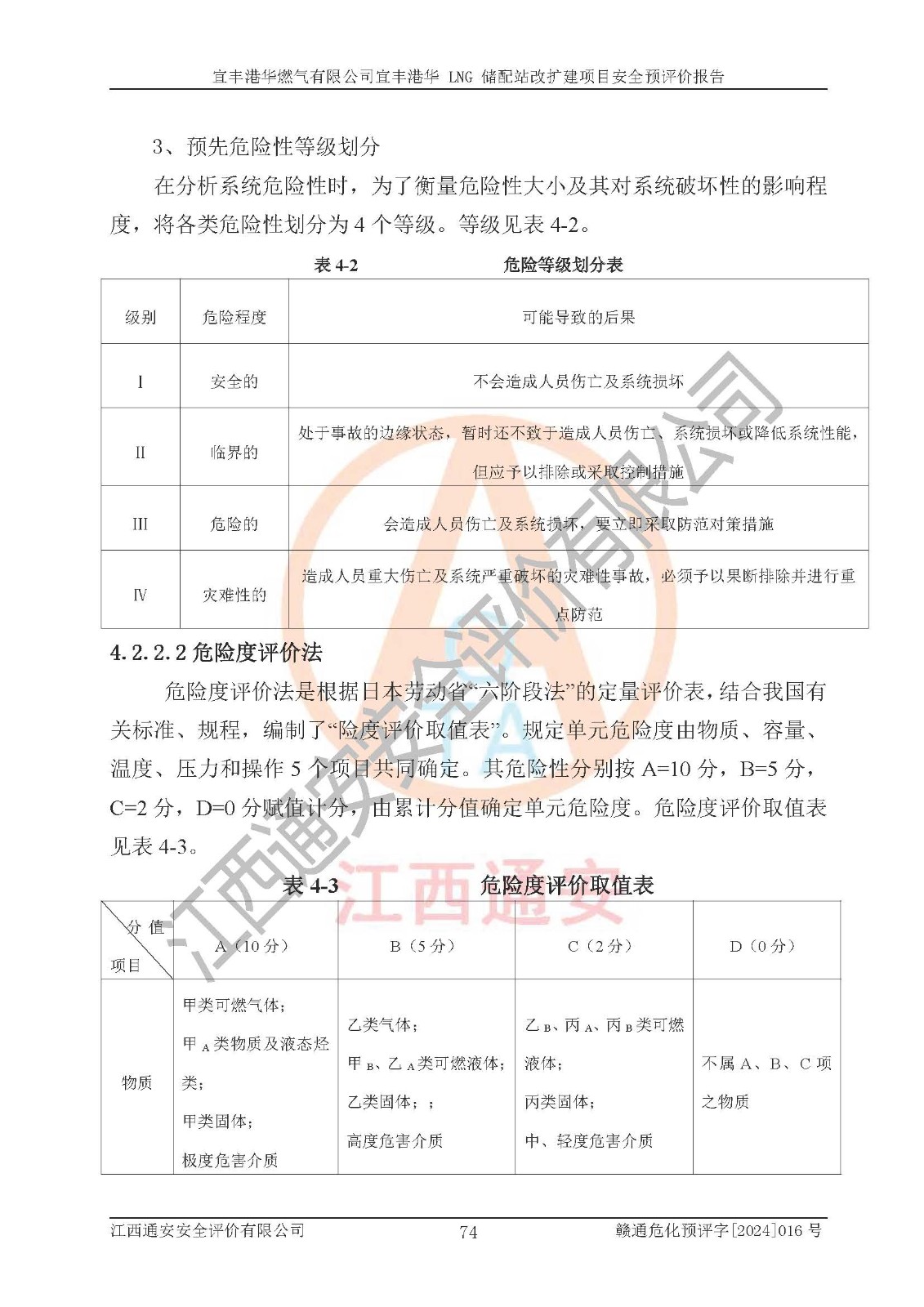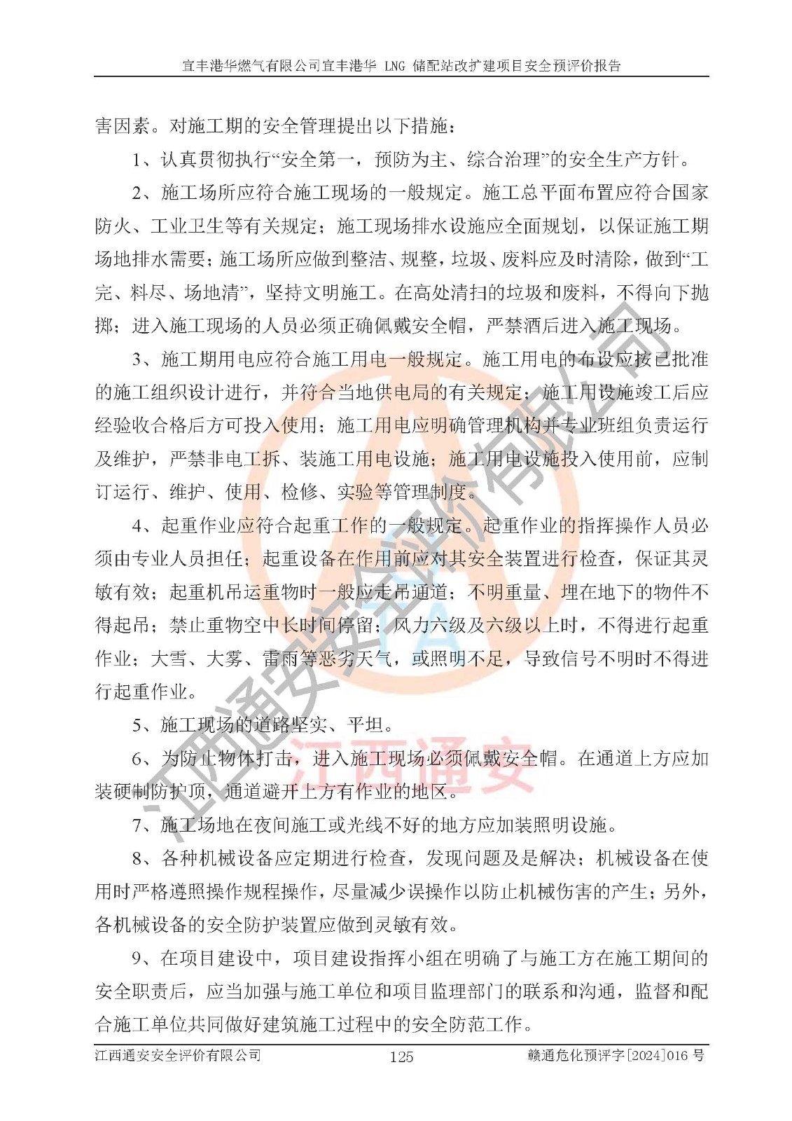 其它 | 1、該項(xiàng)目運(yùn)行過程中的主要危險(xiǎn)、有害物質(zhì)有天然氣、四氫噻吩(加臭劑)、柴油等。 2、本項(xiàng)目運(yùn)行過程存在的主要危險(xiǎn)因素為火災(zāi)、爆炸、鍋爐爆炸、中毒和窒息、觸電、灼燙、高處墜落、**傷害、物體打擊、機(jī)械傷害等;有害因素有有毒物質(zhì)、高溫、噪聲等。 3、該項(xiàng)目所在區(qū)域存在的自然危險(xiǎn)、有害因素有地震、雷擊、暴雨等。 4、按《危險(xiǎn)化學(xué)品重大危險(xiǎn)源辨識(shí)》(GB18218-2018)的規(guī)定,該項(xiàng)目不構(gòu)成危險(xiǎn)化學(xué)品重大危險(xiǎn)源。 5、經(jīng)辨識(shí),該項(xiàng)目涉及的天然氣屬于重點(diǎn)監(jiān)管的危險(xiǎn)化學(xué)品,不涉及劇毒化學(xué)品、易制毒化學(xué)品、監(jiān)控化學(xué)品和易制爆化學(xué)品 9、該項(xiàng)目站場(chǎng)周邊環(huán)境防火間距符合標(biāo)準(zhǔn)、規(guī)范要求,選址符合法律法規(guī)等的規(guī)定和要求。 10、該項(xiàng)目總平面布置、工藝裝置區(qū)、自動(dòng)控制等符合標(biāo)準(zhǔn)、規(guī)范的要求。 11、預(yù)先危險(xiǎn)性分析表明火災(zāi)、爆炸、鍋爐爆炸的危險(xiǎn)等級(jí)為Ⅲ級(jí),觸電、中毒與窒息等危險(xiǎn)有害因素的危險(xiǎn)等級(jí)均為Ⅱ級(jí)。 12、危險(xiǎn)度評(píng)價(jià)結(jié)果:工藝裝置區(qū)得分為14分,等級(jí)為Ⅱ級(jí),危險(xiǎn)程度為中度危險(xiǎn)。 該項(xiàng)目按照《安全生產(chǎn)法》、《城鎮(zhèn)燃?xì)夤芾項(xiàng)l例》、《建設(shè)項(xiàng)目安全設(shè)施“三同時(shí)”監(jiān)督管理辦法》等法律法規(guī)的規(guī)定和要求進(jìn)行安全預(yù)評(píng)價(jià),保障了建設(shè)項(xiàng)目安全設(shè)施與主體工程同時(shí)設(shè)計(jì)、同時(shí)施工、同時(shí)投入生產(chǎn)和使用的“三同時(shí)”的要求。 該項(xiàng)目在下一步的設(shè)計(jì)、施工中,建設(shè)單位應(yīng)認(rèn)真執(zhí)行**的有關(guān)法律、法規(guī)、標(biāo)準(zhǔn)、規(guī)范,將本報(bào)告提出的安全措施落實(shí)到位;完善各項(xiàng)安全規(guī)章制度、事故應(yīng)急預(yù)案,并認(rèn)真的學(xué)習(xí)和演練;在生產(chǎn)運(yùn)行過程中,保障各項(xiàng)安全設(shè)施可靠,**;操作人員嚴(yán)格執(zhí)行安全操作規(guī)程,該項(xiàng)目的危險(xiǎn)是可以得到**控制的,項(xiàng)目建成后的安全運(yùn)行是有保障的。 結(jié)論:宜豐港華燃?xì)庥邢薰疽素S港華 LNG 儲(chǔ)配站改擴(kuò)建項(xiàng)目的危險(xiǎn)、有害因素可得到**控制,風(fēng)險(xiǎn)在可接受范圍內(nèi),本建設(shè)項(xiàng)目從安全方面分析可行,風(fēng)險(xiǎn)程度在可以接受范圍內(nèi)。
