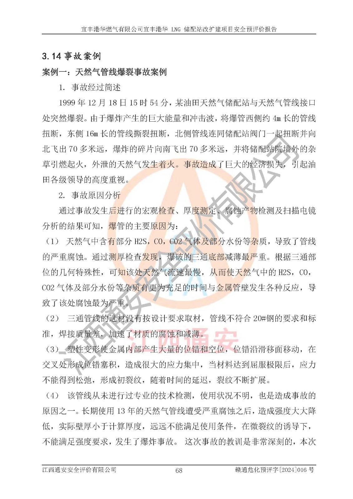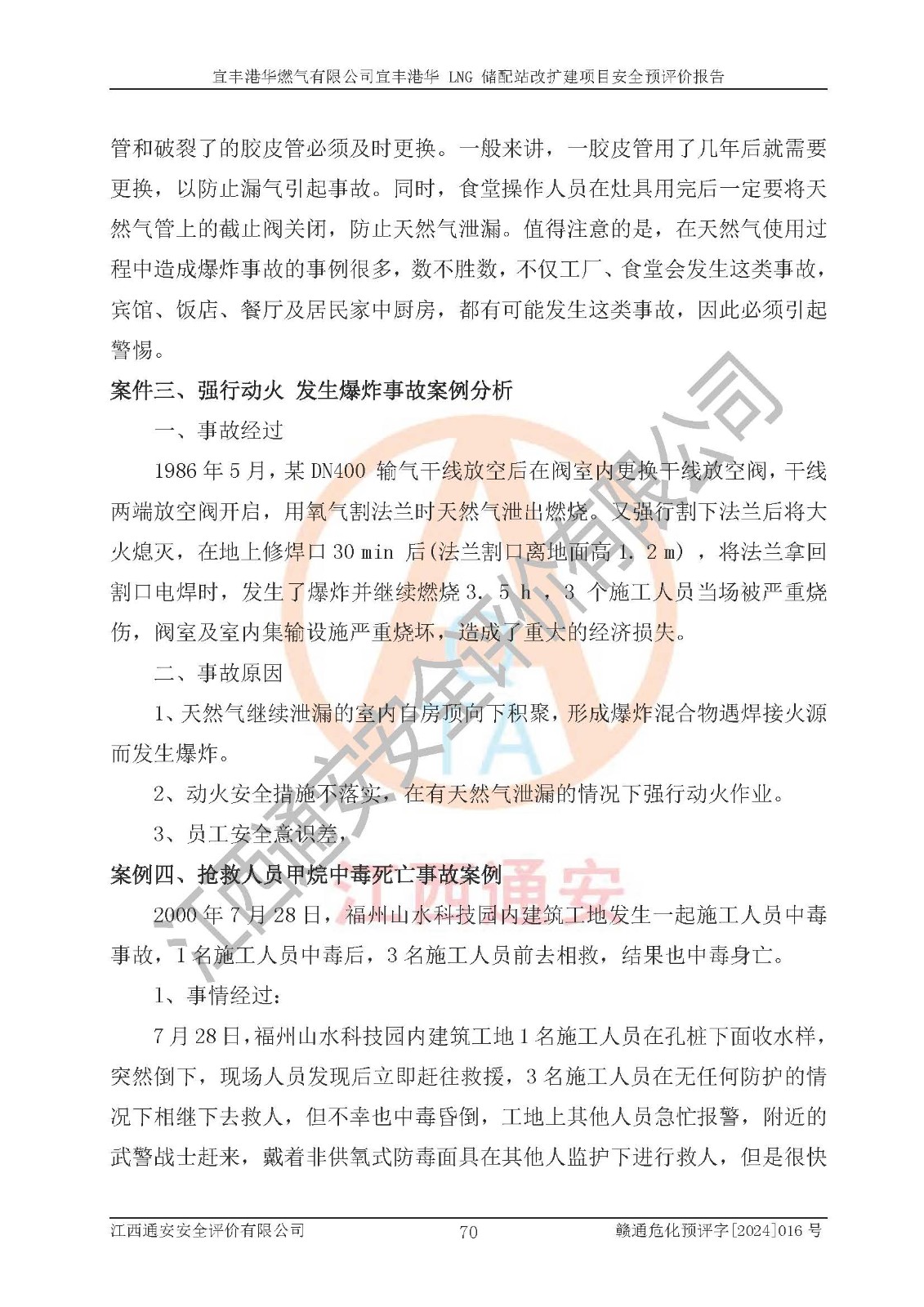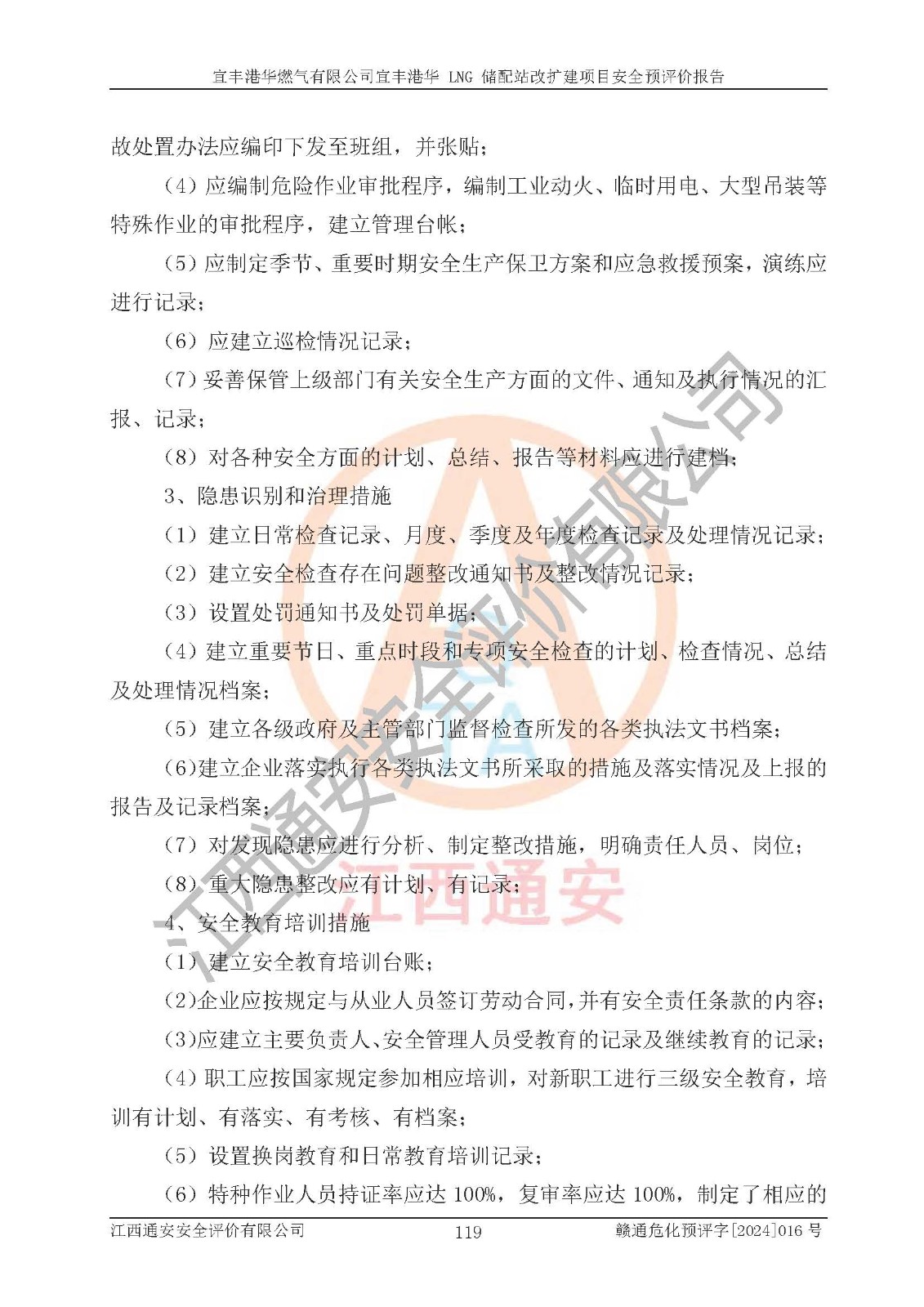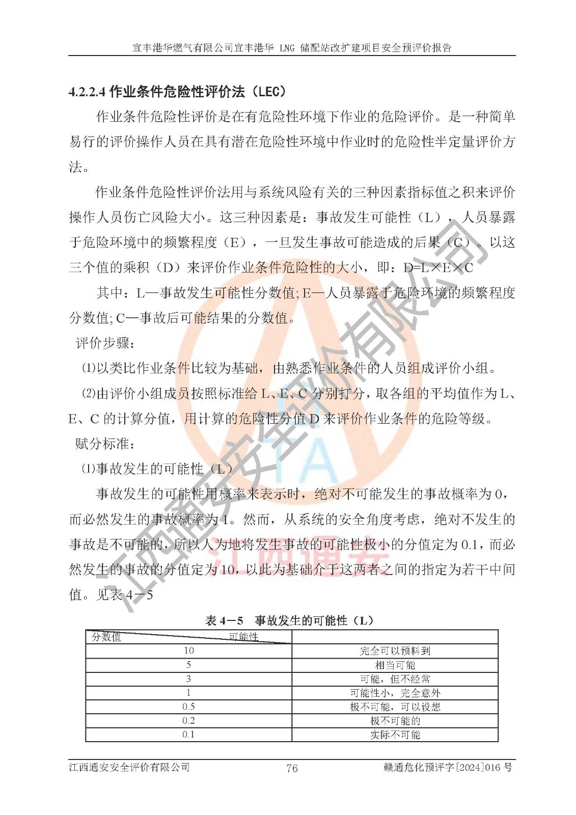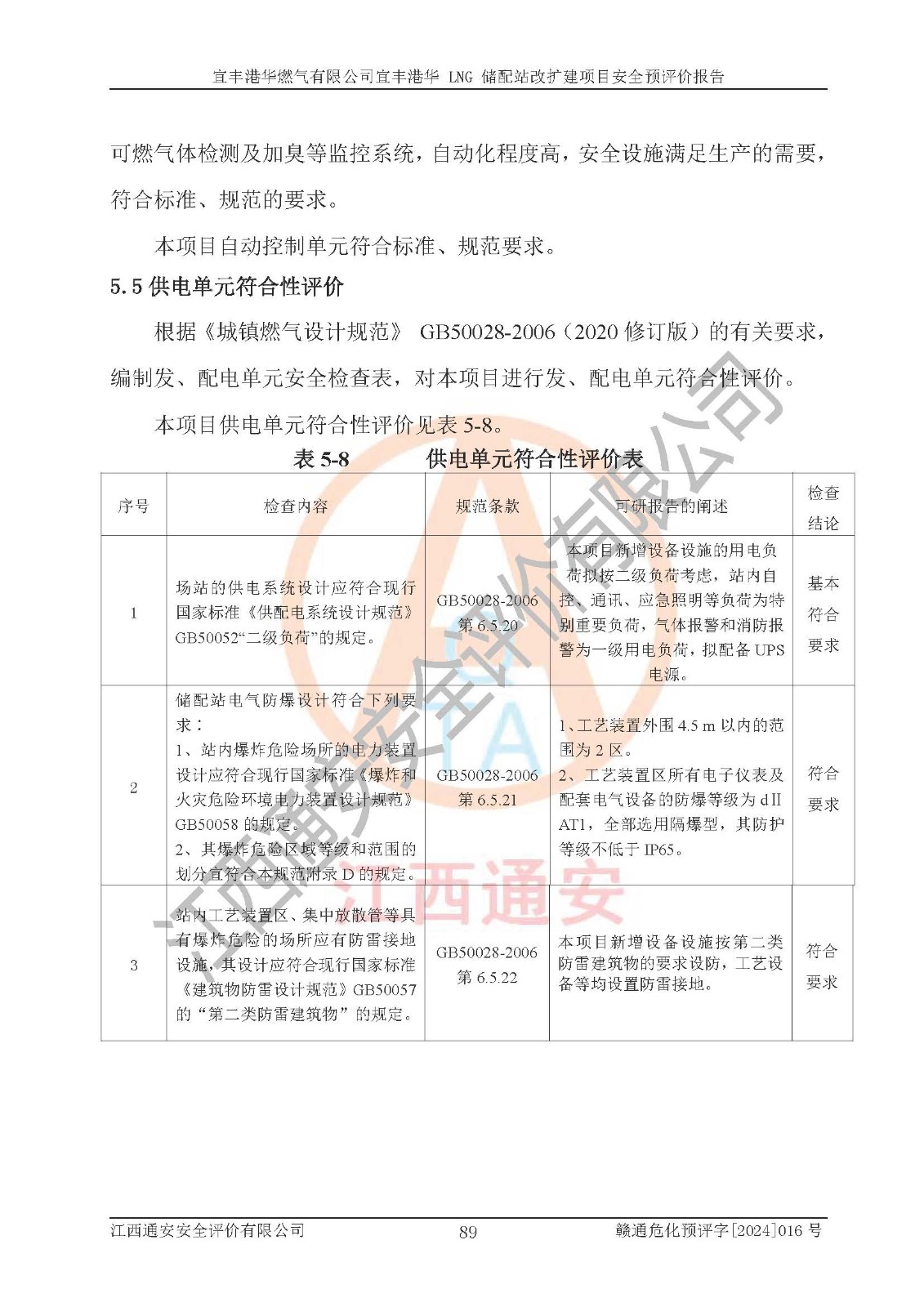 其它 | 1、該項(xiàng)目運(yùn)行過程中的主要危險(xiǎn)、有害物質(zhì)有天然氣、四氫噻吩(加臭劑)、柴油等。 2、本項(xiàng)目運(yùn)行過程存在的主要危險(xiǎn)因素為火災(zāi)、爆炸、鍋爐爆炸、中毒和窒息、觸電、灼燙、高處墜落、**傷害、物體打擊、機(jī)械傷害等;有害因素有有毒物質(zhì)、高溫、噪聲等。 3、該項(xiàng)目所在區(qū)域存在的自然危險(xiǎn)、有害因素有地震、雷擊、暴雨等。 4、按《危險(xiǎn)化學(xué)品重大危險(xiǎn)源辨識(shí)》(GB18218-2018)的規(guī)定,該項(xiàng)目不構(gòu)成危險(xiǎn)化學(xué)品重大危險(xiǎn)源。 5、經(jīng)辨識(shí),該項(xiàng)目涉及的天然氣屬于重點(diǎn)監(jiān)管的危險(xiǎn)化學(xué)品,不涉及劇毒化學(xué)品、易制毒化學(xué)品、監(jiān)控化學(xué)品和易制爆化學(xué)品 9、該項(xiàng)目站場(chǎng)周邊環(huán)境防火間距符合標(biāo)準(zhǔn)、規(guī)范要求,選址符合法律法規(guī)等的規(guī)定和要求。 10、該項(xiàng)目總平面布置、工藝裝置區(qū)、自動(dòng)控制等符合標(biāo)準(zhǔn)、規(guī)范的要求。 11、預(yù)先危險(xiǎn)性分析表明火災(zāi)、爆炸、鍋爐爆炸的危險(xiǎn)等級(jí)為Ⅲ級(jí),觸電、中毒與窒息等危險(xiǎn)有害因素的危險(xiǎn)等級(jí)均為Ⅱ級(jí)。 12、危險(xiǎn)度評(píng)價(jià)結(jié)果:工藝裝置區(qū)得分為14分,等級(jí)為Ⅱ級(jí),危險(xiǎn)程度為中度危險(xiǎn)。 該項(xiàng)目按照《安全生產(chǎn)法》、《城鎮(zhèn)燃?xì)夤芾項(xiàng)l例》、《建設(shè)項(xiàng)目安全設(shè)施“三同時(shí)”監(jiān)督管理辦法》等法律法規(guī)的規(guī)定和要求進(jìn)行安全預(yù)評(píng)價(jià),保障了建設(shè)項(xiàng)目安全設(shè)施與主體工程同時(shí)設(shè)計(jì)、同時(shí)施工、同時(shí)投入生產(chǎn)和使用的“三同時(shí)”的要求。 該項(xiàng)目在下一步的設(shè)計(jì)、施工中,建設(shè)單位應(yīng)認(rèn)真執(zhí)行**的有關(guān)法律、法規(guī)、標(biāo)準(zhǔn)、規(guī)范,將本報(bào)告提出的安全措施落實(shí)到位;完善各項(xiàng)安全規(guī)章制度、事故應(yīng)急預(yù)案,并認(rèn)真的學(xué)習(xí)和演練;在生產(chǎn)運(yùn)行過程中,保障各項(xiàng)安全設(shè)施可靠,**;操作人員嚴(yán)格執(zhí)行安全操作規(guī)程,該項(xiàng)目的危險(xiǎn)是可以得到**控制的,項(xiàng)目建成后的安全運(yùn)行是有保障的。 結(jié)論:宜豐港華燃?xì)庥邢薰疽素S港華 LNG 儲(chǔ)配站改擴(kuò)建項(xiàng)目的危險(xiǎn)、有害因素可得到**控制,風(fēng)險(xiǎn)在可接受范圍內(nèi),本建設(shè)項(xiàng)目從安全方面分析可行,風(fēng)險(xiǎn)程度在可以接受范圍內(nèi)。