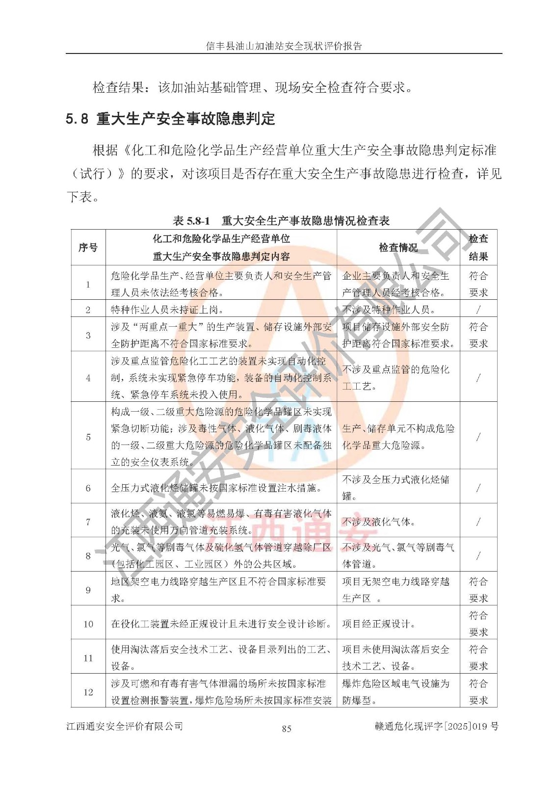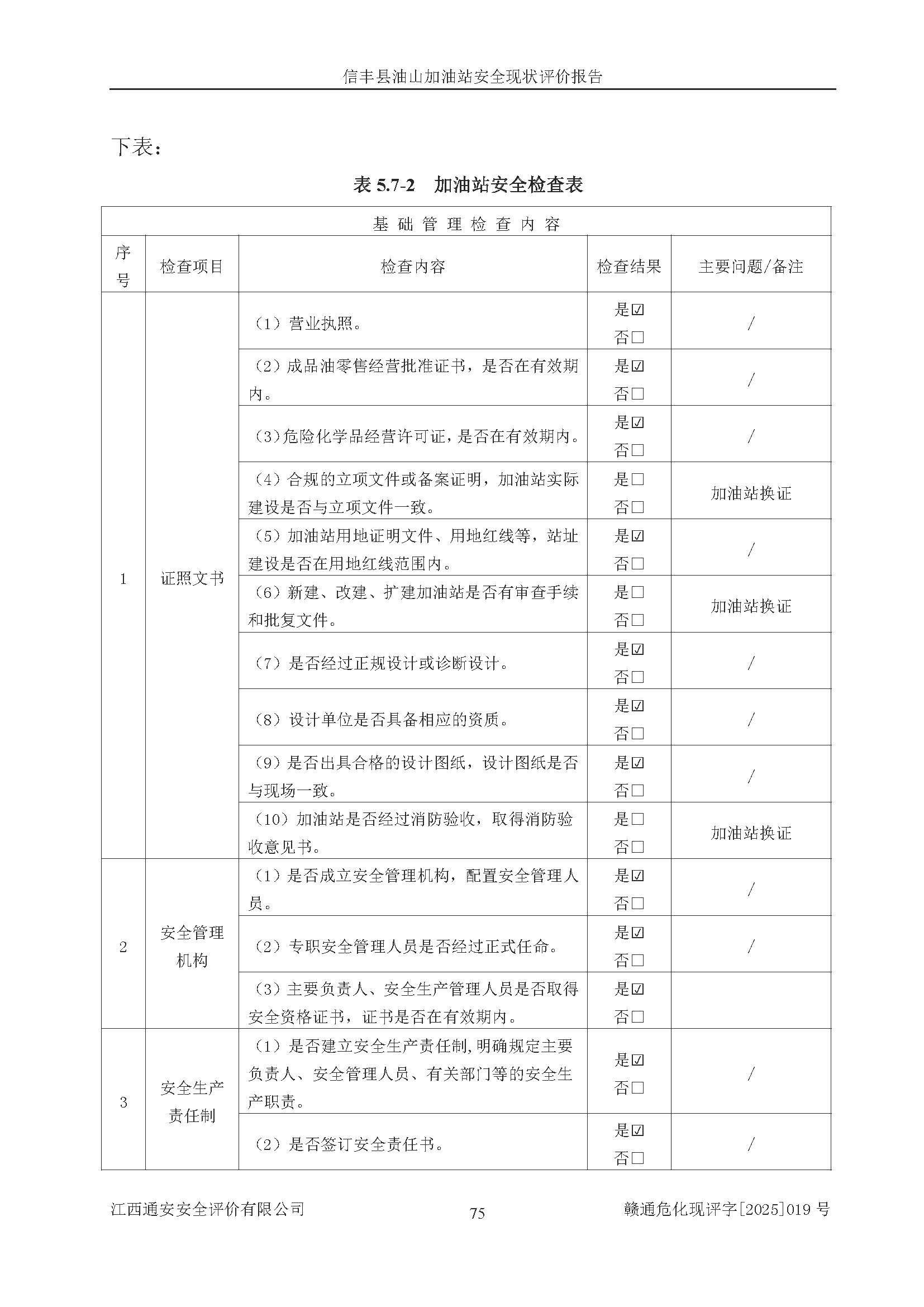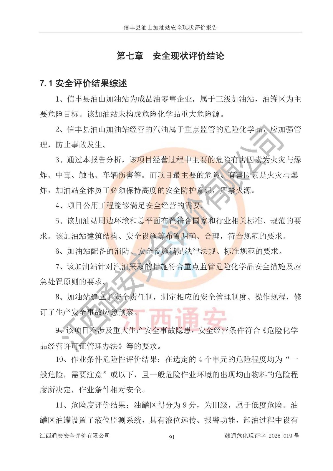 評價結(jié)論 | 信豐縣油山加油站安全現(xiàn)狀符合危險化學(xué)品經(jīng)營安全條件。 | |||