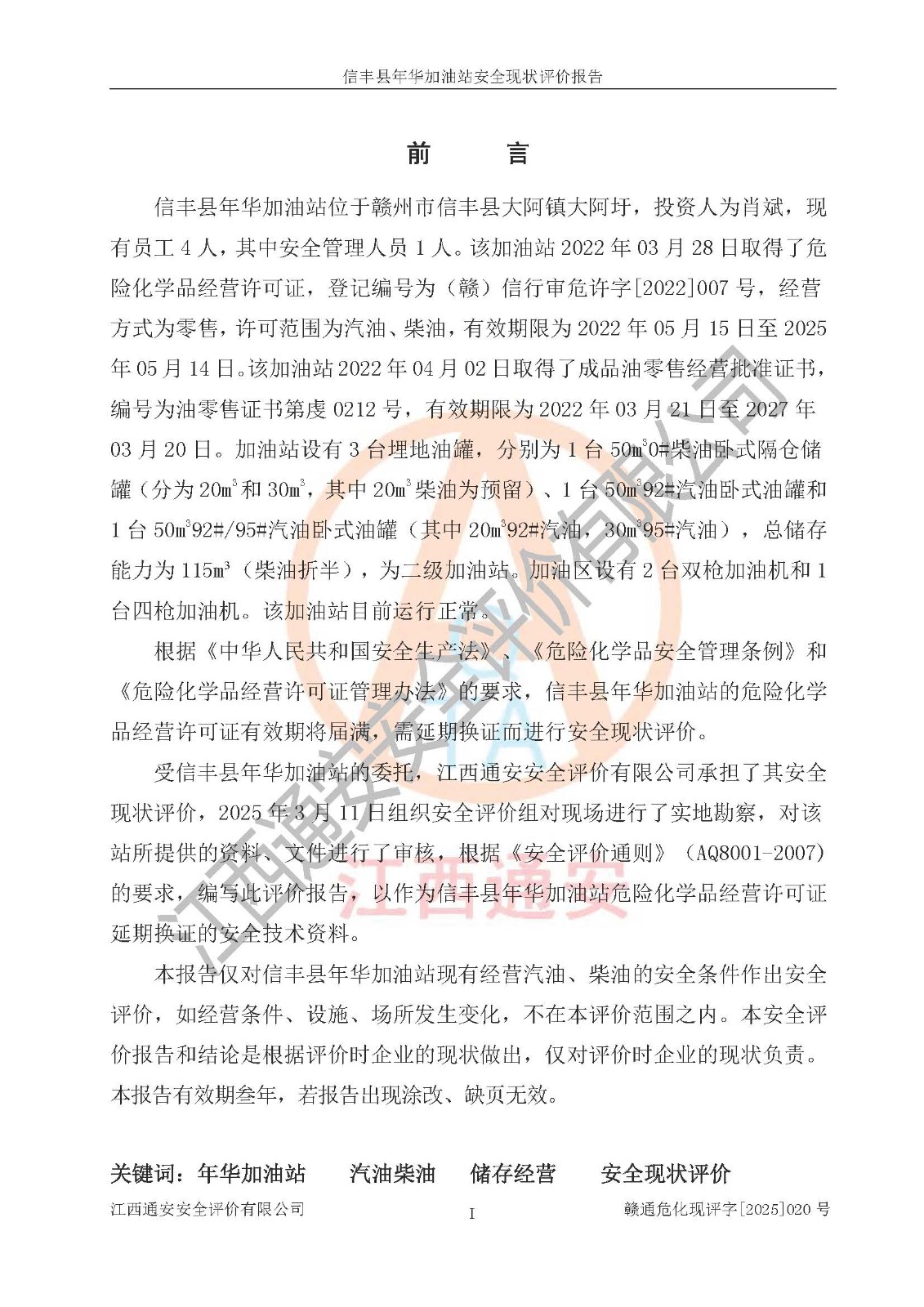 評(píng)價(jià)報(bào)告名稱 | 信豐縣年華加油站安全現(xiàn)狀評(píng)價(jià)報(bào)告 | |||