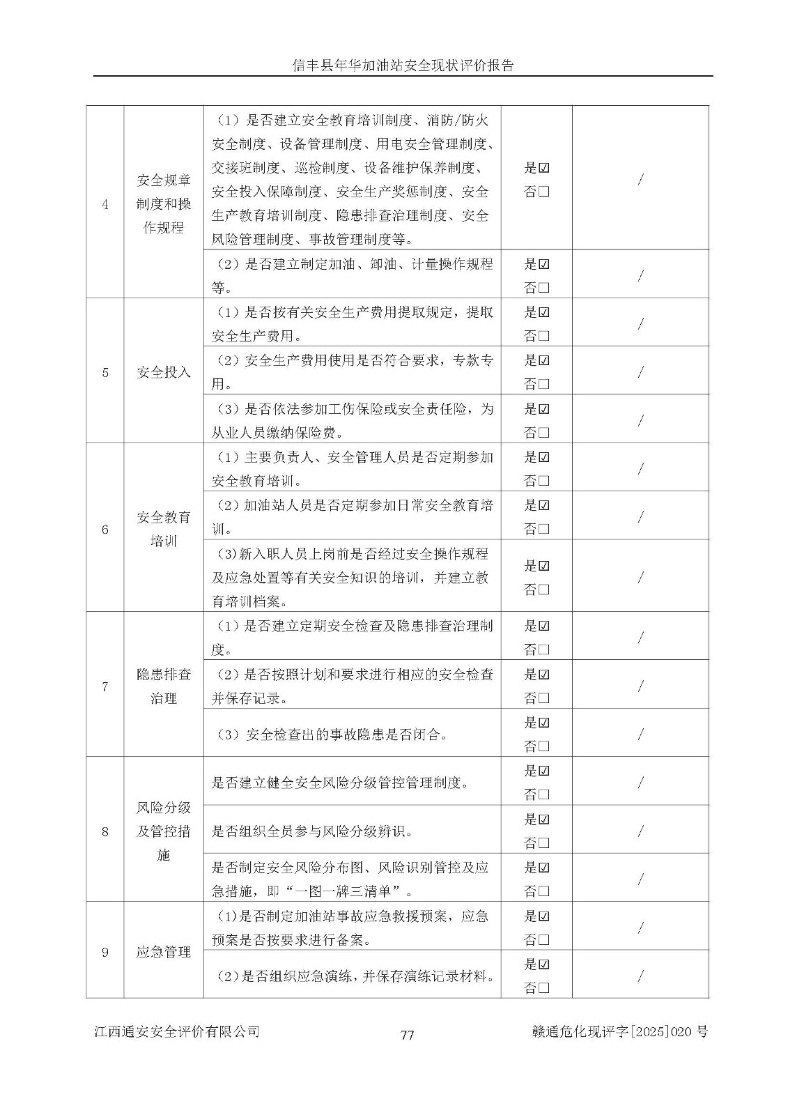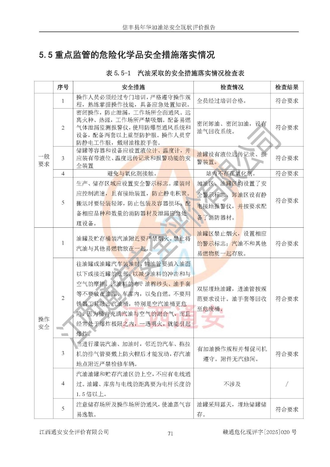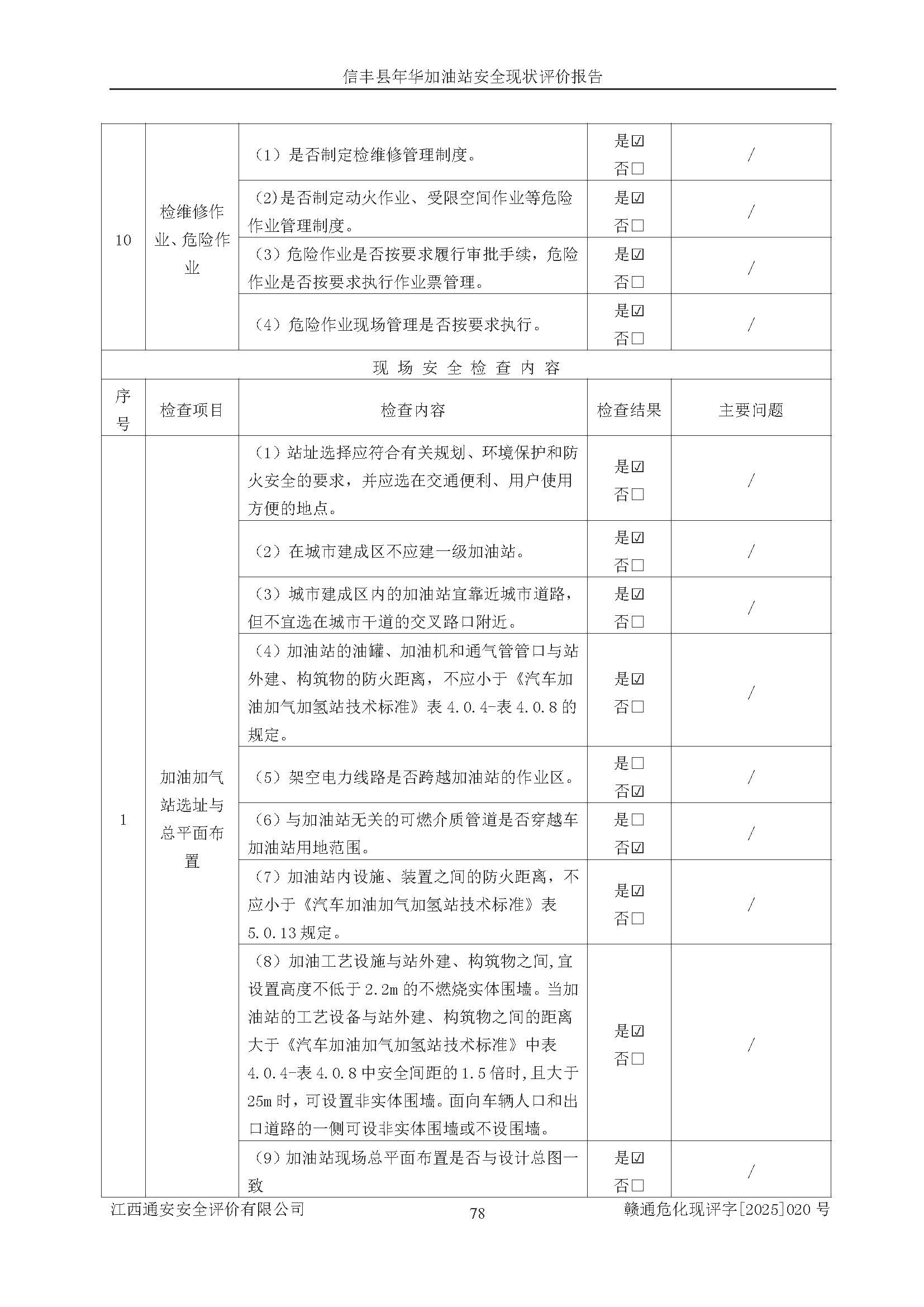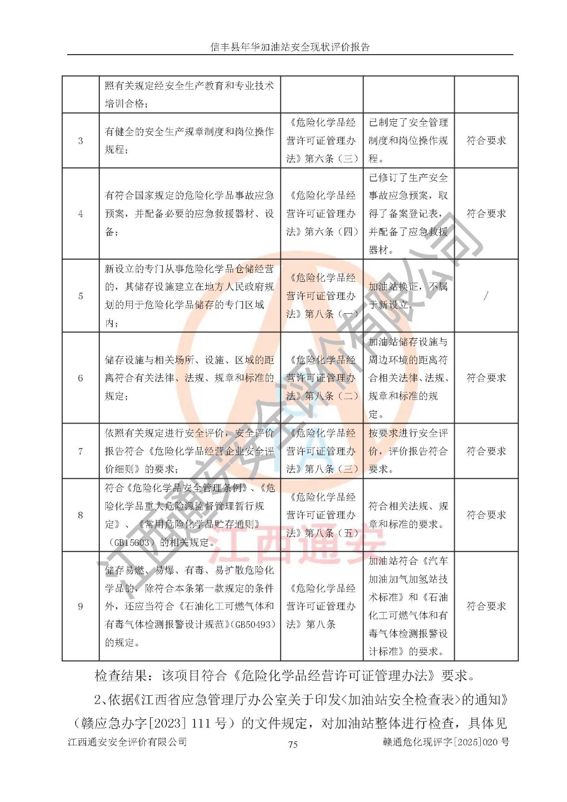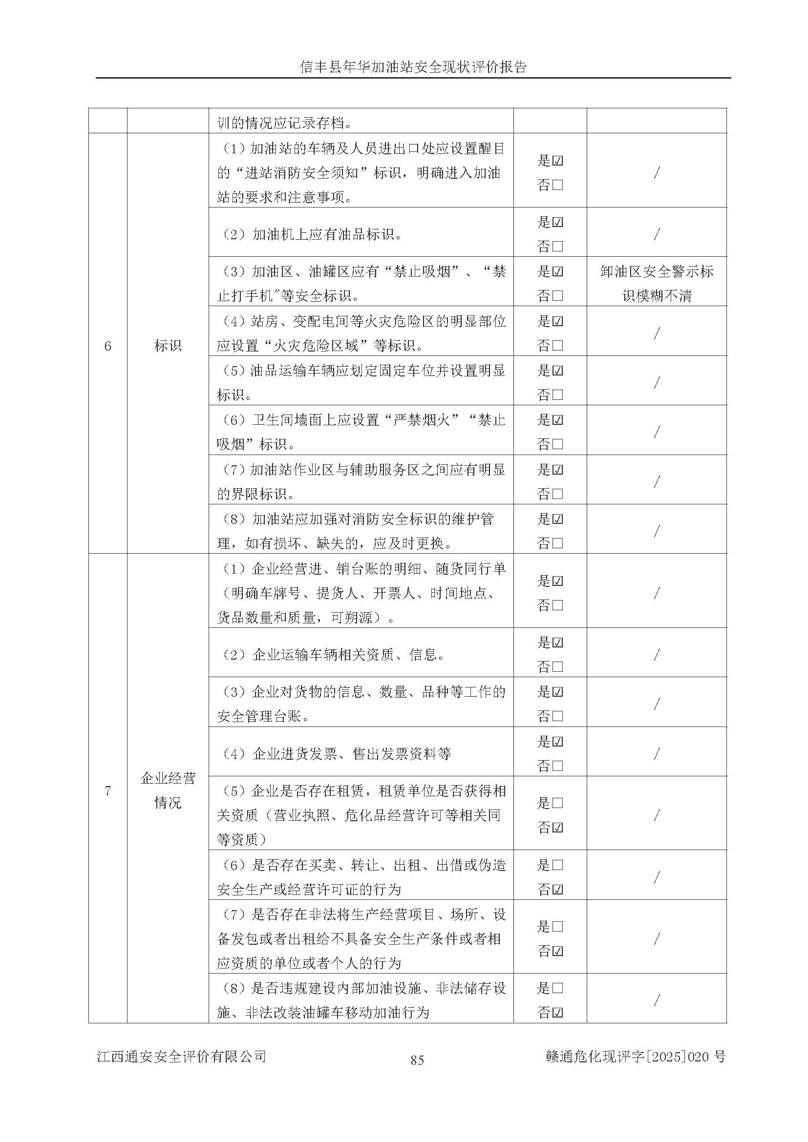 評(píng)價(jià)結(jié)論 | 信豐縣年華加油站安全現(xiàn)狀符合危險(xiǎn)化學(xué)品經(jīng)營(yíng)安全條件。 | |||