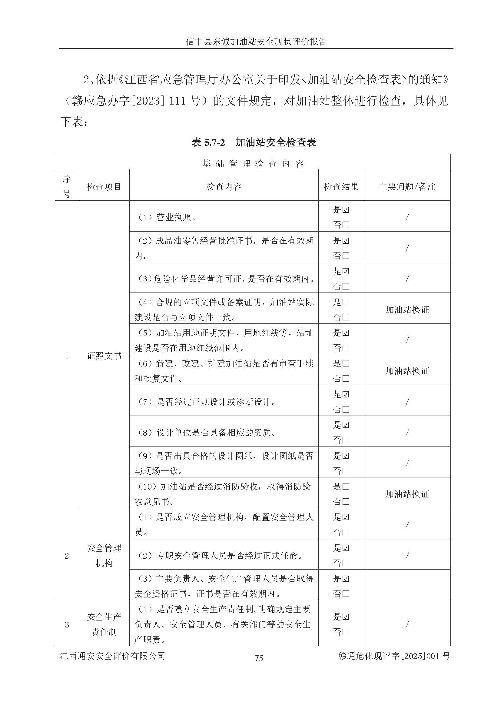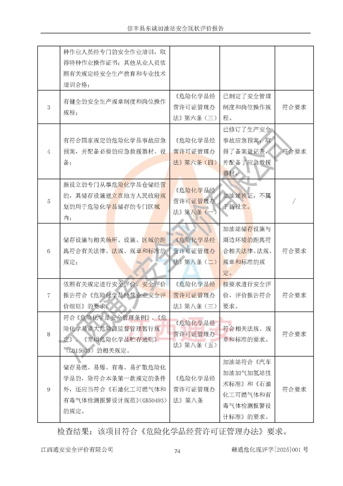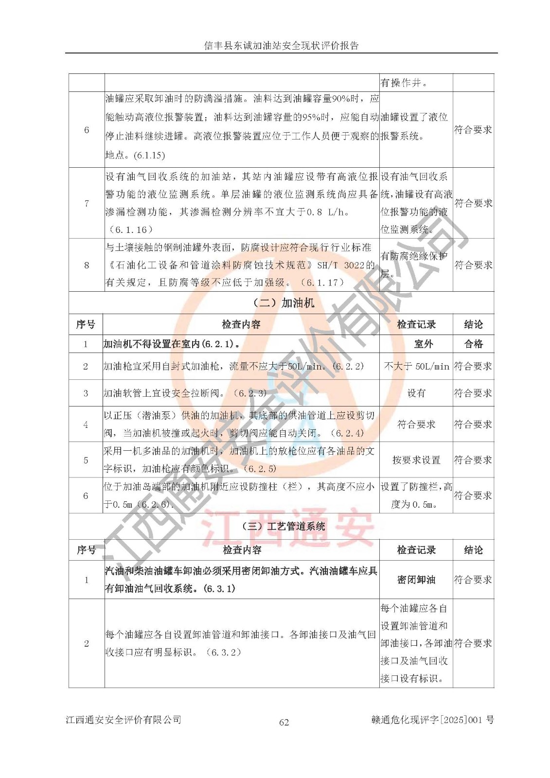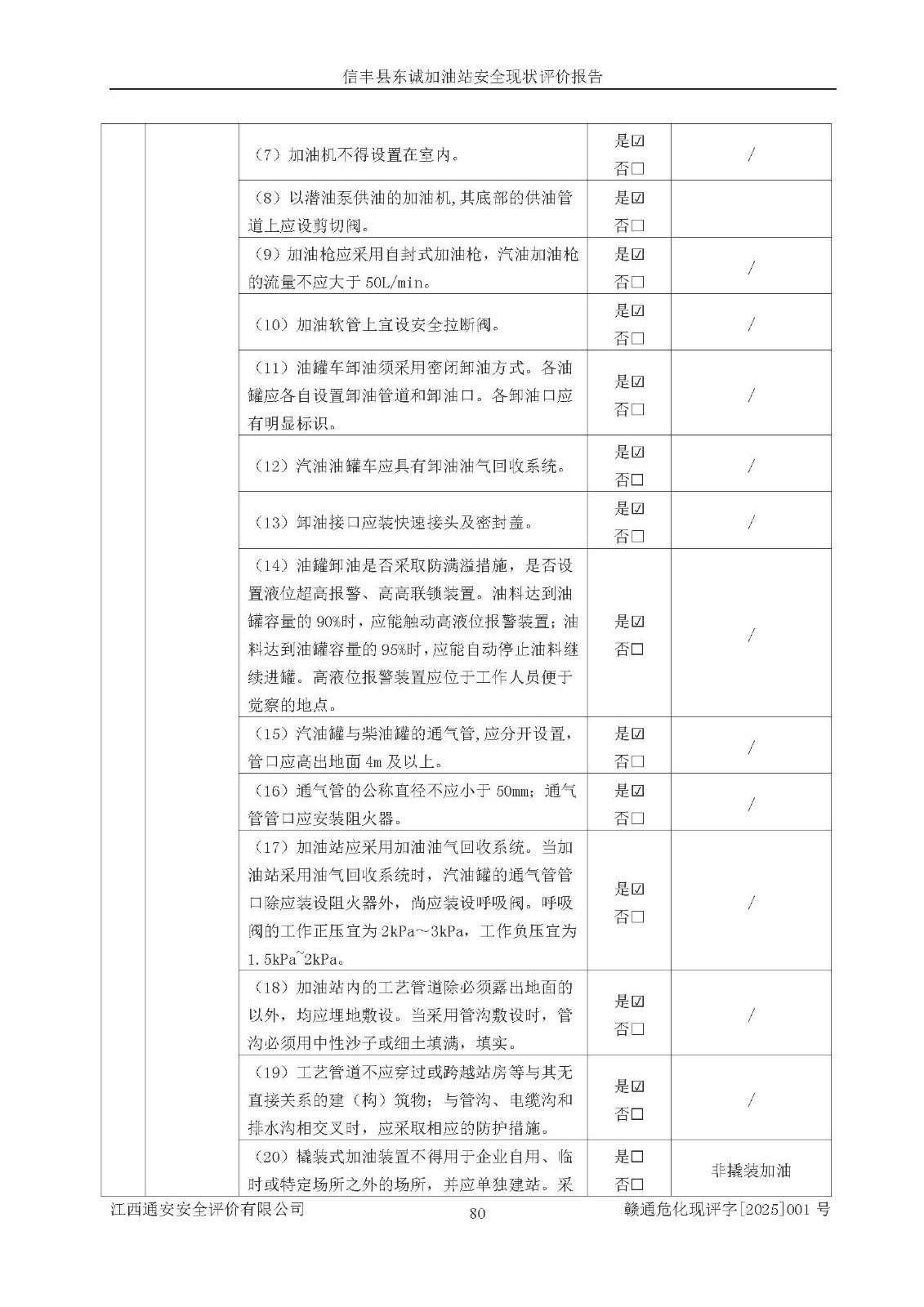 評(píng)價(jià)結(jié)論 | 信豐縣東誠(chéng)加油站安全現(xiàn)狀符合危險(xiǎn)化學(xué)品經(jīng)營(yíng)安全條件。 | |||