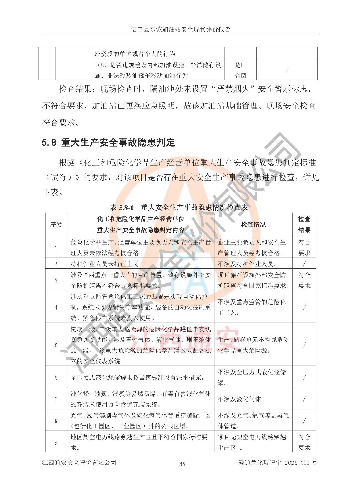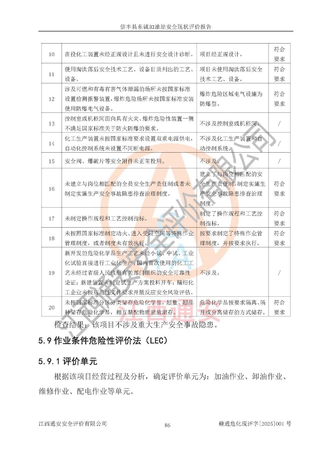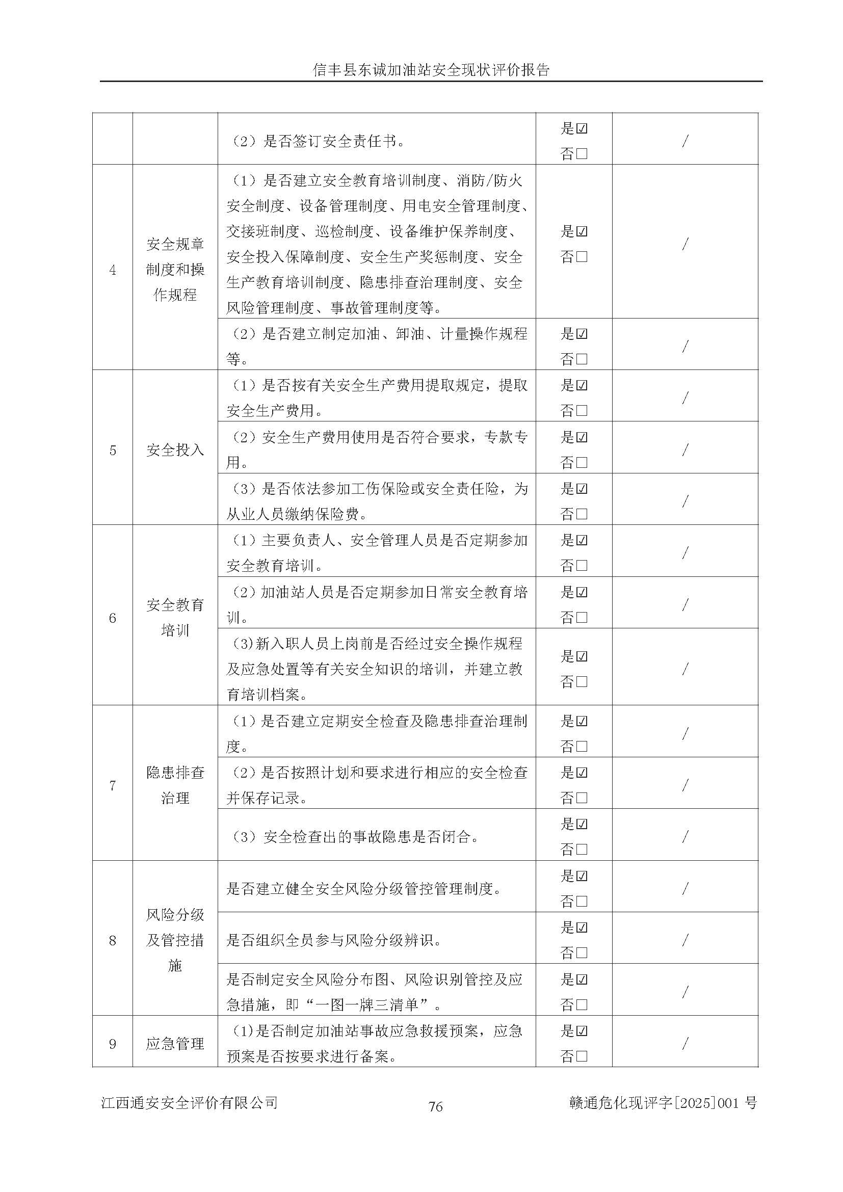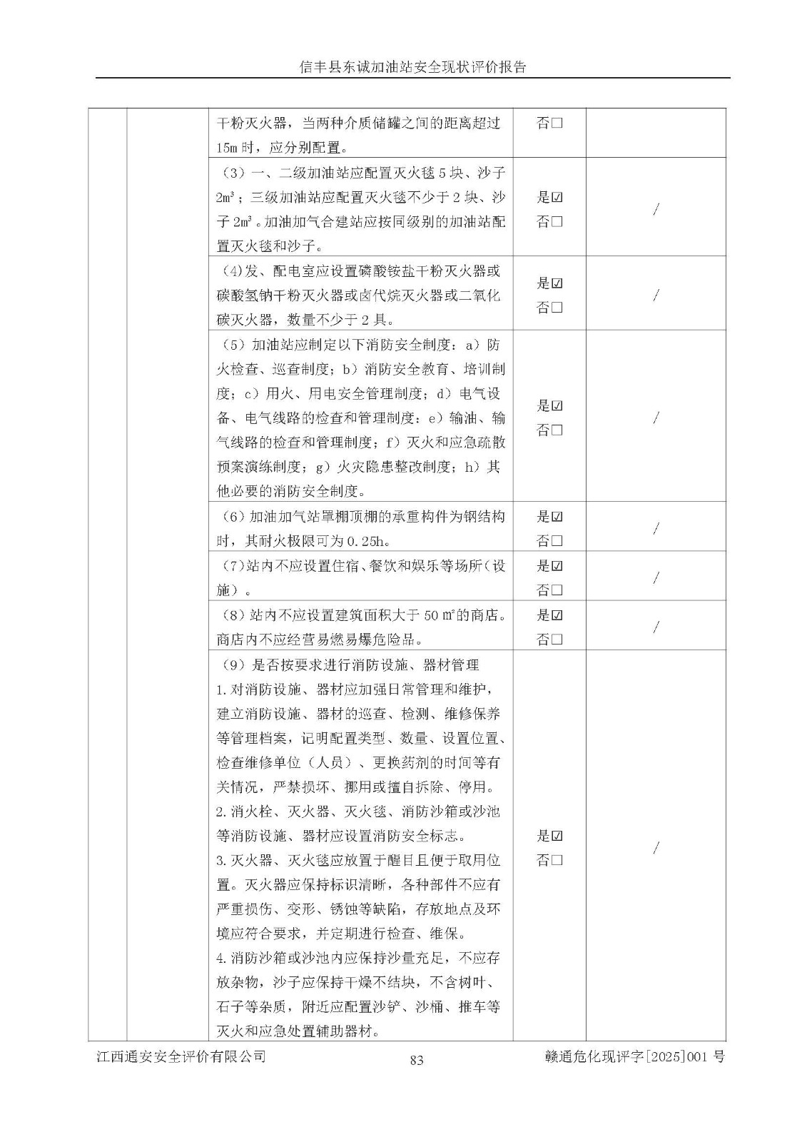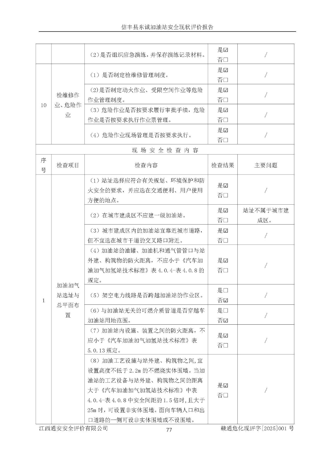 評(píng)價(jià)結(jié)論 | 信豐縣東誠(chéng)加油站安全現(xiàn)狀符合危險(xiǎn)化學(xué)品經(jīng)營(yíng)安全條件。 | |||