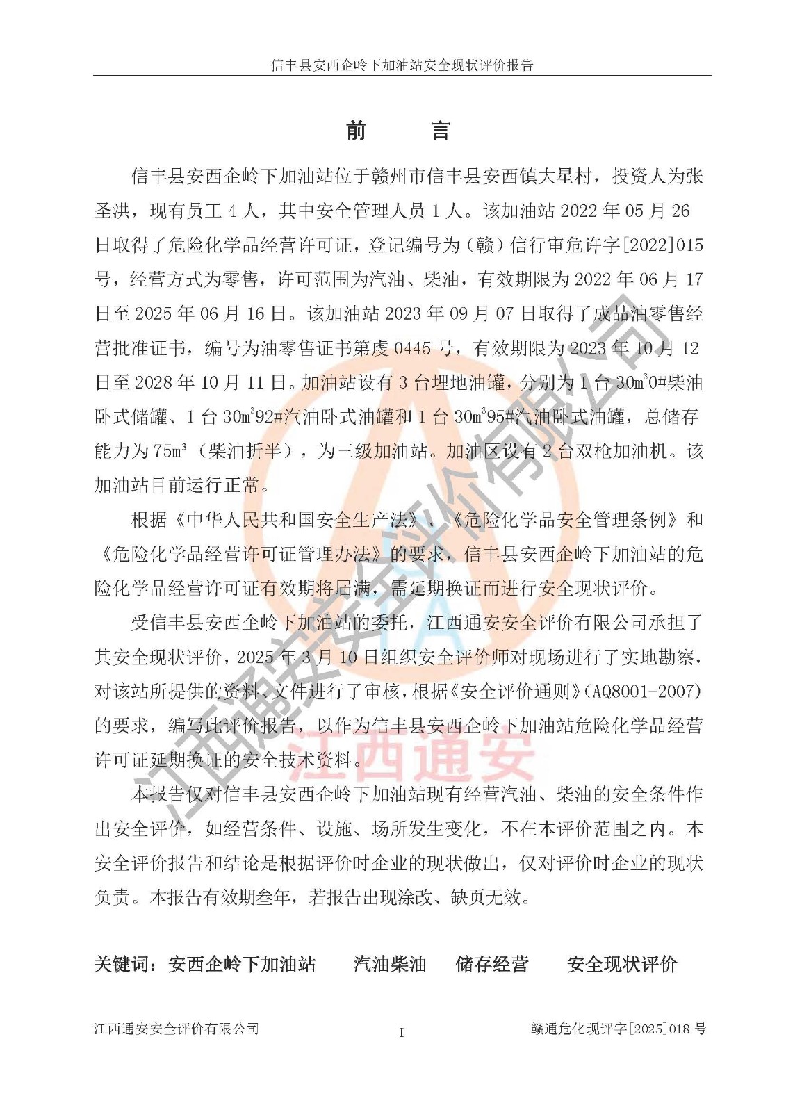 評(píng)價(jià)報(bào)告名稱 | 信豐縣安西企嶺下加油站安全現(xiàn)狀評(píng)價(jià)報(bào)告 | |||
