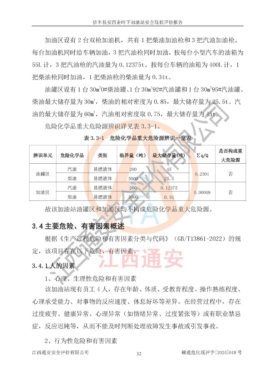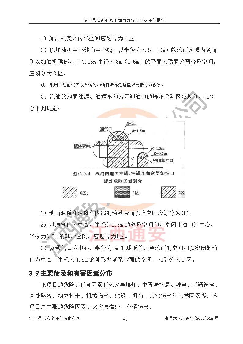 項(xiàng)目簡(jiǎn)介 | 信豐縣安西企嶺下加油站位于贛州市信豐縣安西鎮(zhèn)大星村,投資人為張圣洪,現(xiàn)有員工4人,其中安全管理人員1人。該加油站2022年05月26日取得了危險(xiǎn)化學(xué)品經(jīng)營(yíng)許可證,登記編號(hào)為(贛)信行審危許字[2022]015號(hào),經(jīng)營(yíng)方式為零售,許可范圍為汽油、柴油,**期限為2022年06月17日至2025年06月16日。該加油站2023年09月07日取得了成品油零售經(jīng)營(yíng)批準(zhǔn)證書,編號(hào)為油零售證書第虔0445號(hào),**期限為2023年10月12日至2028年10月11日。加油站設(shè)有3臺(tái)埋地油罐,分別為1臺(tái)30m30#柴油臥式儲(chǔ)罐、1臺(tái)30m392#汽油臥式油罐和1臺(tái)30m395#汽油臥式油罐,總儲(chǔ)存能力為75m3(柴油折半),為三級(jí)加油站。加油區(qū)設(shè)有2臺(tái)雙槍加油機(jī)。該加油站目前運(yùn)行正常。 | |||