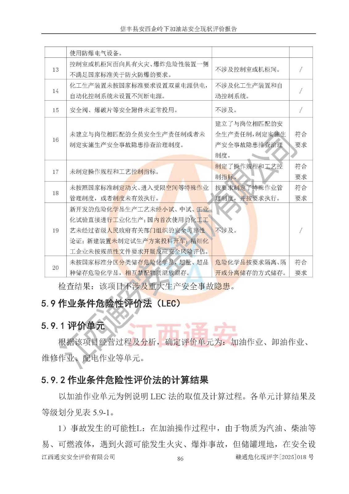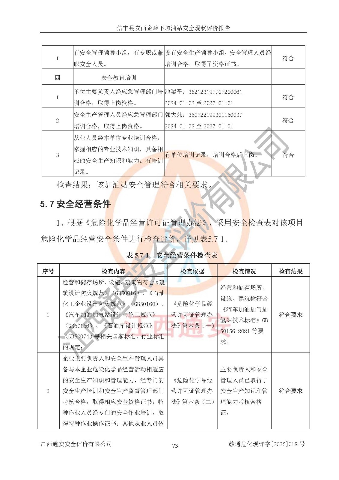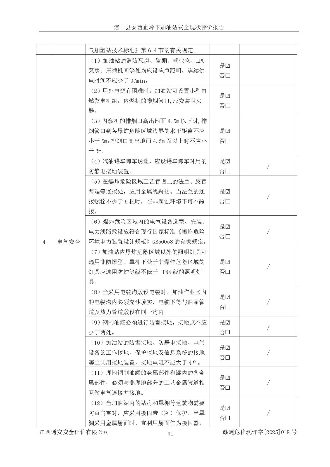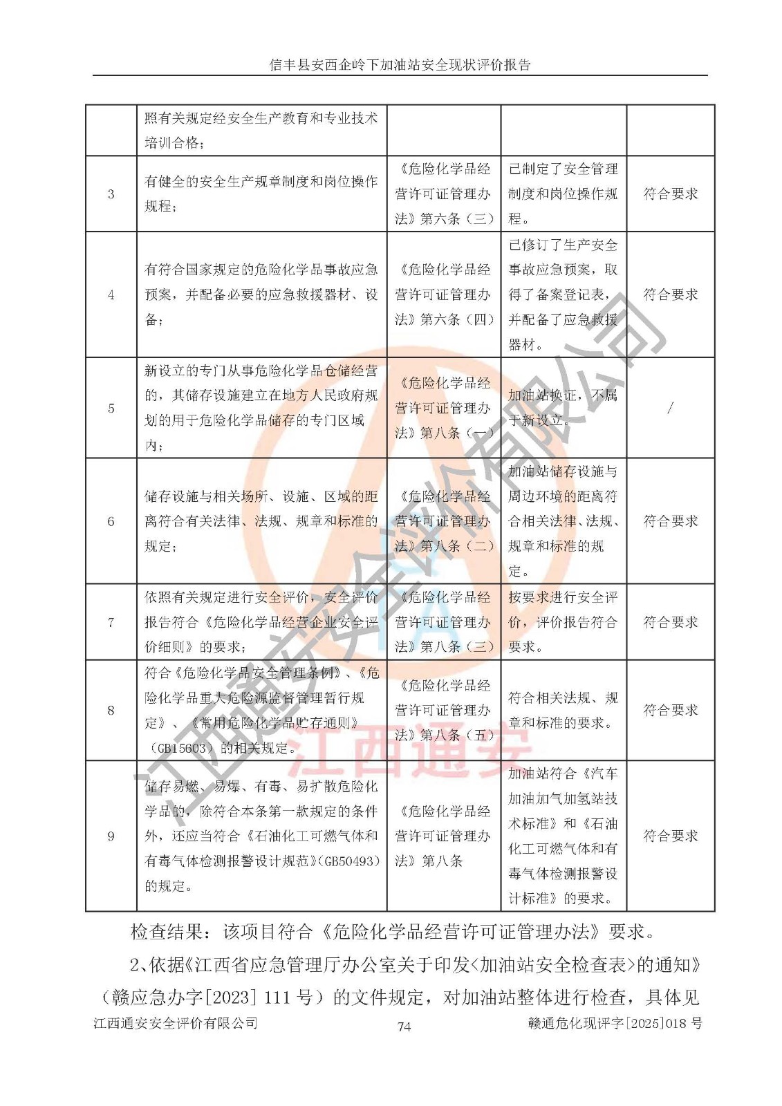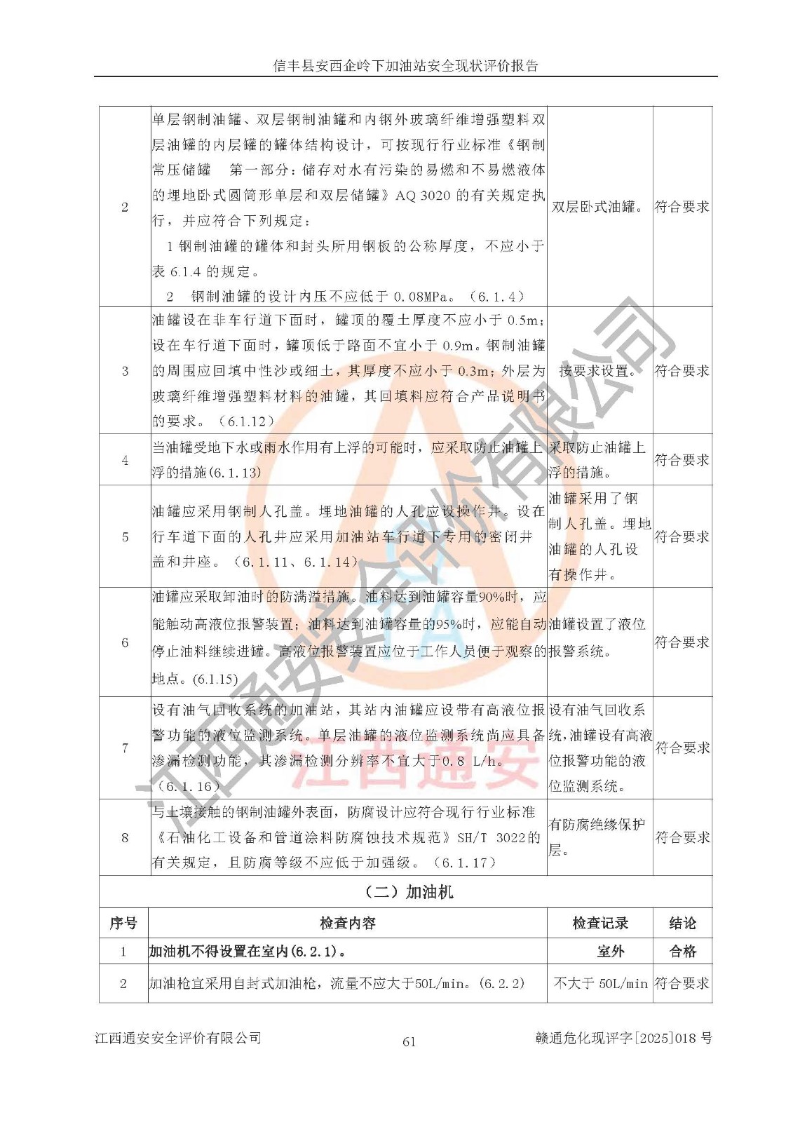評(píng)價(jià)結(jié)論 | 信豐縣安西企嶺下加油站安全現(xiàn)狀符合危險(xiǎn)化學(xué)品經(jīng)營(yíng)安全條件。 | |||