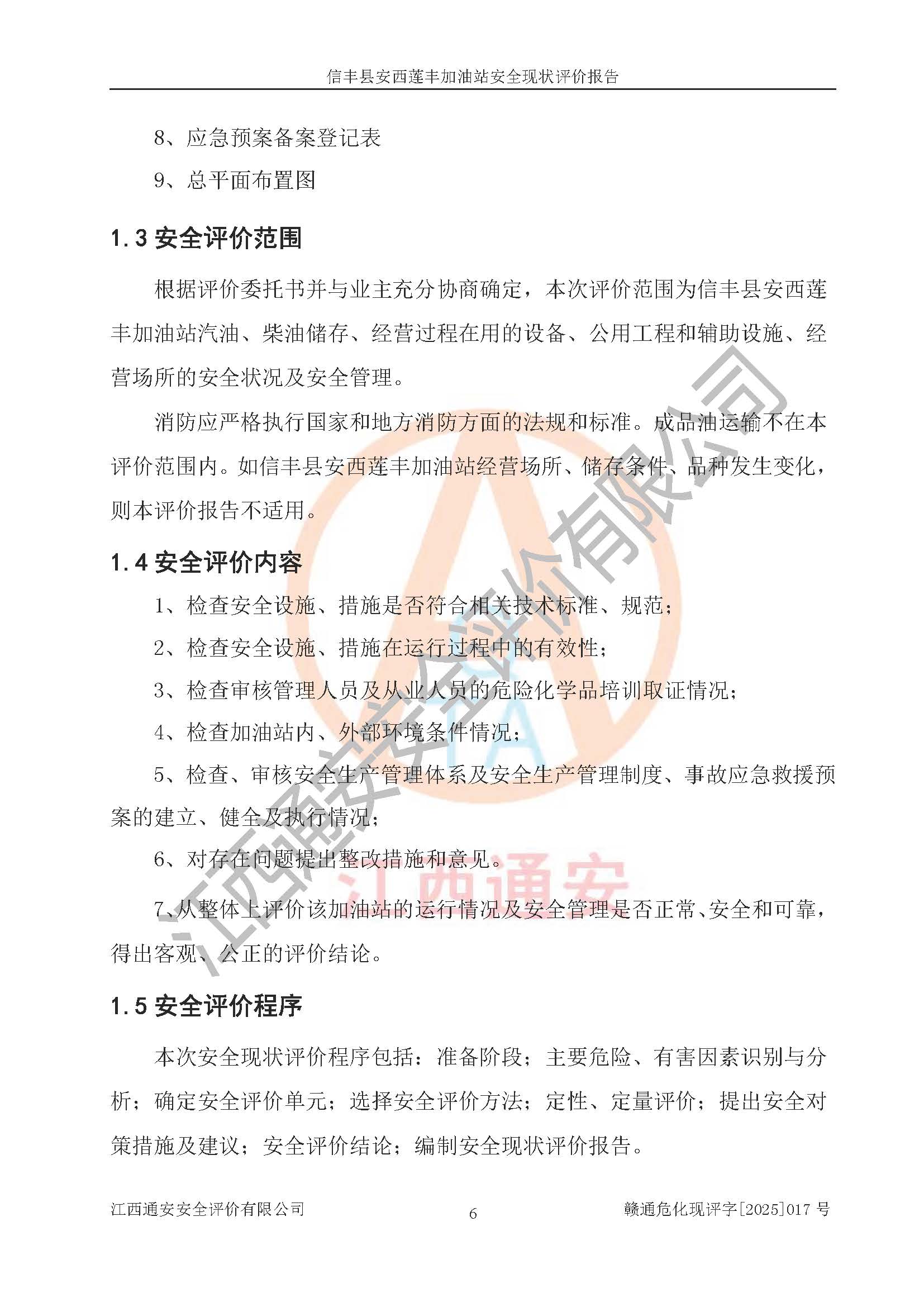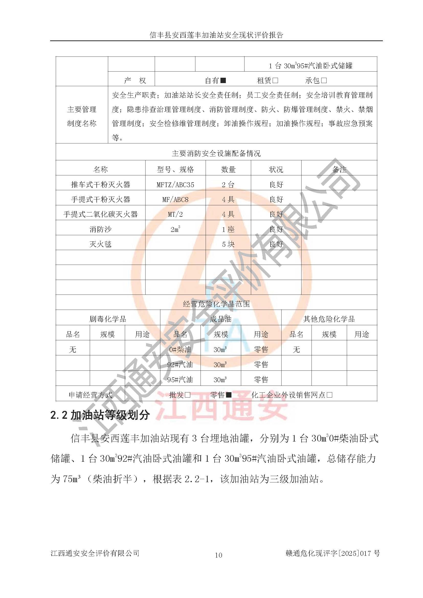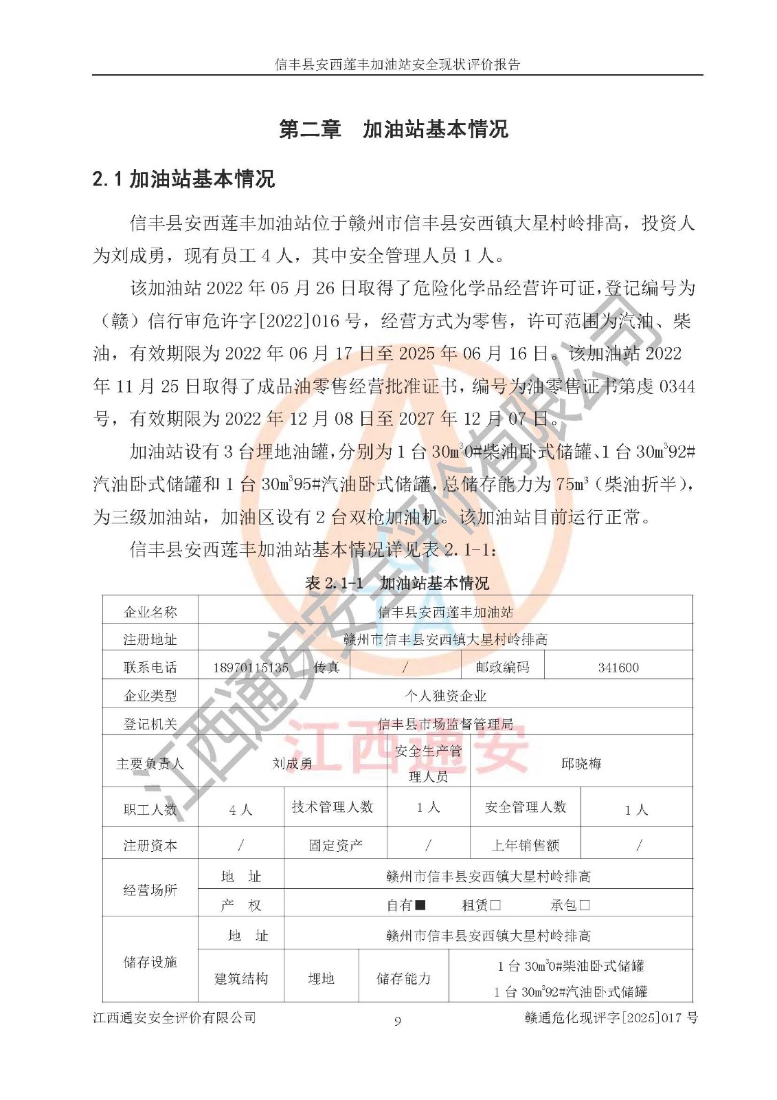 評價報告名稱 | 信豐縣安西蓮豐加油站安全現(xiàn)狀評價報告 | |||