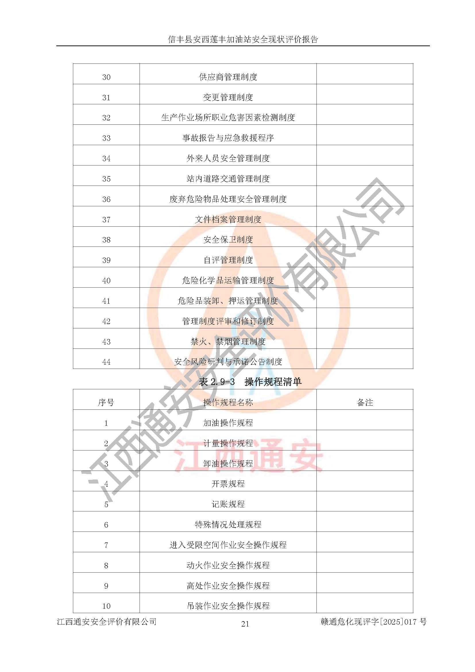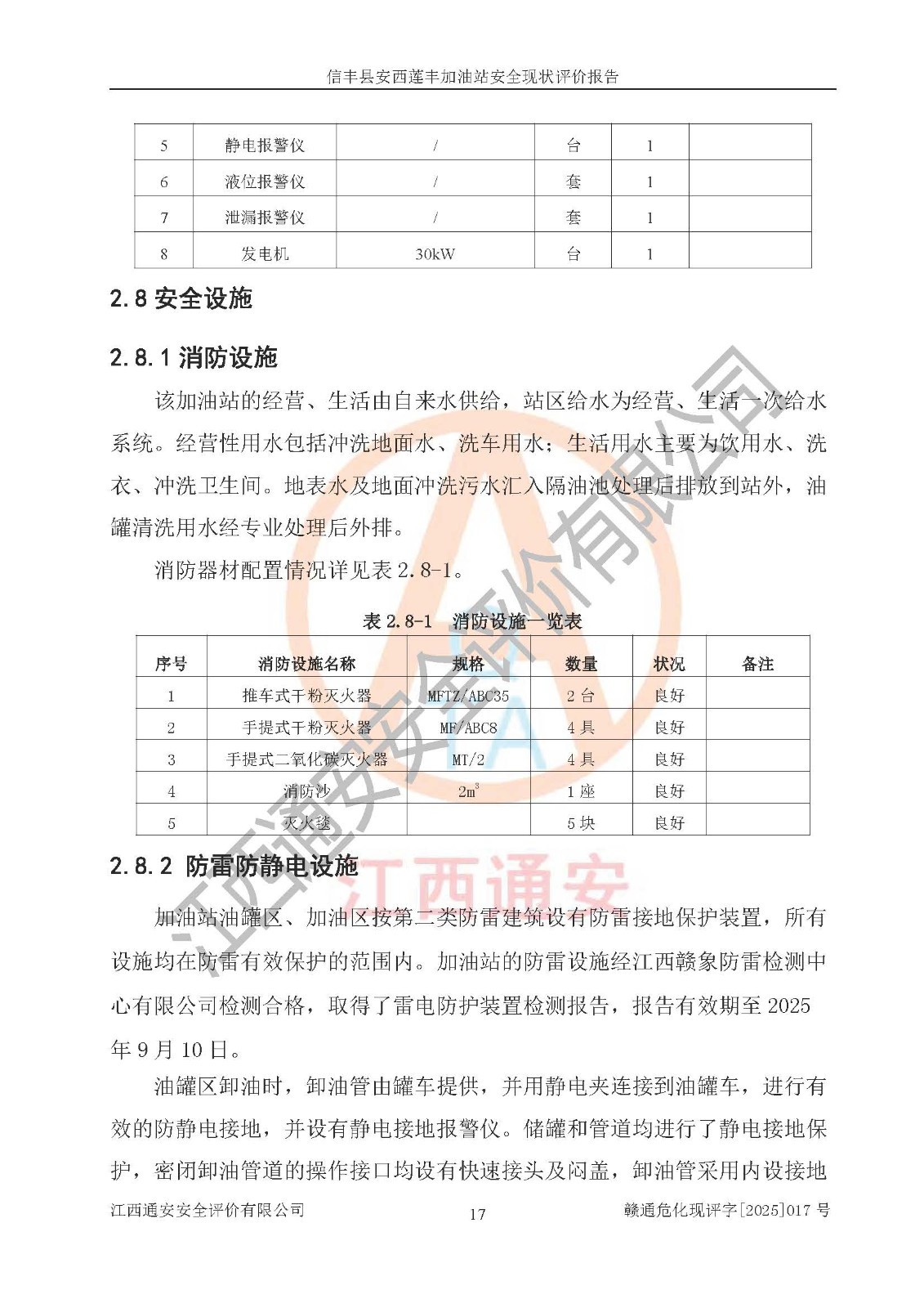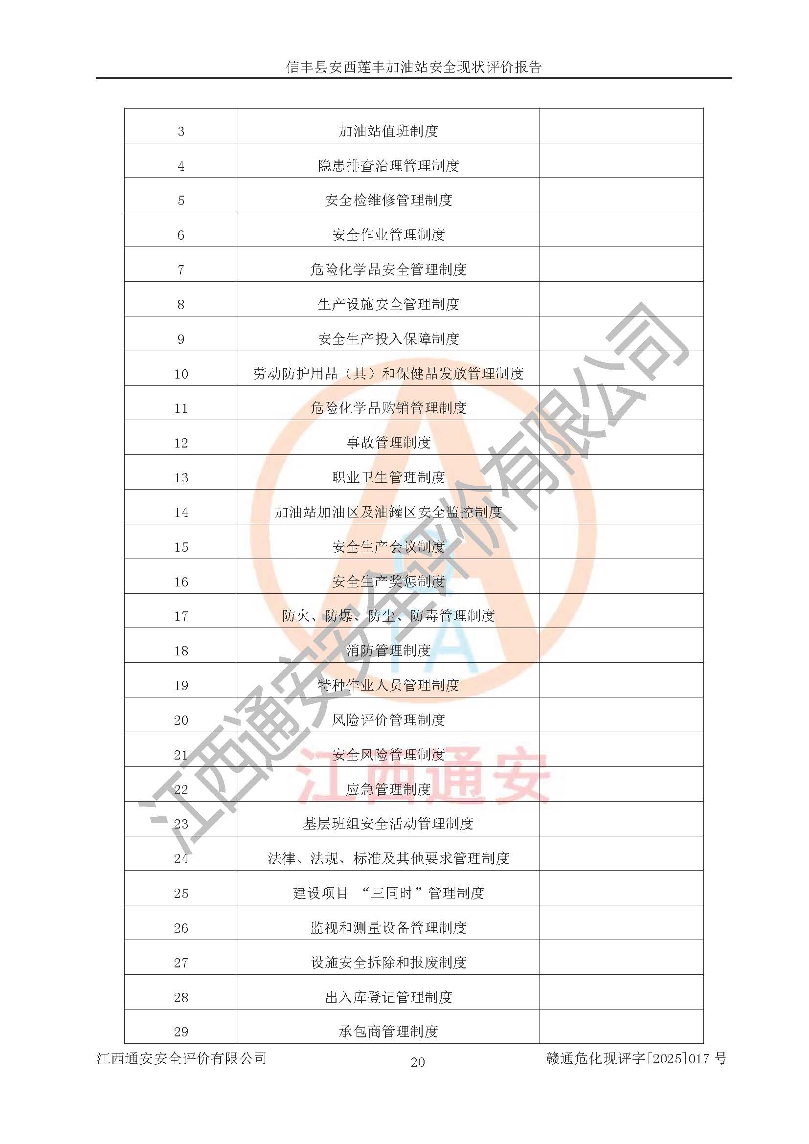 評價報告名稱 | 信豐縣安西蓮豐加油站安全現(xiàn)狀評價報告 | |||
