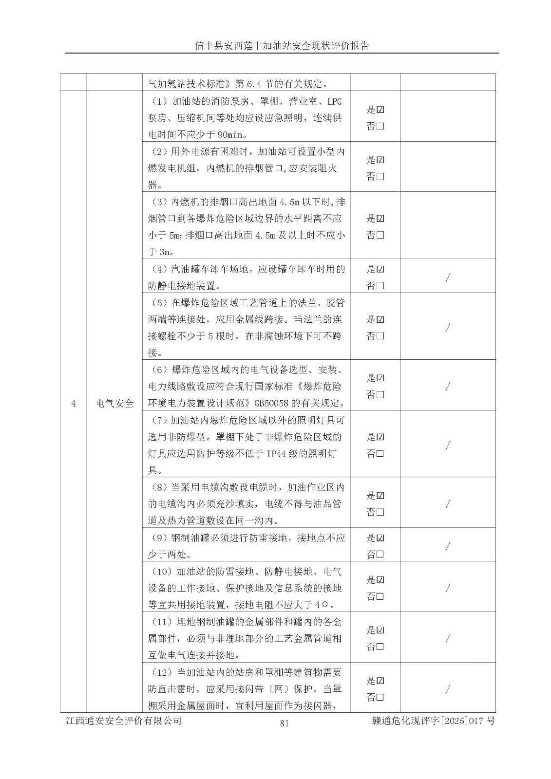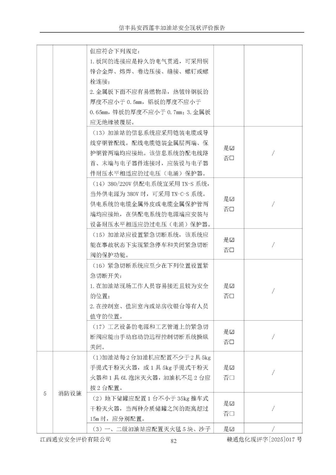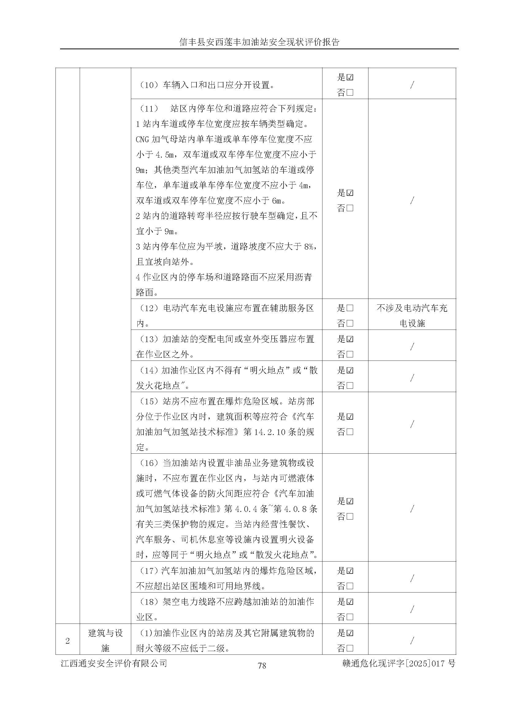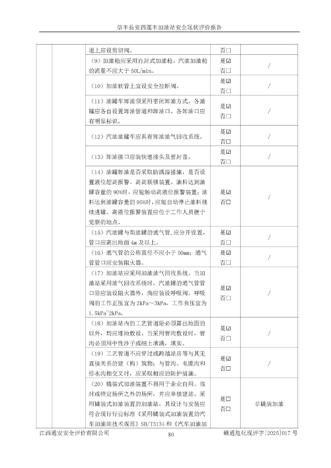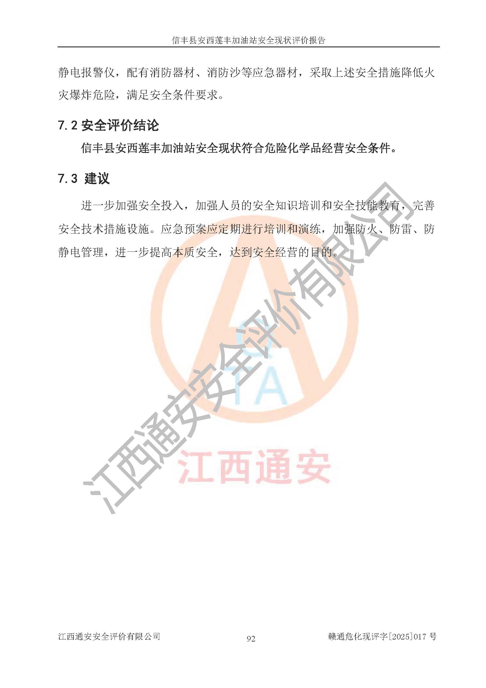 評價結論 | 信豐縣安西蓮豐加油站安全現(xiàn)狀符合危險化學品經(jīng)營安全條件。 | |||