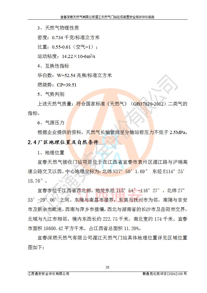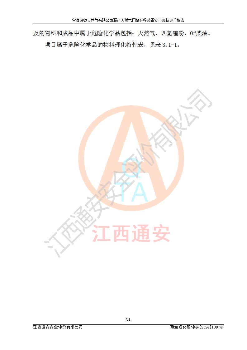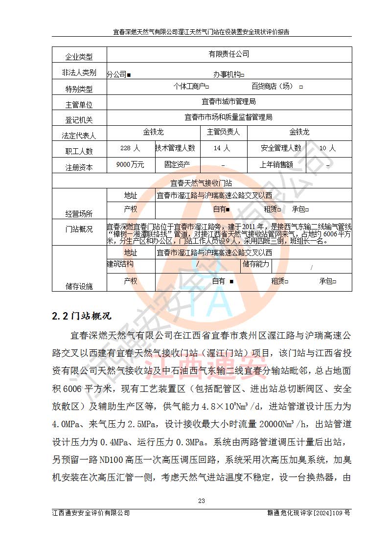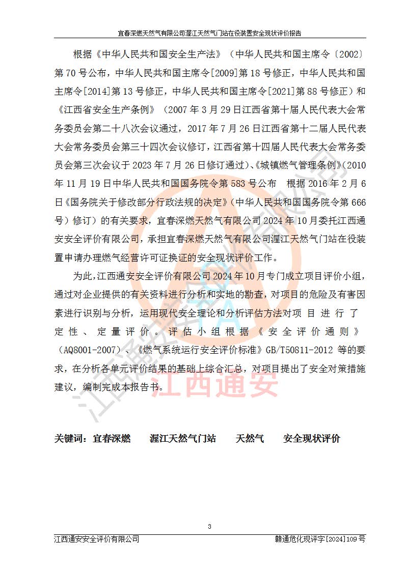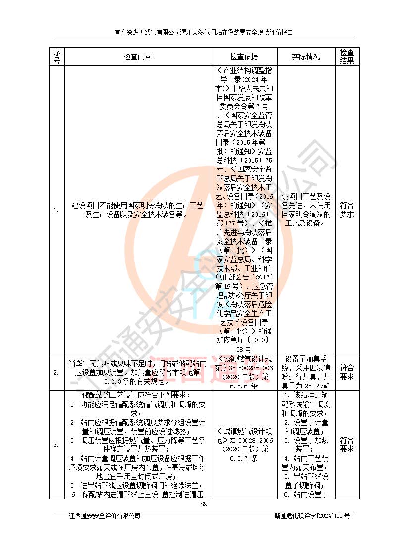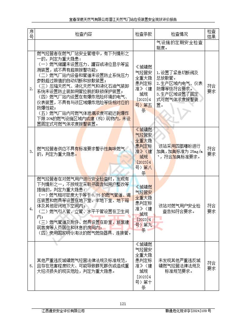項目名稱 | 宜春深燃天然氣有限公司渥江天然氣門站在役裝置安全現(xiàn)狀評價報告 | ||||