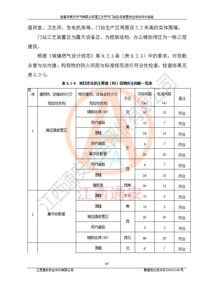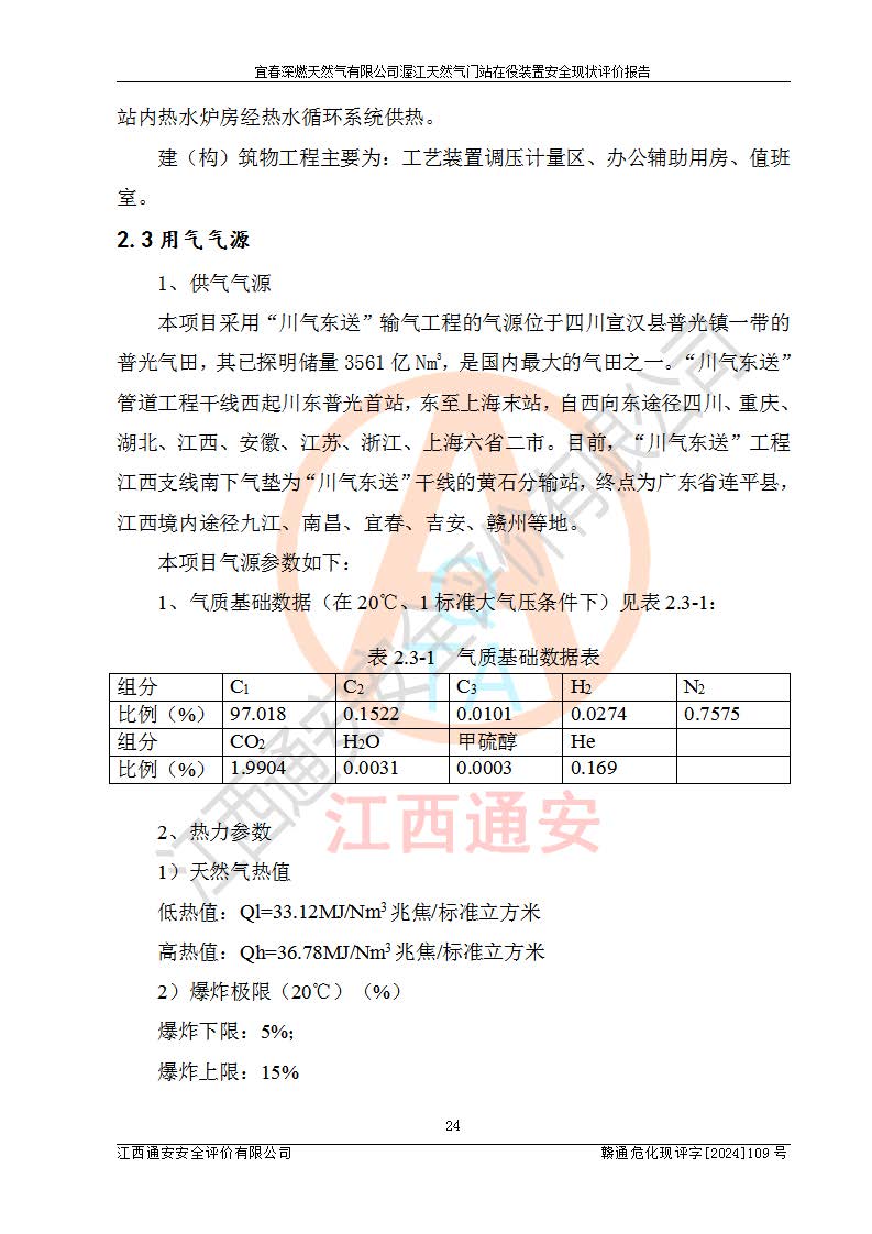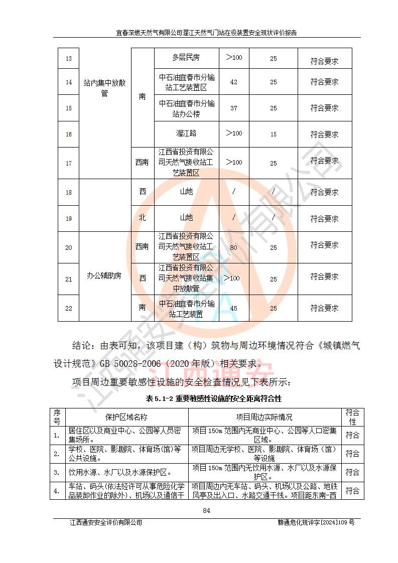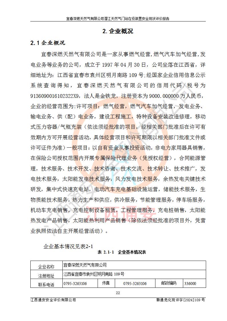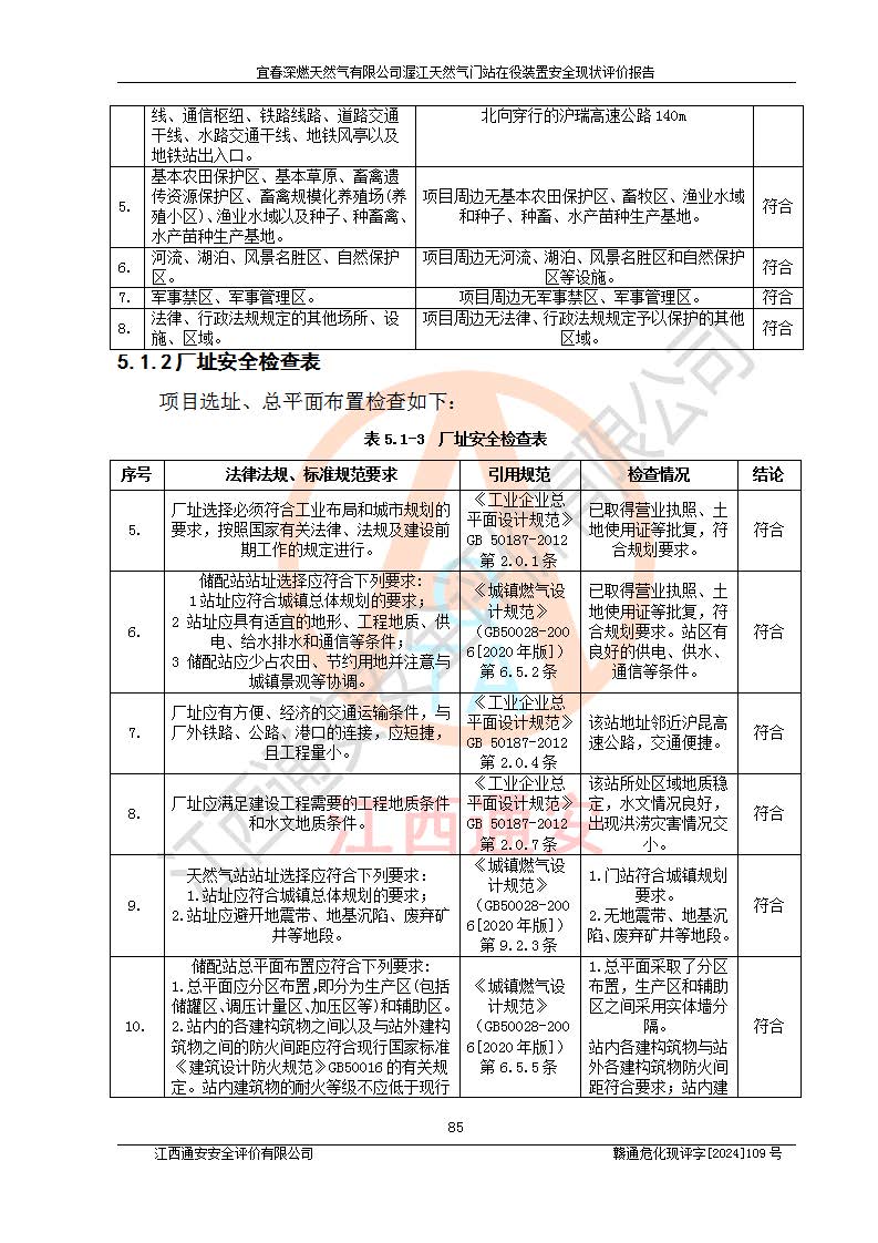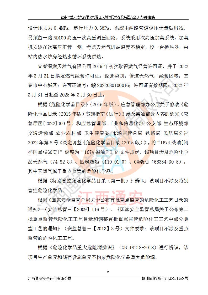 項目名稱 | 宜春深燃天然氣有限公司渥江天然氣門站在役裝置安全現(xiàn)狀評價報告 | ||||