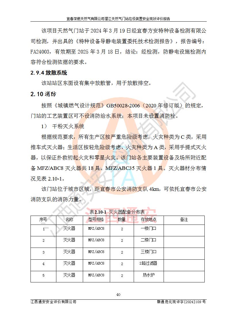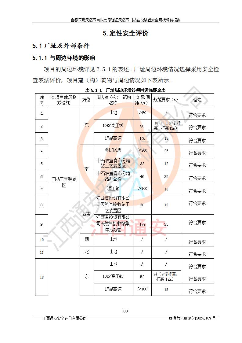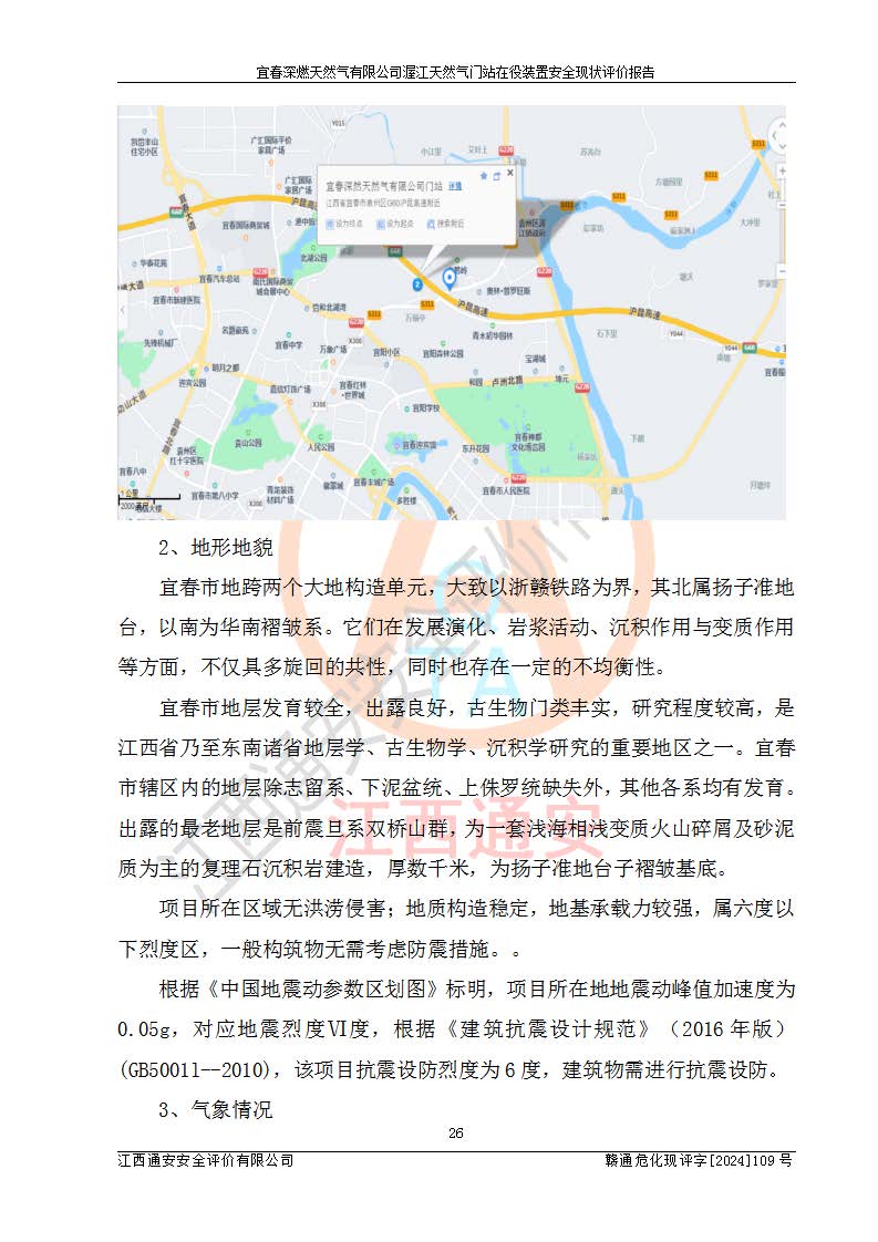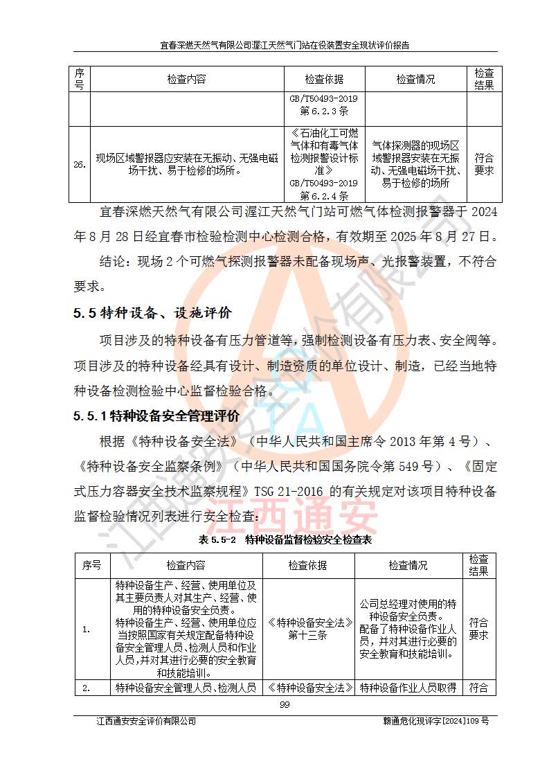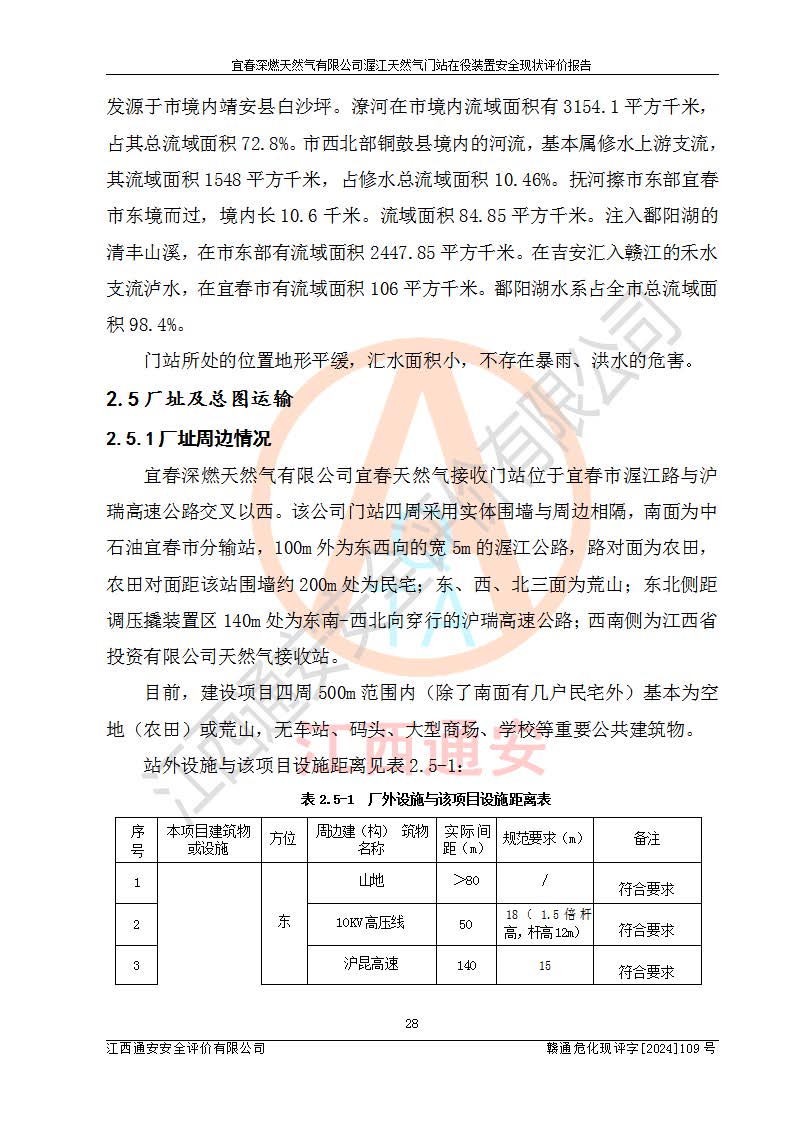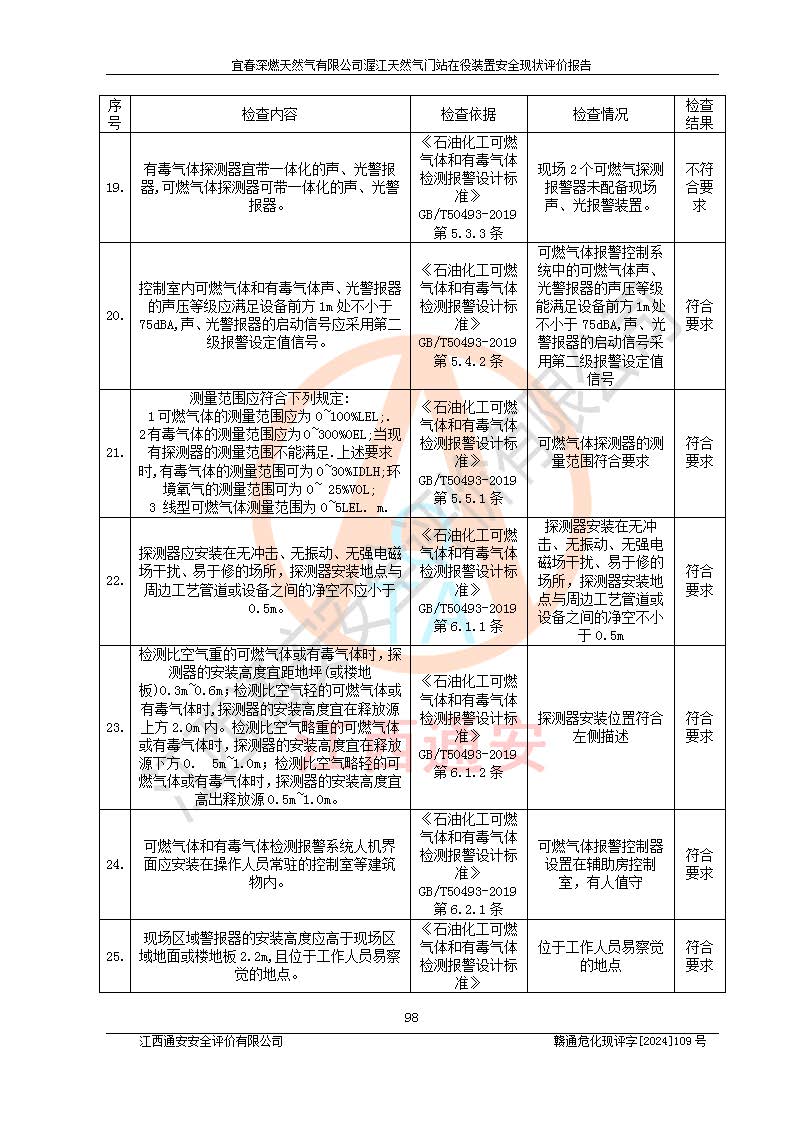 項目名稱 | 宜春深燃天然氣有限公司渥江天然氣門站在役裝置安全現(xiàn)狀評價報告 | ||||