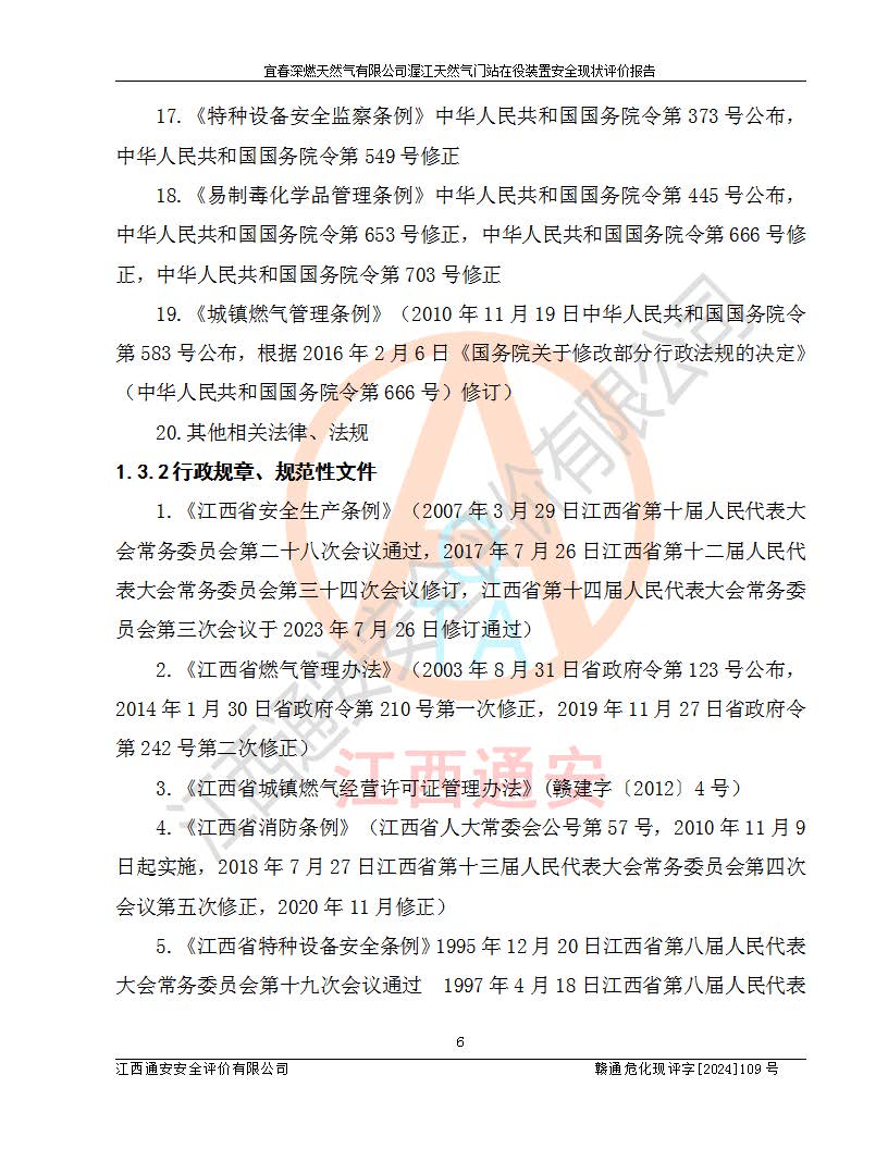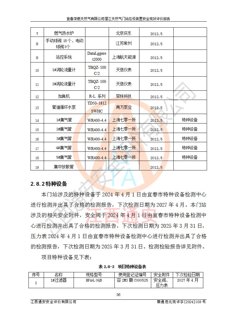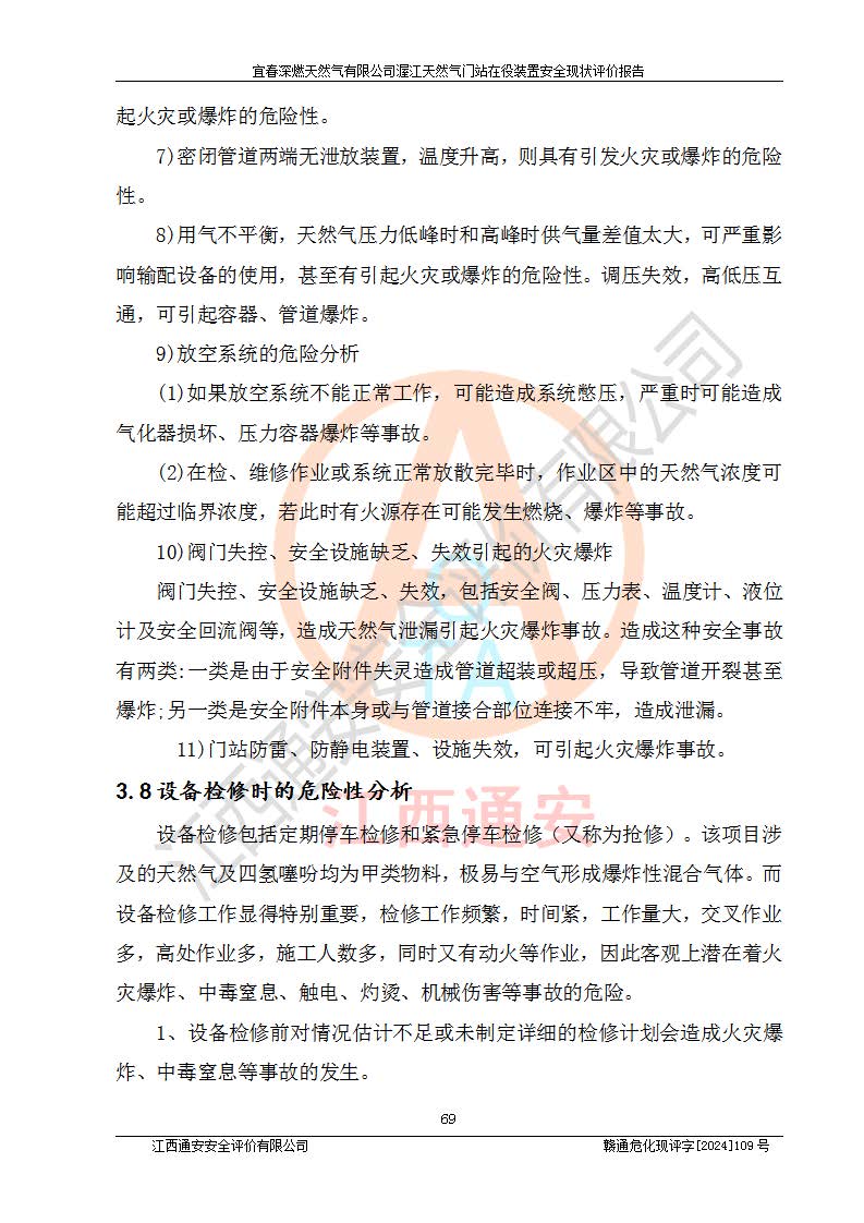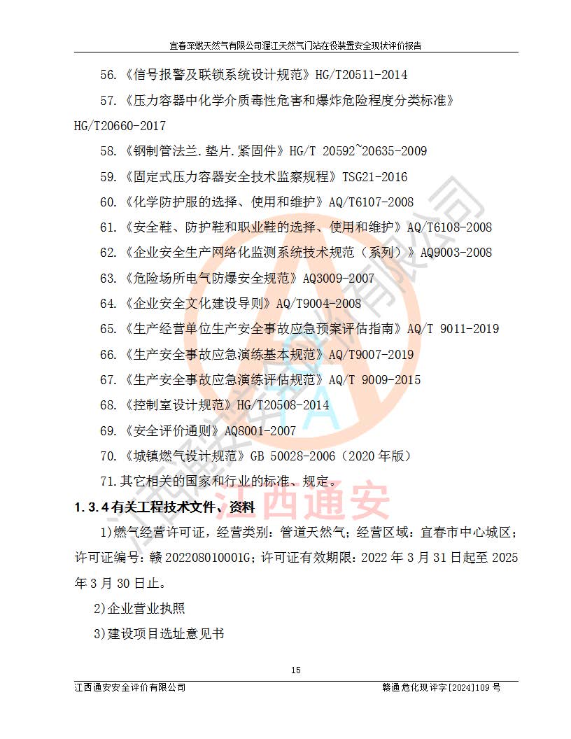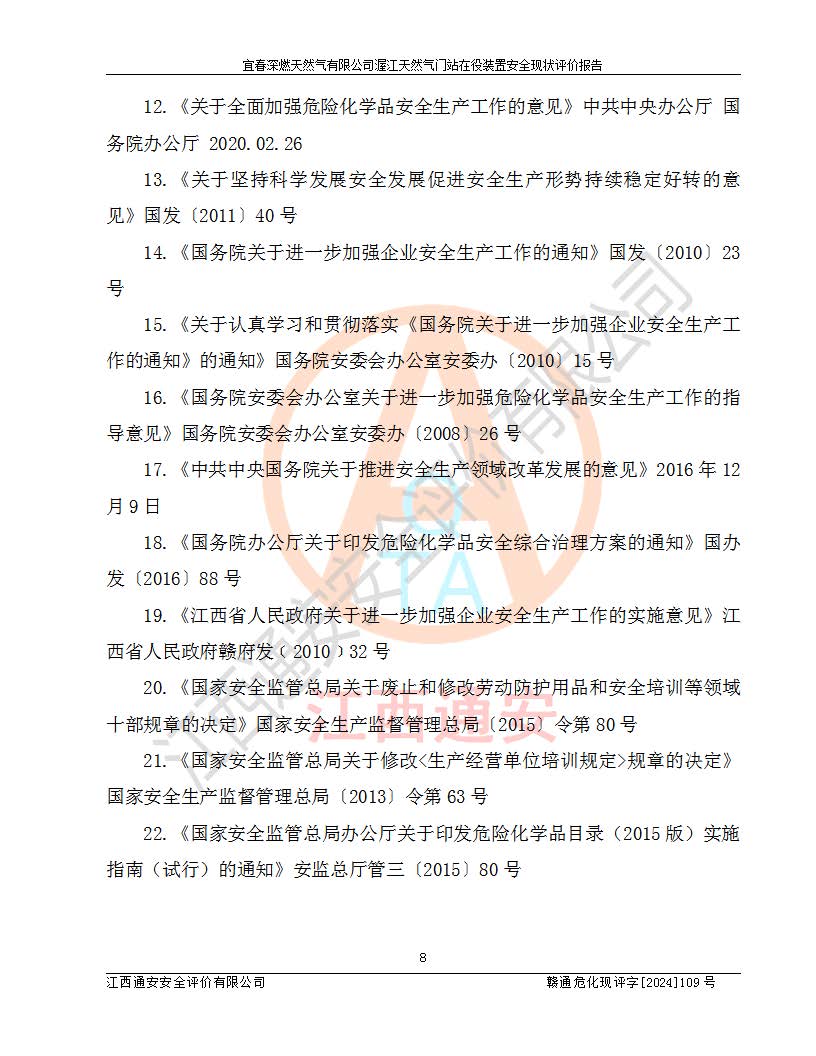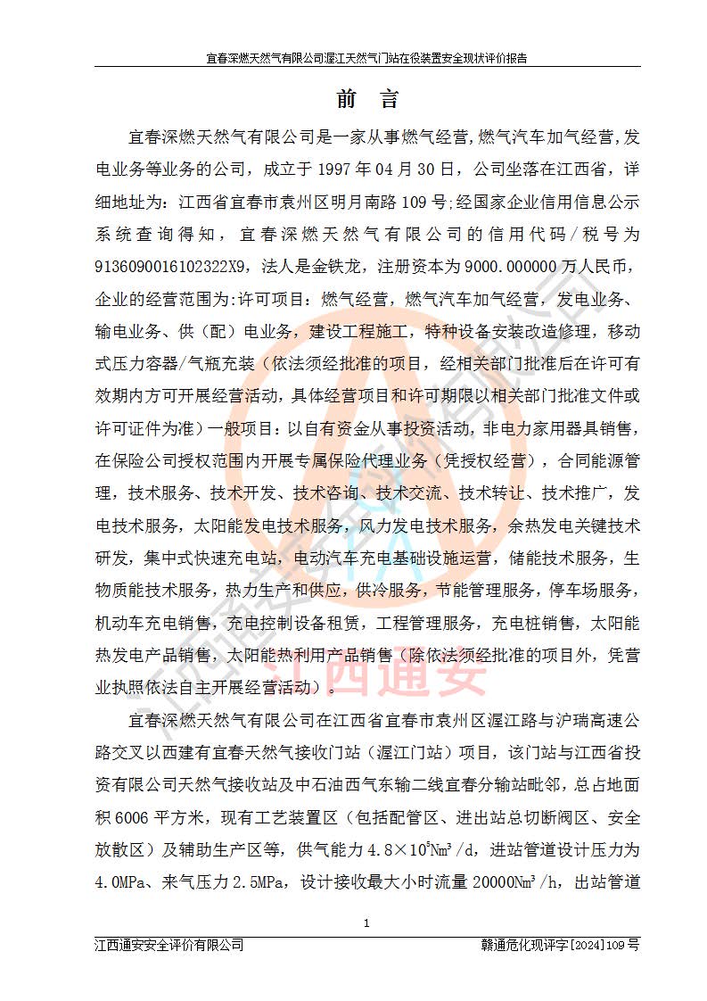 項目名稱 | 宜春深燃天然氣有限公司渥江天然氣門站在役裝置安全現(xiàn)狀評價報告 | ||||