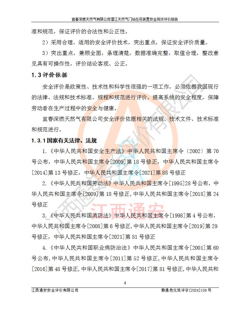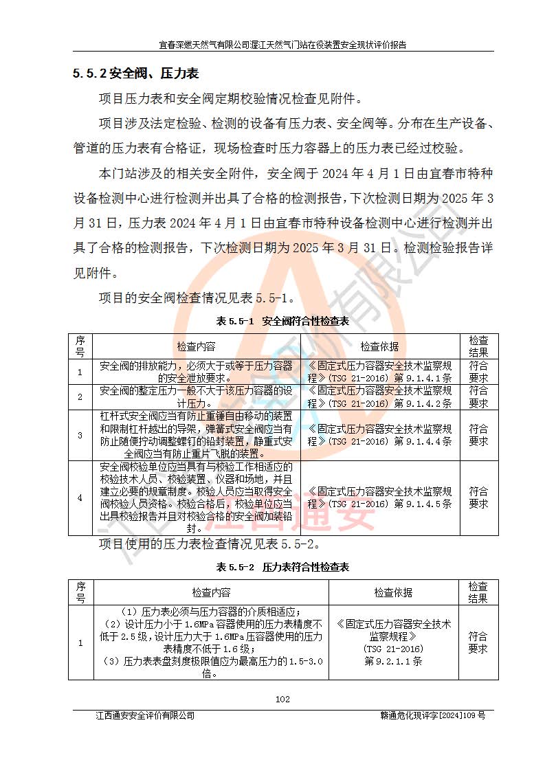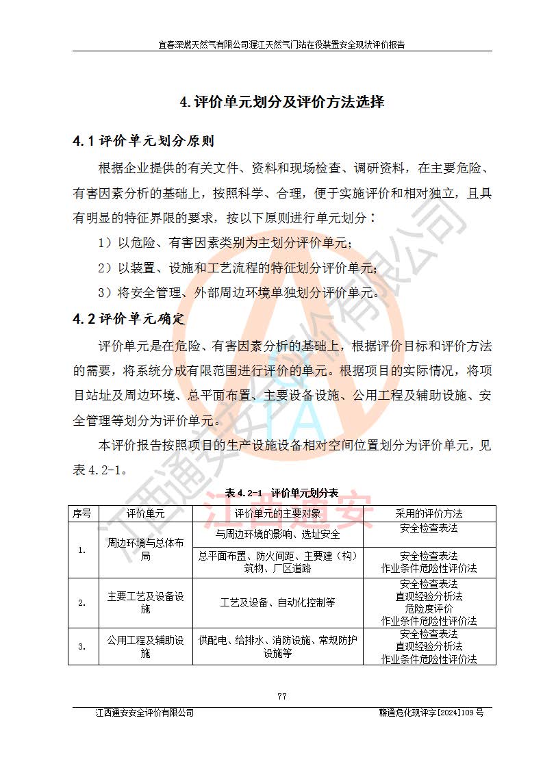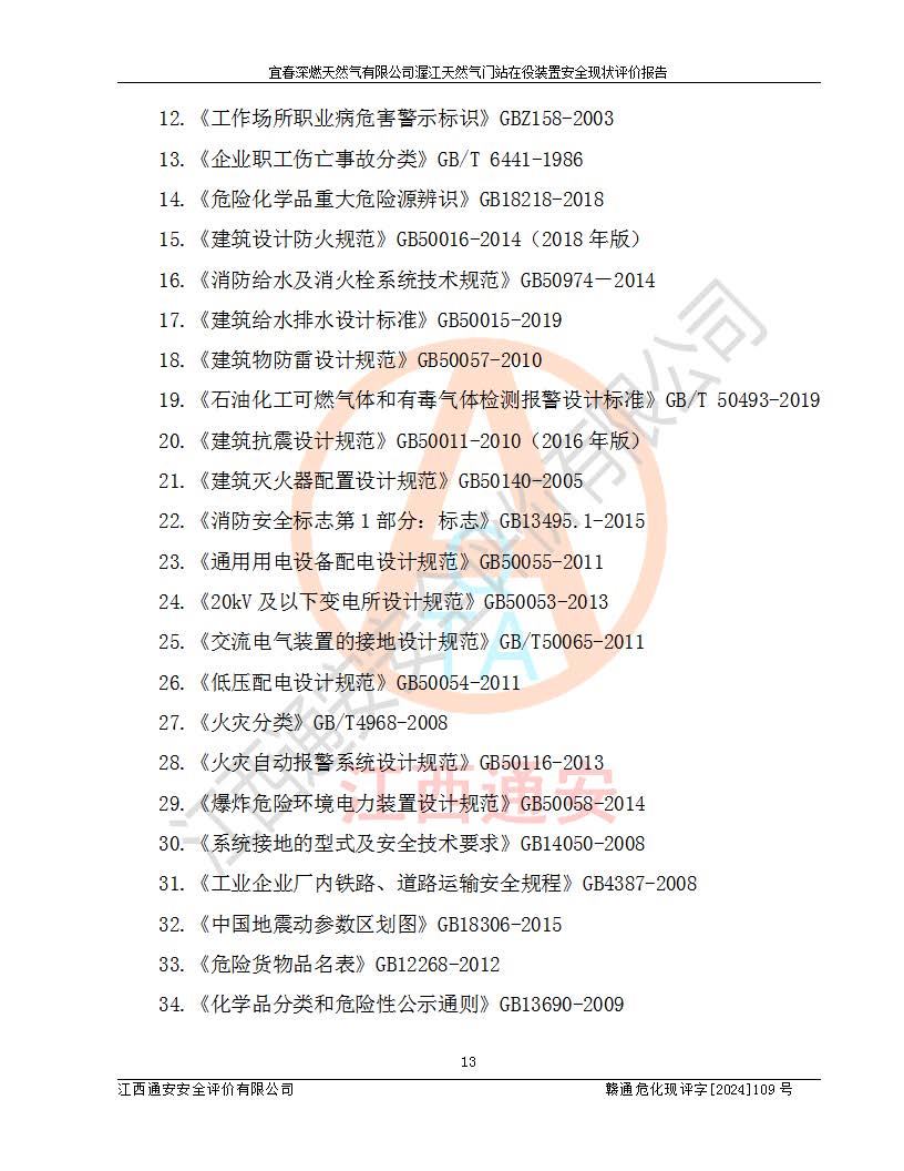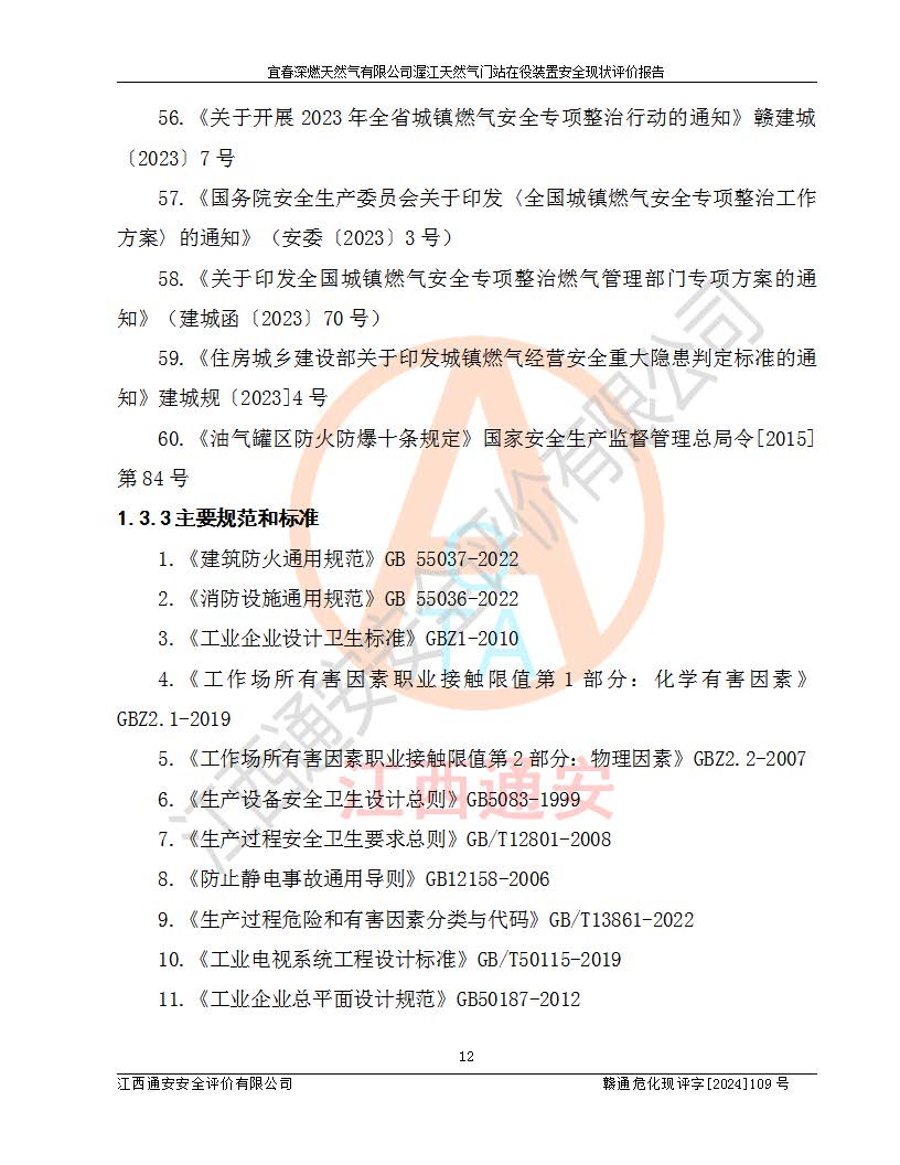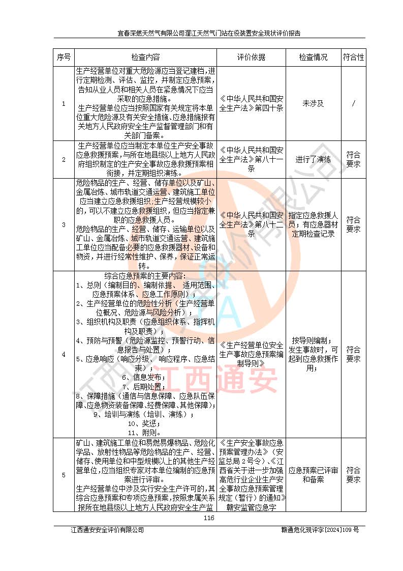 項目名稱 | 宜春深燃天然氣有限公司渥江天然氣門站在役裝置安全現(xiàn)狀評價報告 | ||||