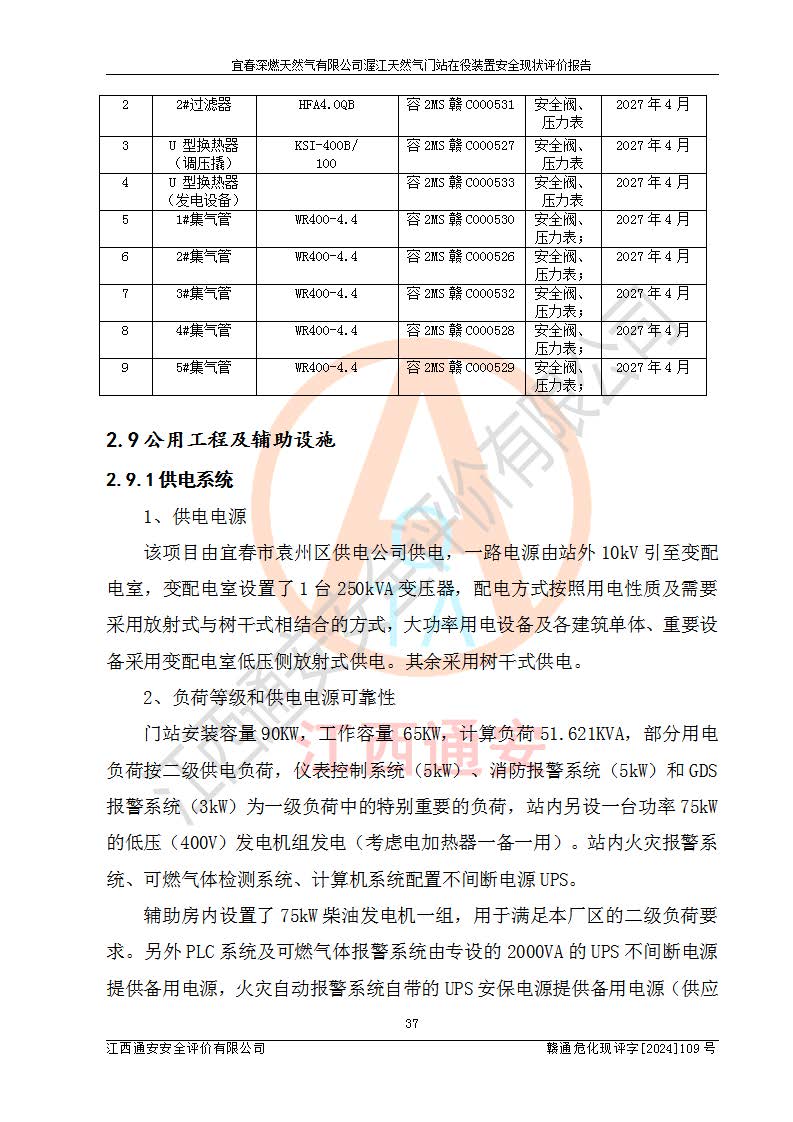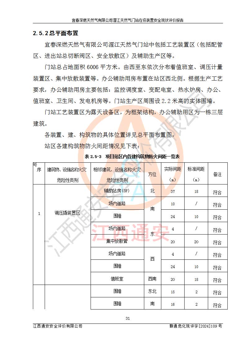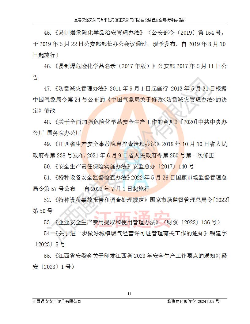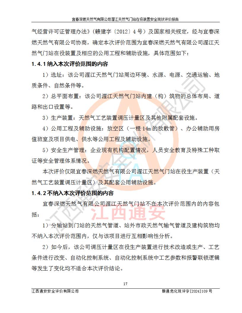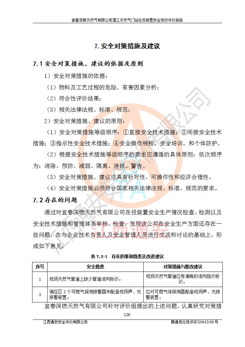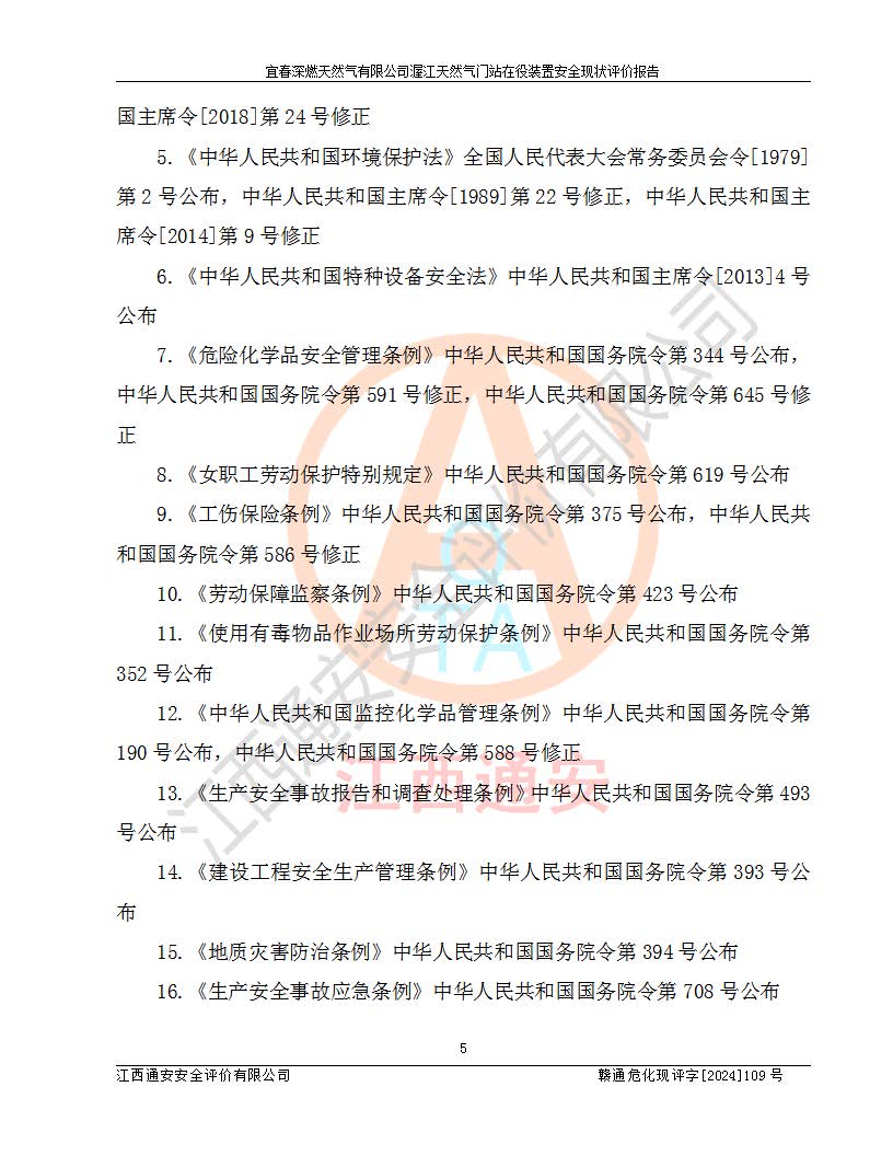 項目名稱 | 宜春深燃天然氣有限公司渥江天然氣門站在役裝置安全現(xiàn)狀評價報告 | ||||