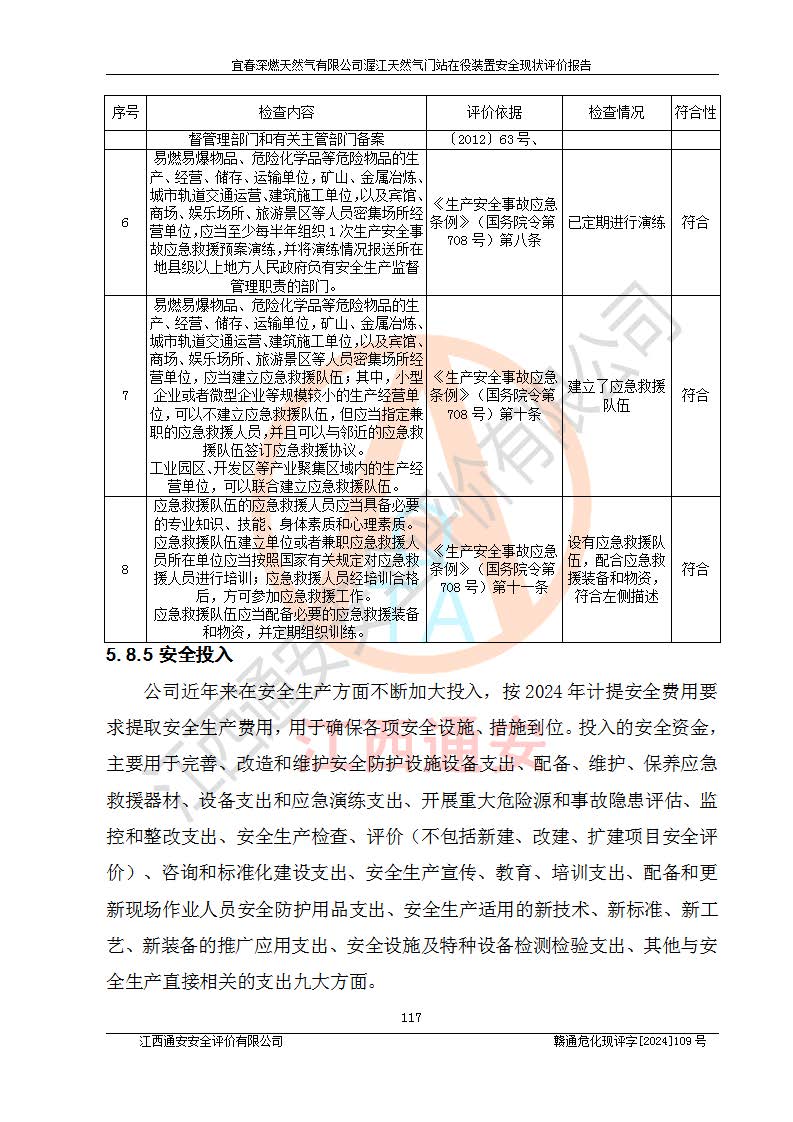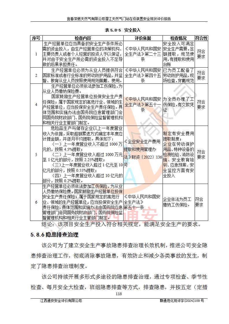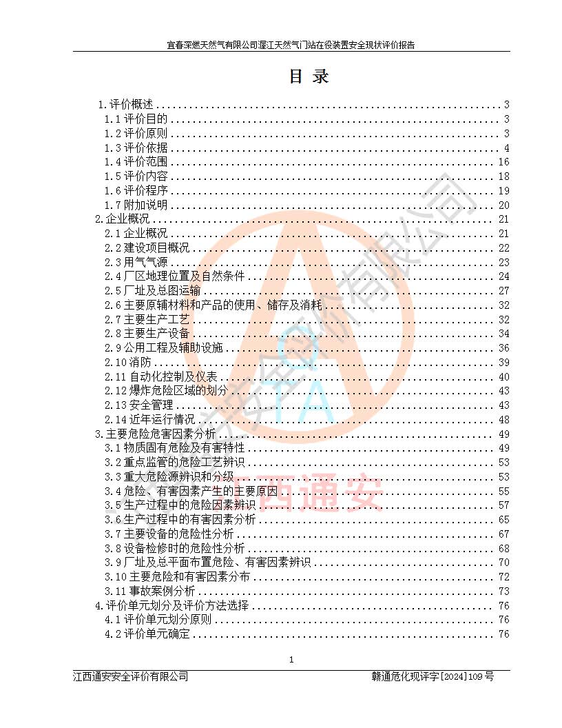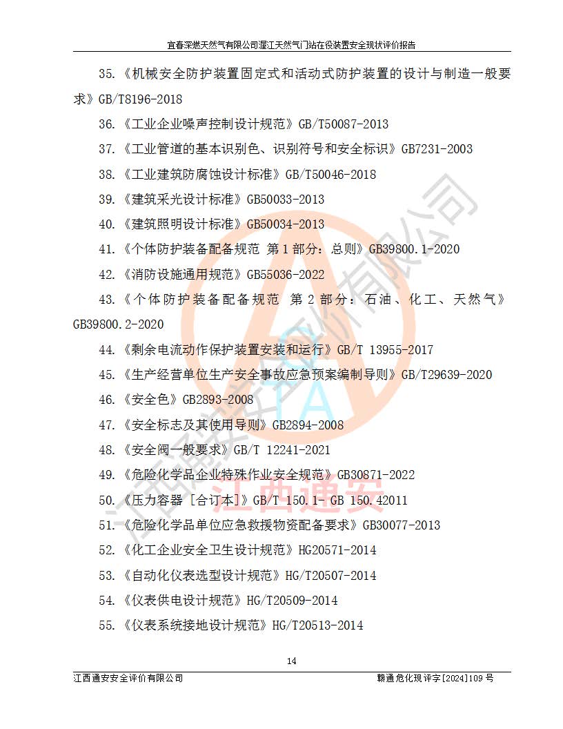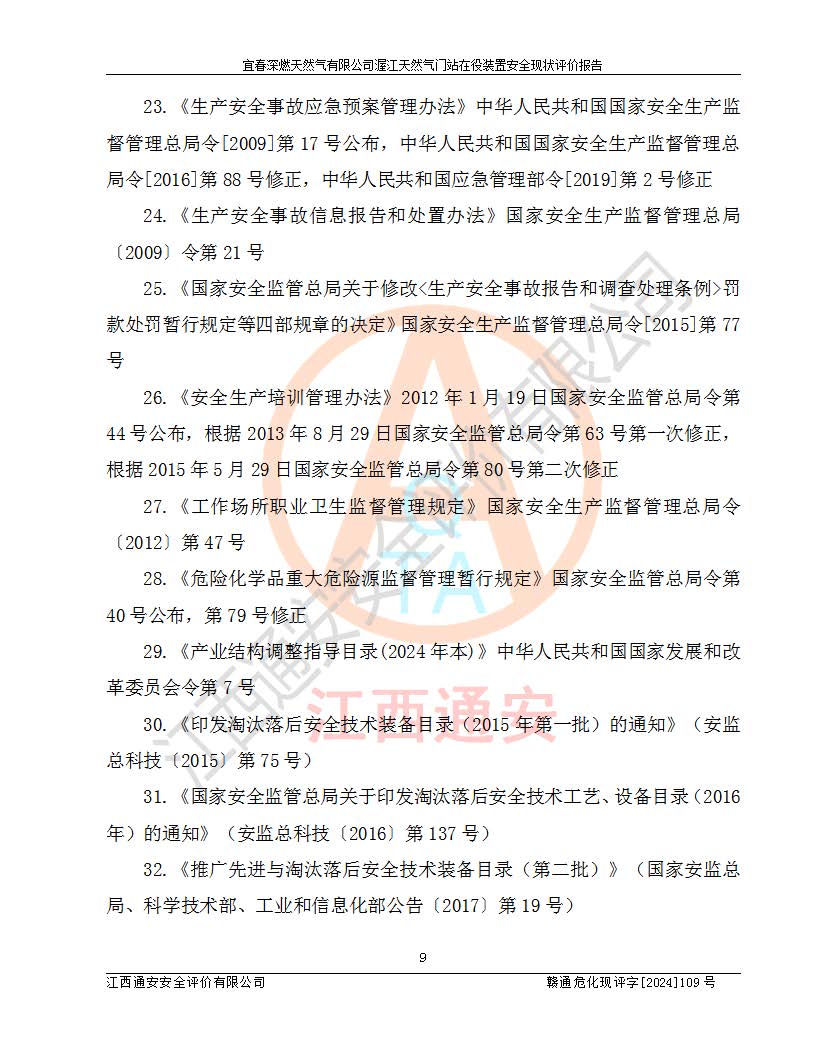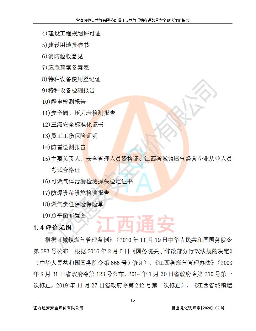 項目名稱 | 宜春深燃天然氣有限公司渥江天然氣門站在役裝置安全現(xiàn)狀評價報告 | ||||