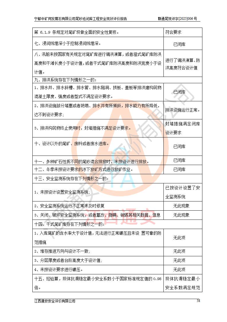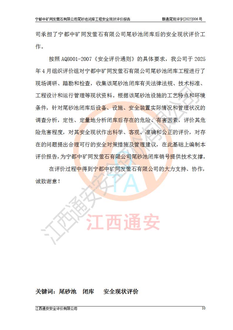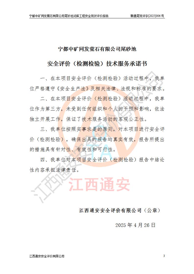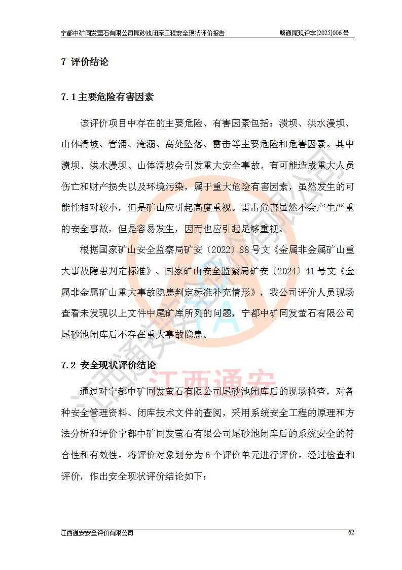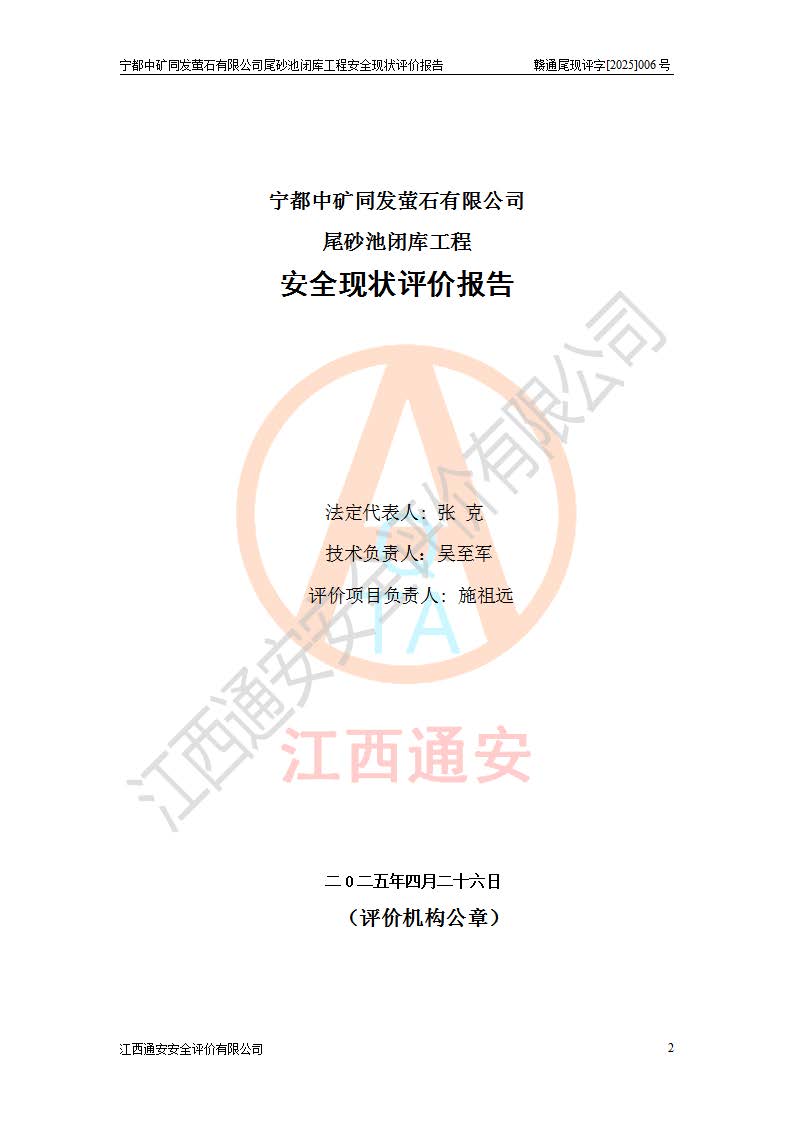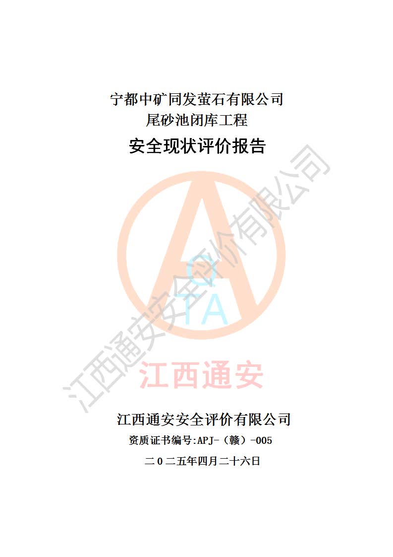 評價報告名稱 | 寧都中礦同發(fā)螢石有限公司尾砂池閉庫工程安全現(xiàn)狀評價報告 | |||