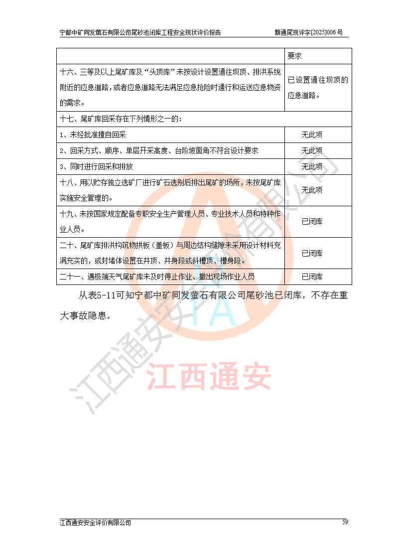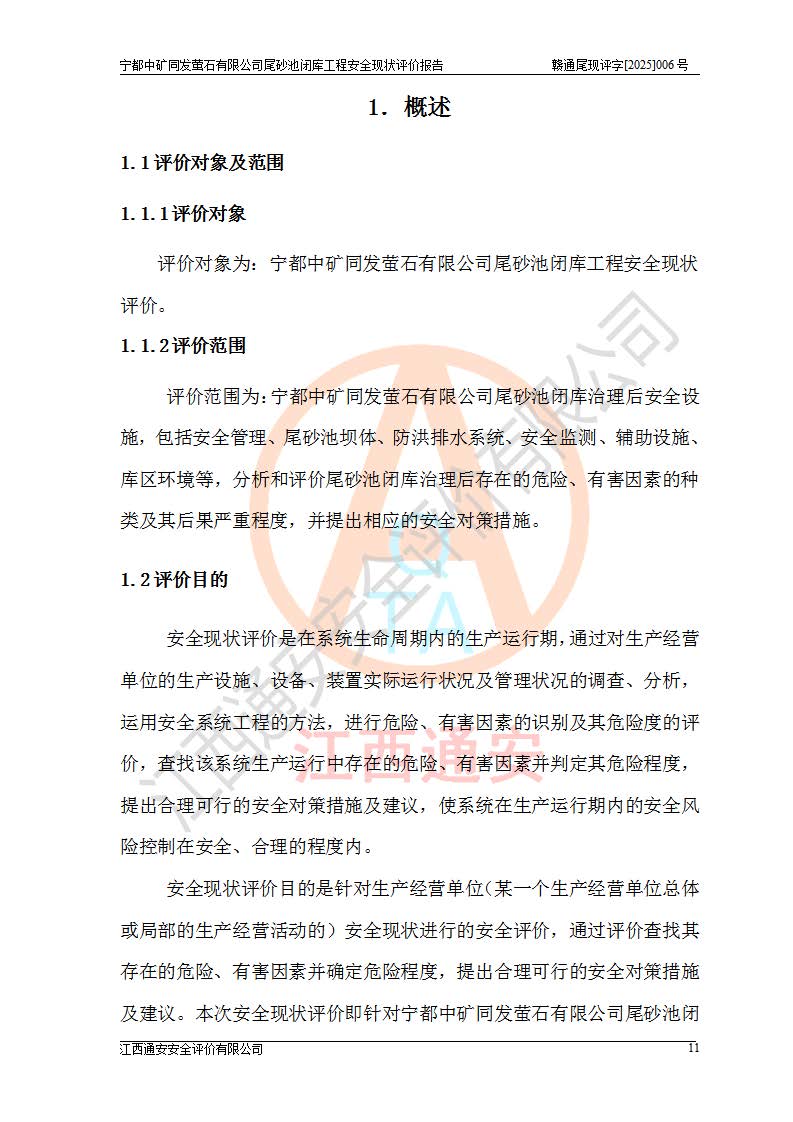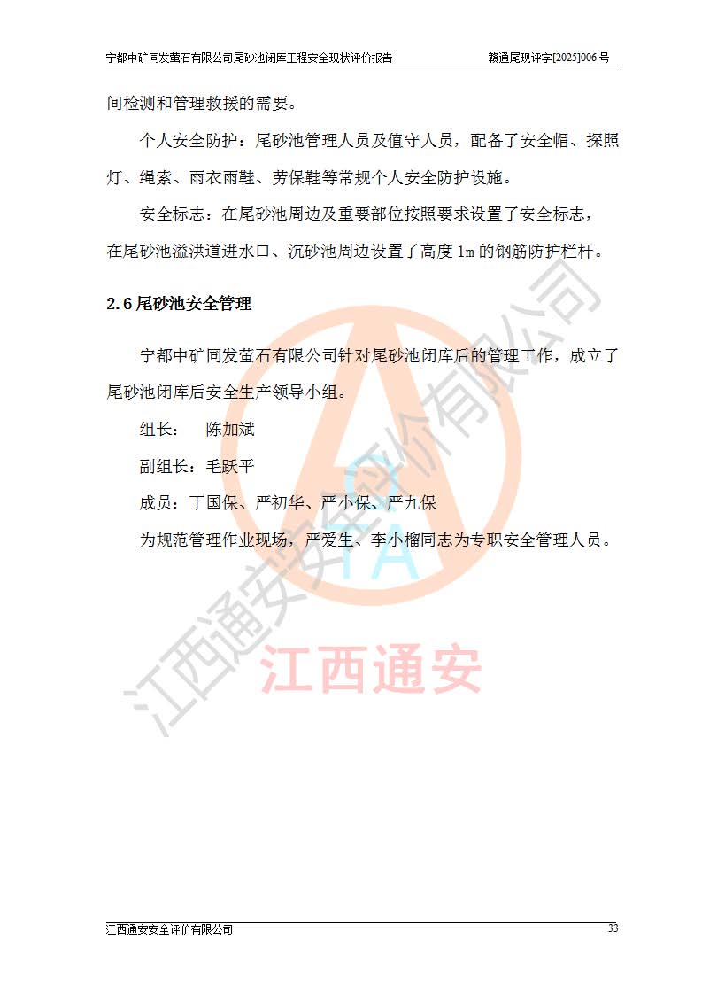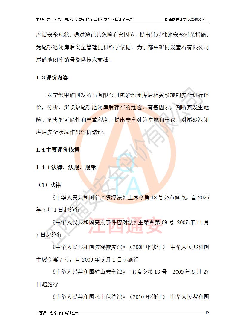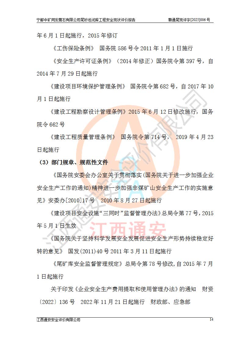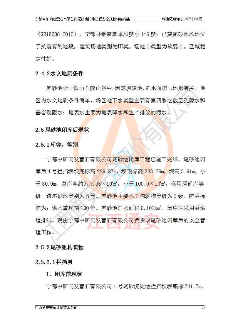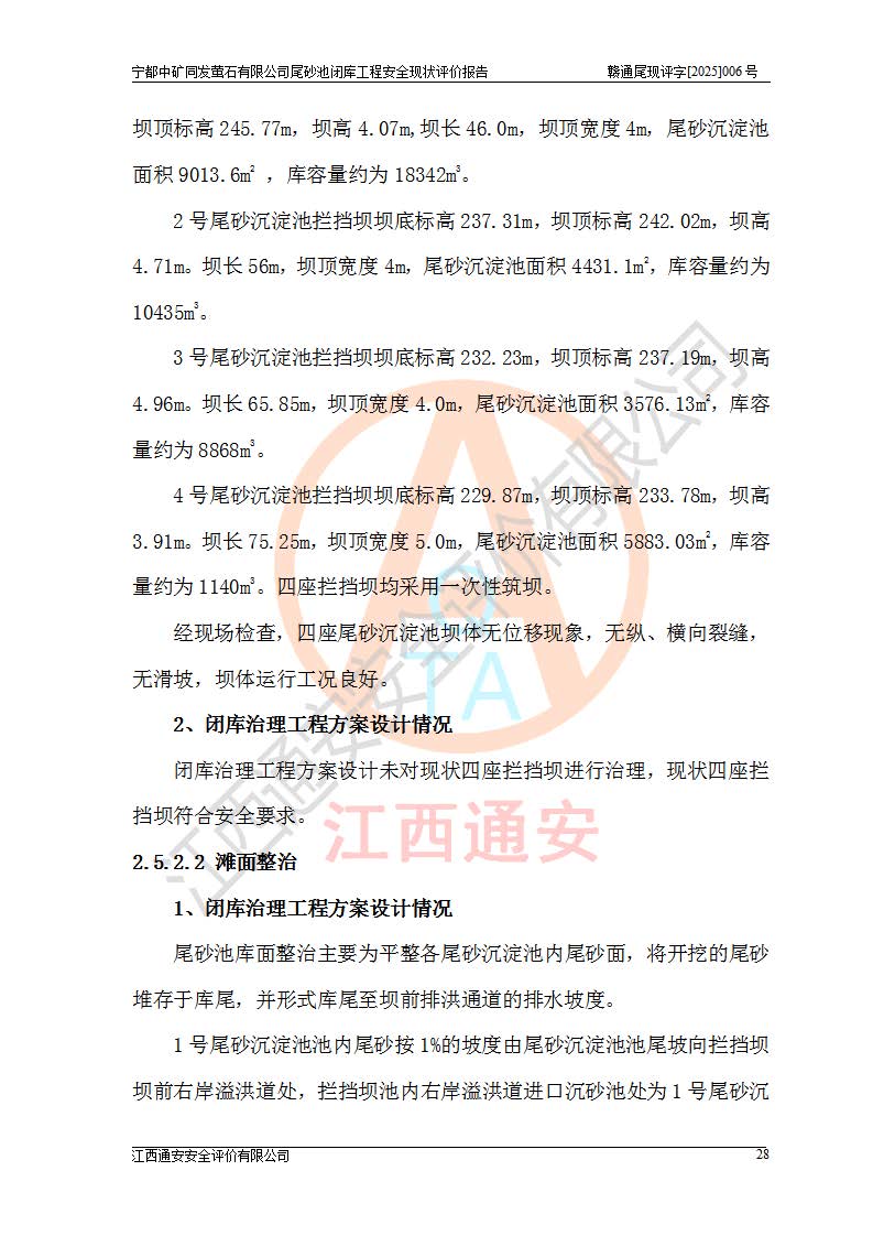 評價報告名稱 | 寧都中礦同發(fā)螢石有限公司尾砂池閉庫工程安全現(xiàn)狀評價報告 | |||