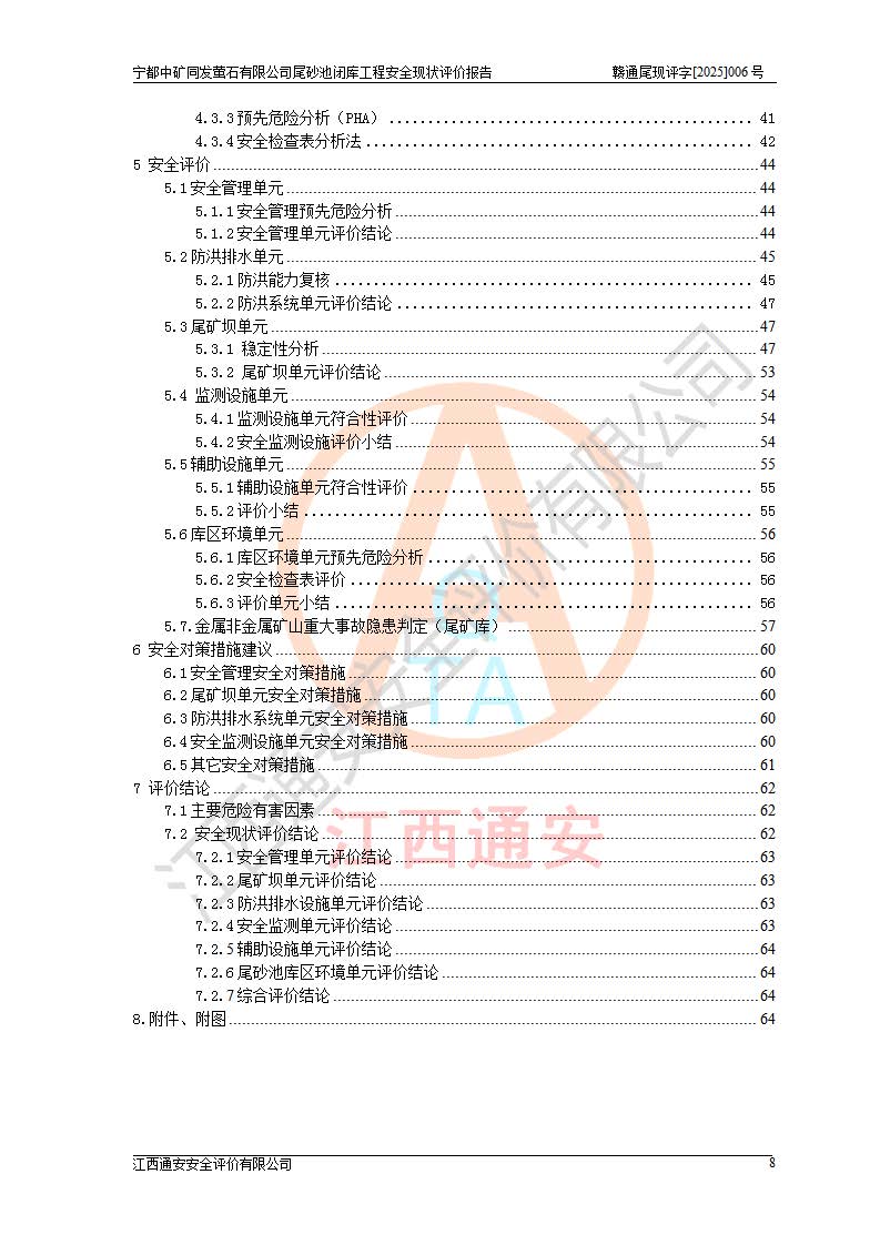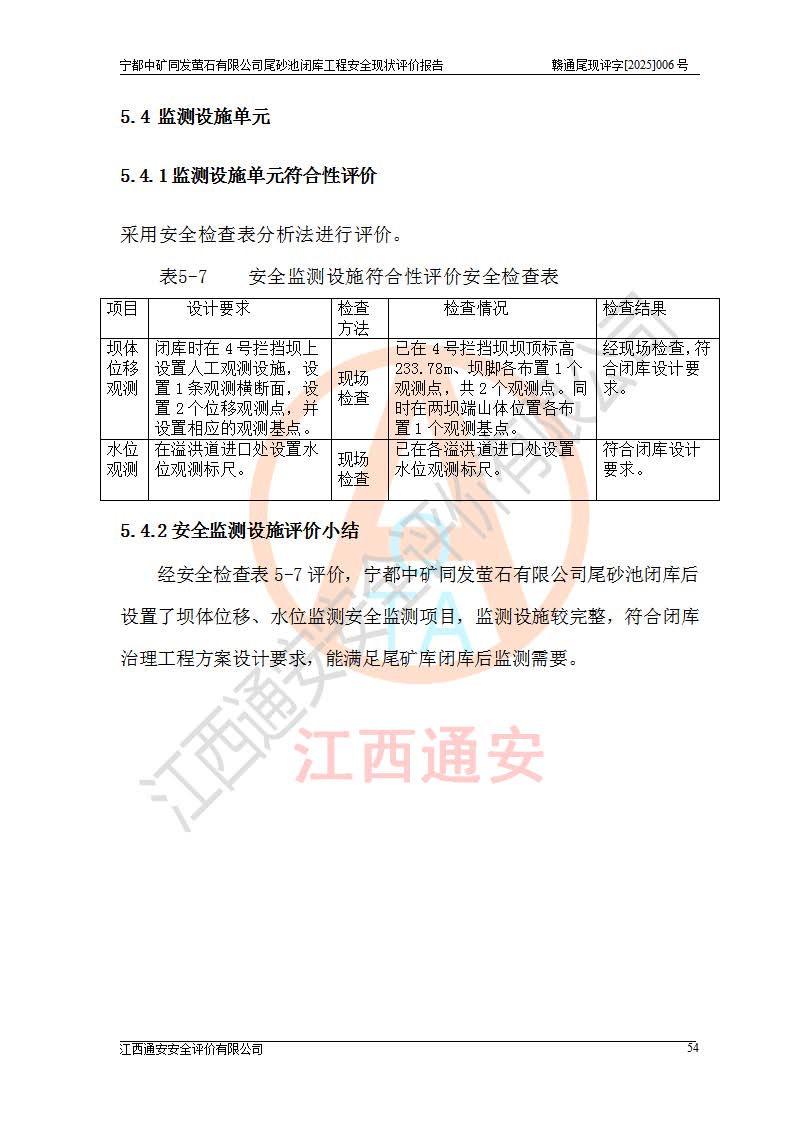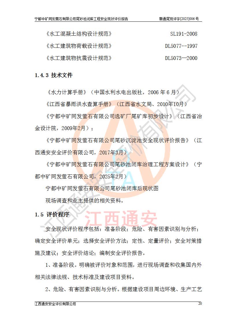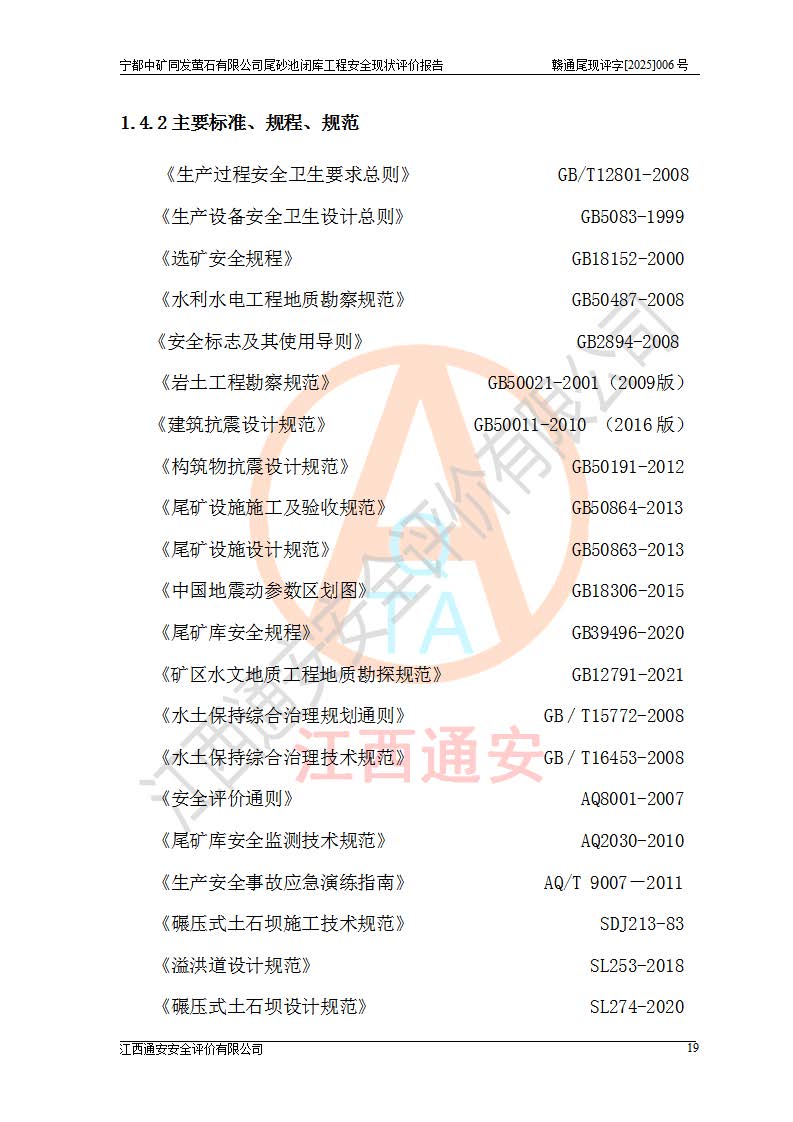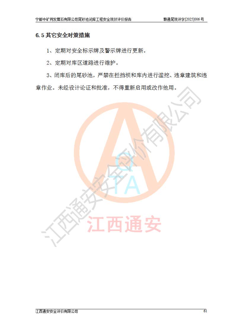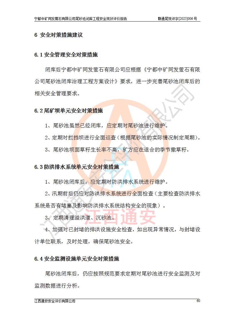 評價報告名稱 | 寧都中礦同發(fā)螢石有限公司尾砂池閉庫工程安全現(xiàn)狀評價報告 | |||