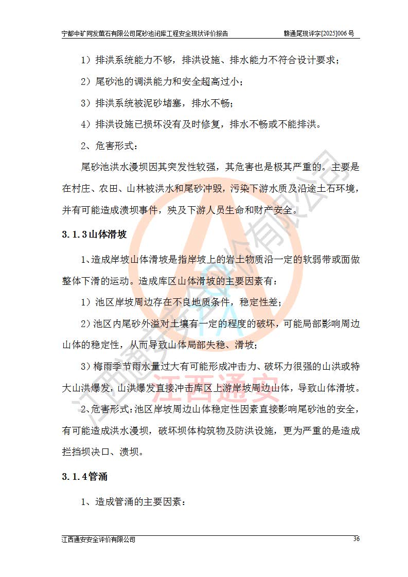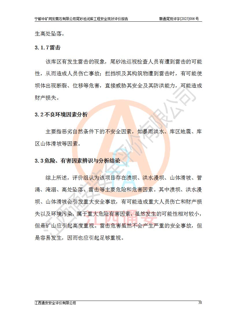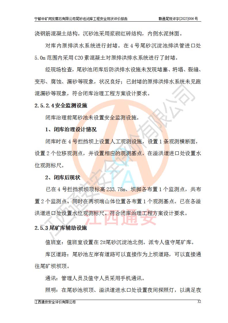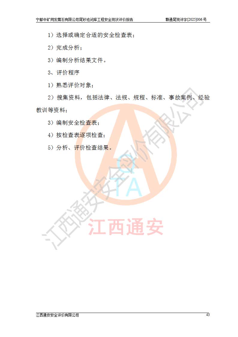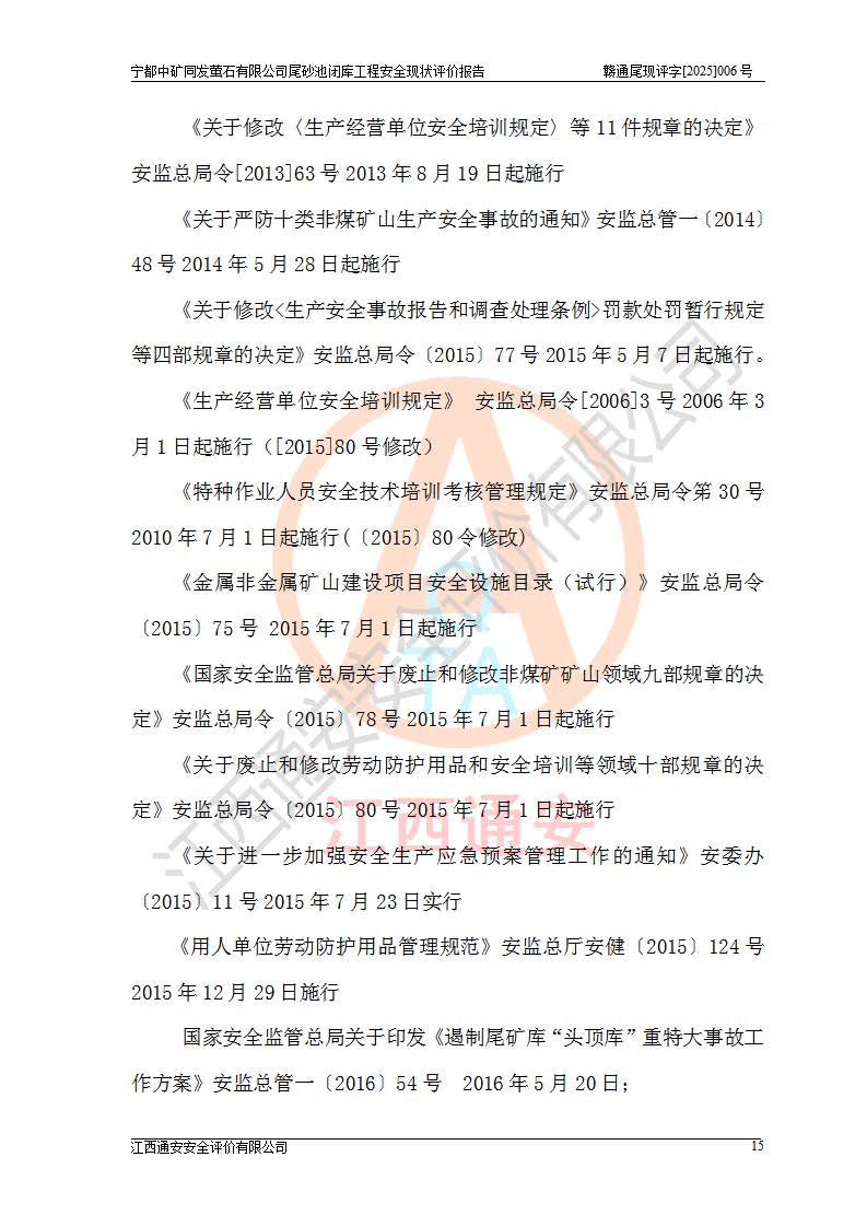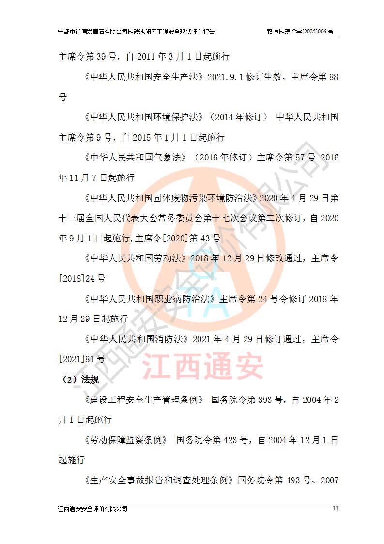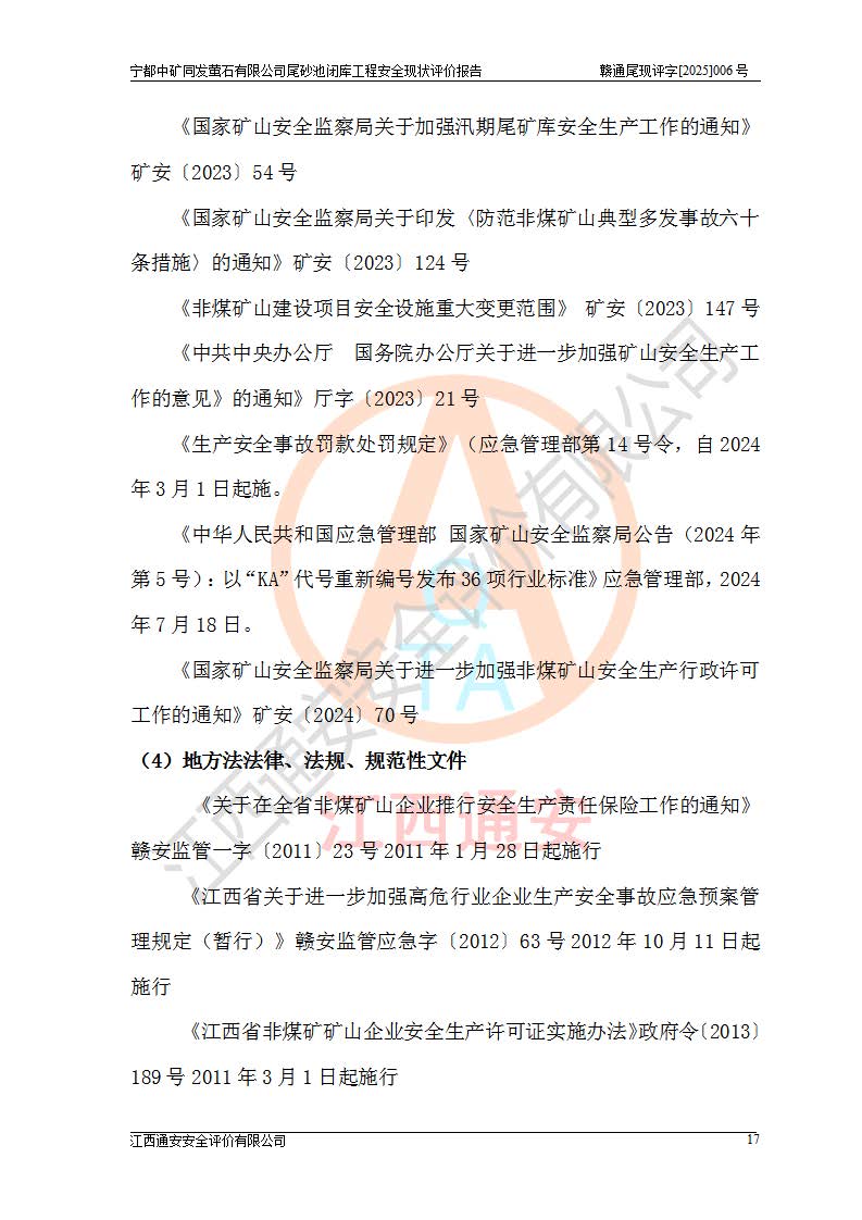 評價報告名稱 | 寧都中礦同發(fā)螢石有限公司尾砂池閉庫工程安全現(xiàn)狀評價報告 | |||