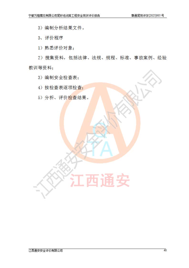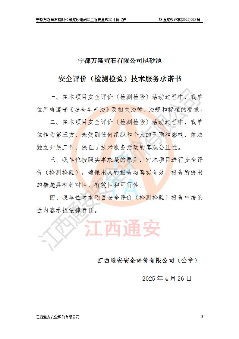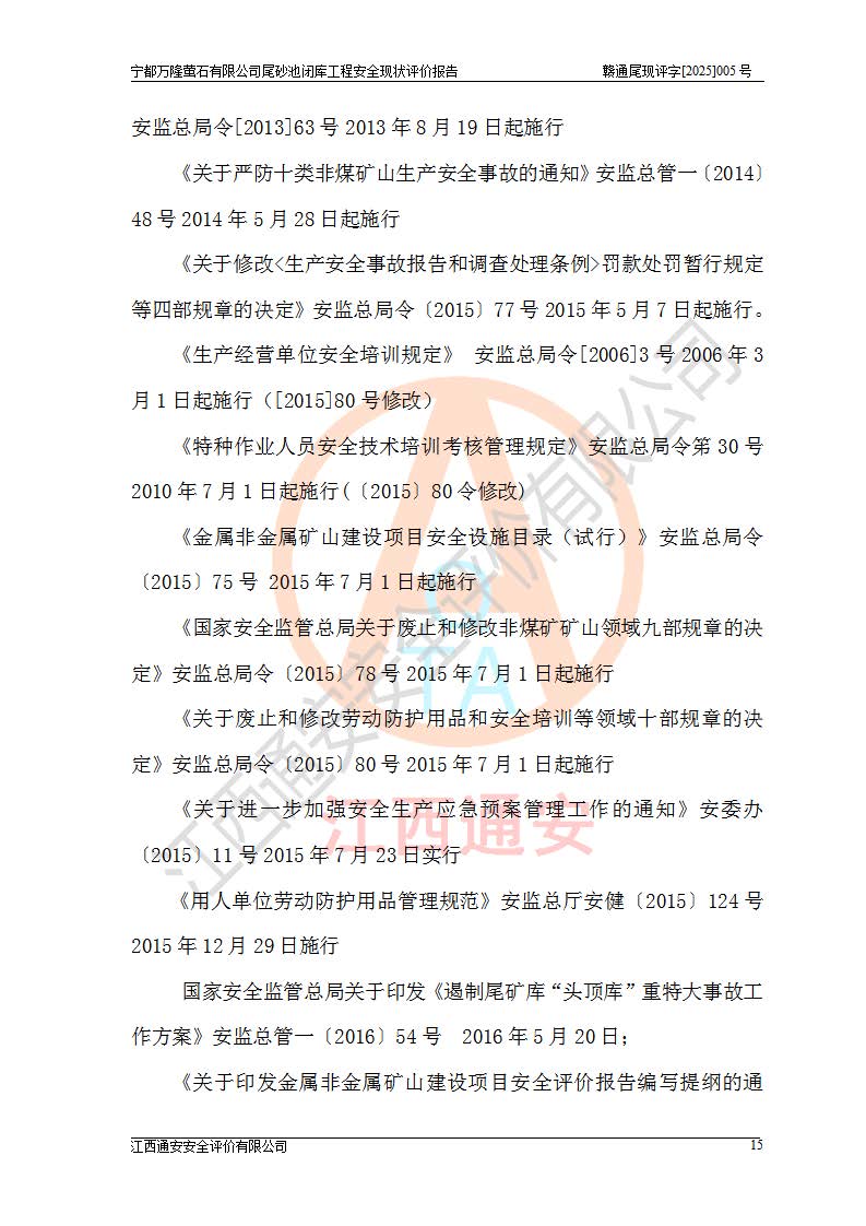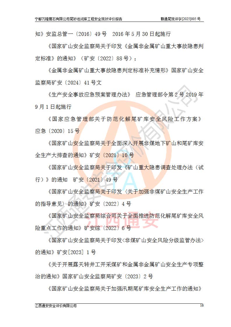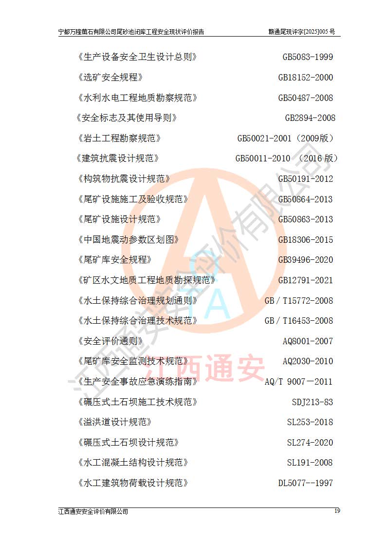 評(píng)價(jià)報(bào)告名稱 | 寧都萬(wàn)隆螢石有限公司尾砂池閉庫(kù)工程安全現(xiàn)狀評(píng)價(jià)報(bào)告 | |||