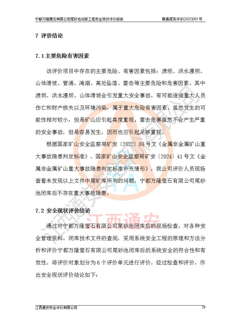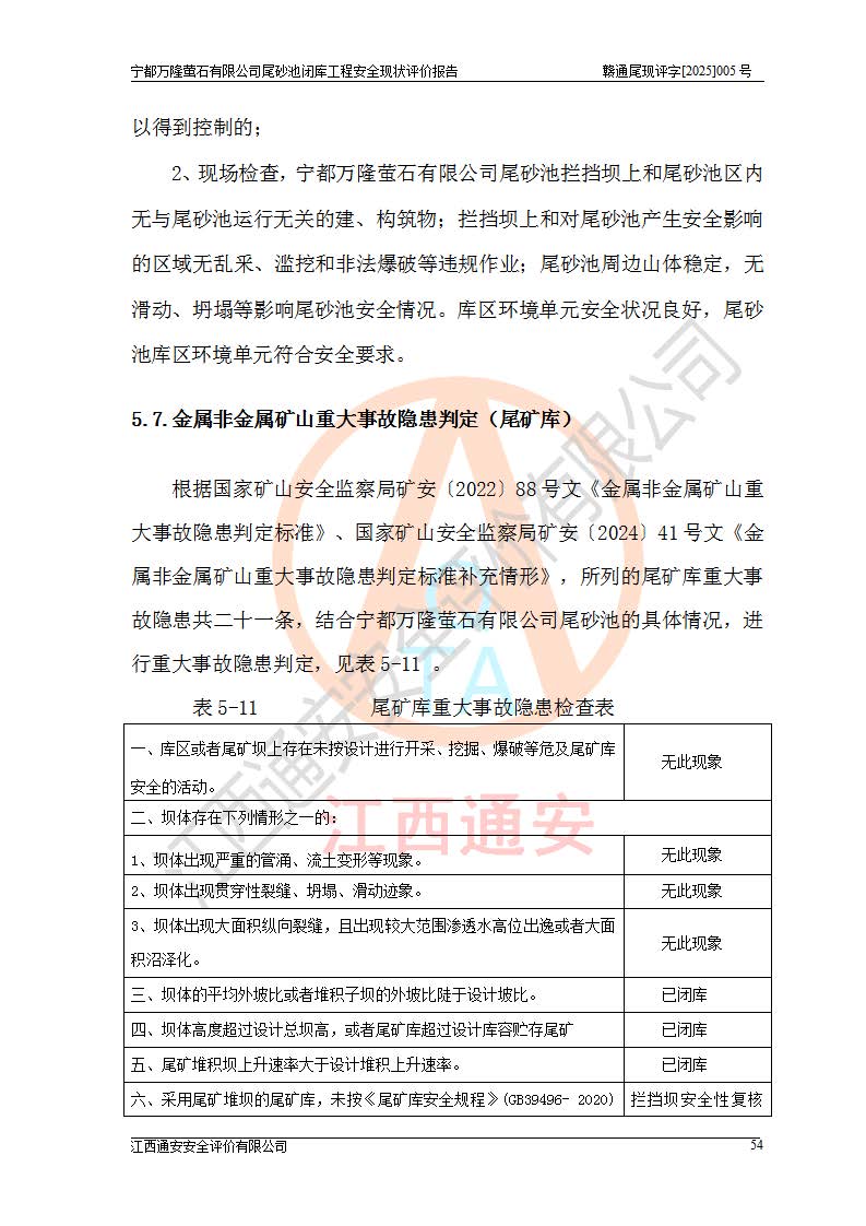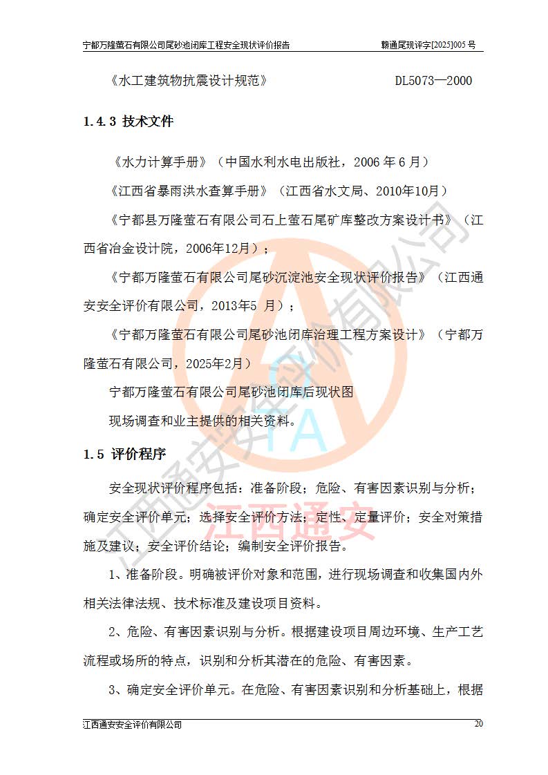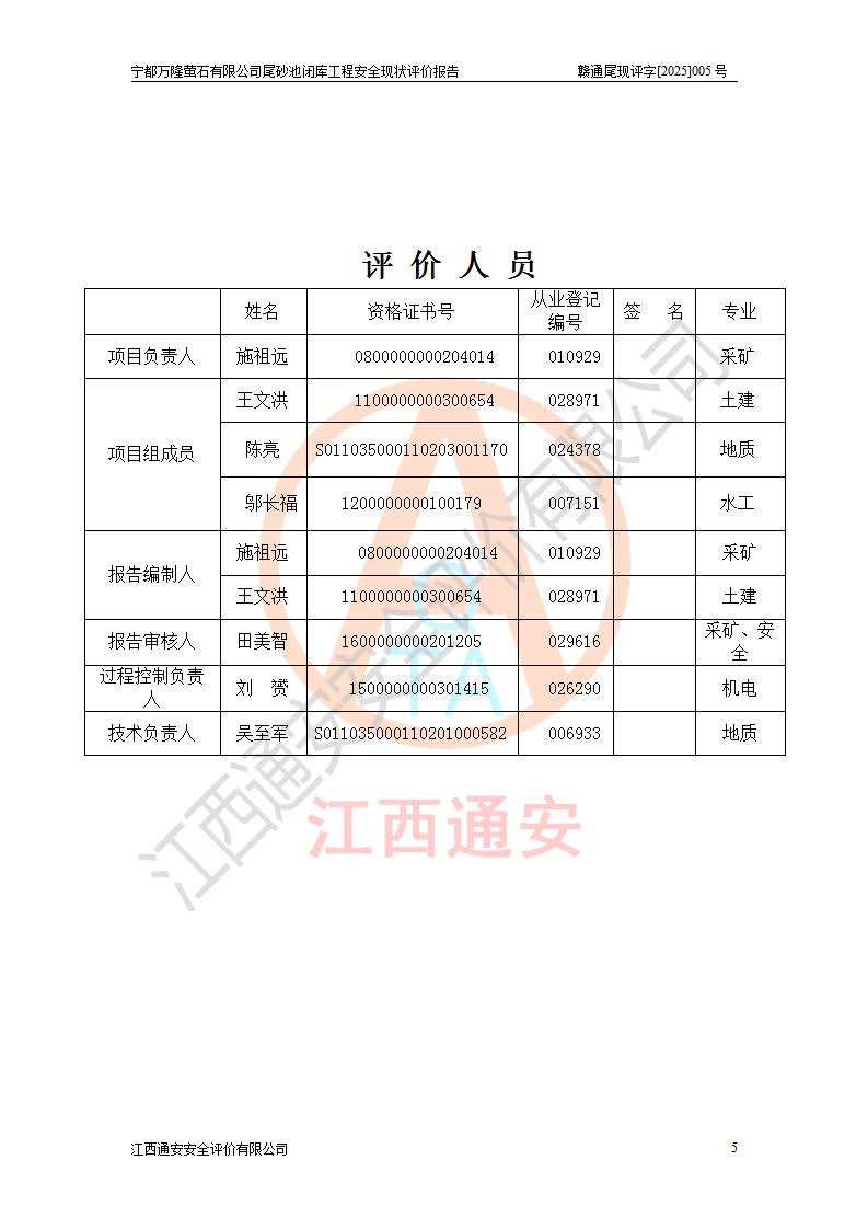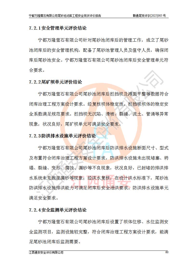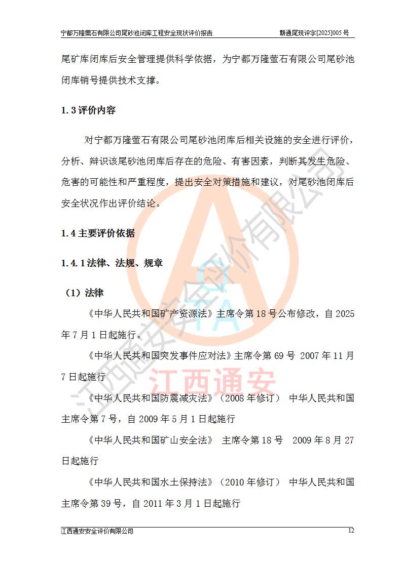 評(píng)價(jià)報(bào)告名稱 | 寧都萬(wàn)隆螢石有限公司尾砂池閉庫(kù)工程安全現(xiàn)狀評(píng)價(jià)報(bào)告 | |||