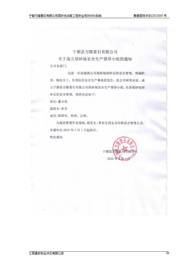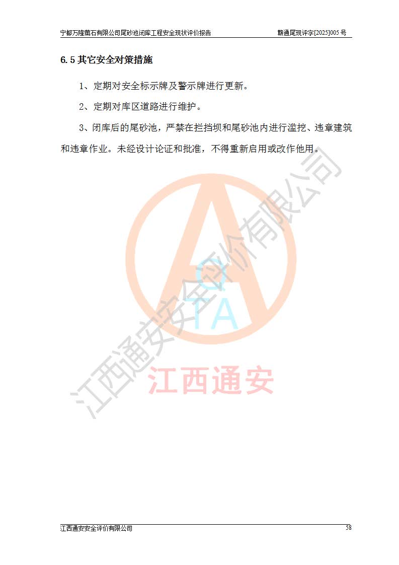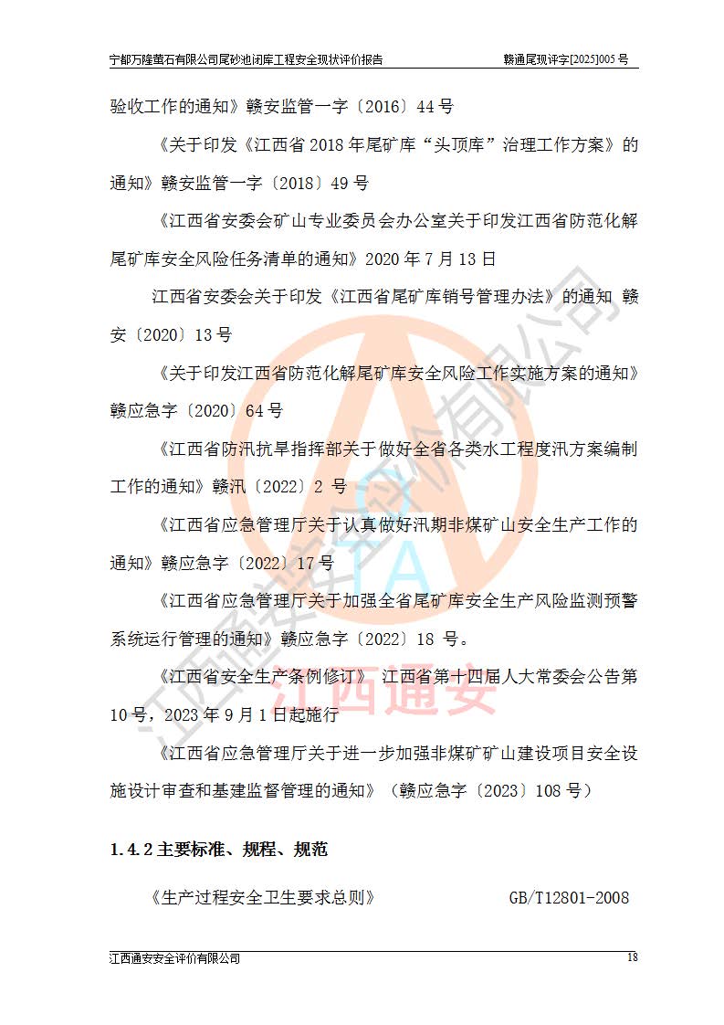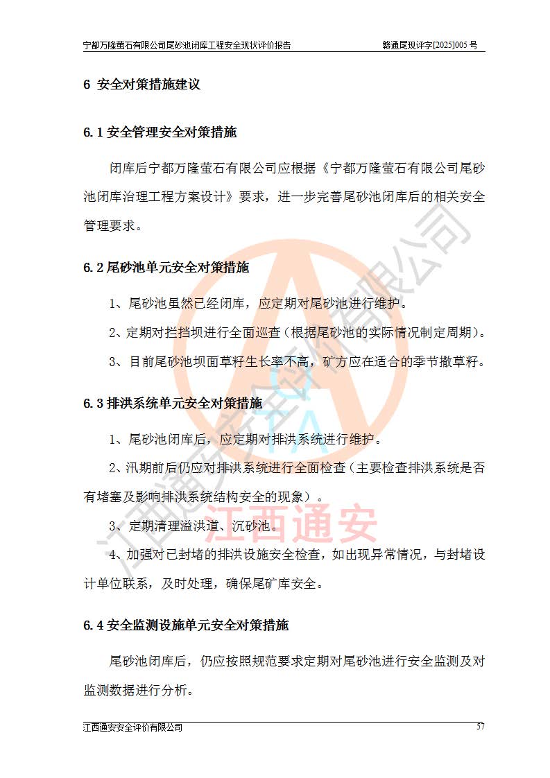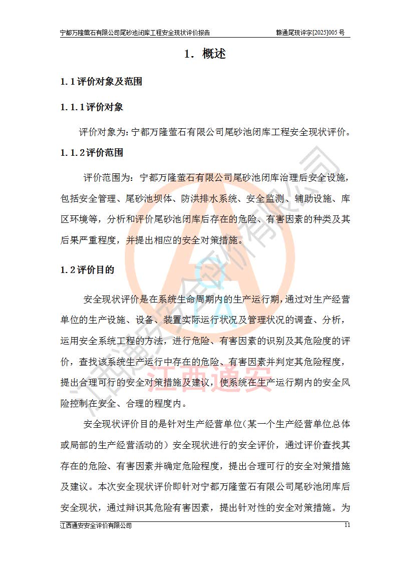 評(píng)價(jià)報(bào)告名稱 | 寧都萬(wàn)隆螢石有限公司尾砂池閉庫(kù)工程安全現(xiàn)狀評(píng)價(jià)報(bào)告 | |||