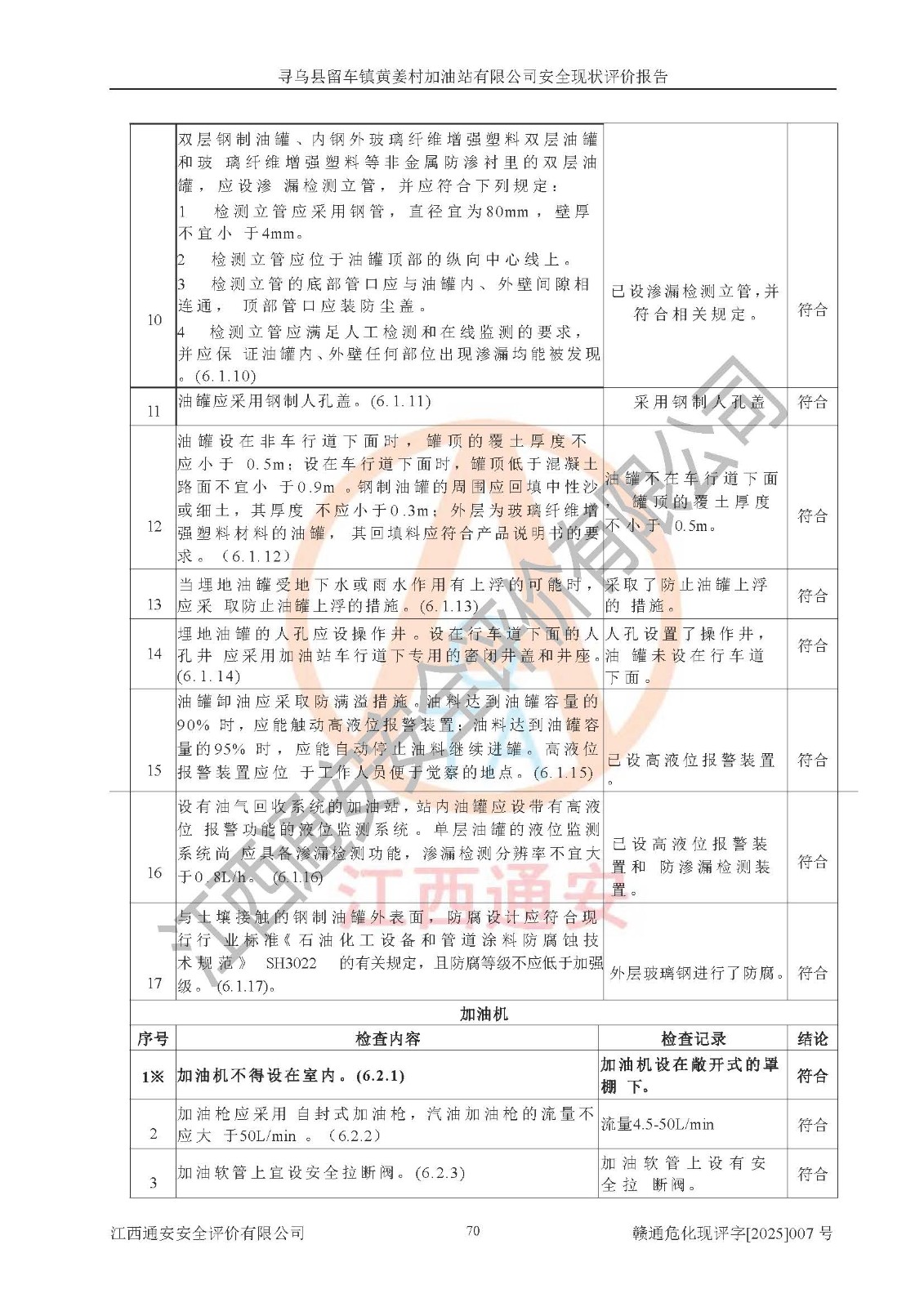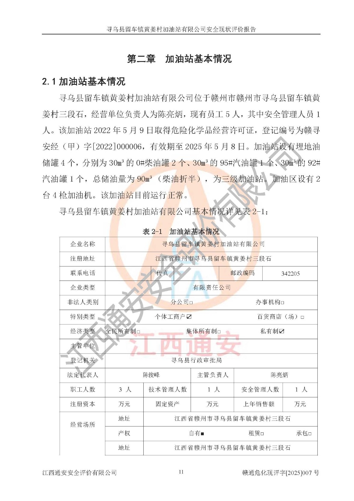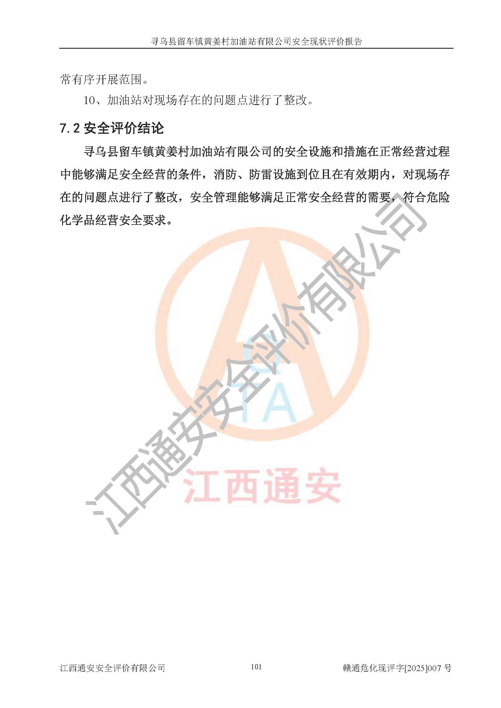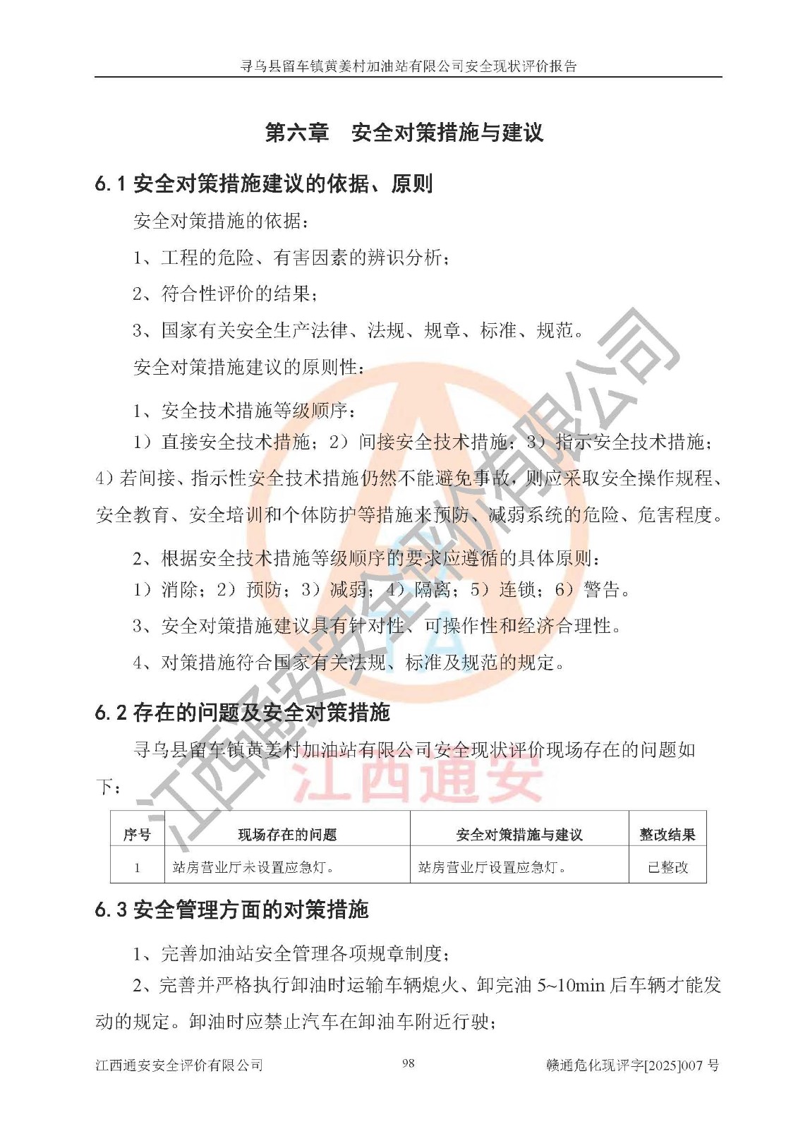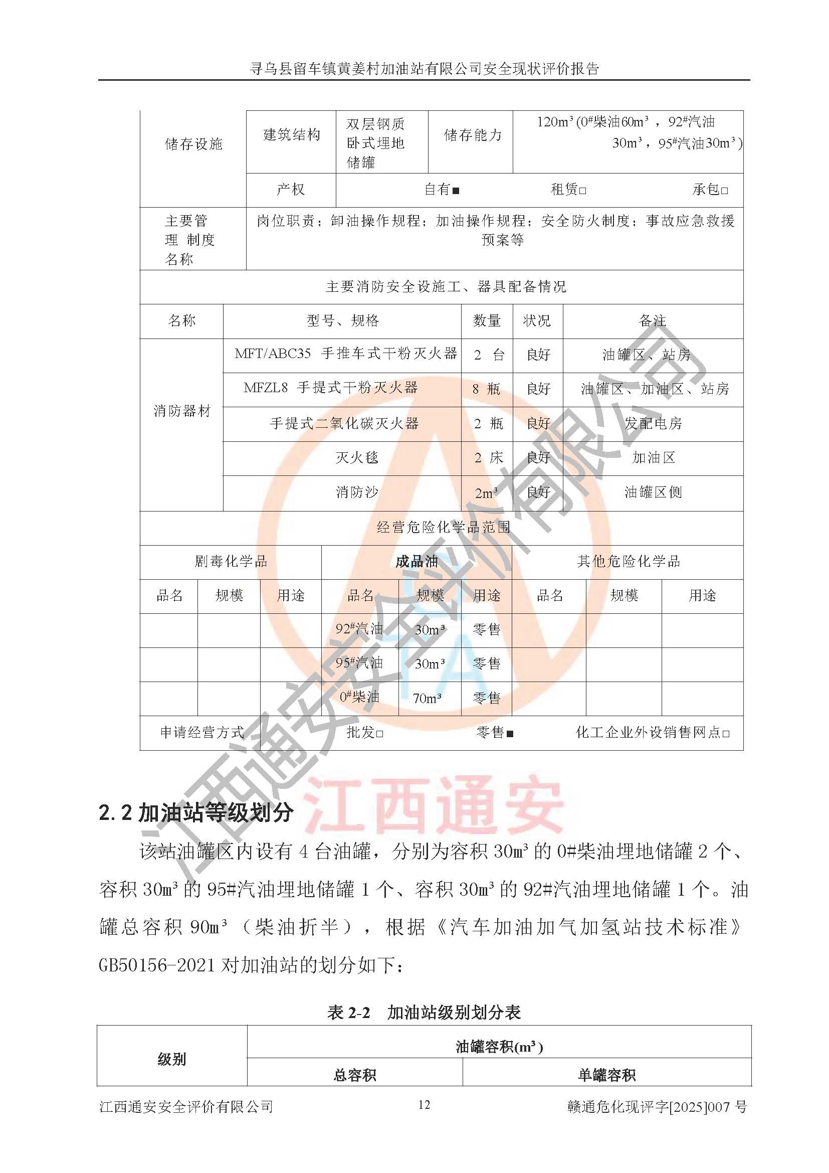 項目名稱 | 尋烏縣留車鎮(zhèn)黃姜村加油站有限公司安全現狀評價報告 | ||||