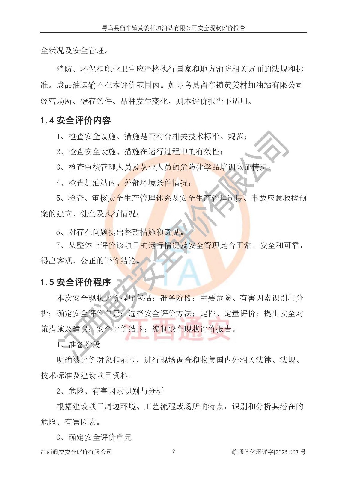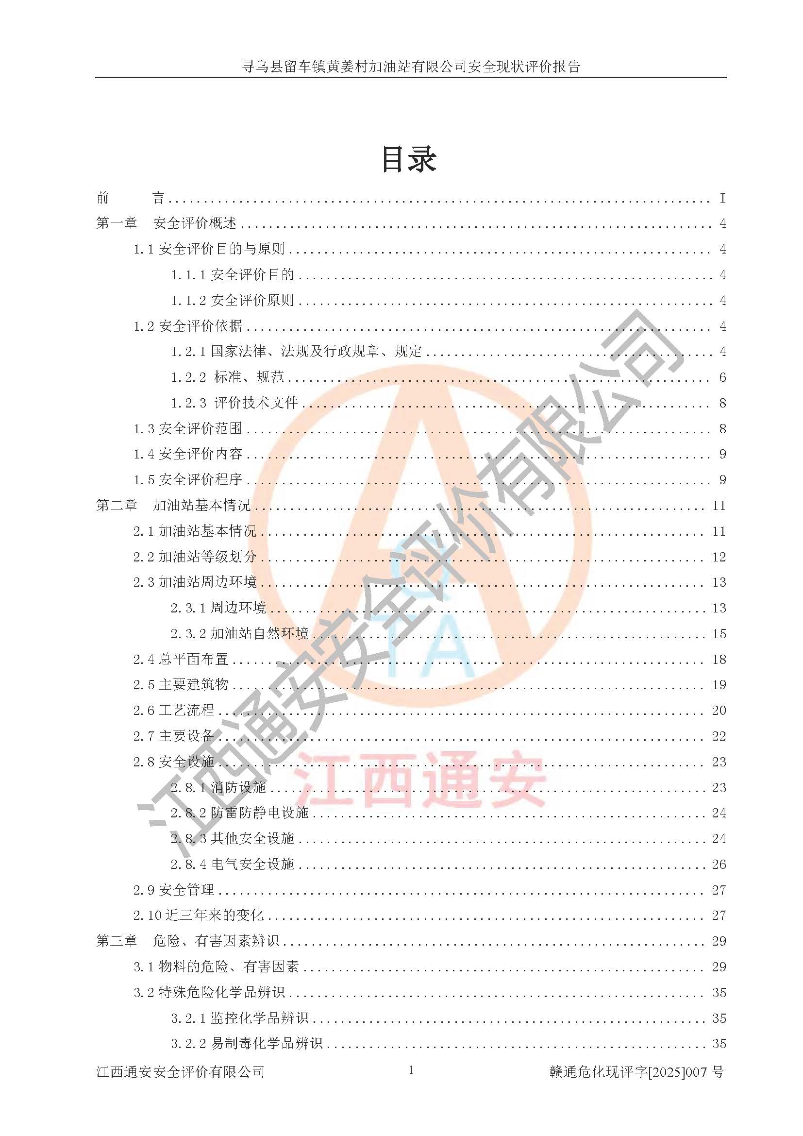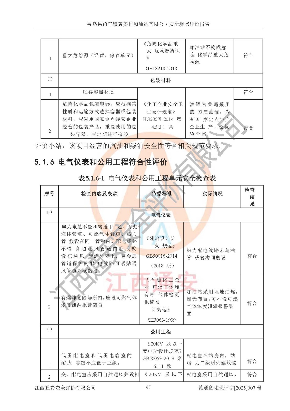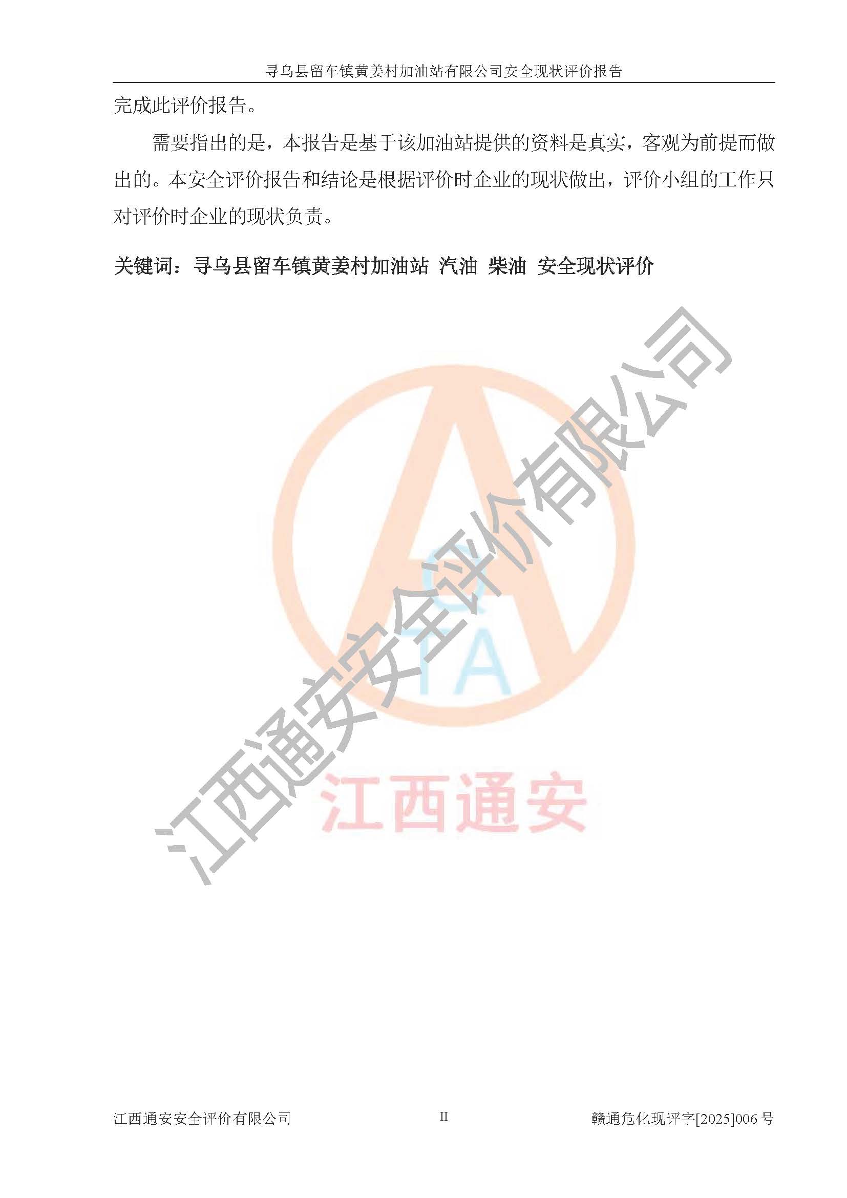 項目名稱 | 尋烏縣留車鎮(zhèn)黃姜村加油站有限公司安全現狀評價報告 | ||||