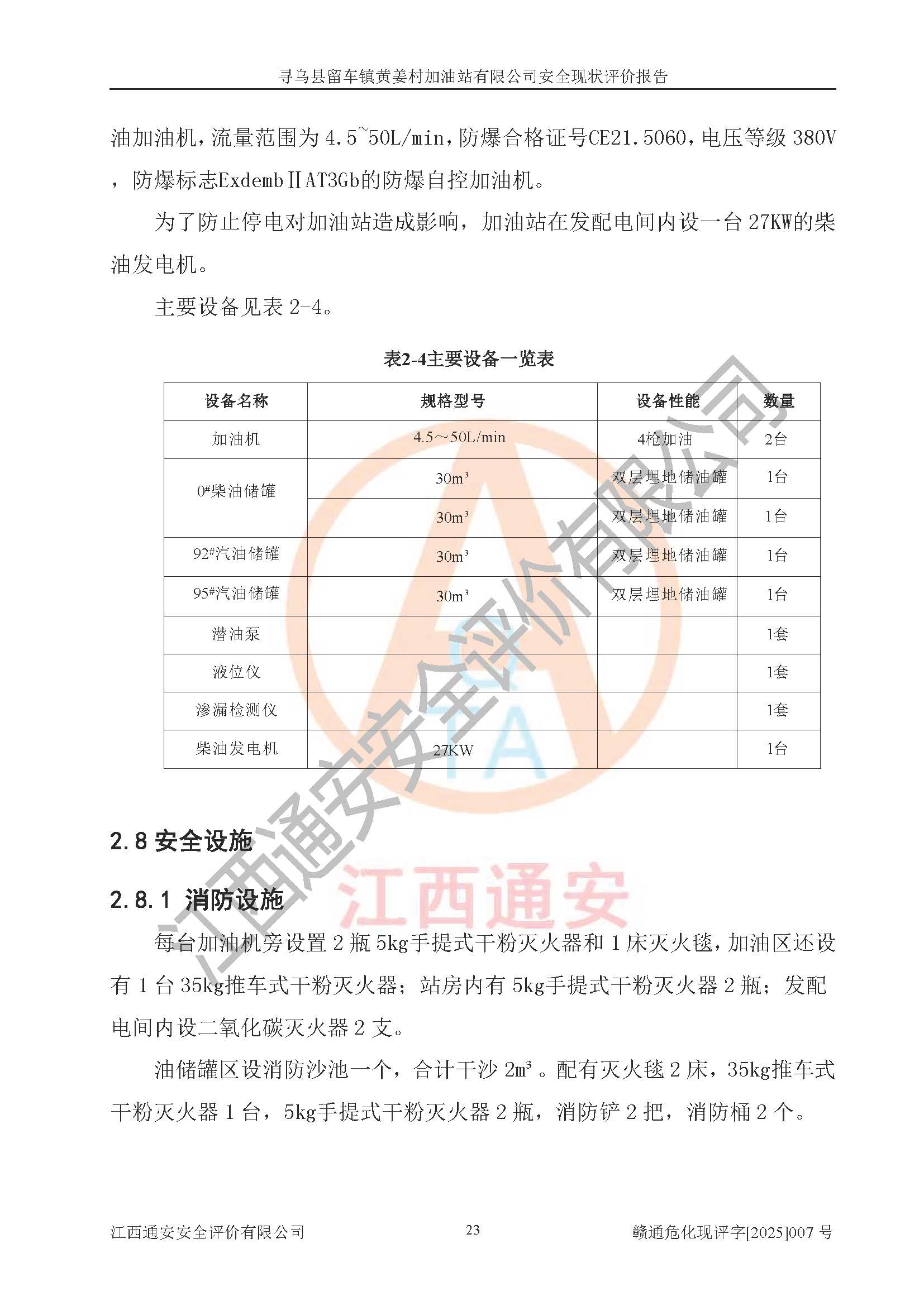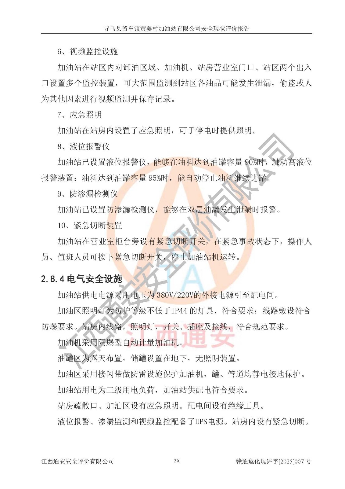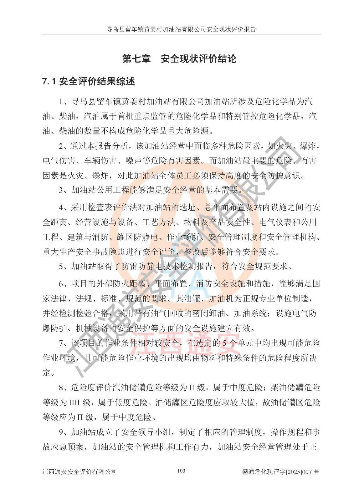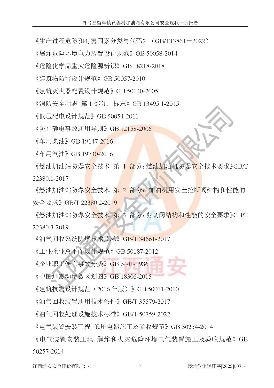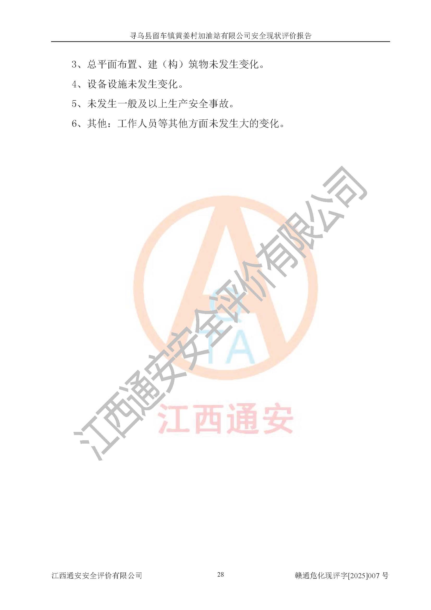 項目名稱 | 尋烏縣留車鎮(zhèn)黃姜村加油站有限公司安全現狀評價報告 | ||||