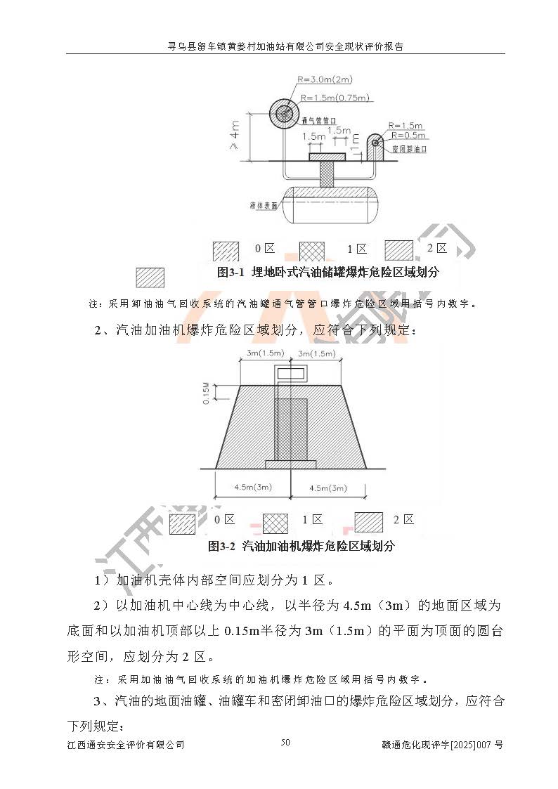 項目簡介 | 尋烏縣留車鎮(zhèn)黃姜村加油站有限公司位于贛州市贛州市尋烏縣留車鎮(zhèn)黃姜村三段石,經營單位負責人為陳亮炳,現有員工5人,其中安全管理人員1人。該加油站2022年5月9日取得危險化學品經營許可證,登記編號為贛尋安經(甲)字[2022]000006,**期至2025年5月8日。加油站設有埋地油儲罐4個,分別為30m3的0#柴油罐2個、30m3的95#汽油罐1個、30m3的92#汽油罐1個,總儲油量為90m3(柴油折半),為三級加油站。加油區(qū)設有2臺4槍加油機。該加油站目前運行正常。 | ||||