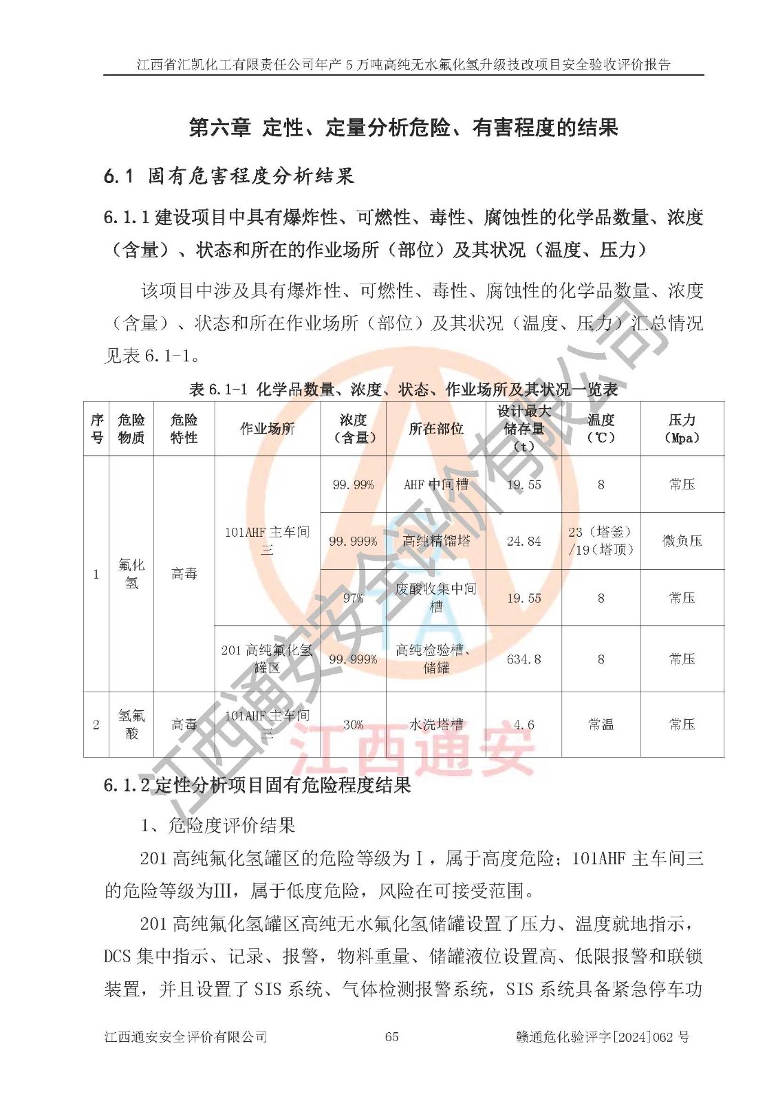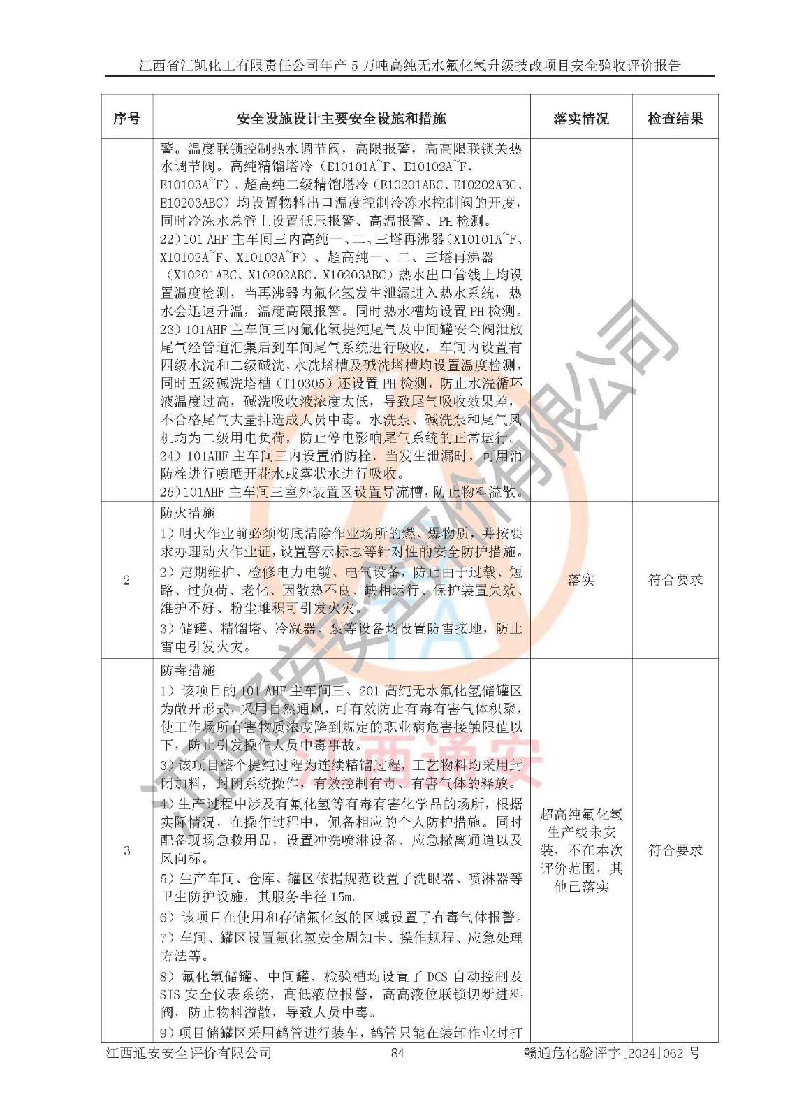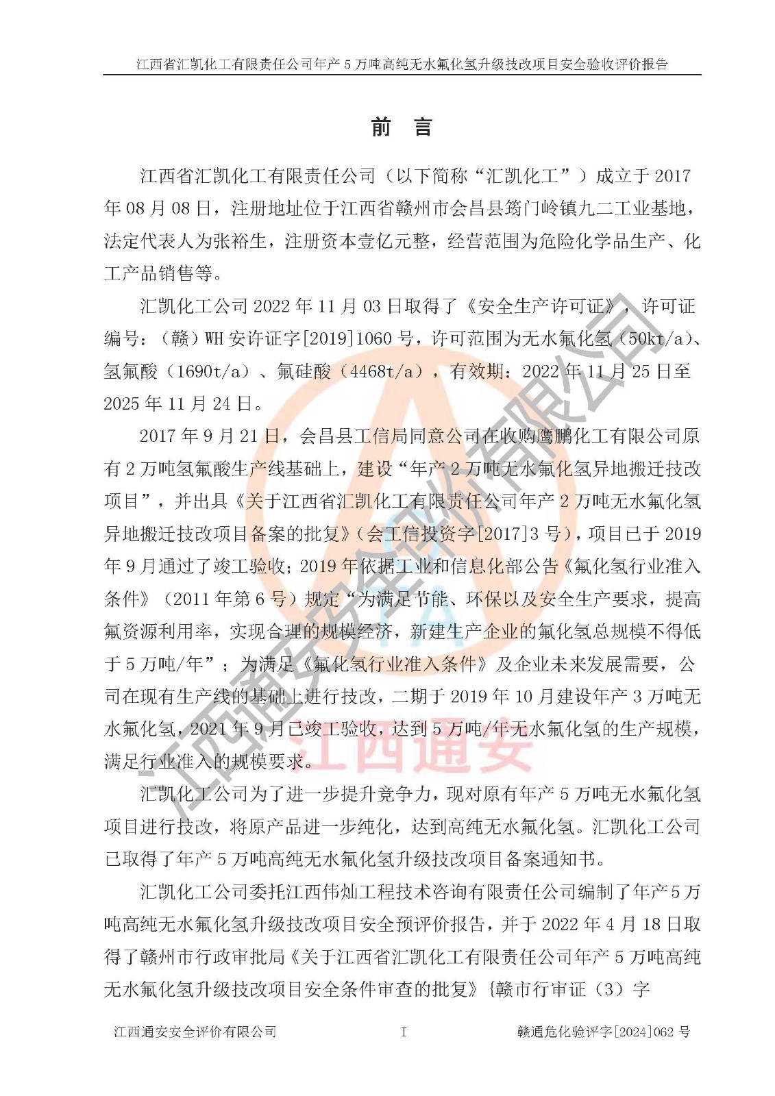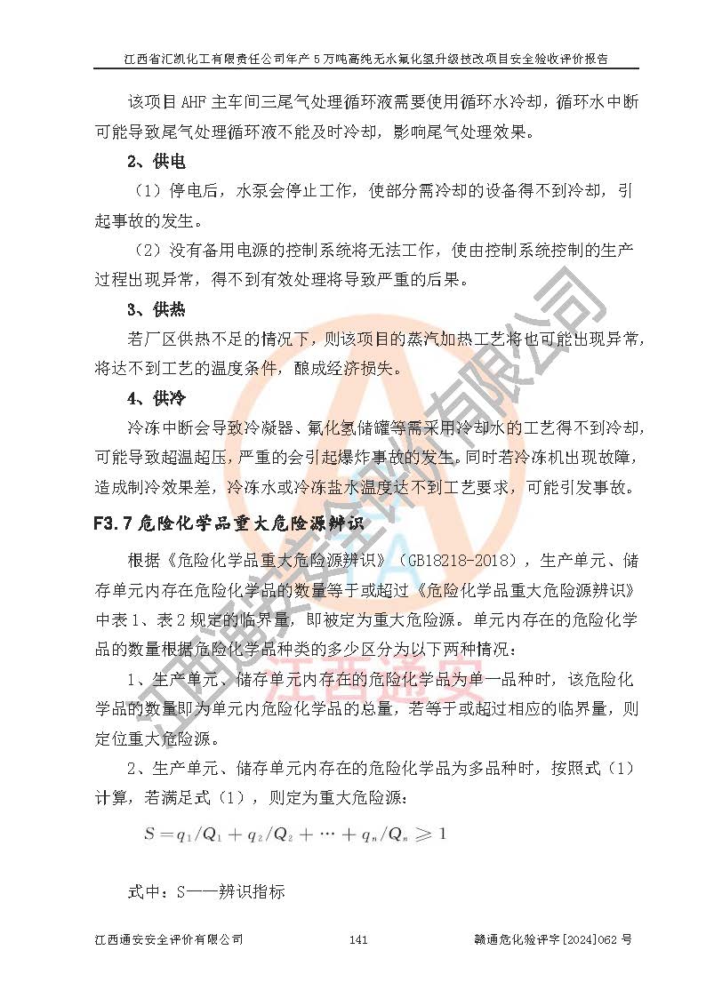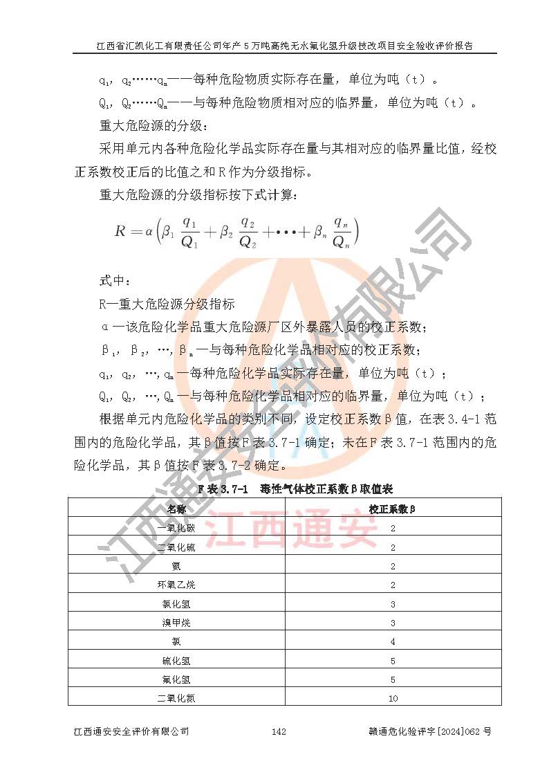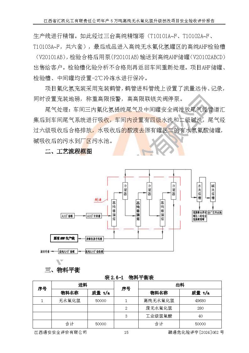 評價報告名稱 | 江西省匯凱化工有限責(zé)任公司年產(chǎn)5萬噸高純無水氟化氫升級技改項目安全驗收評價報告 | ||||||